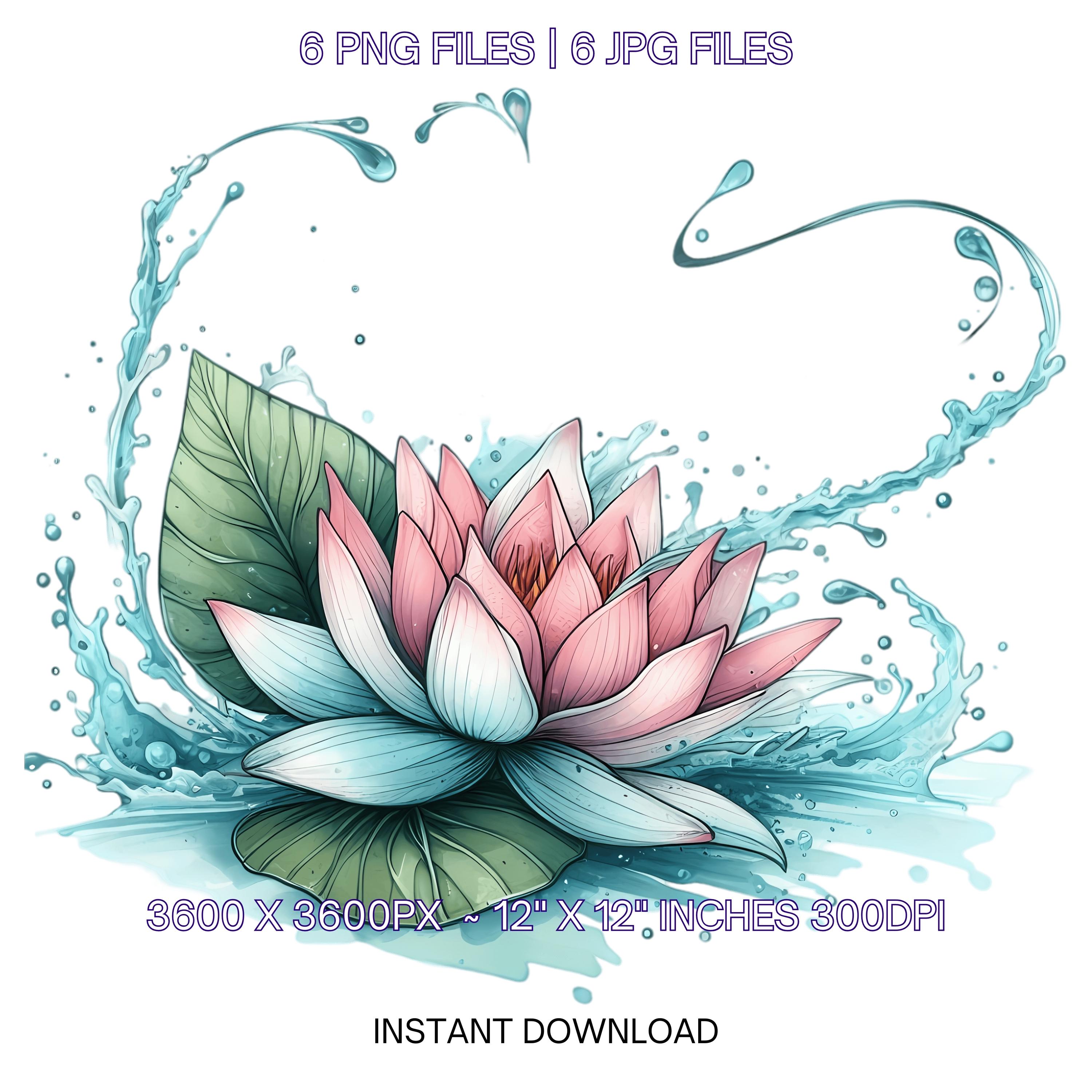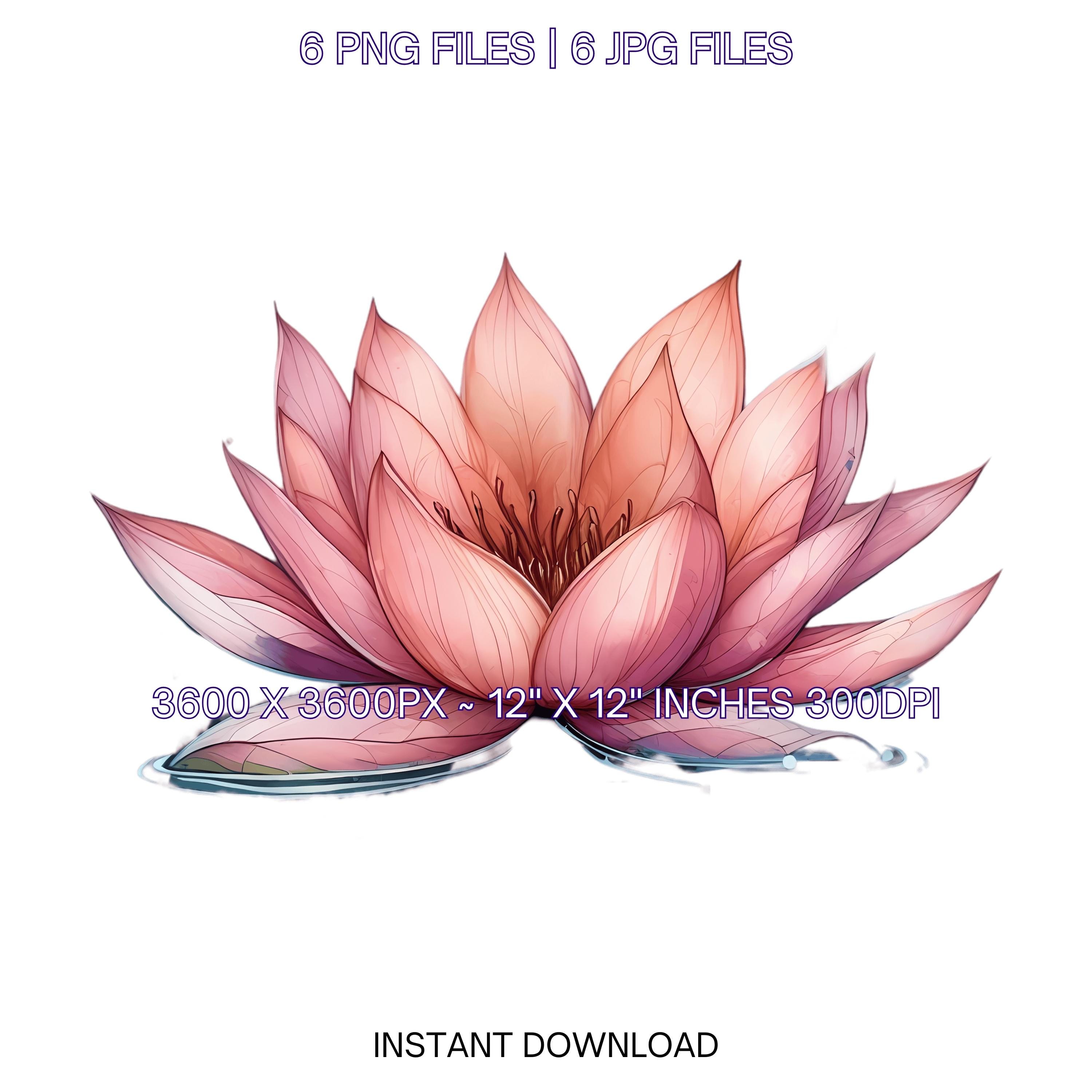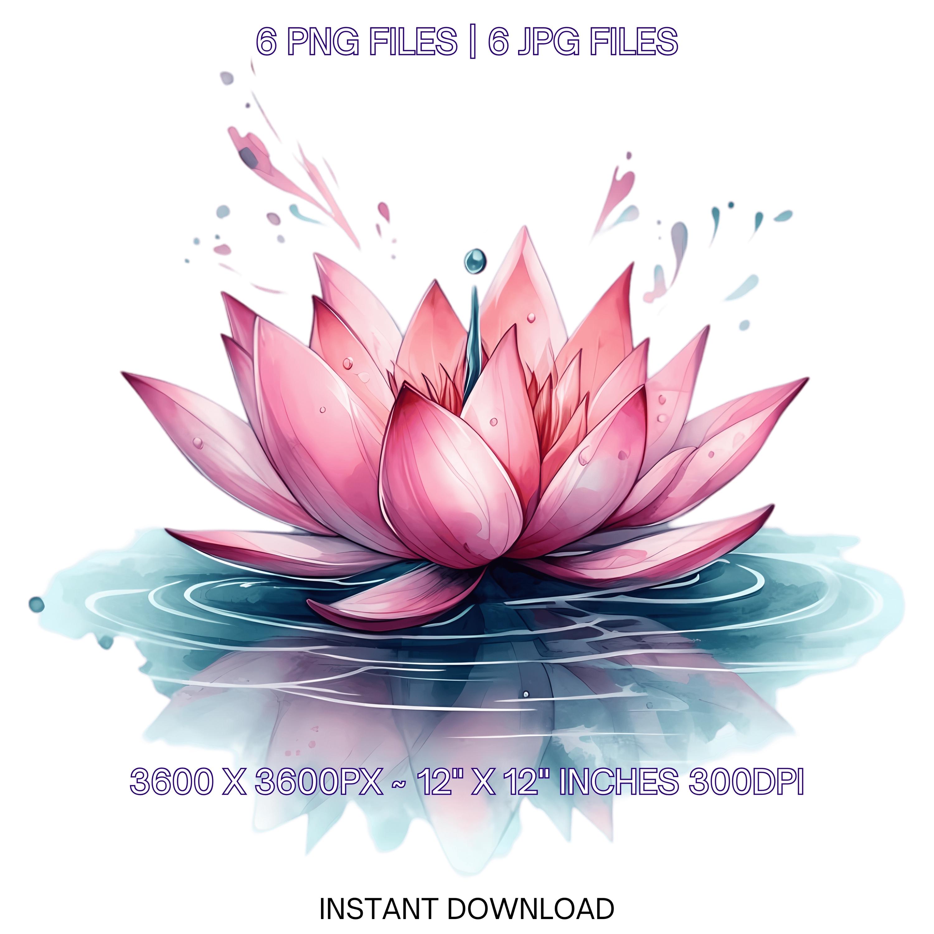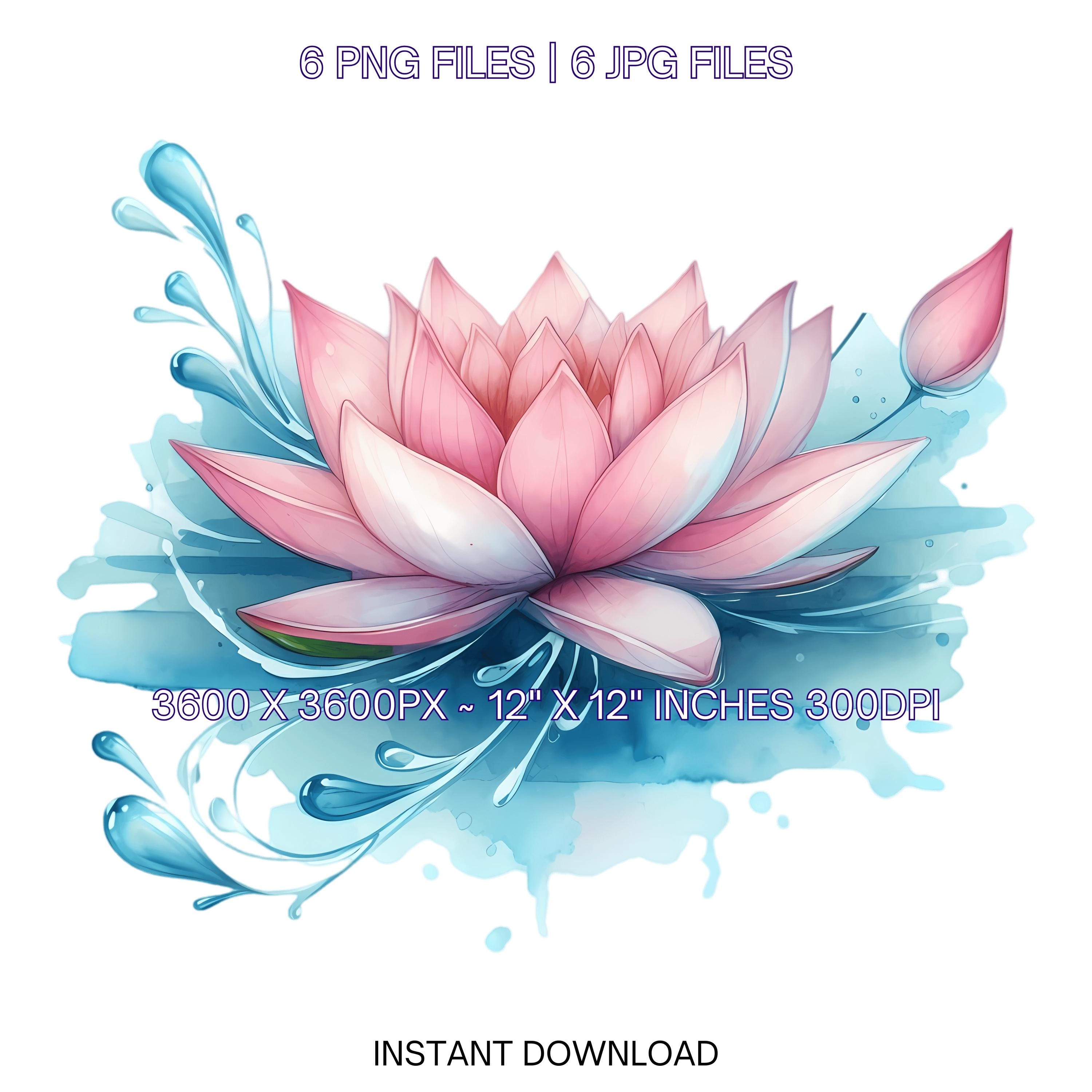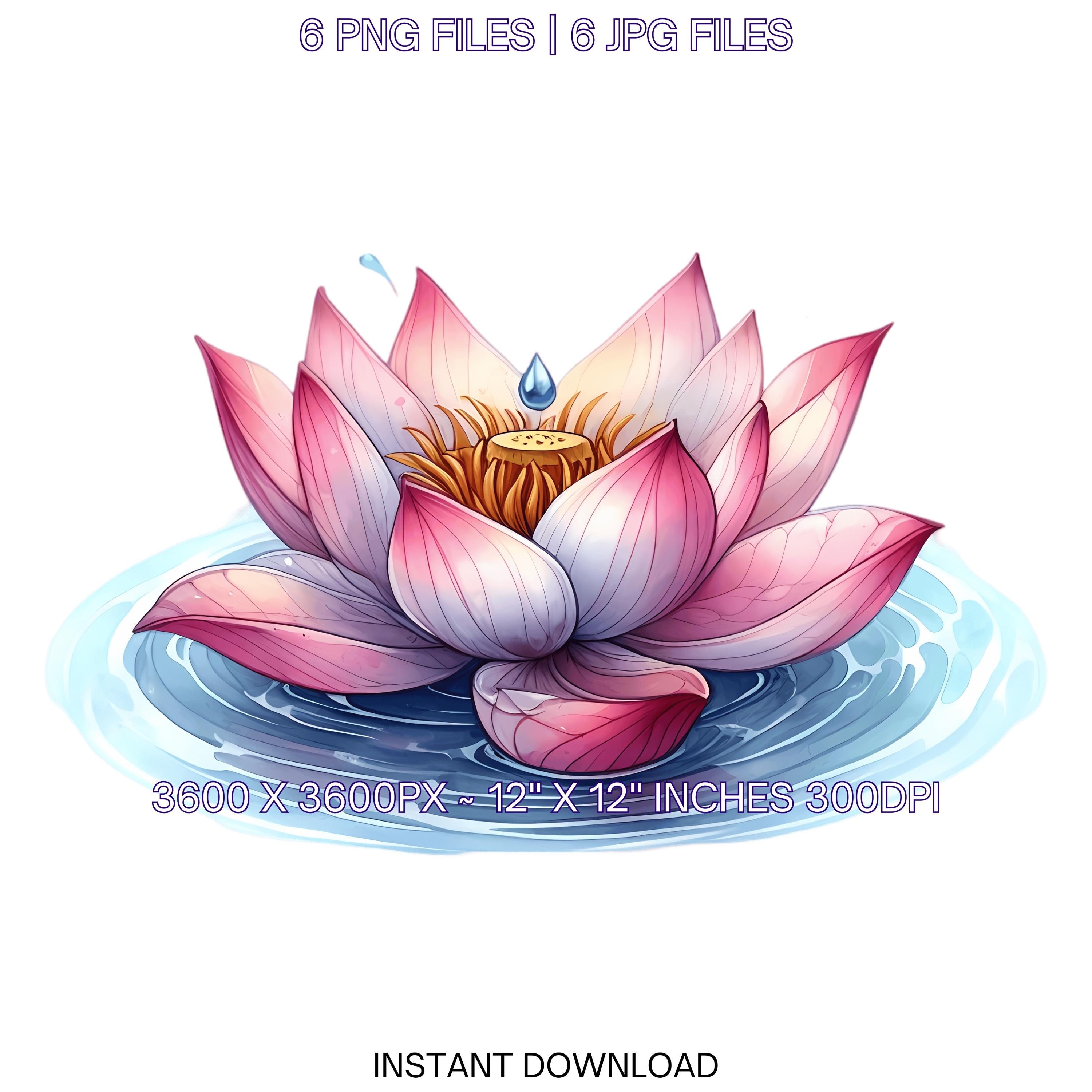 Lotus PNG Clipart | Watercolor Lotus floating on gentle water | Watercolor Illustration Clipart | 6 JPG โ€“ 6 PNG Sublimation Commercial Use โ€“ Instant Digital Download - TumblersGalaxy