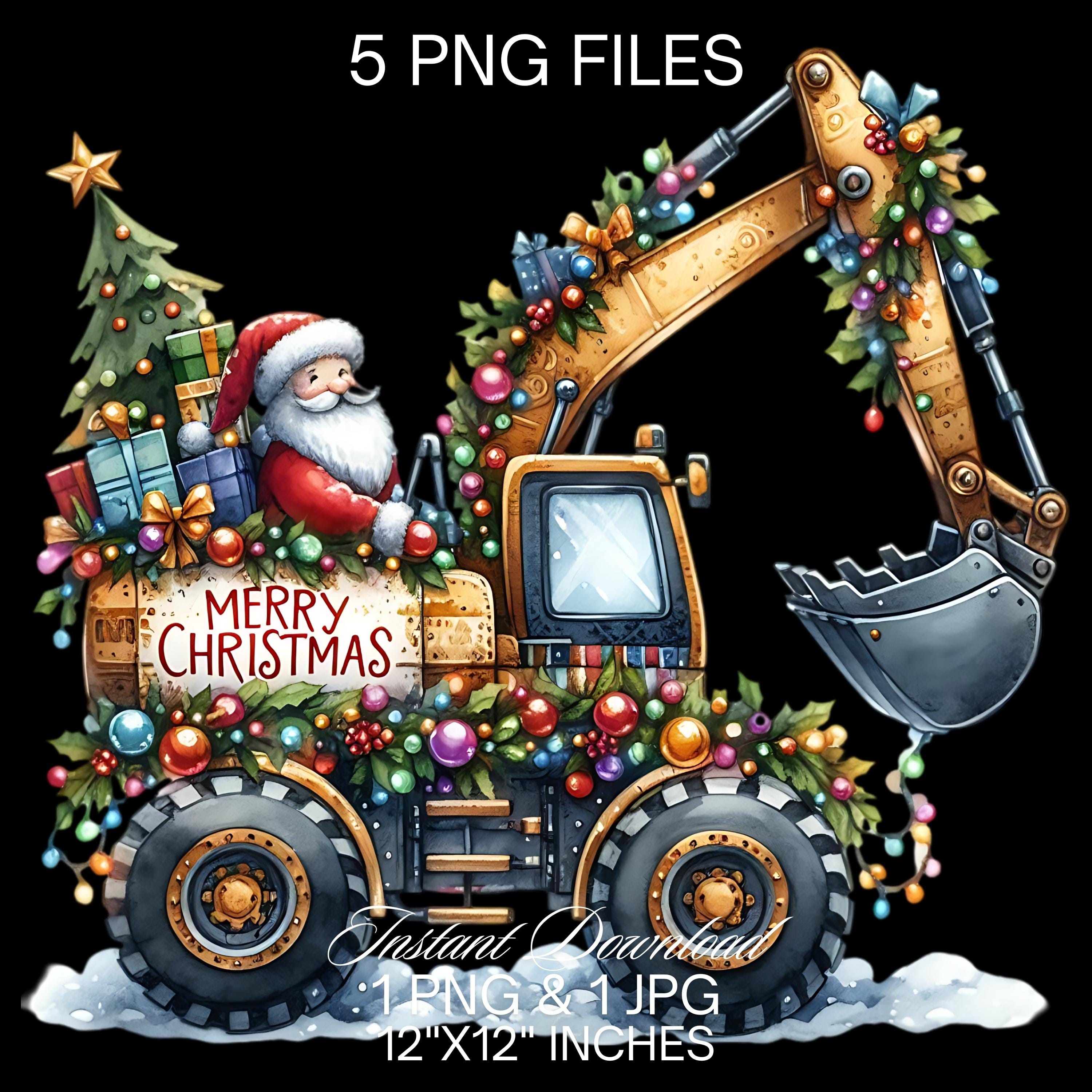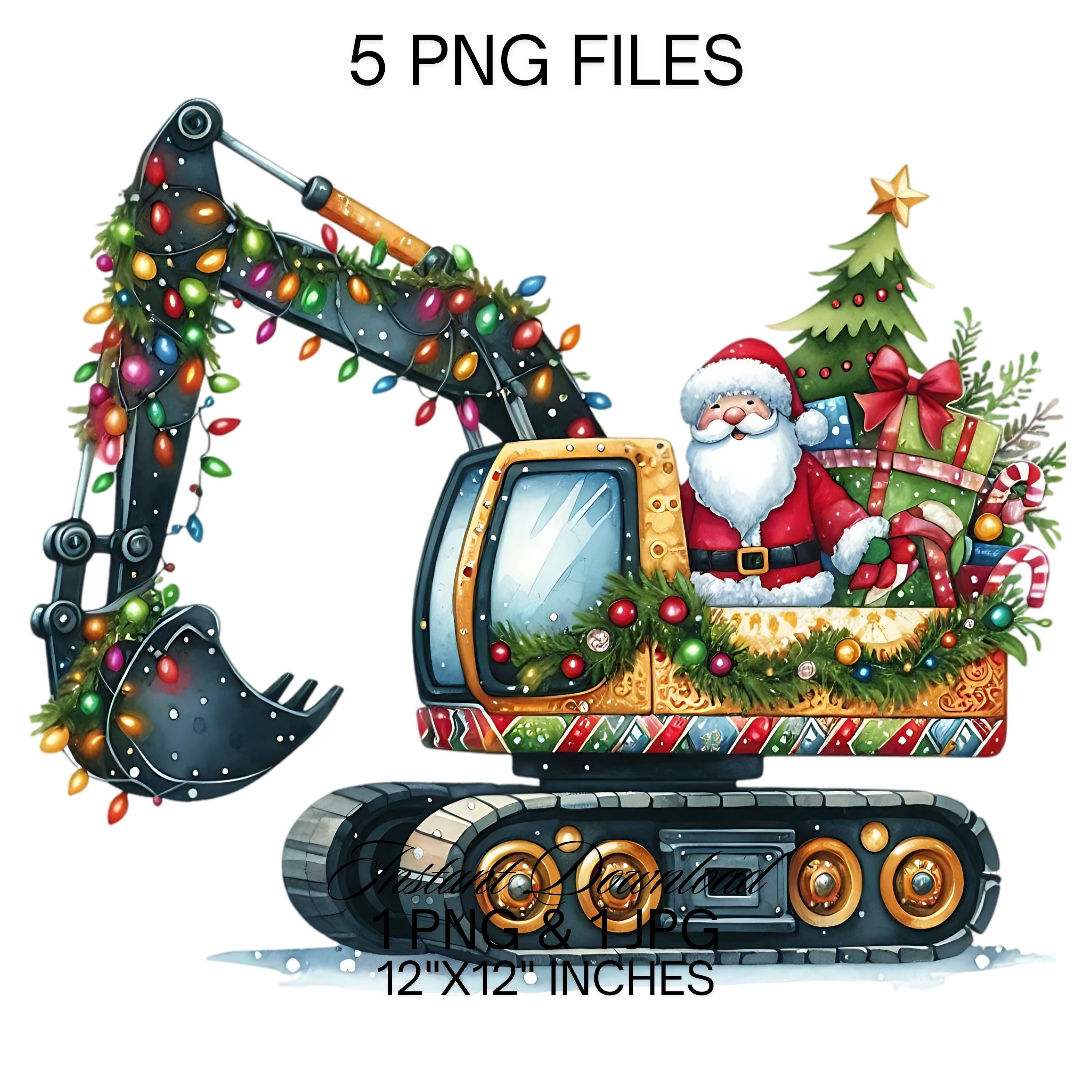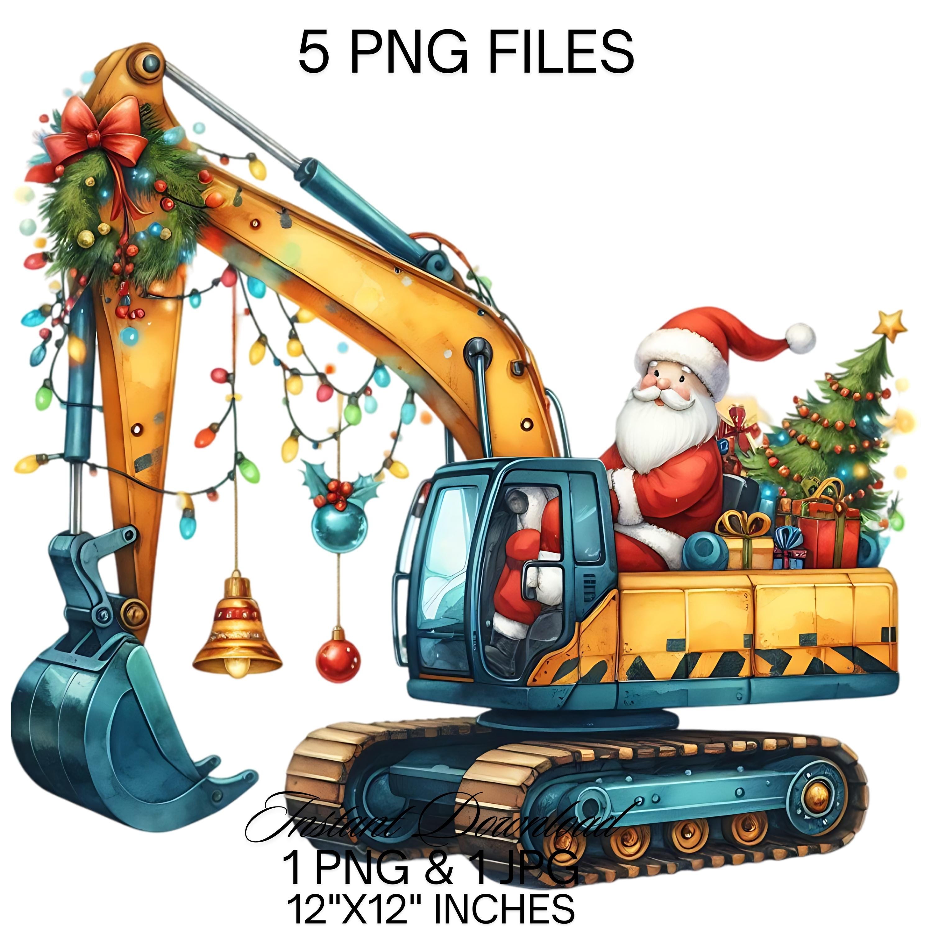 Merry Christmas Excavator PNG Clipart | Watercolor Construction Truck for Boys | Santa Excavator Truck Vehicle Cars PNG Commercial Use – Instant Digital Download - TumblersGalaxy