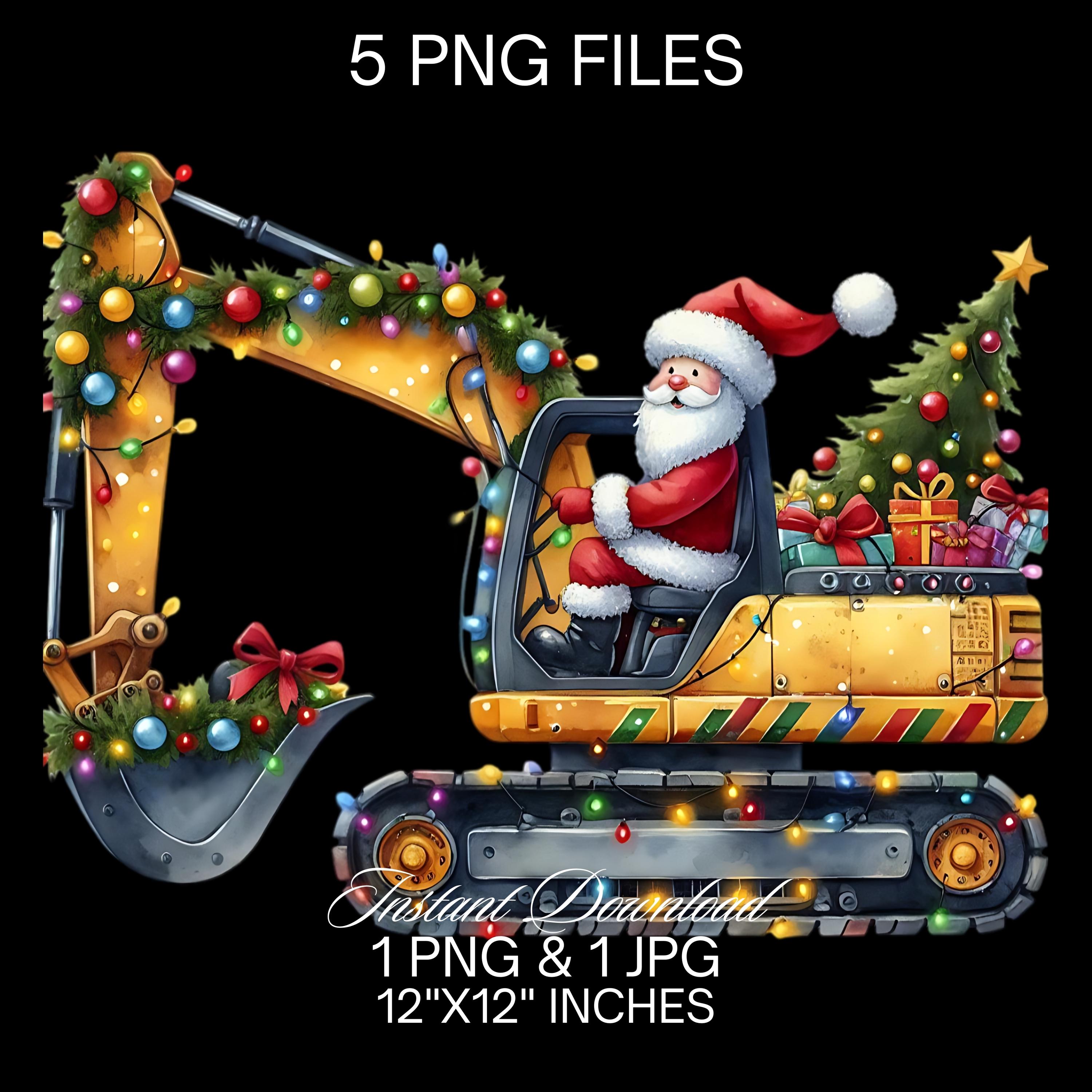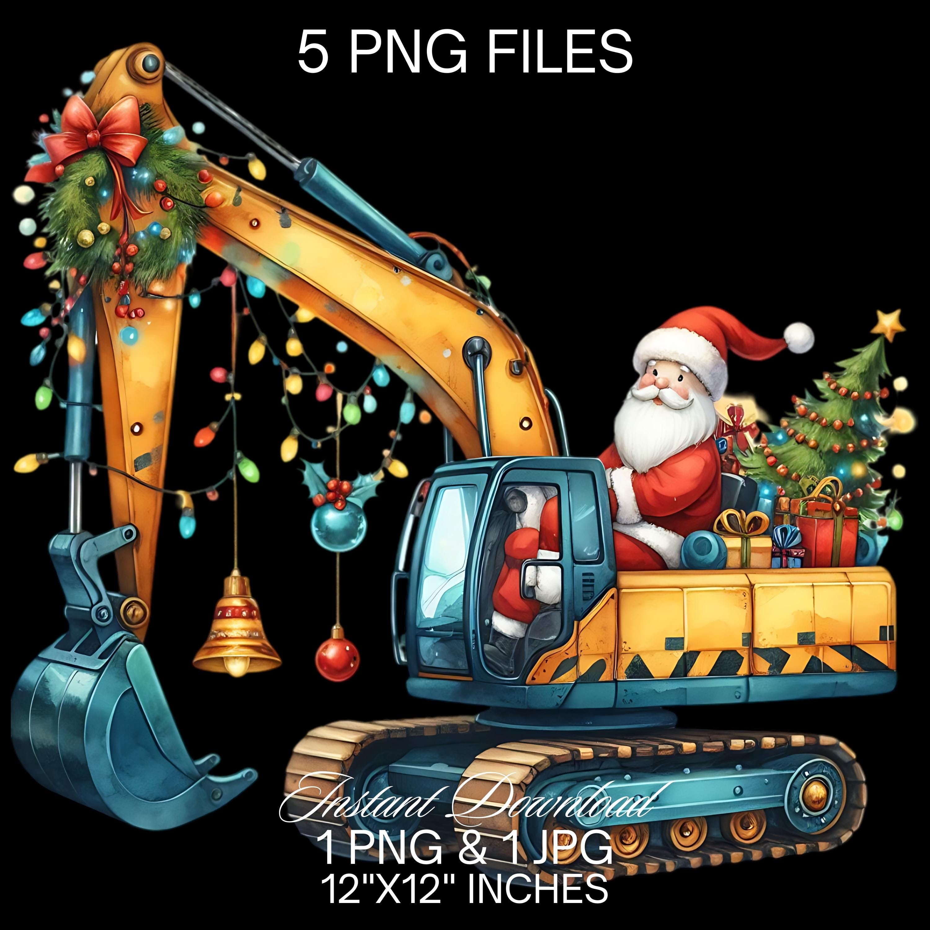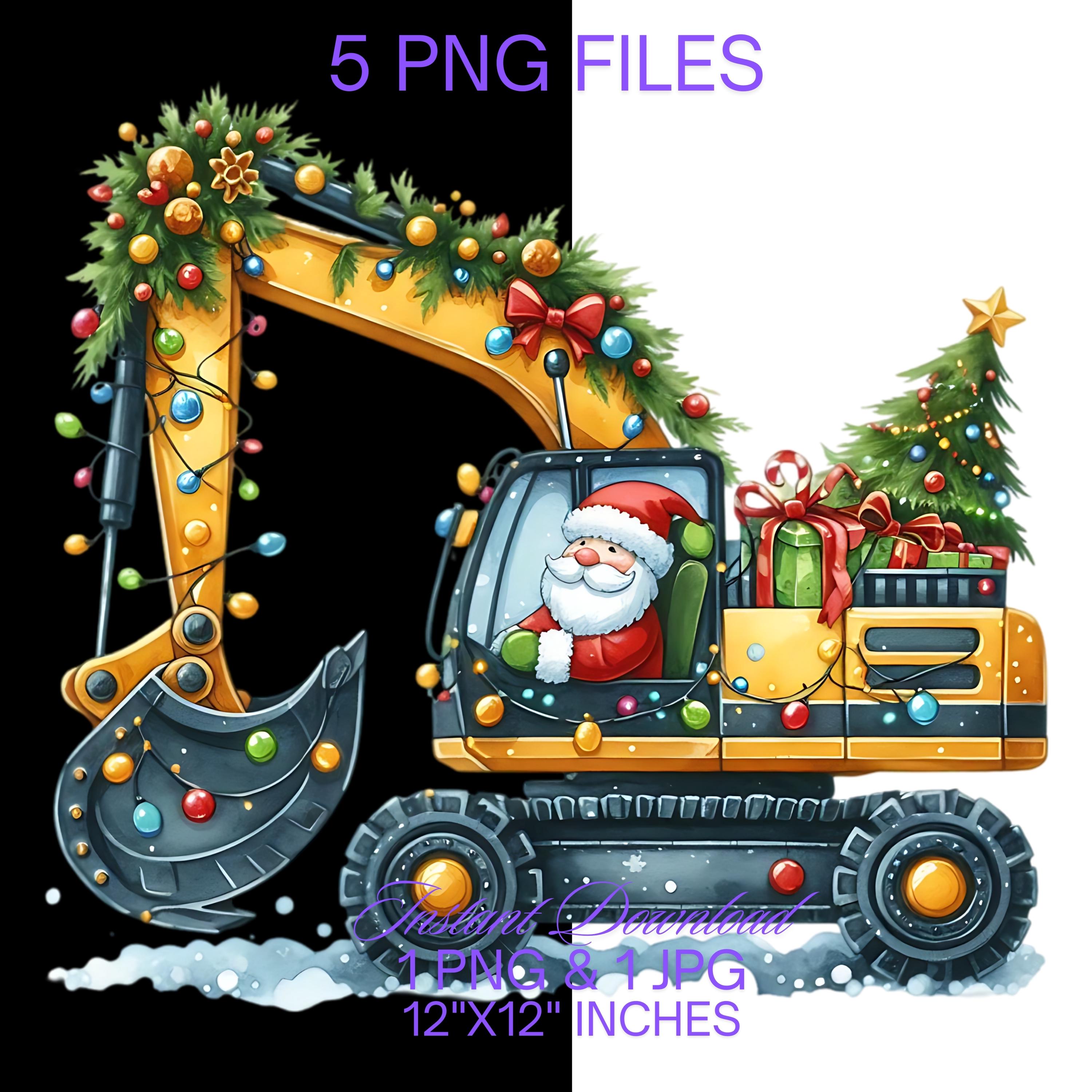 Merry Christmas Excavator PNG Clipart | Watercolor Construction Truck for Boys | Santa Excavator Truck Vehicle Cars PNG Commercial Use – Instant Digital Download - TumblersGalaxy