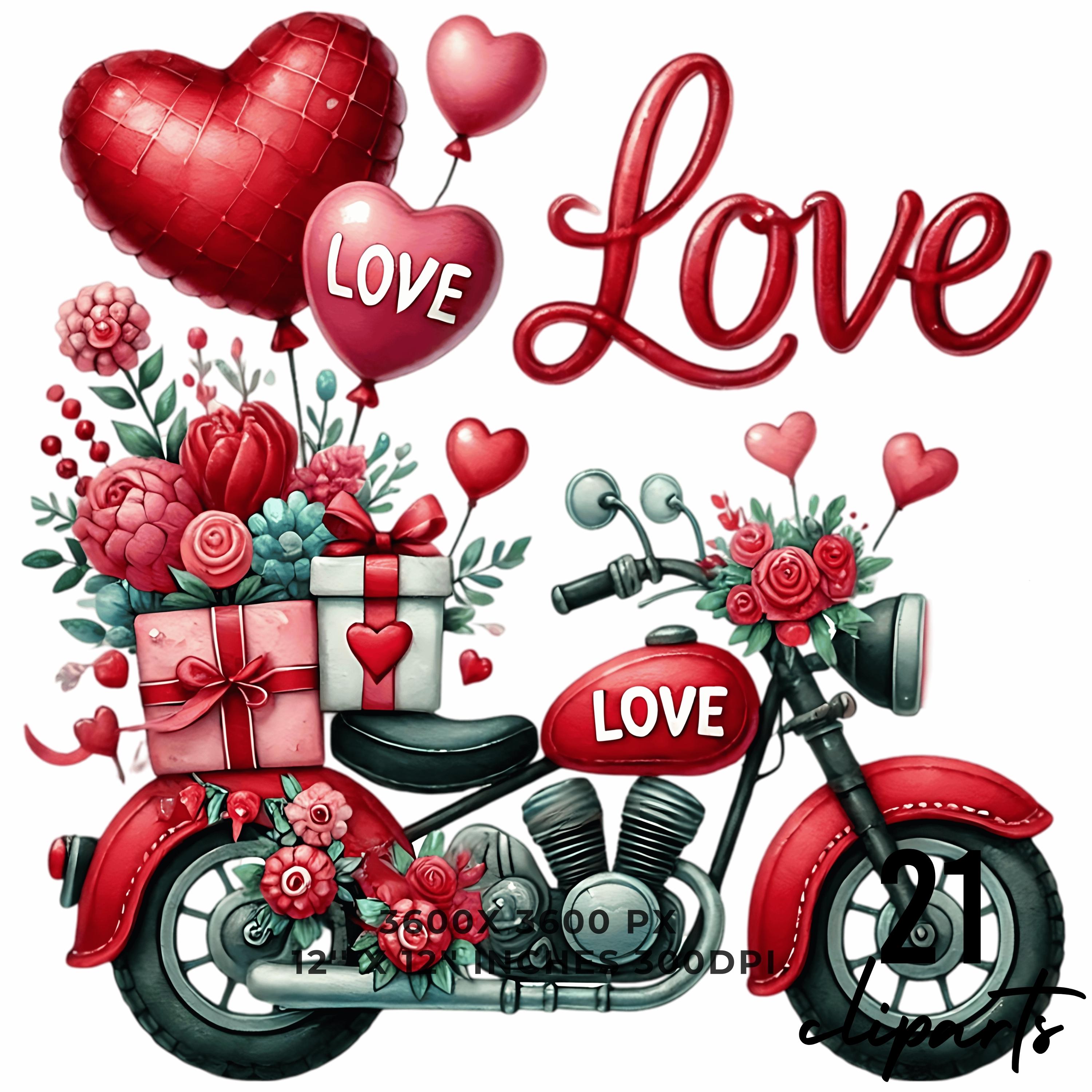 21 Valentine Moto PNG Clipart | Watercolor Travel Motorcycle for Boys | Love Scooter Vehicle Cars PNG | Motorbike Ride Commercial Use