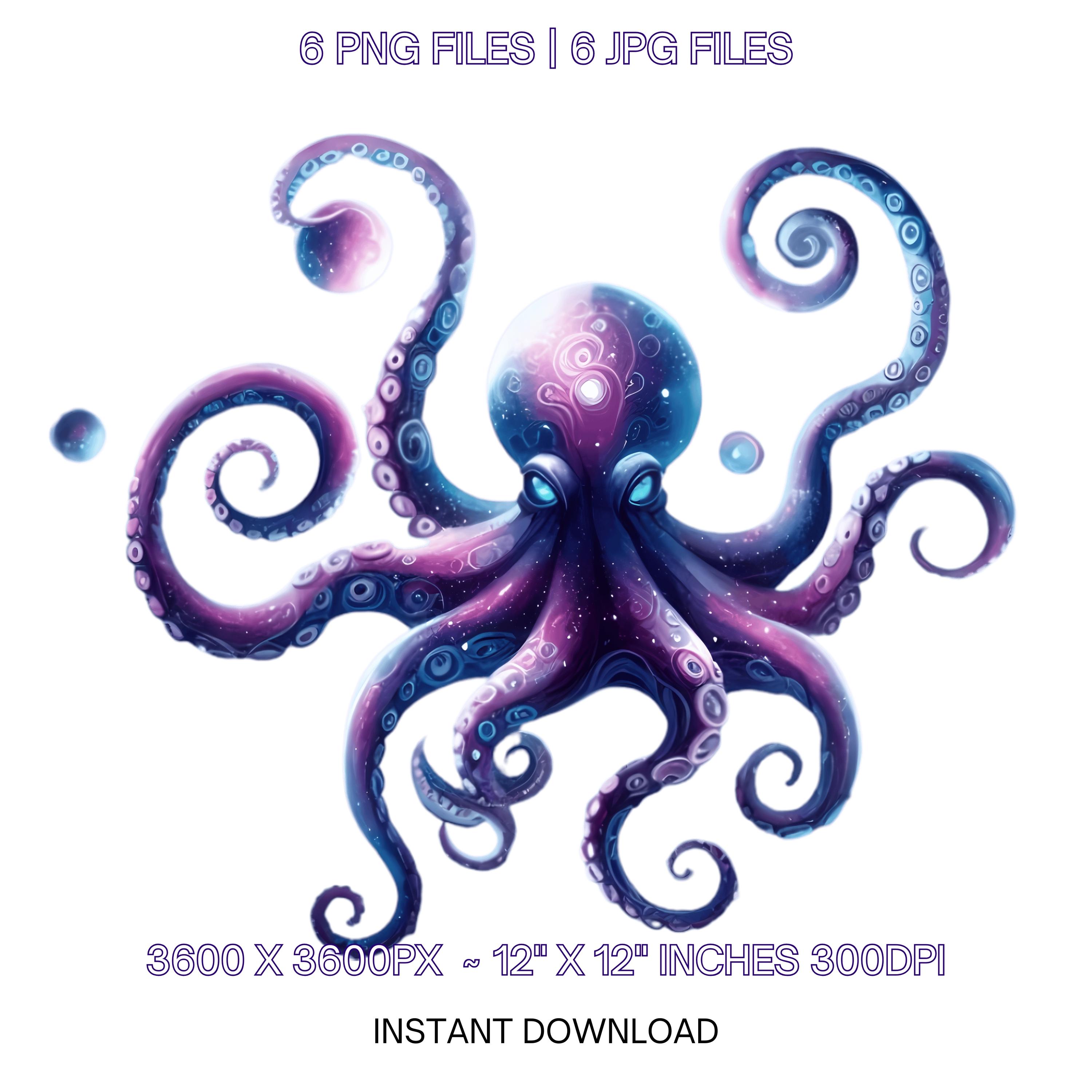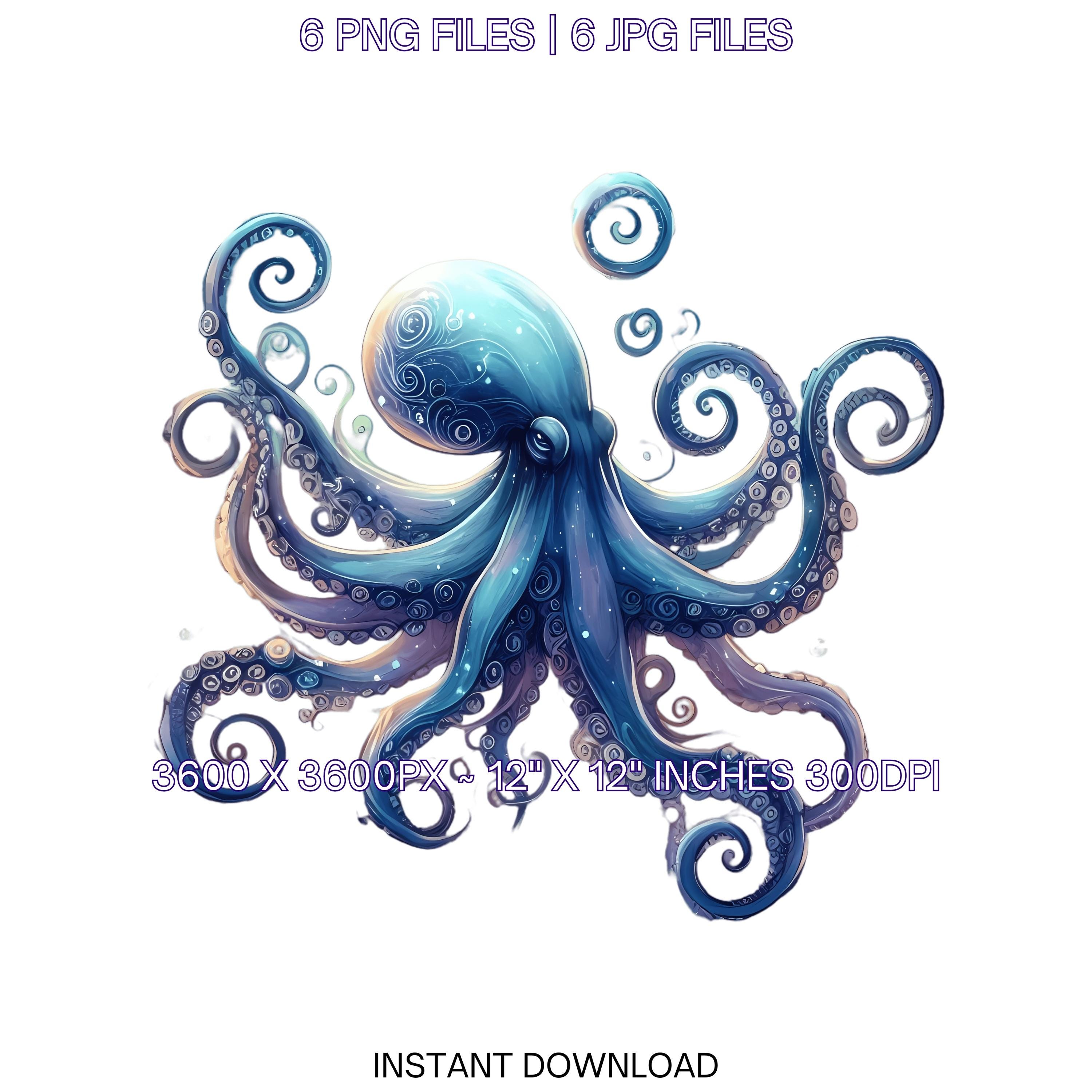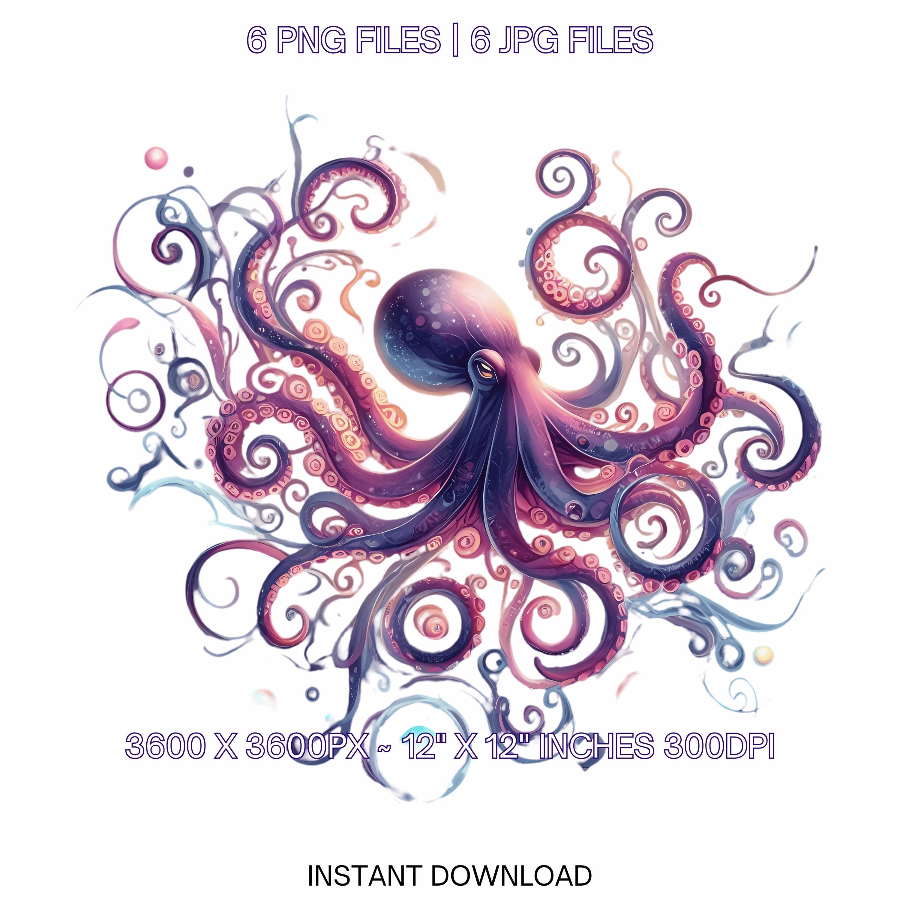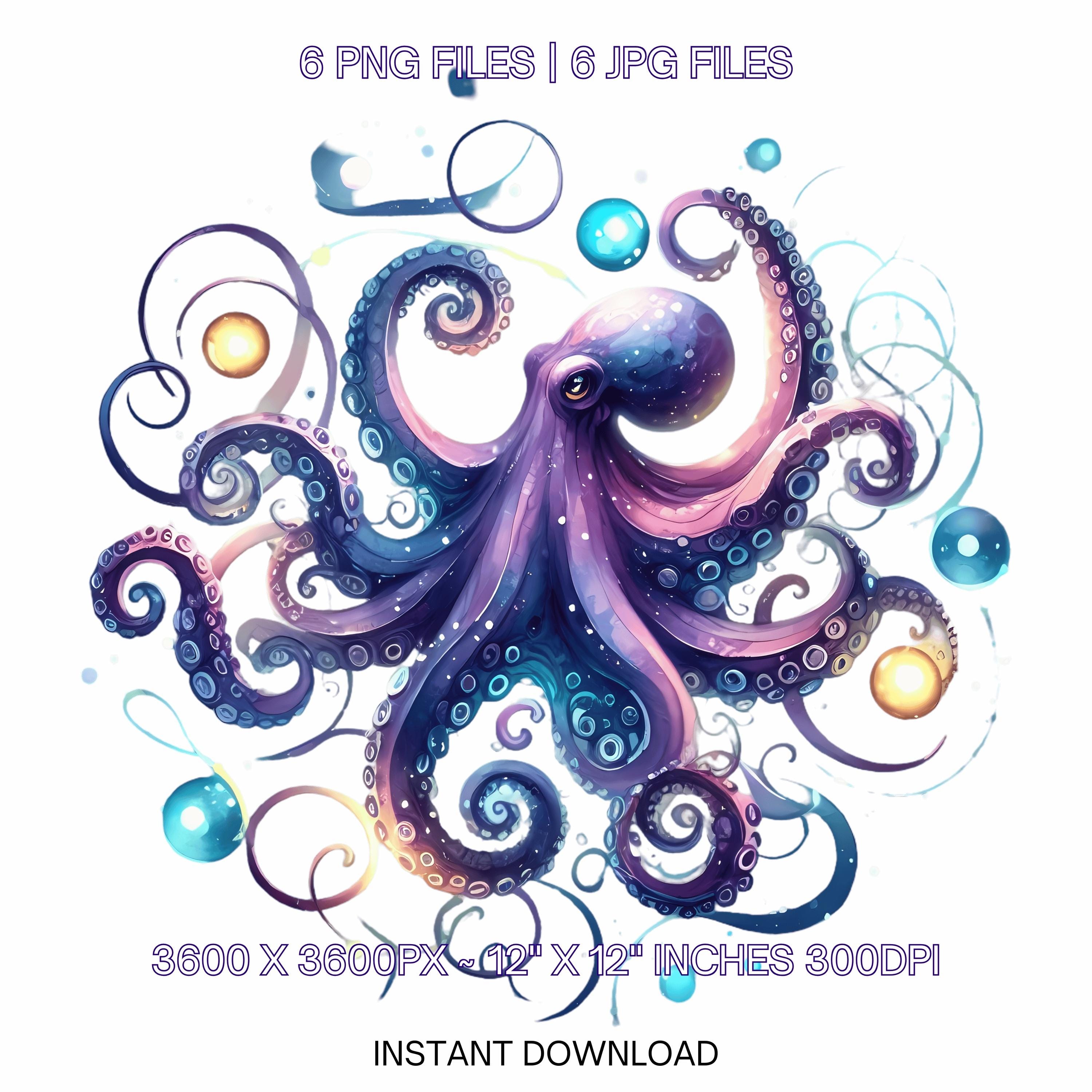 Octopus Clipart PNG | 6 Watercolor Swirling Tentacles of Mystical Octopus & Glowing Underwater Orbs | Underwater Sublimation Commercial Use – Instant Digital Download - TumblersGalaxy