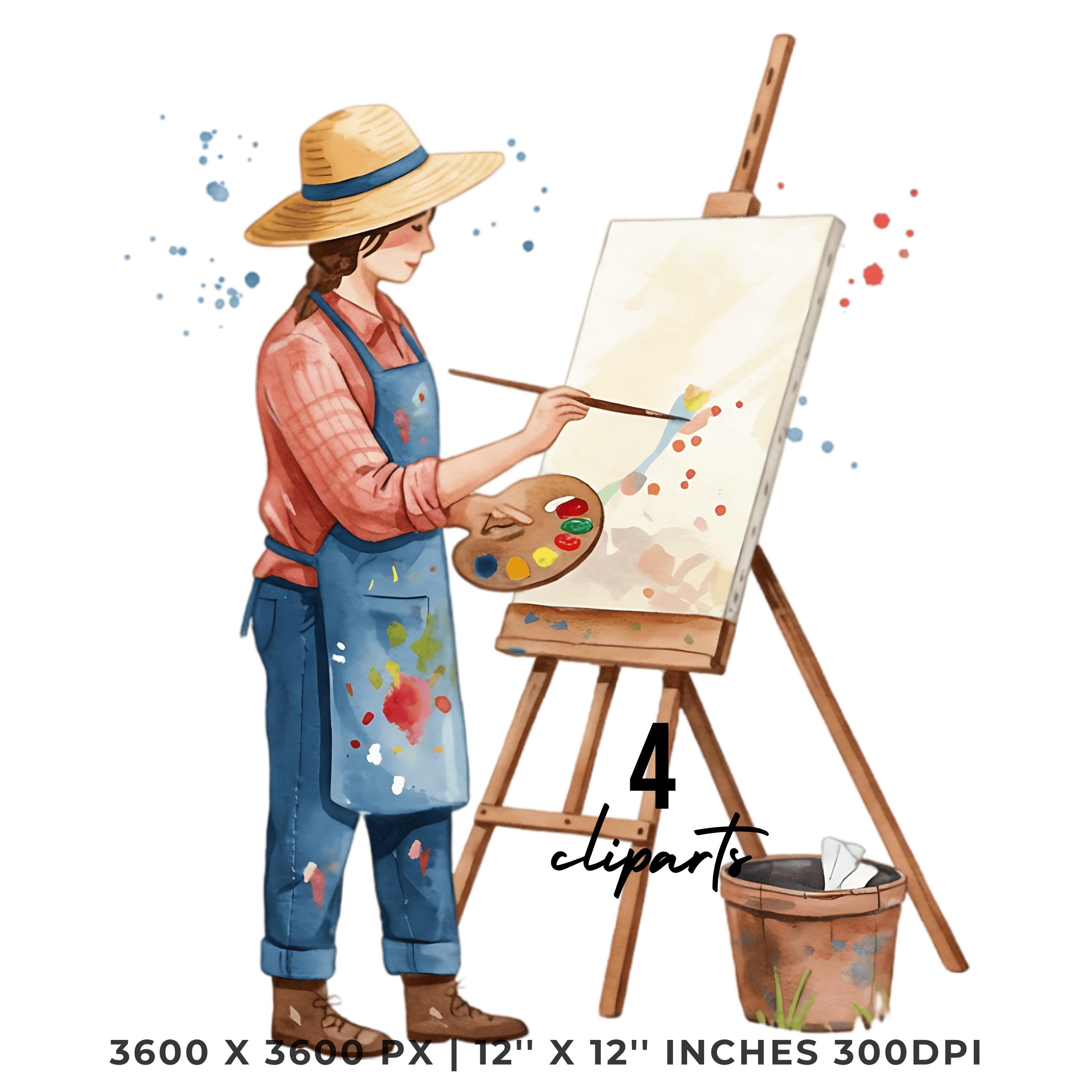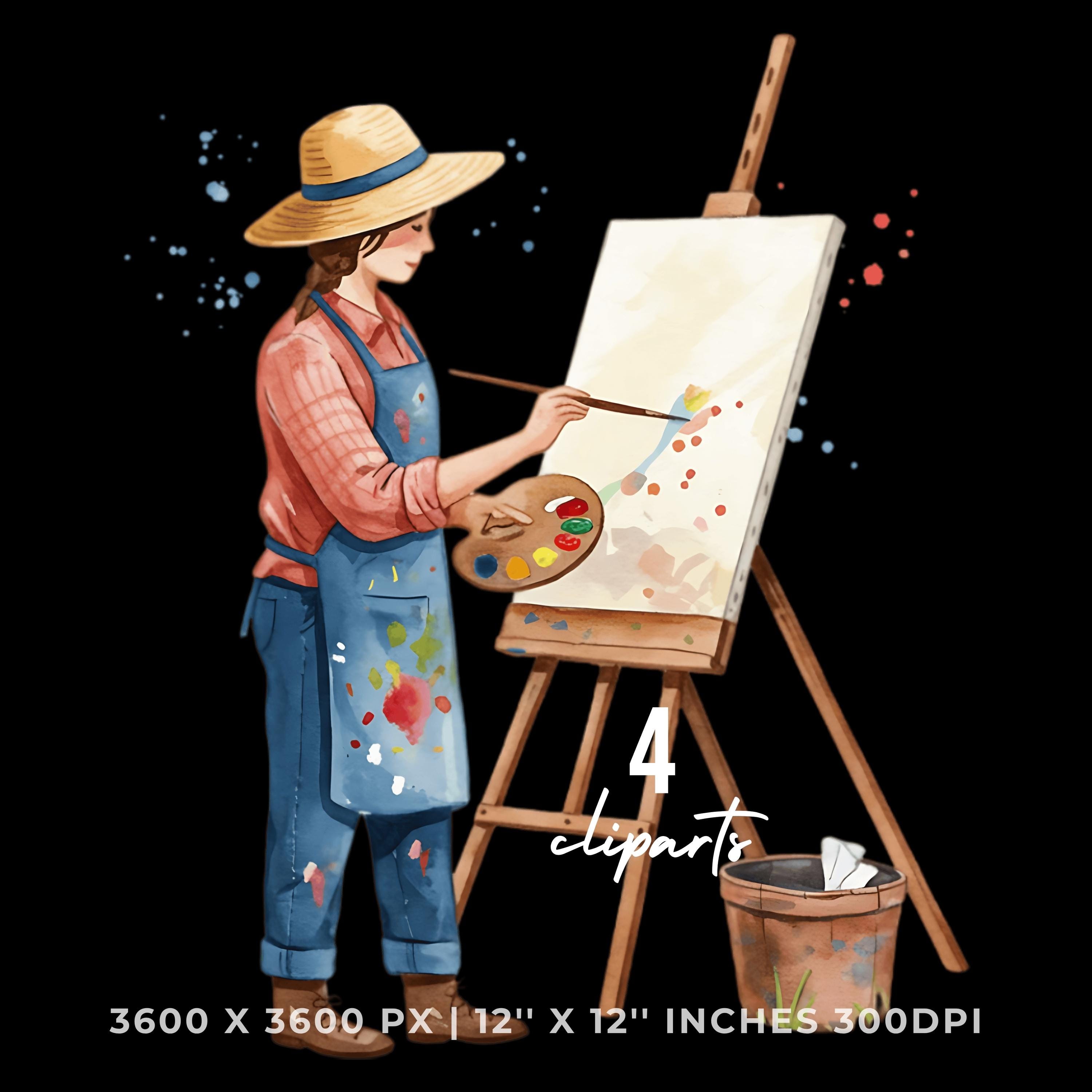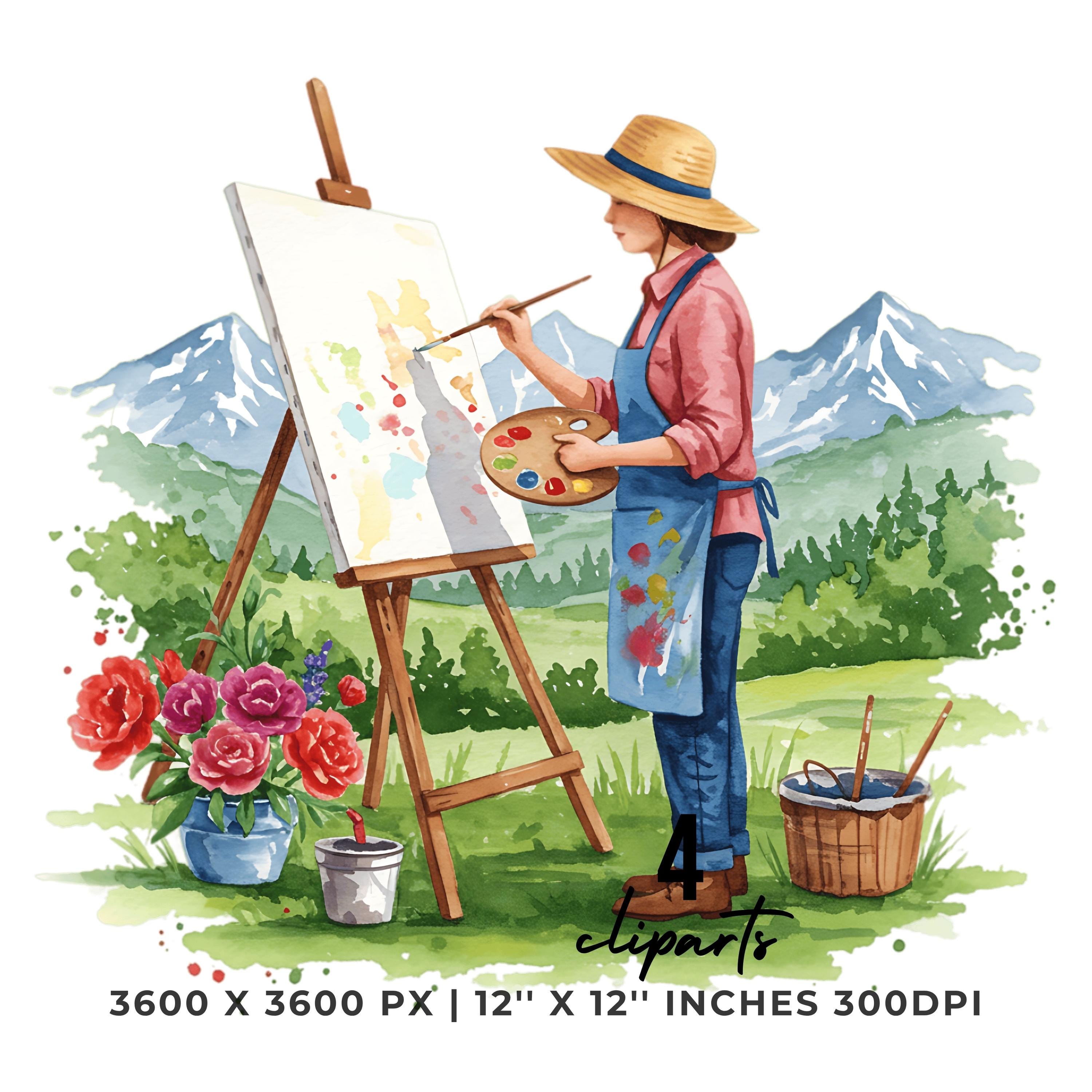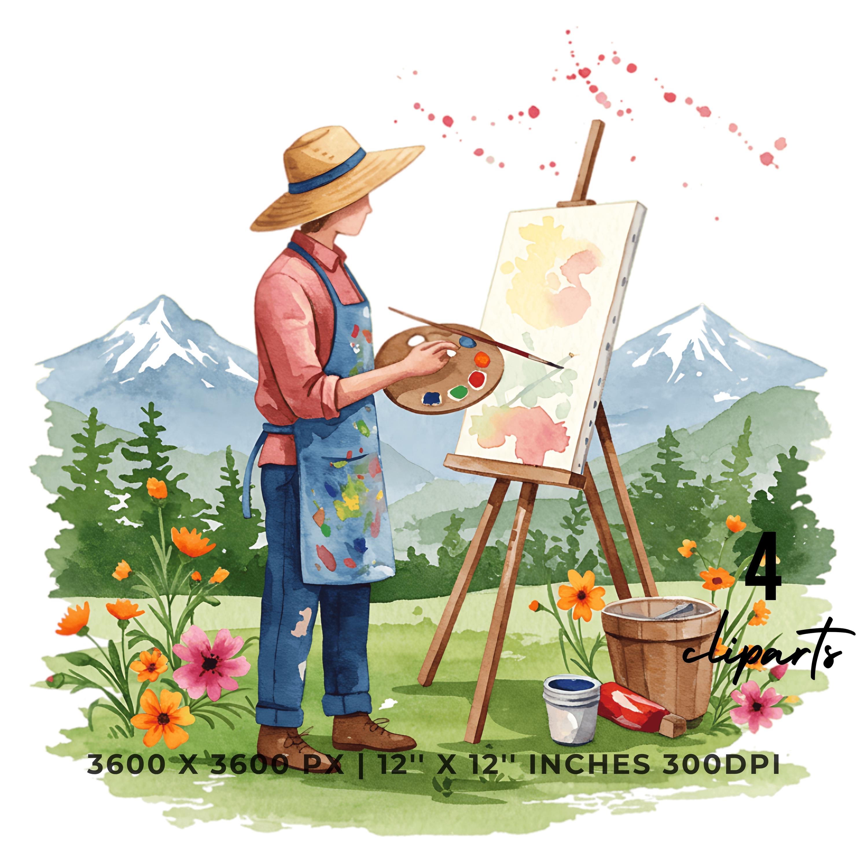 Painter in Straw Hat Clipart | Artist Outdoors | Sublimation Art Scene | 4 PNG & 4 JPG | Sublimation Design | 12″x12″ 300DPI Graphic Commercial Use