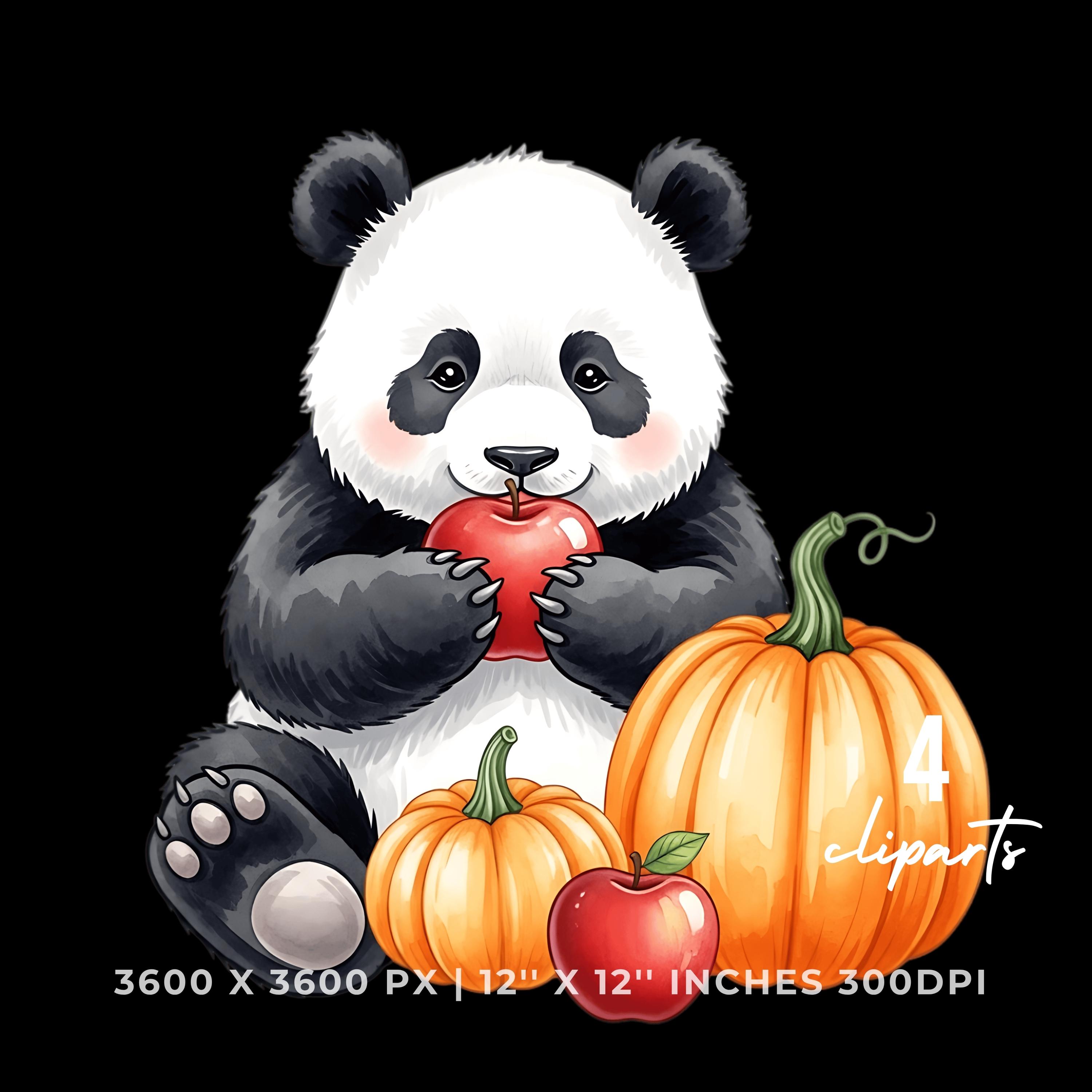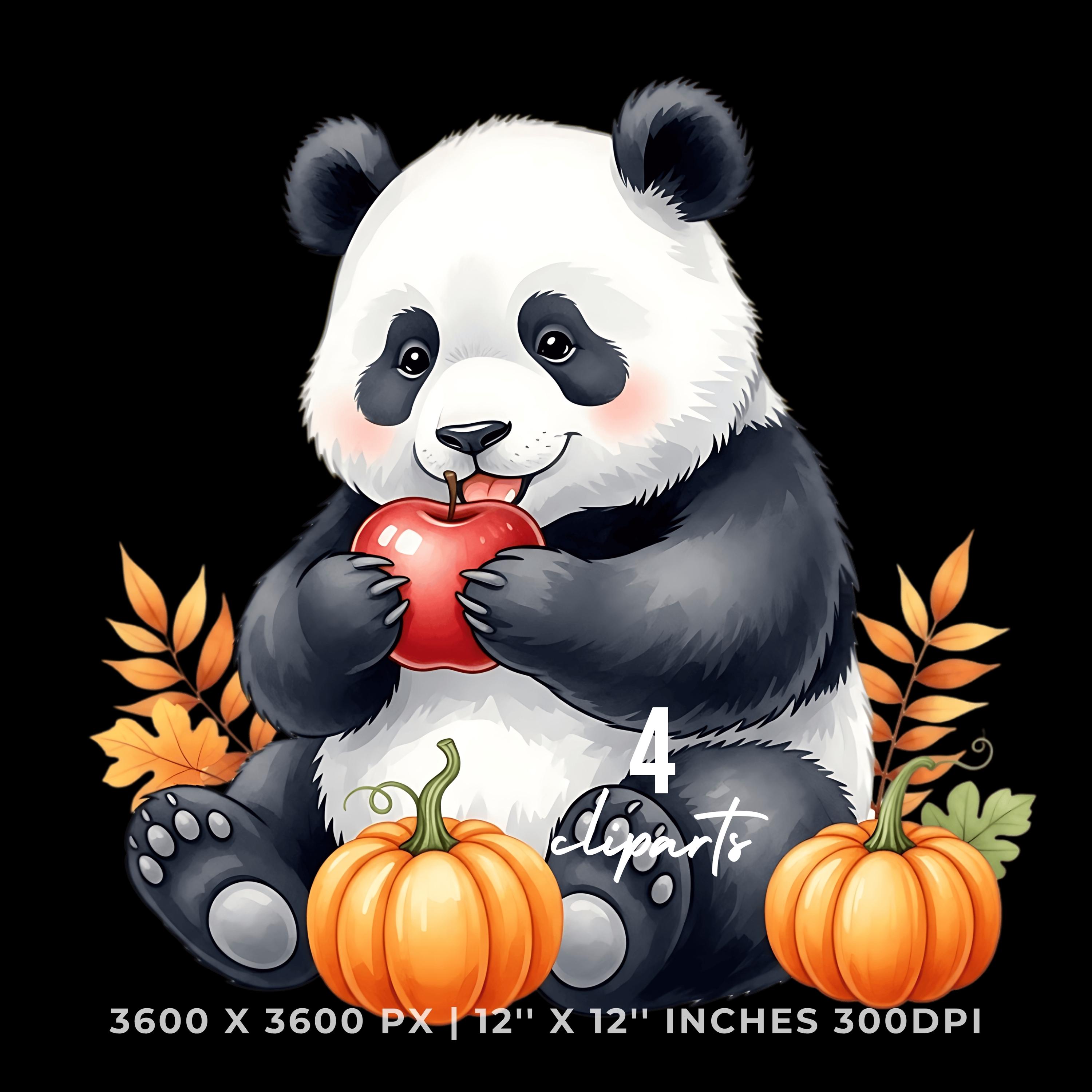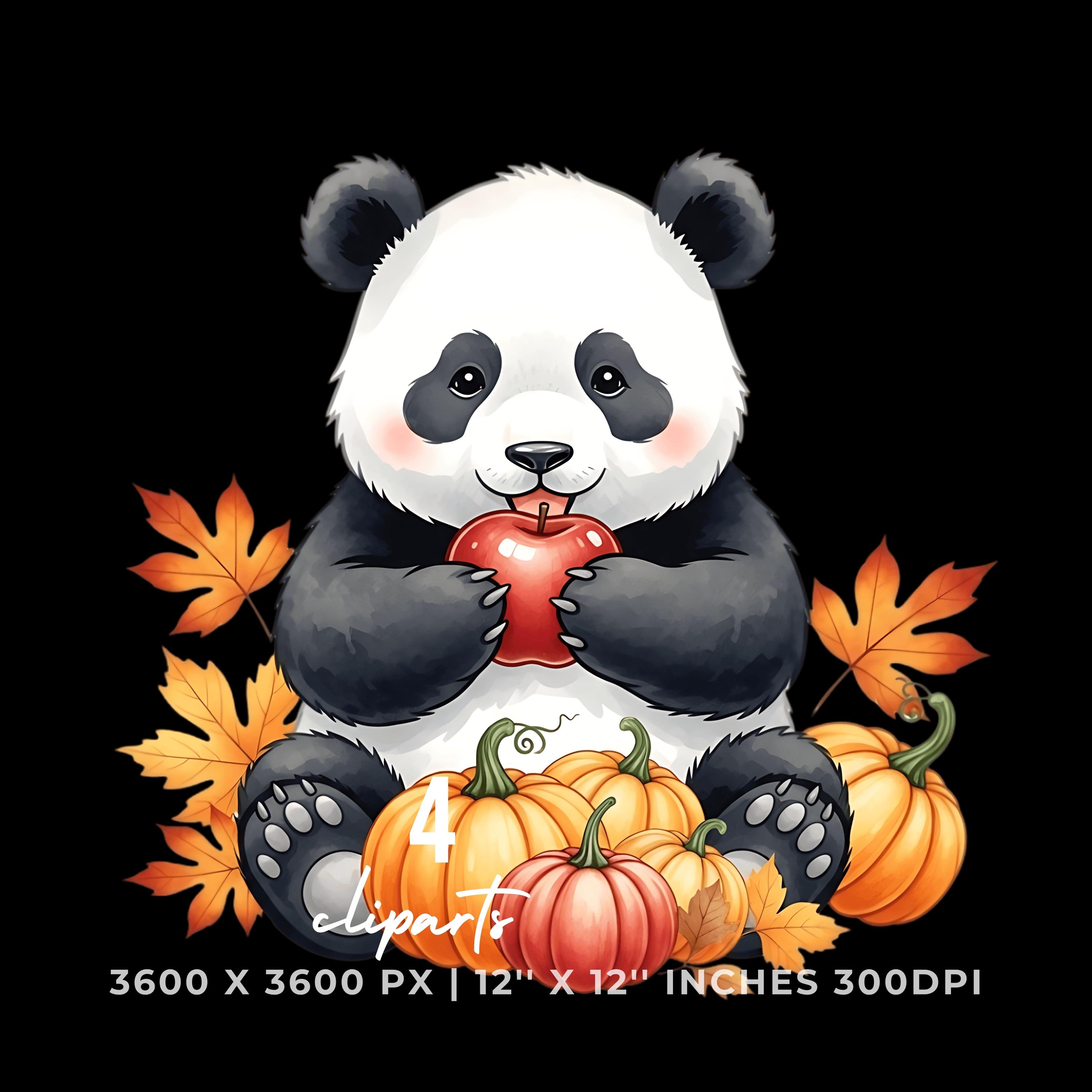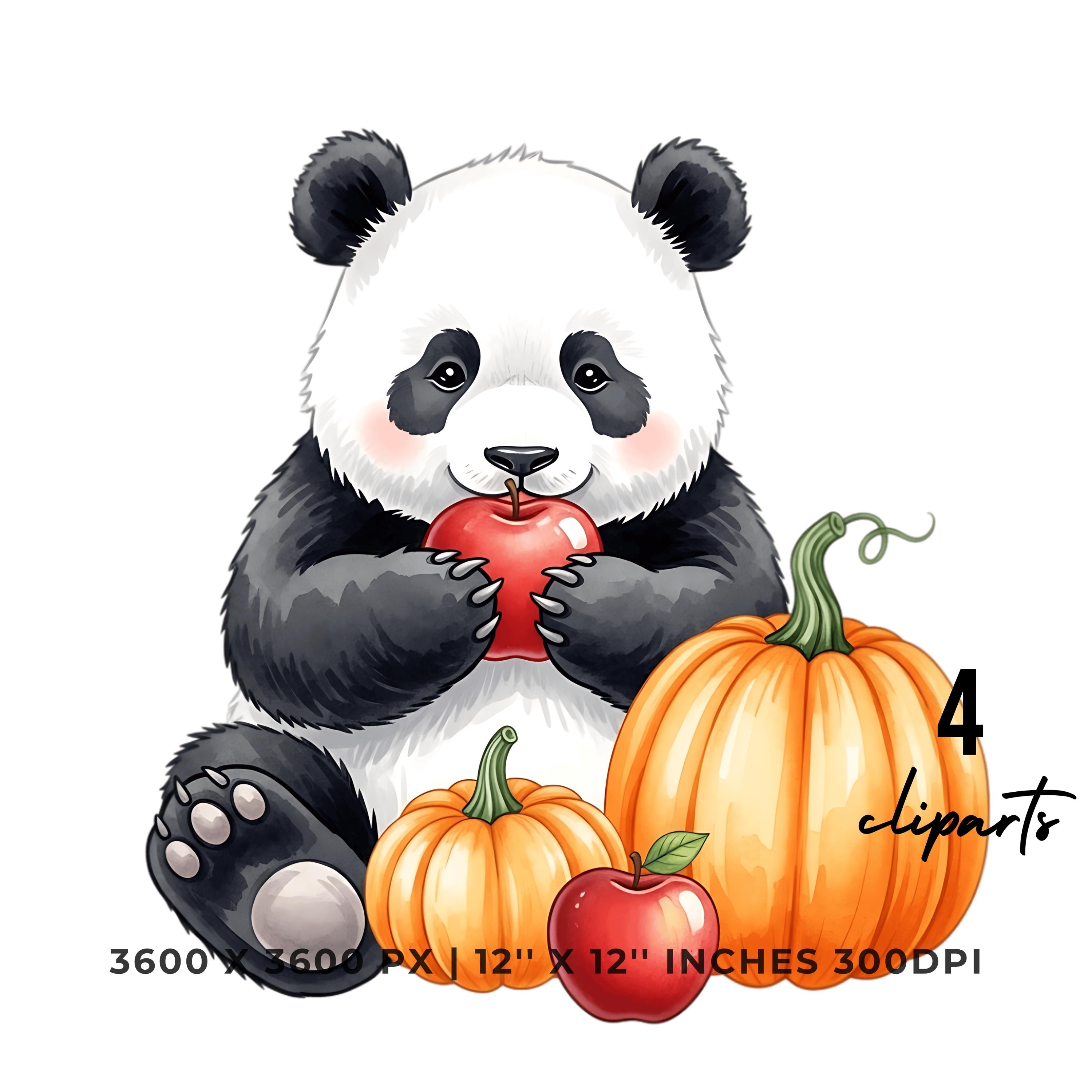 Panda with Apple Fall Pumpkin Clipart | 4 PNG & 4 JPG | Sublimation Transparent Commercial Use