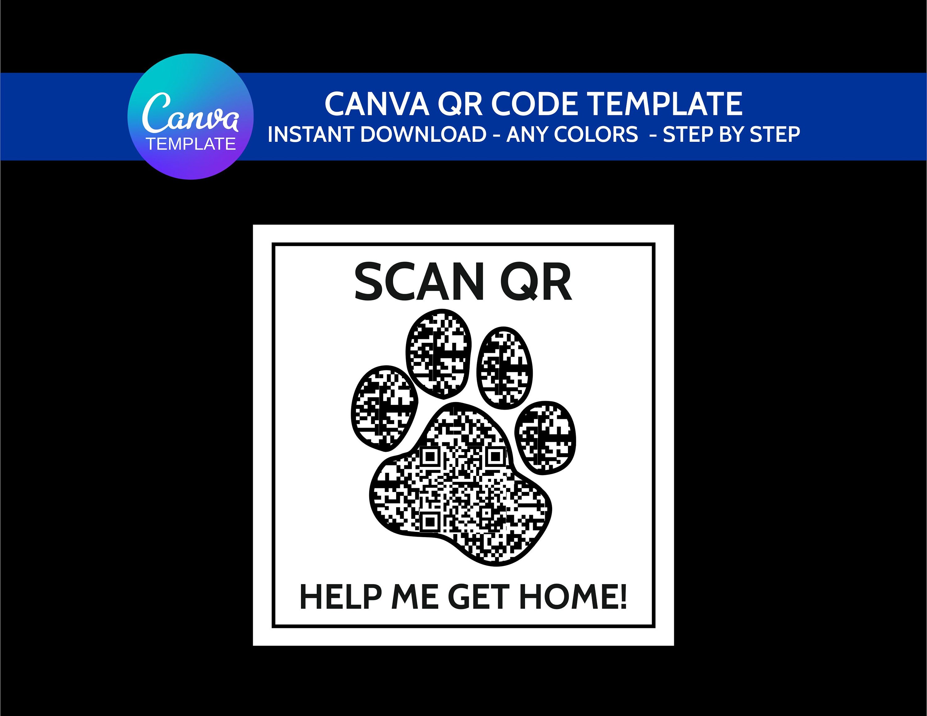 Pet QR Code Paw Dog Tags Canva Template for Pets Dog ID Tag / Custom Dog Tags and Cat Tag Canva Template / Personalized QR Code Commercial Use / All Colors / Canva QR Code instant download (PNG, JPG, PDF)