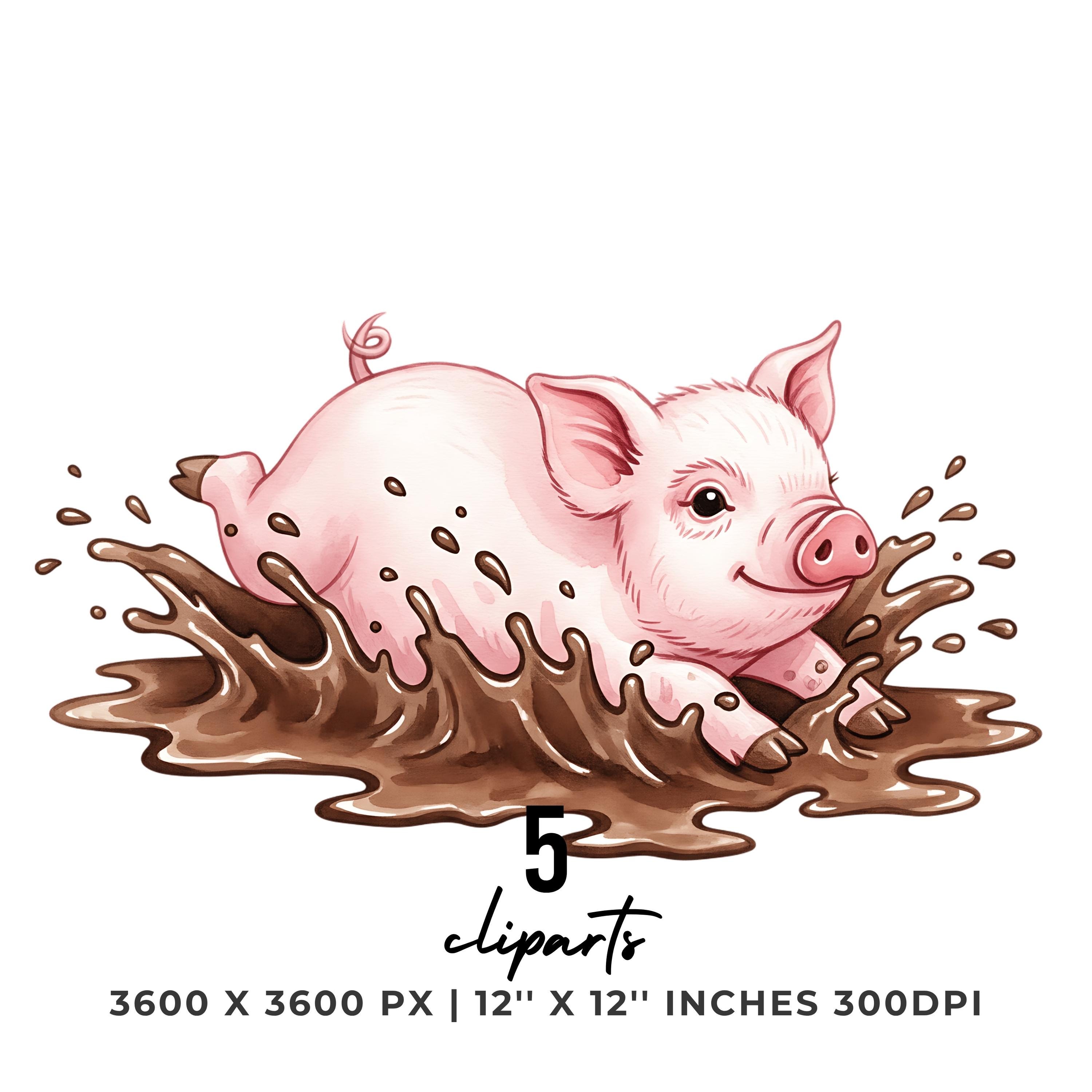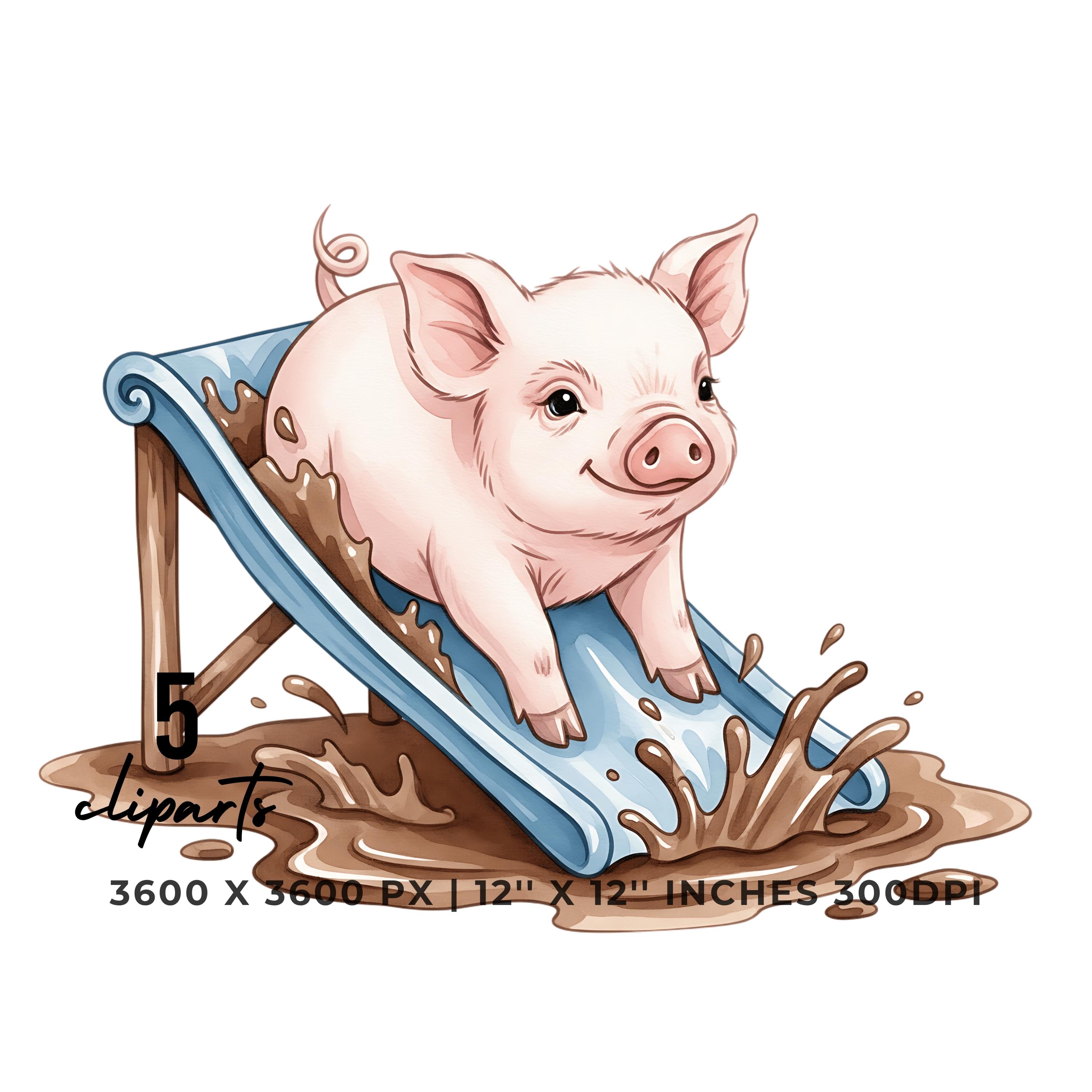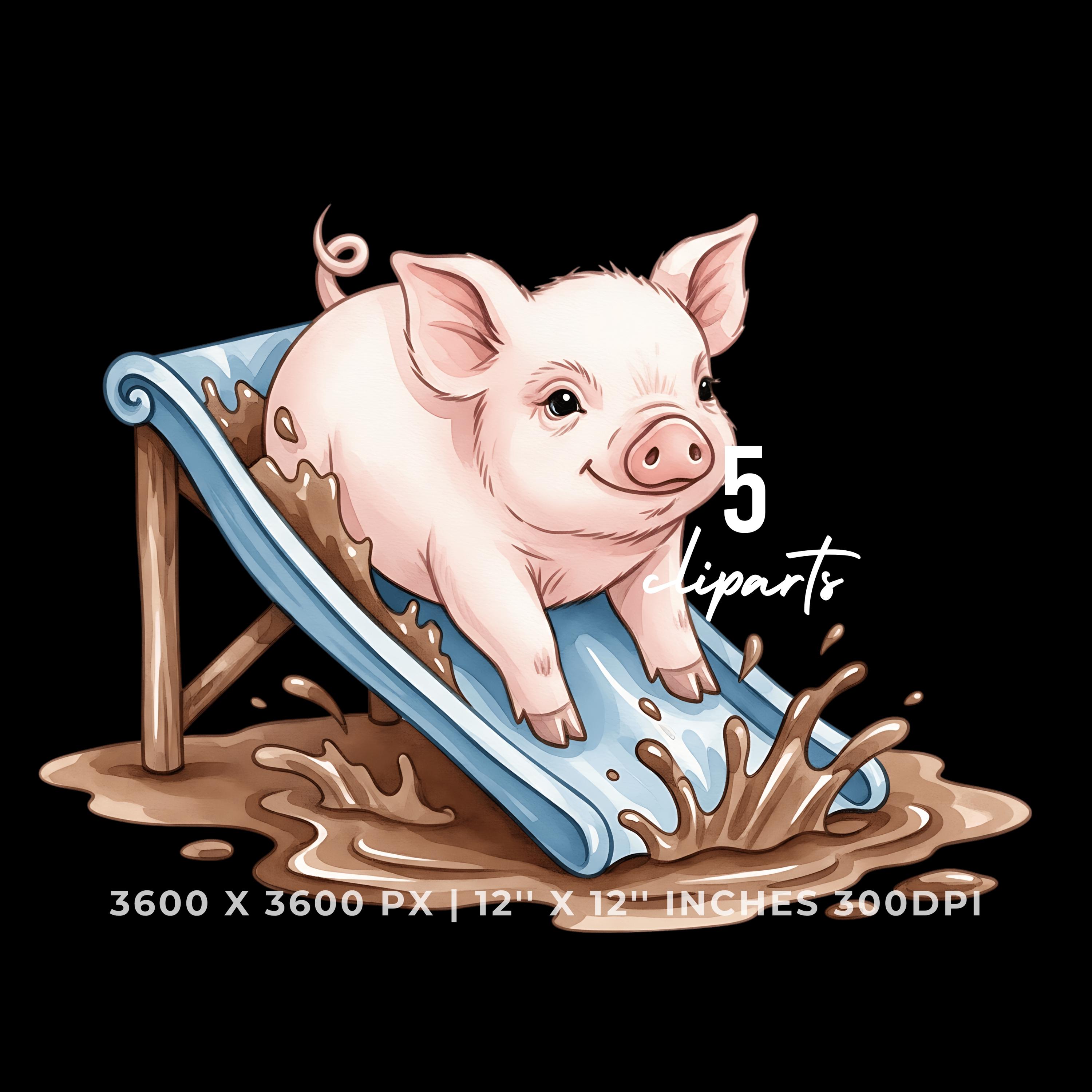 Piglet Clipart PNG | 4 Watercolor Piglet sliding in mud puddle and waterslide, splashing everywhere joyfully | Sublimation Commercial Use is an eye-catching, high-resolution digital asset designed for creators, crafters, teachers, and small business owners looking to elevate their visuals.