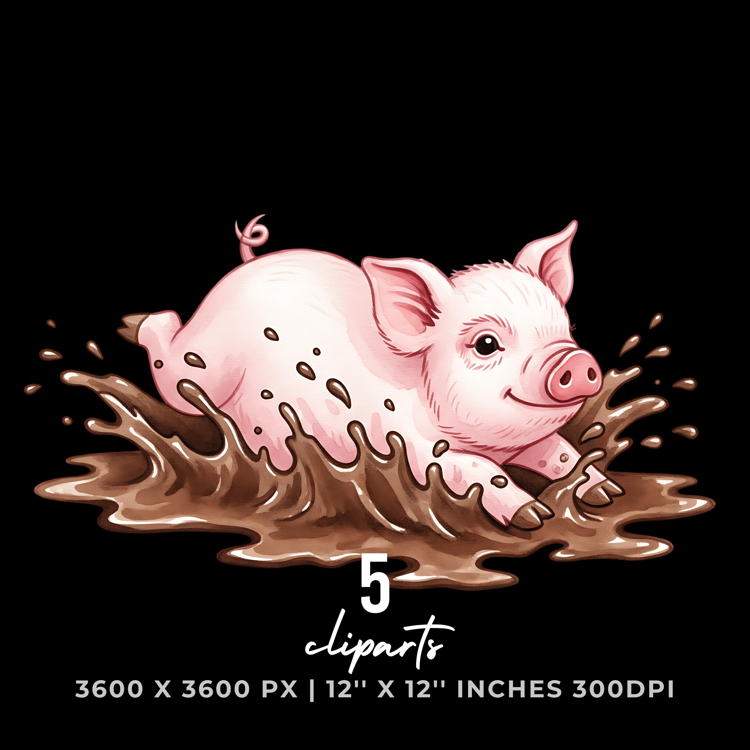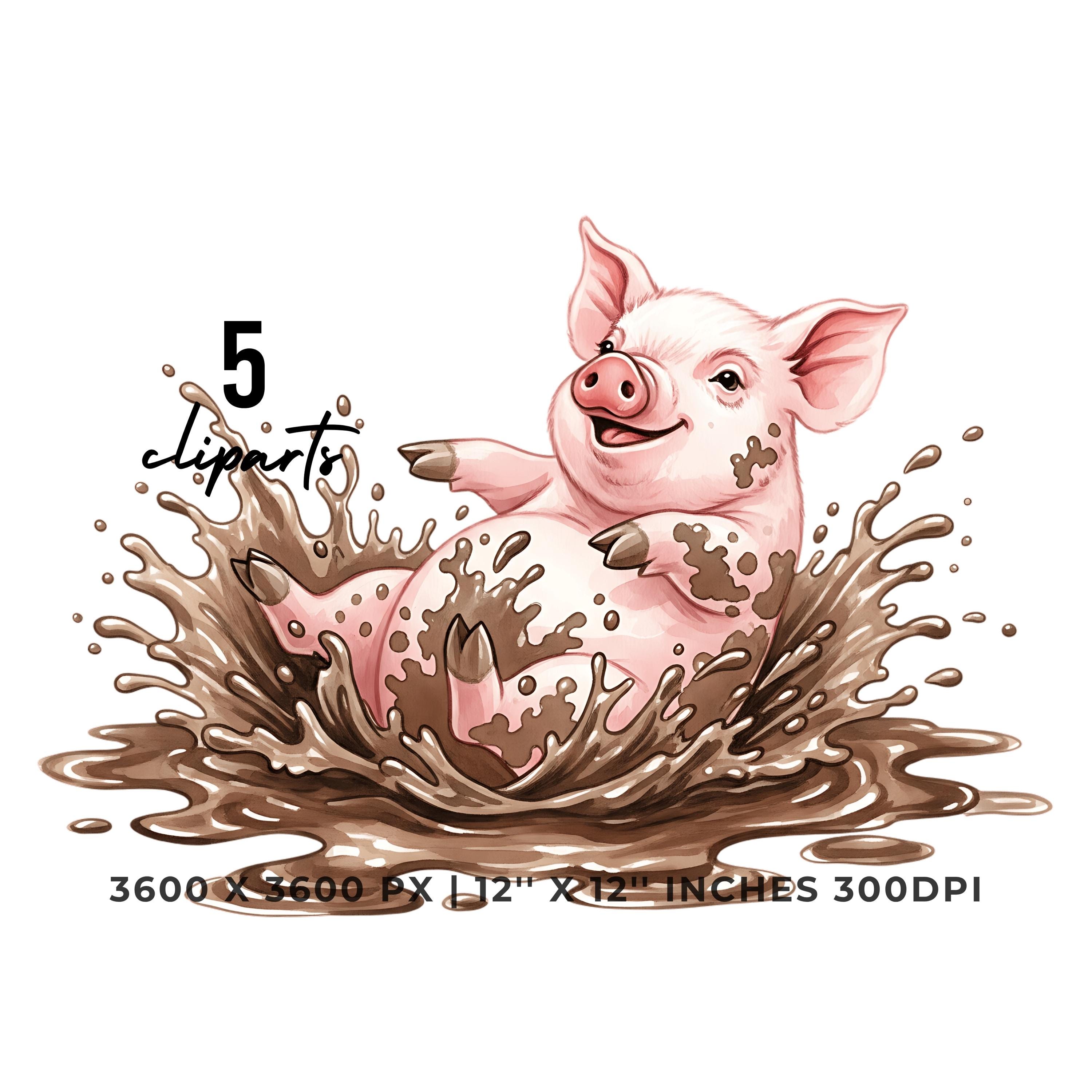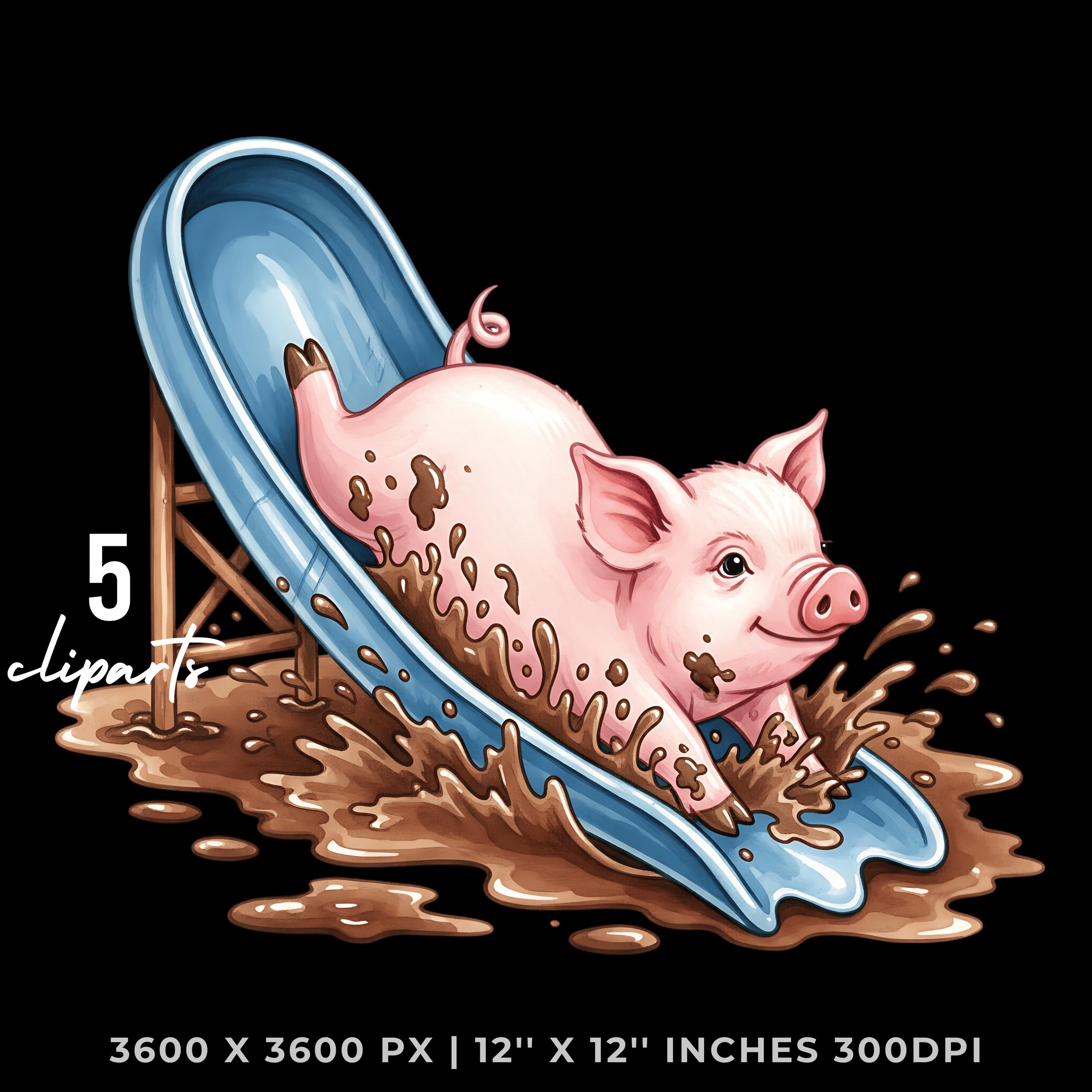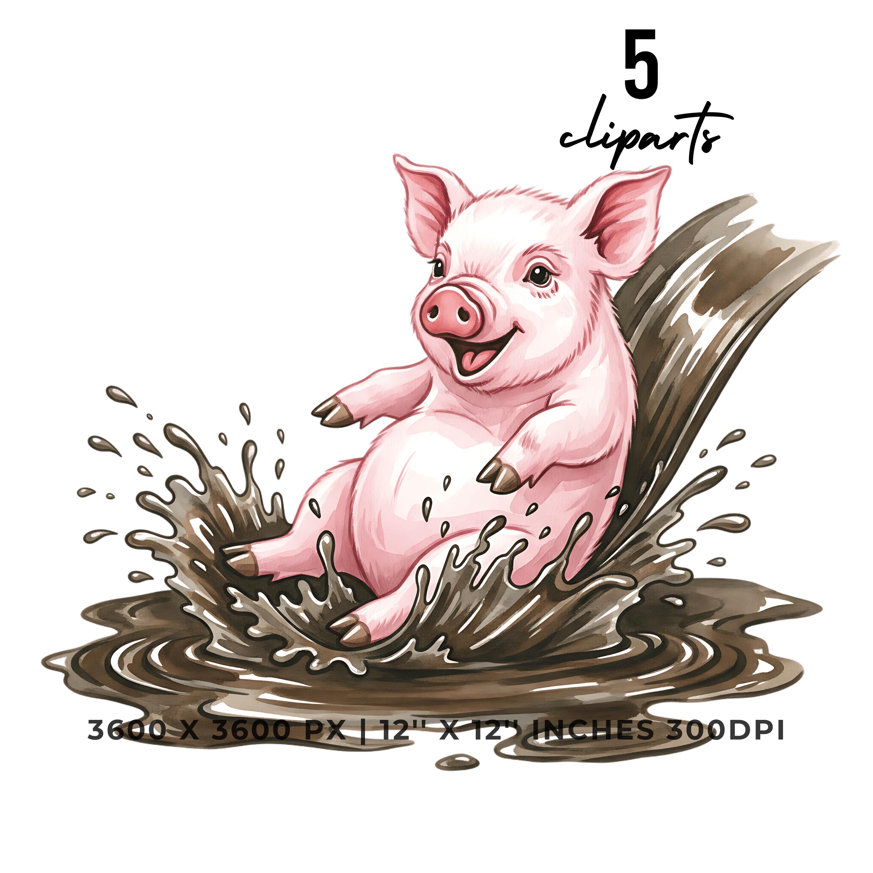 Piglet Clipart PNG | 4 Watercolor Piglet sliding in mud puddle and waterslide, splashing everywhere joyfully | Sublimation Commercial Use is an eye-catching, high-resolution digital asset designed for creators, crafters, teachers, and small business owners looking to elevate their visuals.