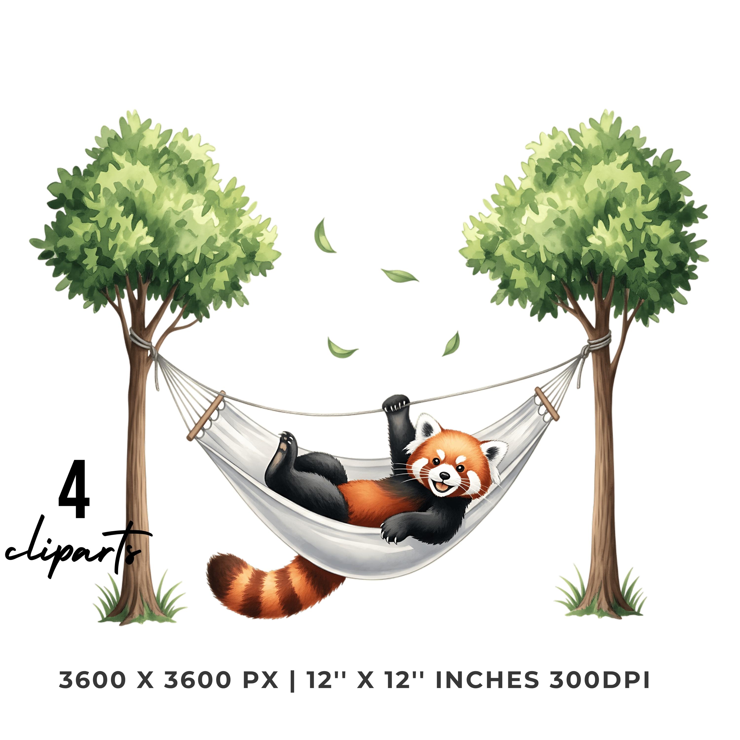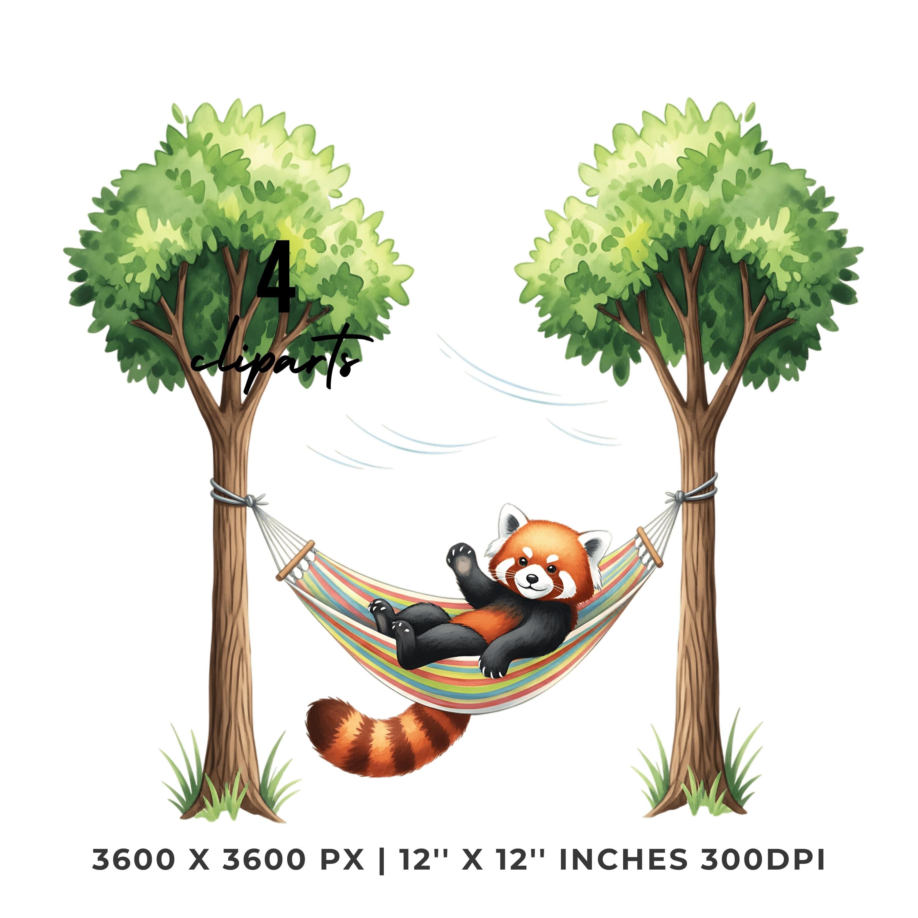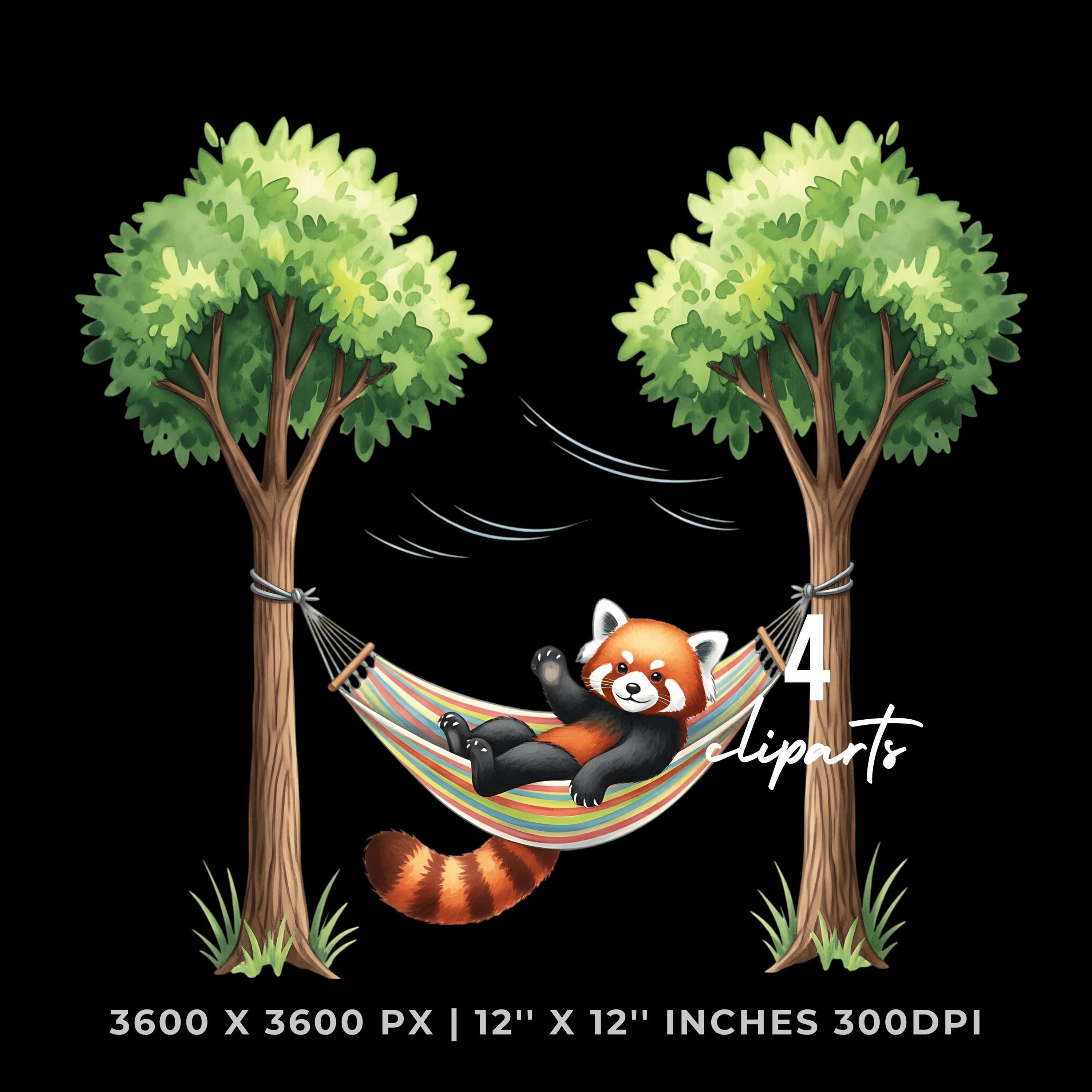Red Panda Clipart PNG | 5 Watercolor Red Panda playing in a hammock tied between two trees | Sublimation Transparent Commercial Use is an eye-catching, high-resolution digital asset designed for creators, crafters, teachers, and small business owners looking to elevate their visuals.
