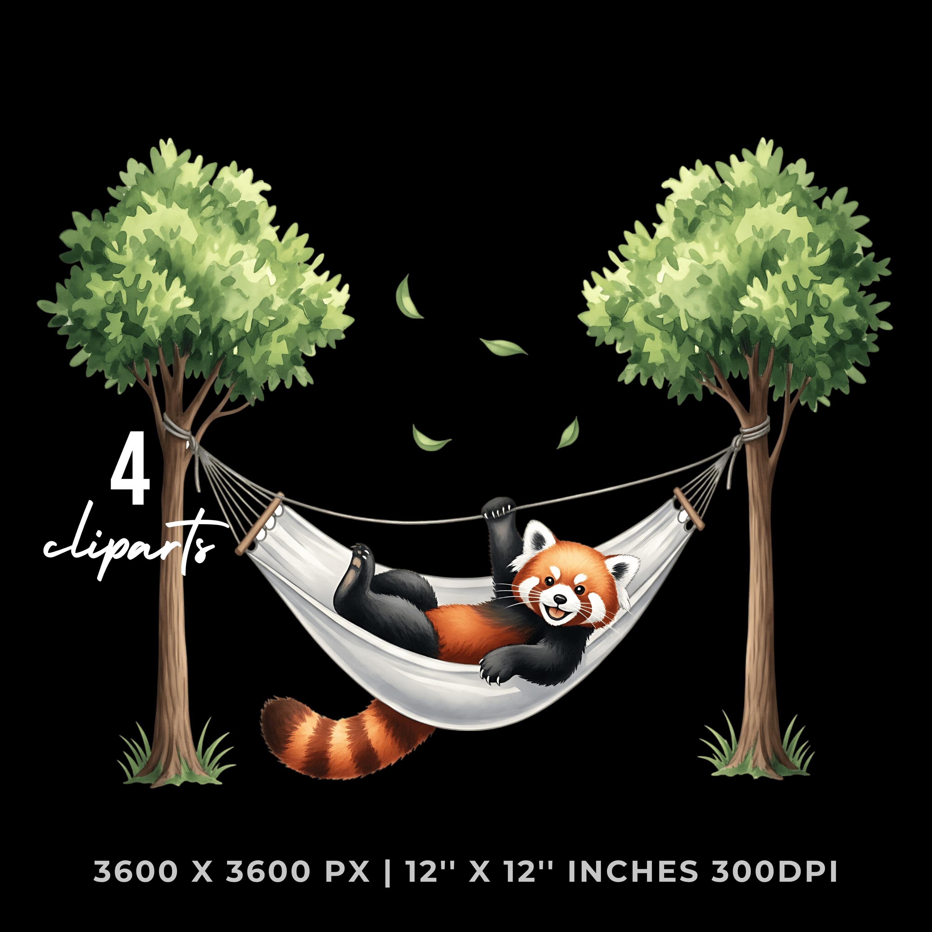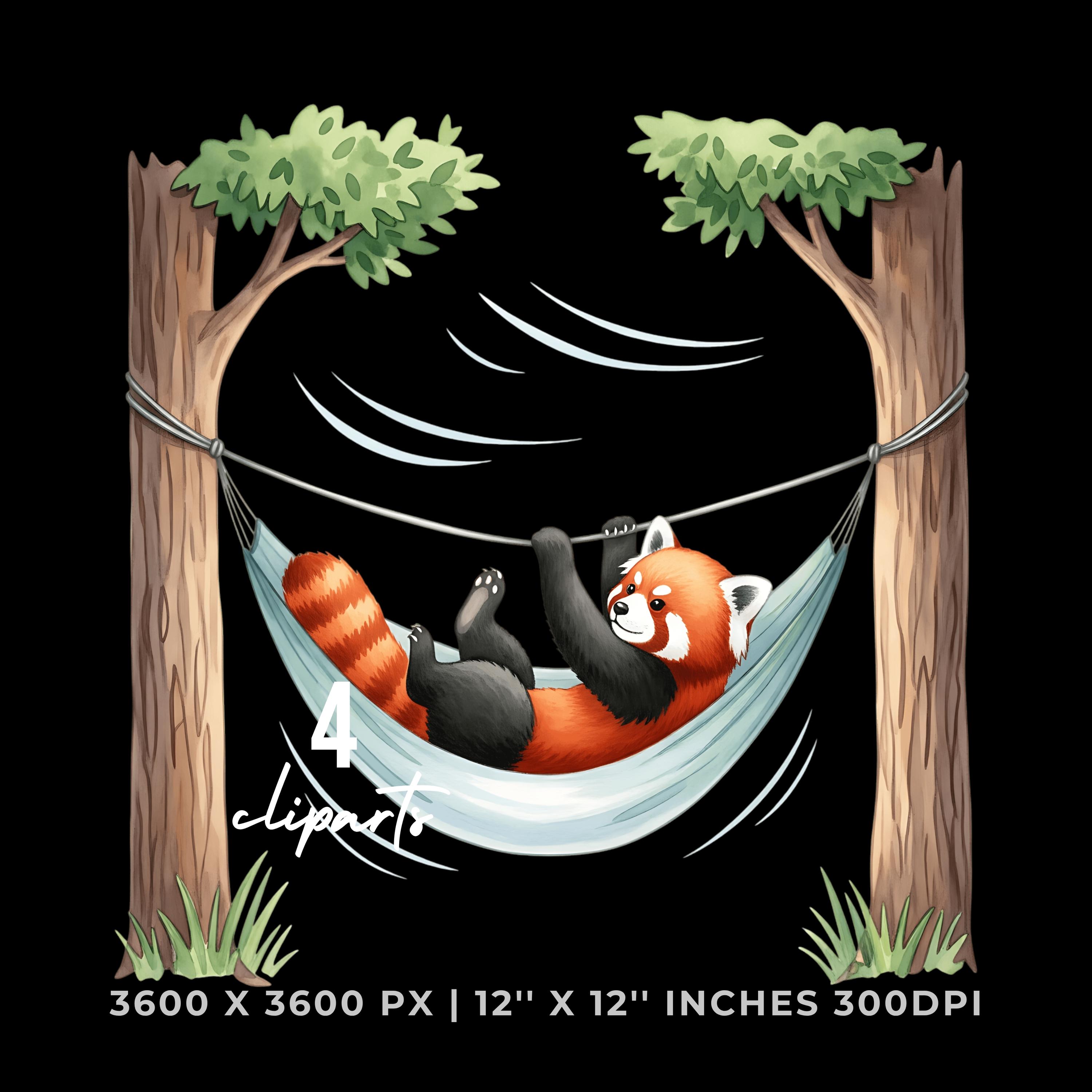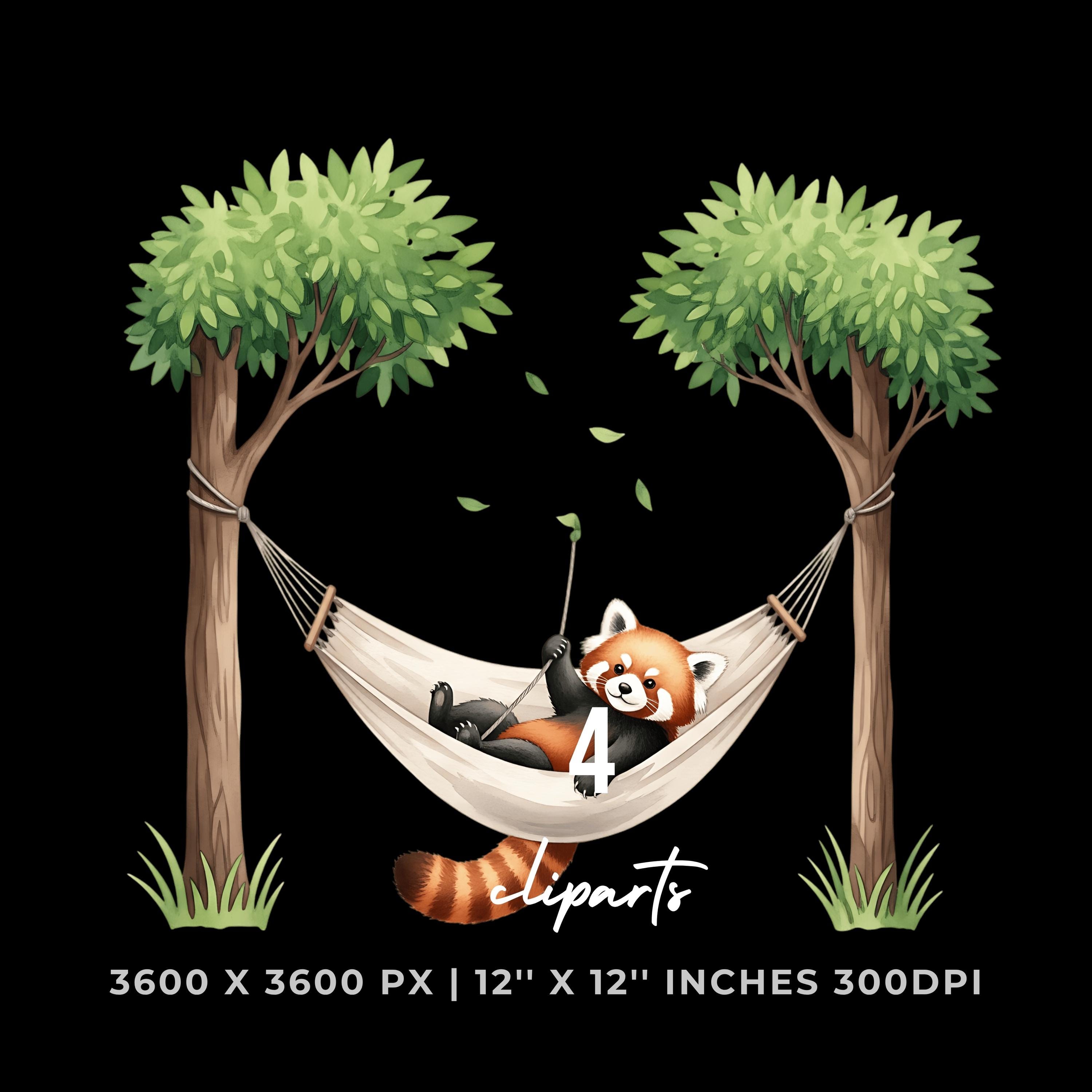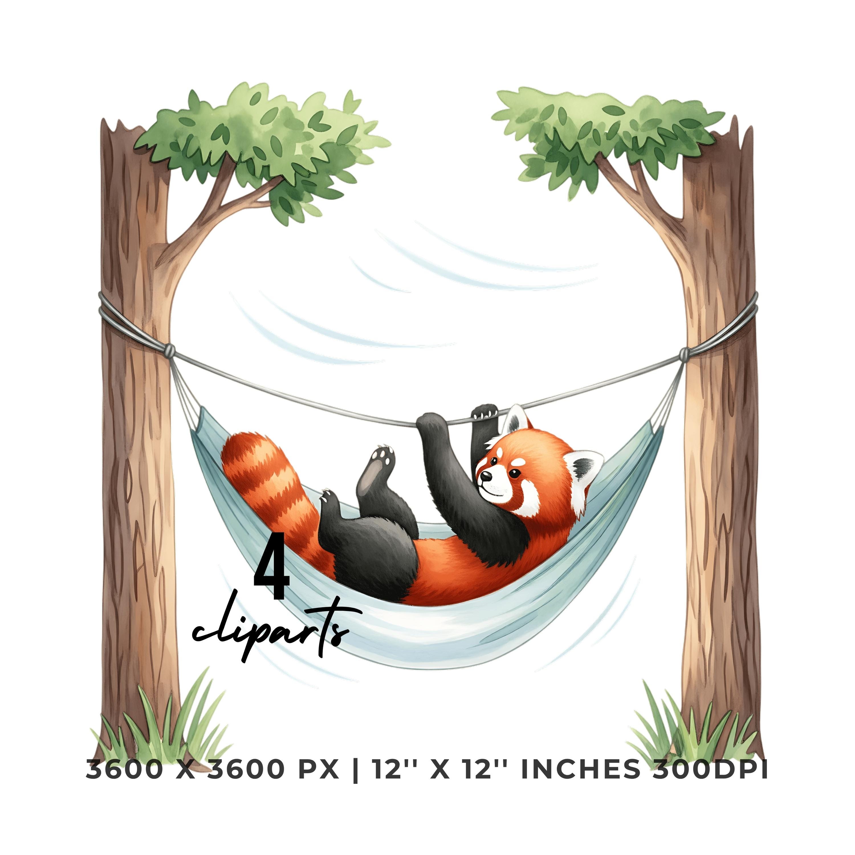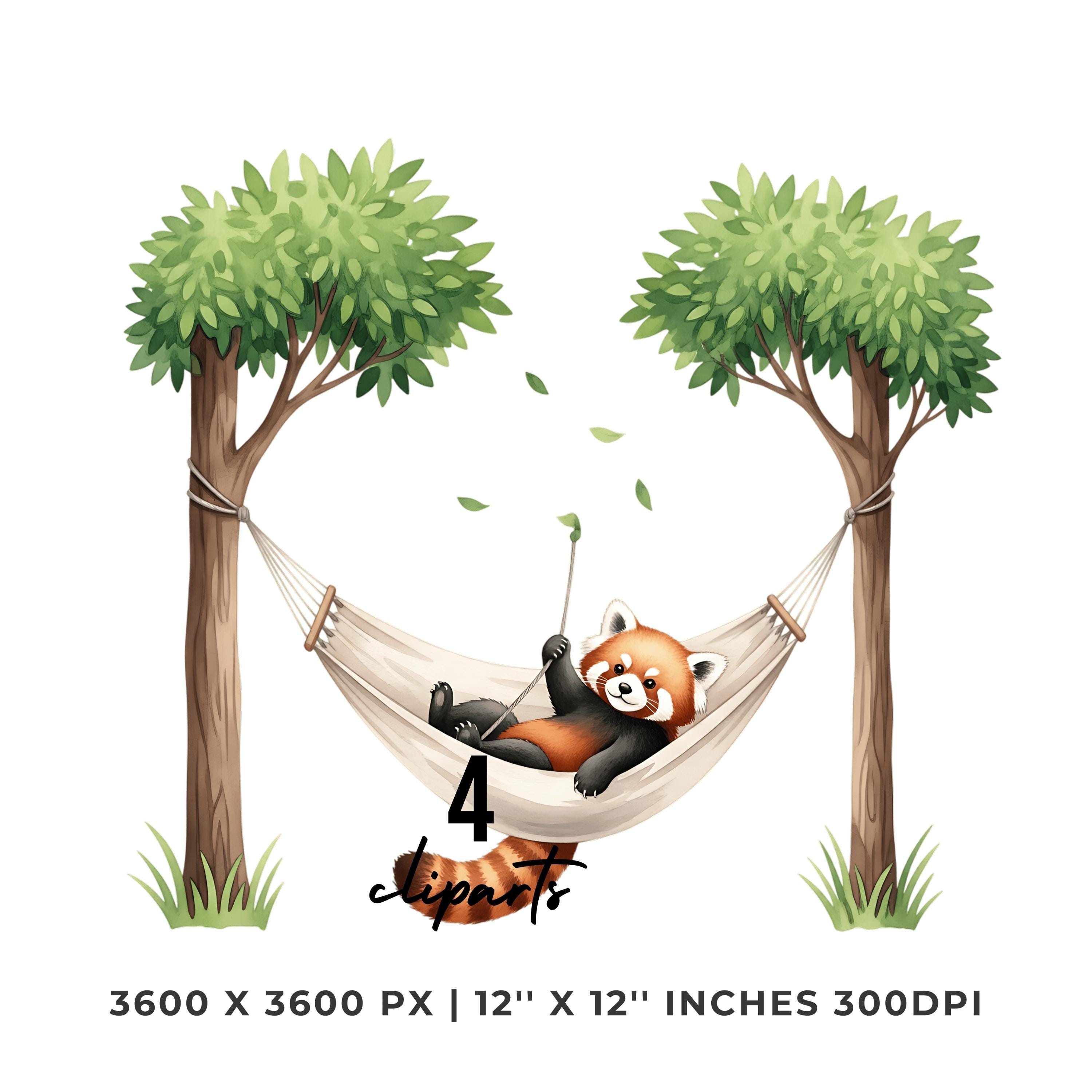Red Panda Clipart PNG | 5 Watercolor Red Panda playing in a hammock tied between two trees | Sublimation Transparent Commercial Use