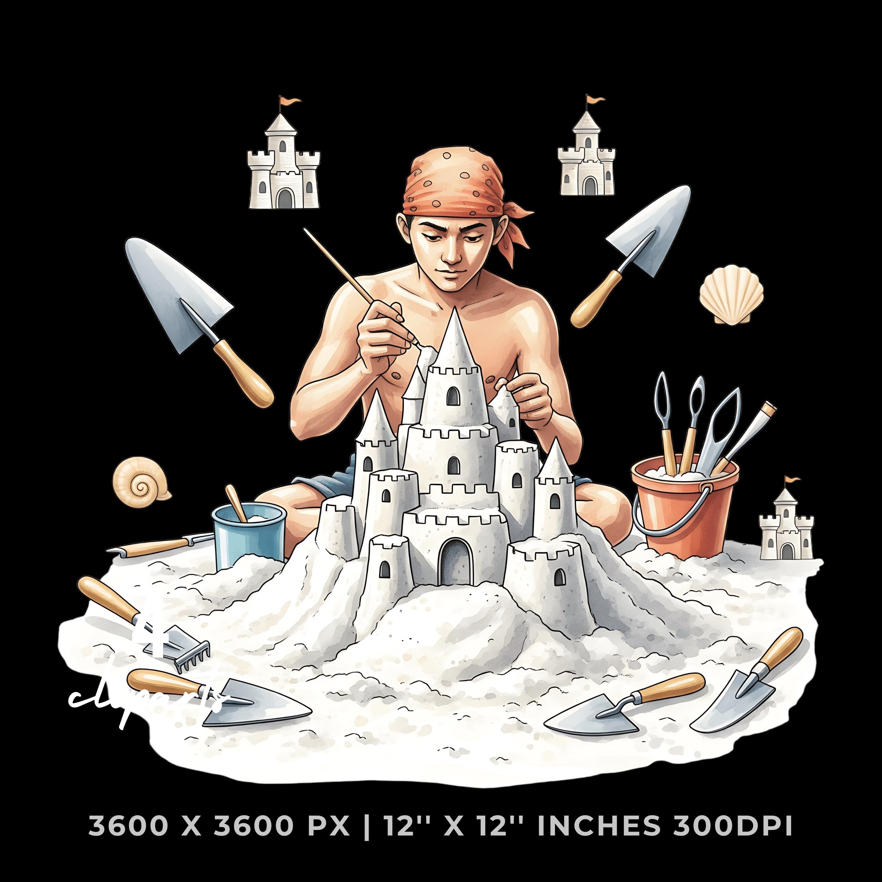 sand sculptor crafting an intricate sandcastle PNG Clipart_01-04_POST