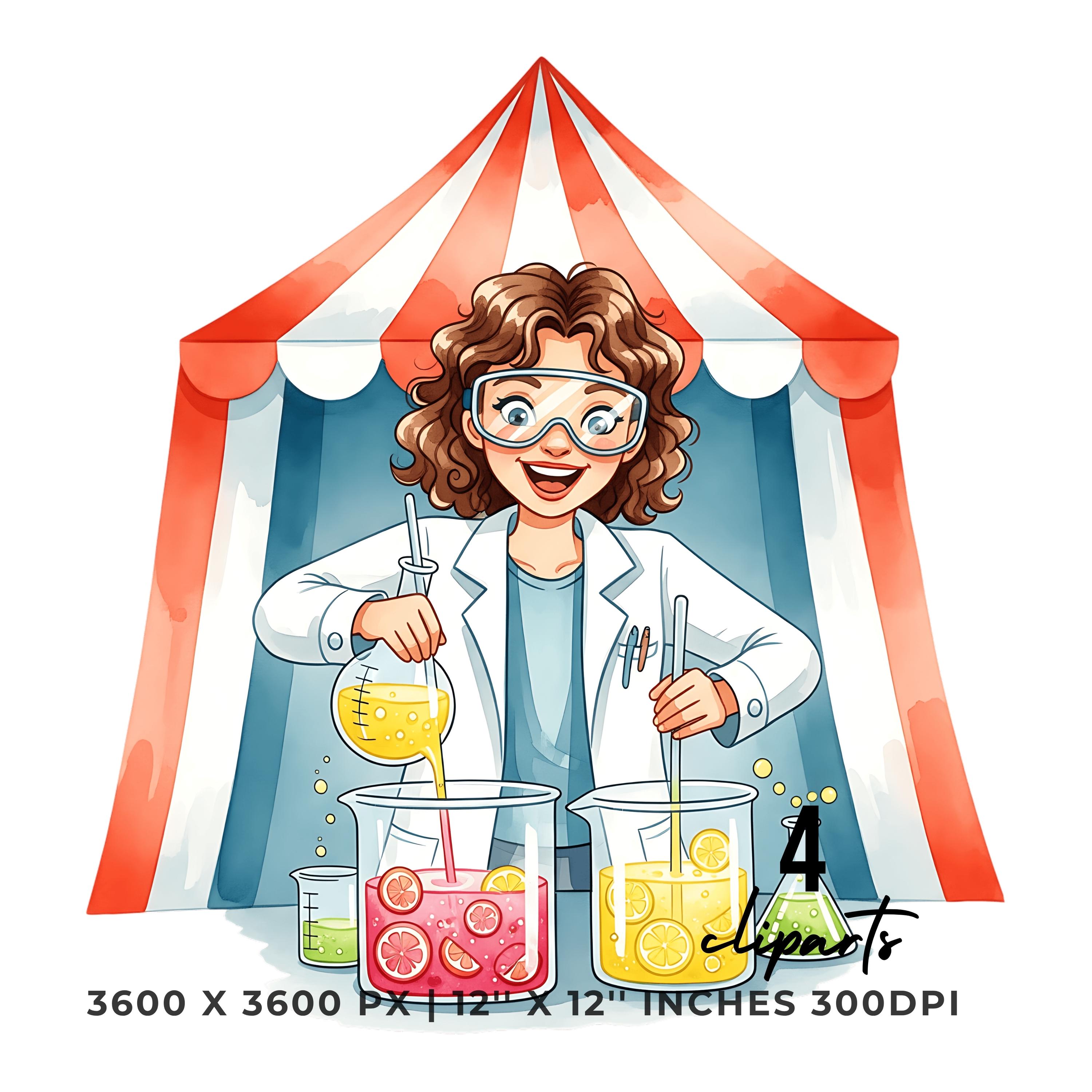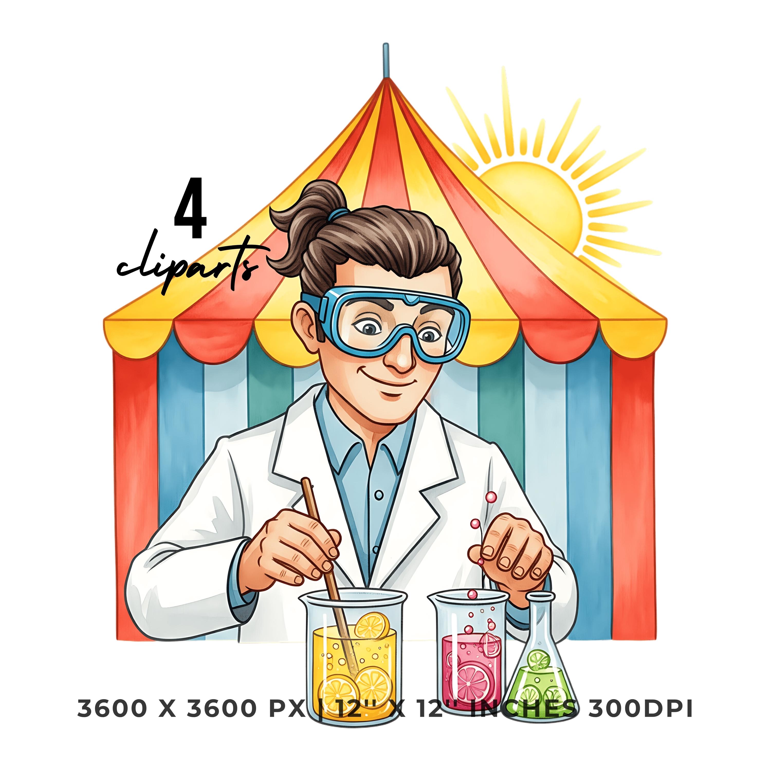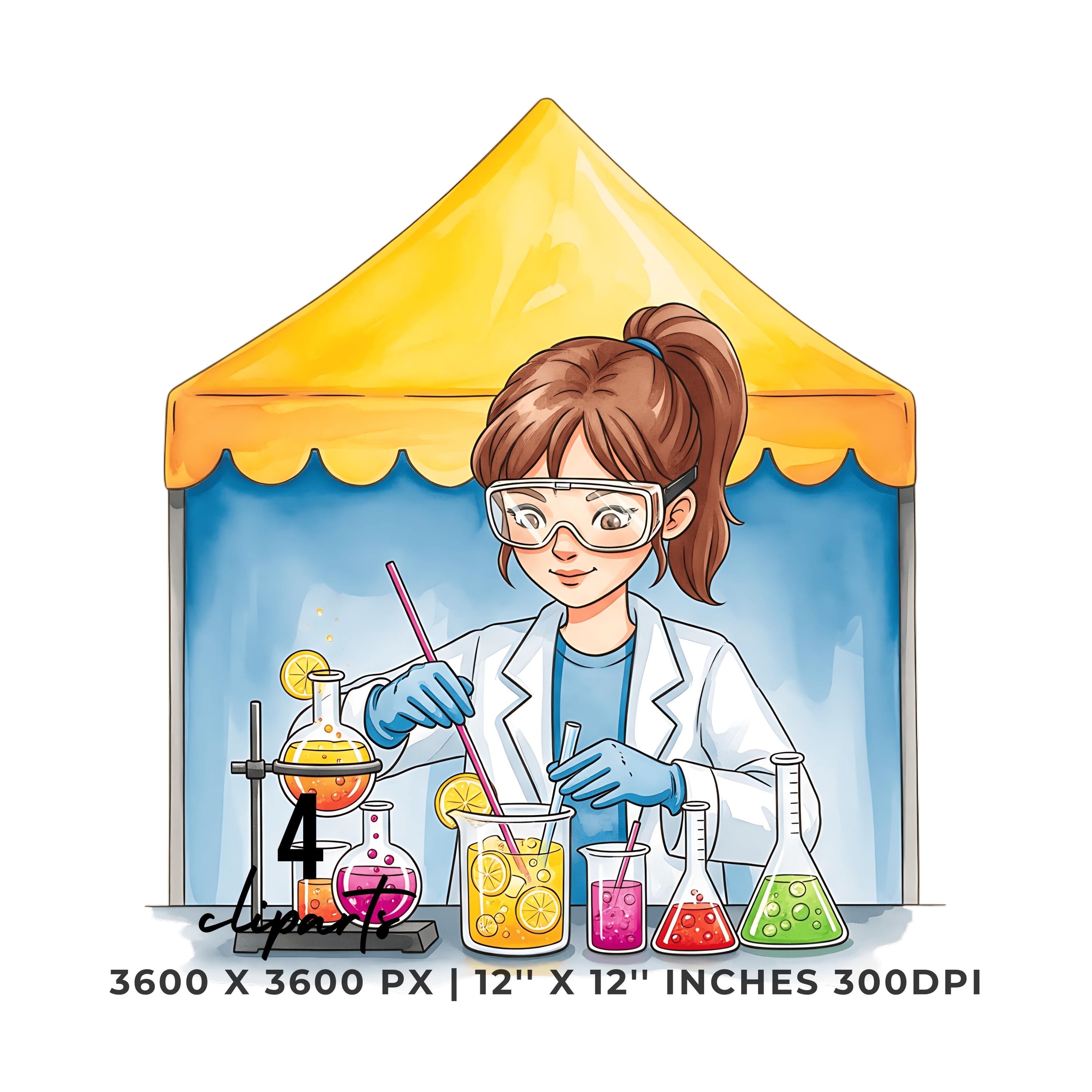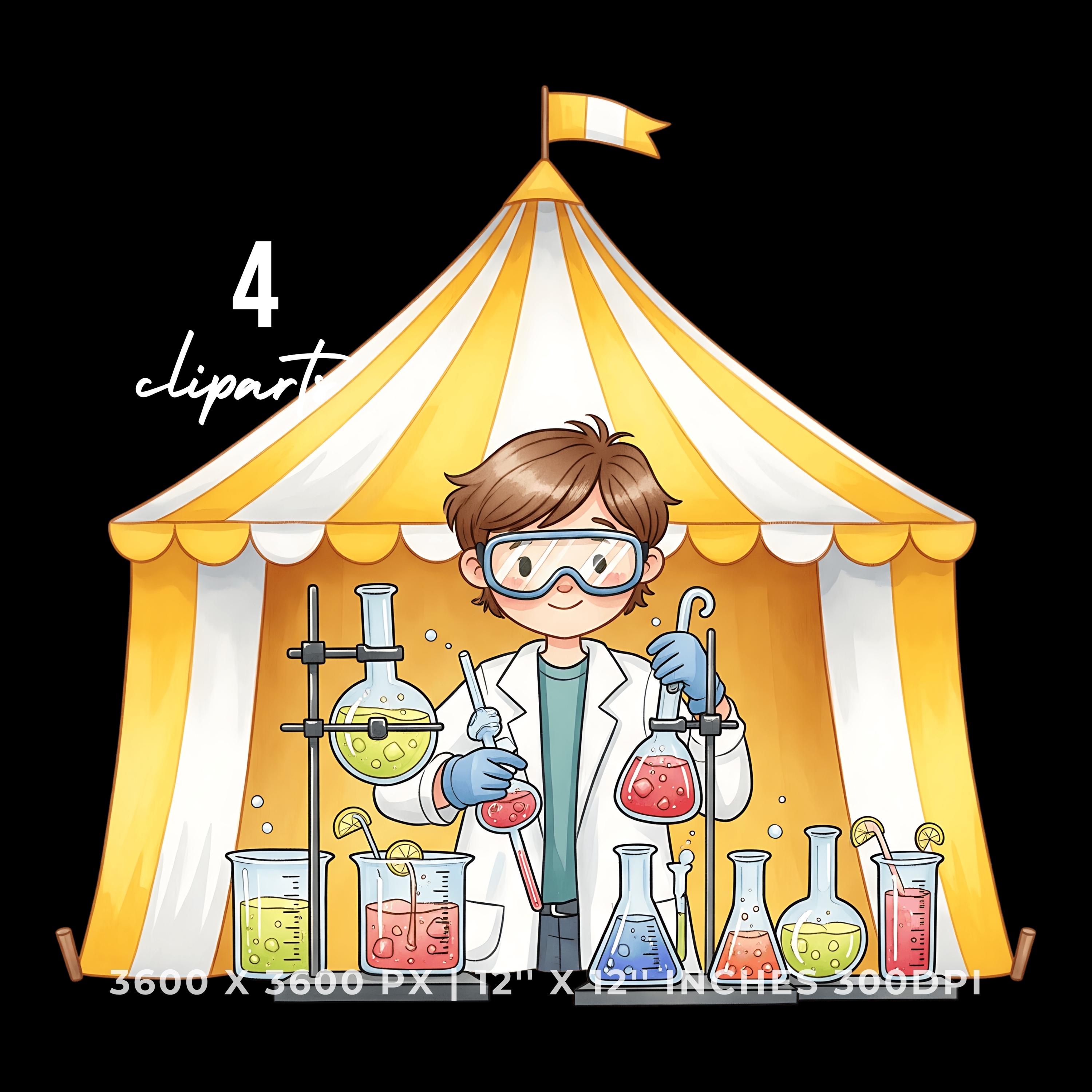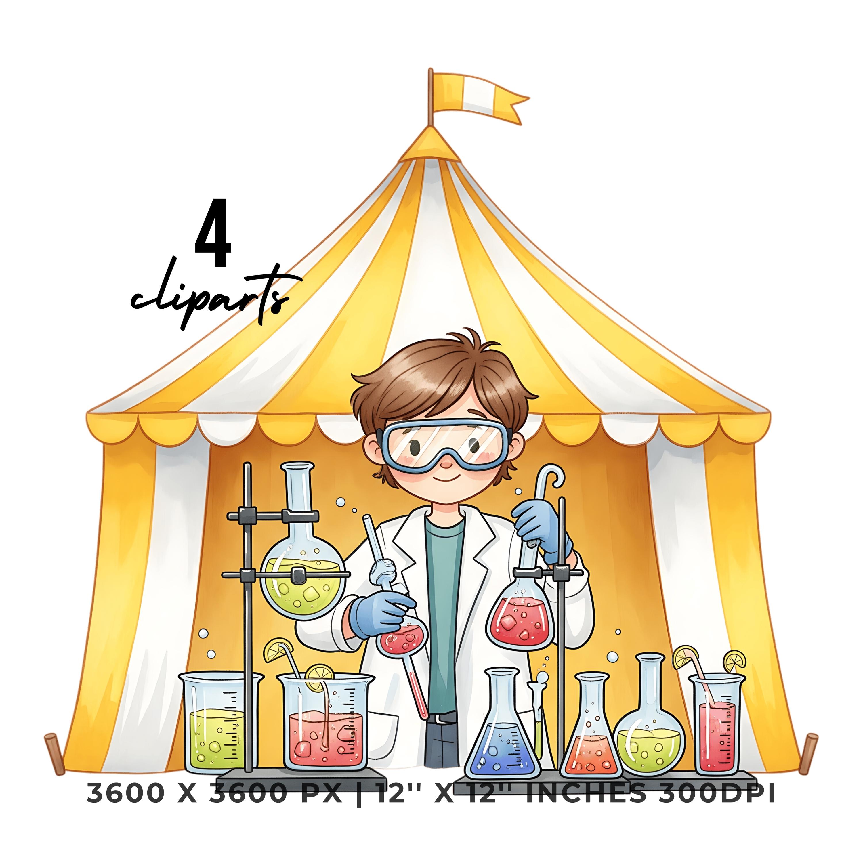 Scientist Lab Tent Clipart | Science Fair Kids Art | 4 PNG & 4 JPG | Sublimation Design | 12″x12″ 300DPI Graphic Commercial Use