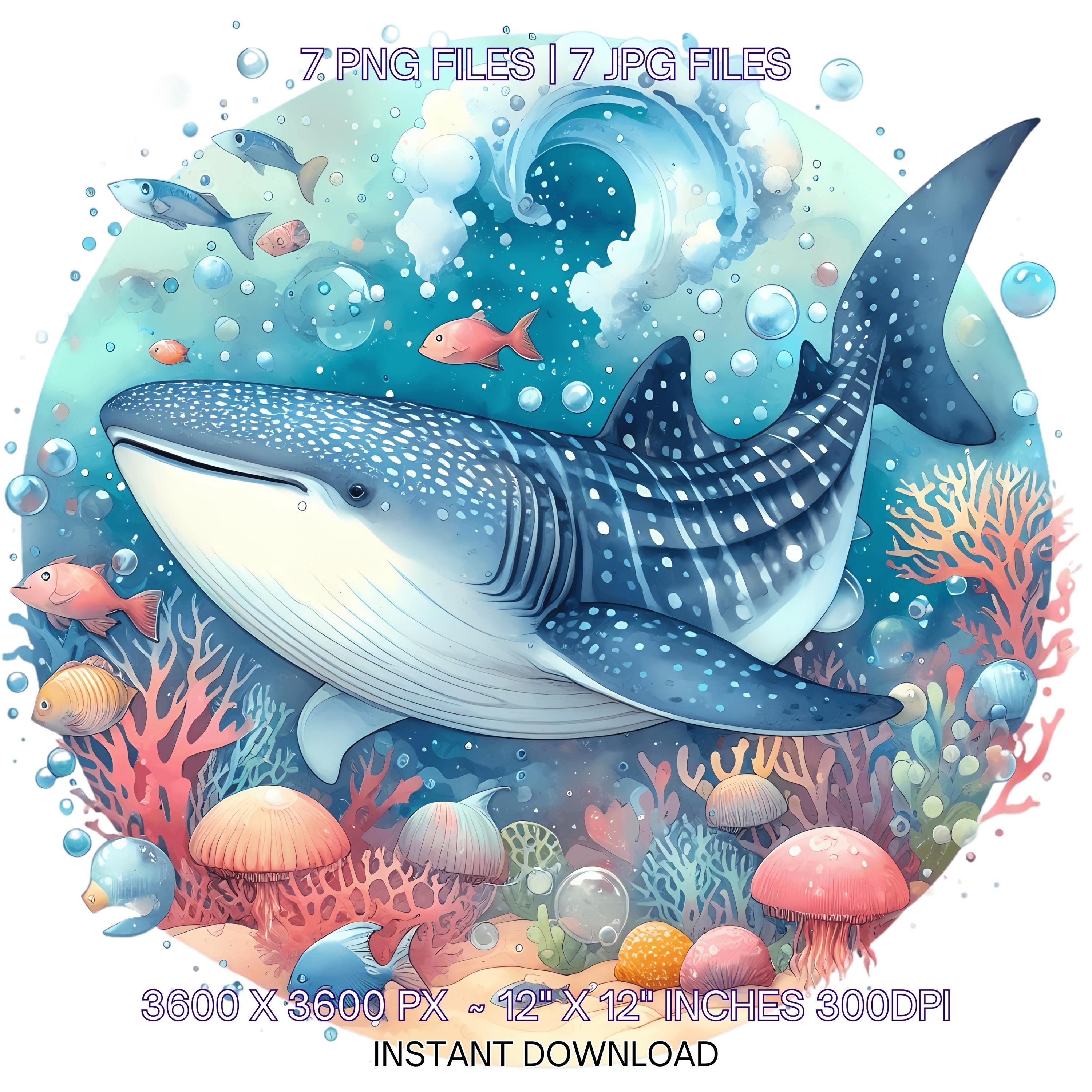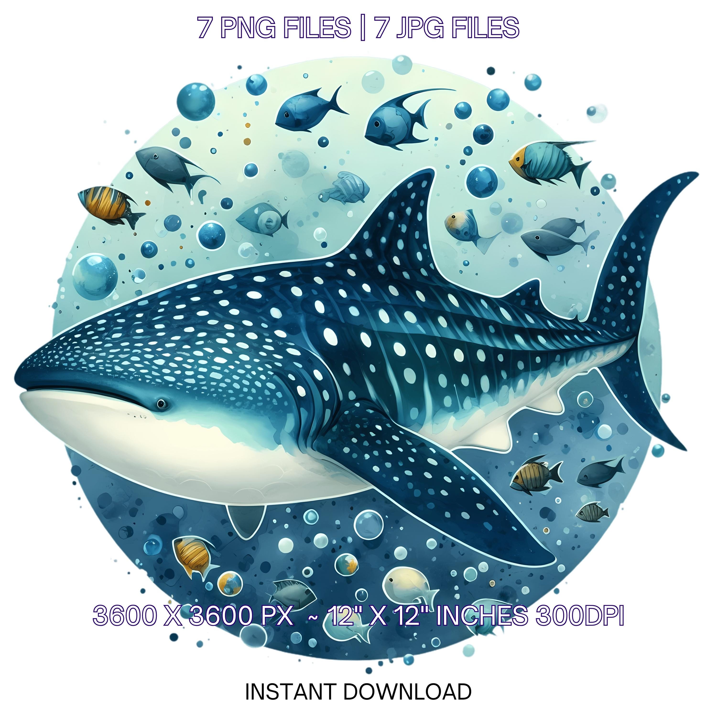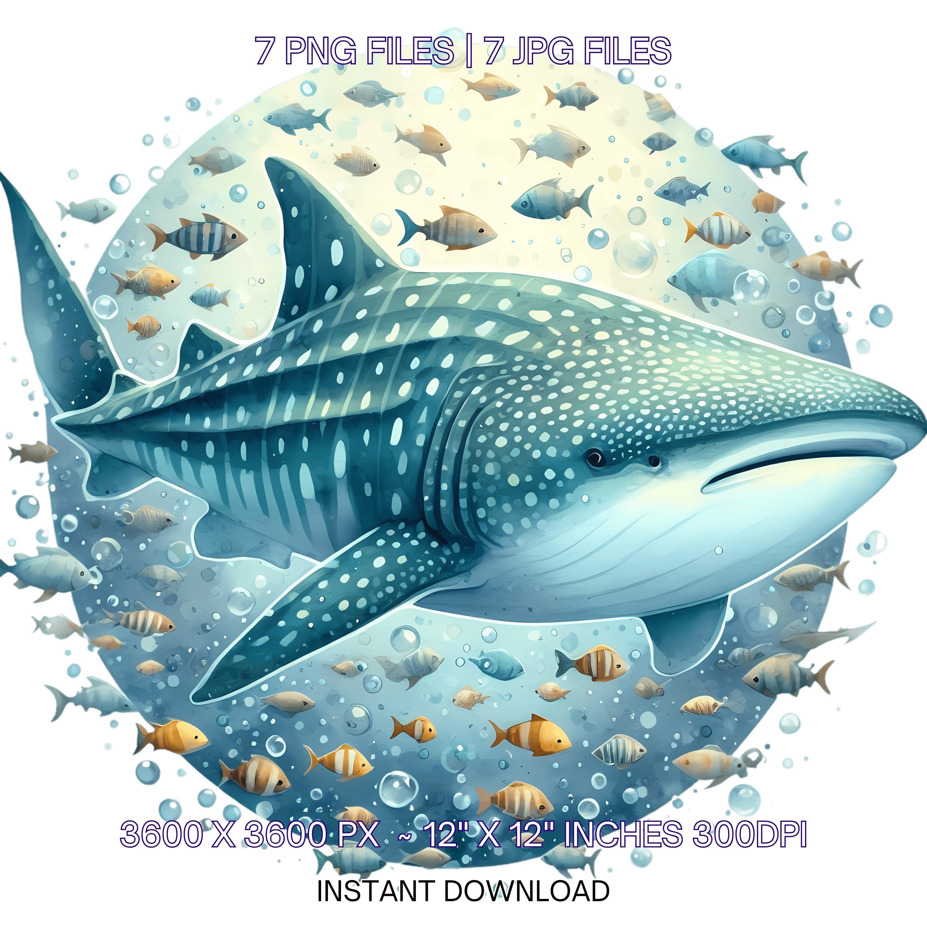 Shark Swimming Clipart PNG | 7 Watercolor Whale Shark swimming with fish schools, bubbles, & spots | Sublimation Transparent Commercial Use is an eye-catching, high-resolution digital asset designed for creators, crafters, teachers, and small business owners looking to elevate their visuals.