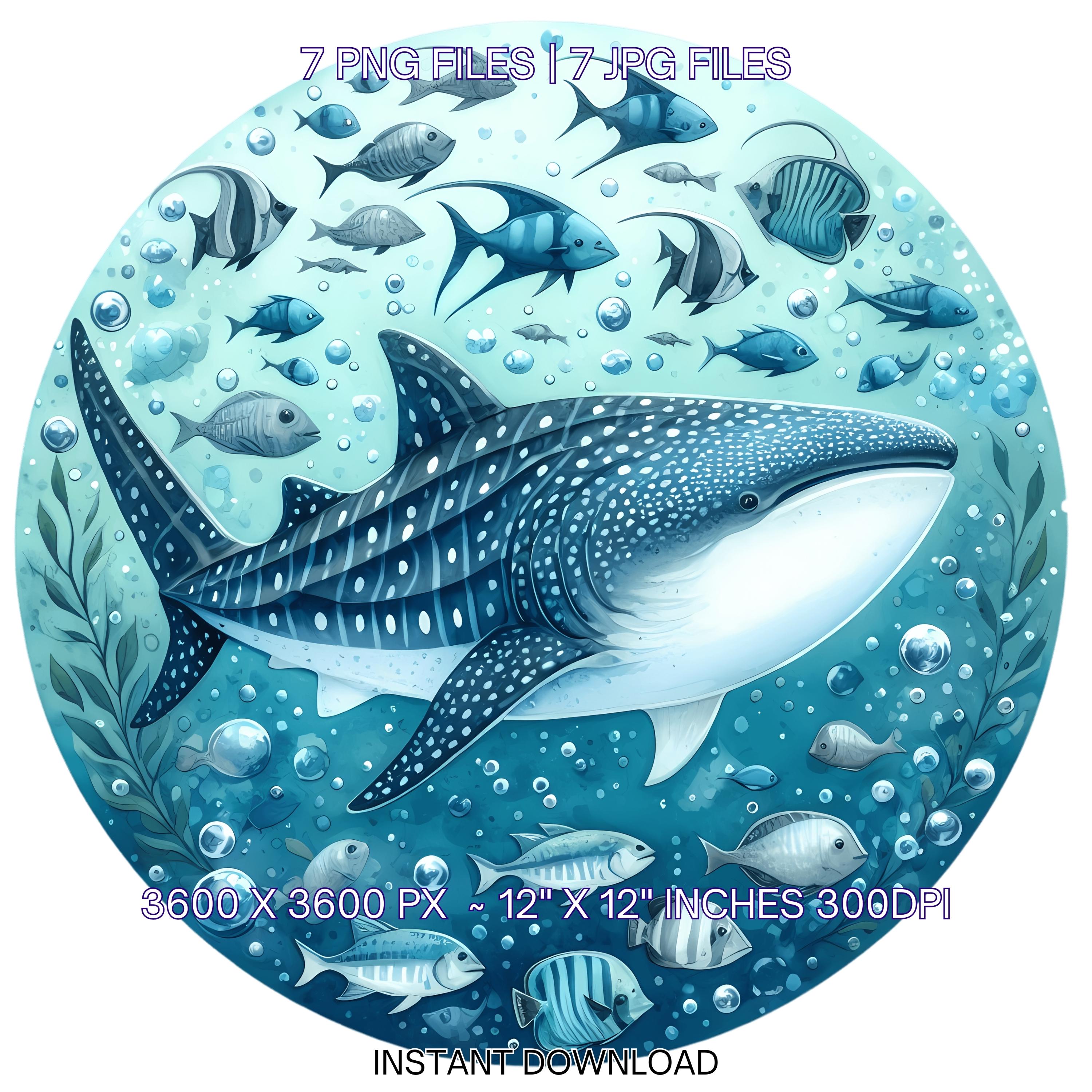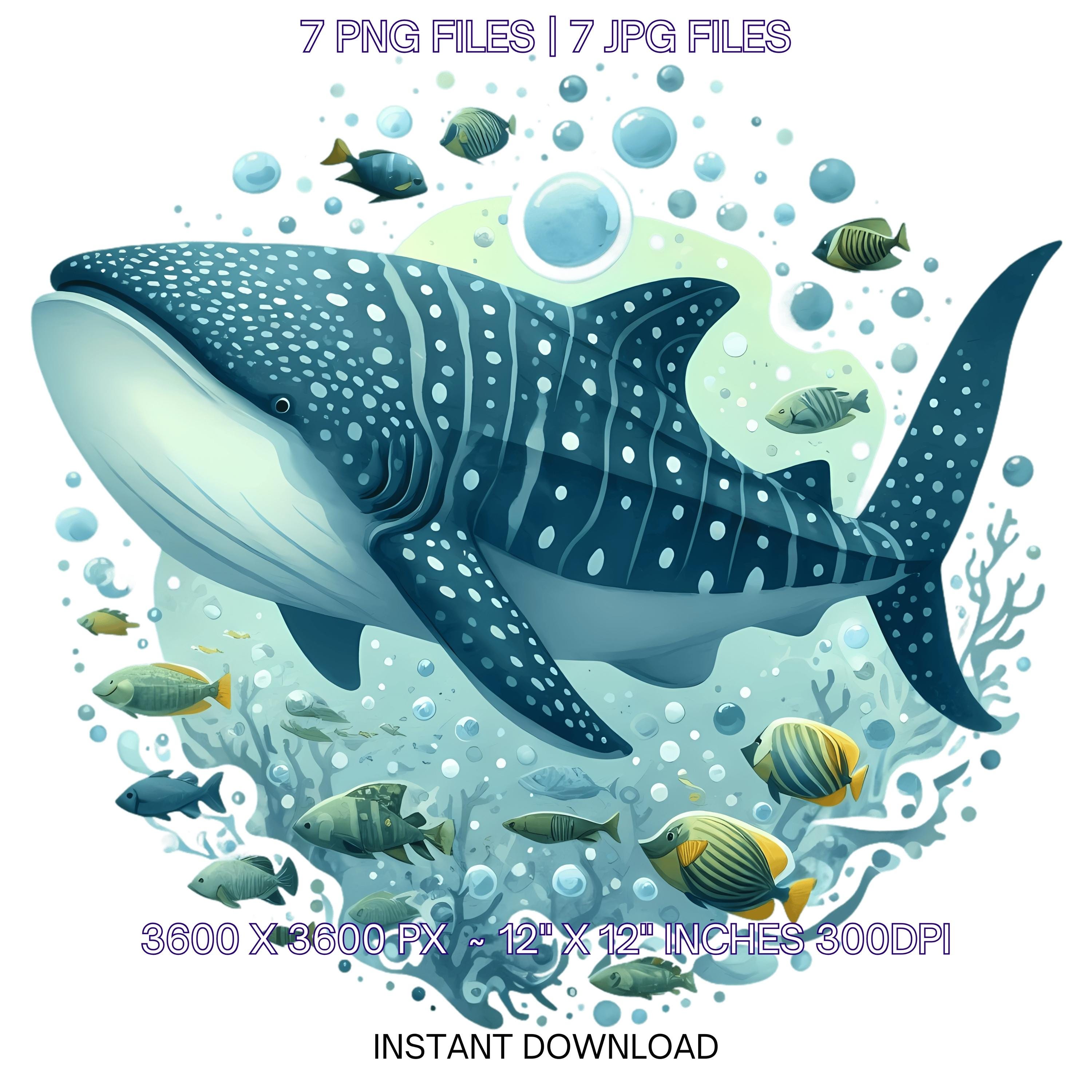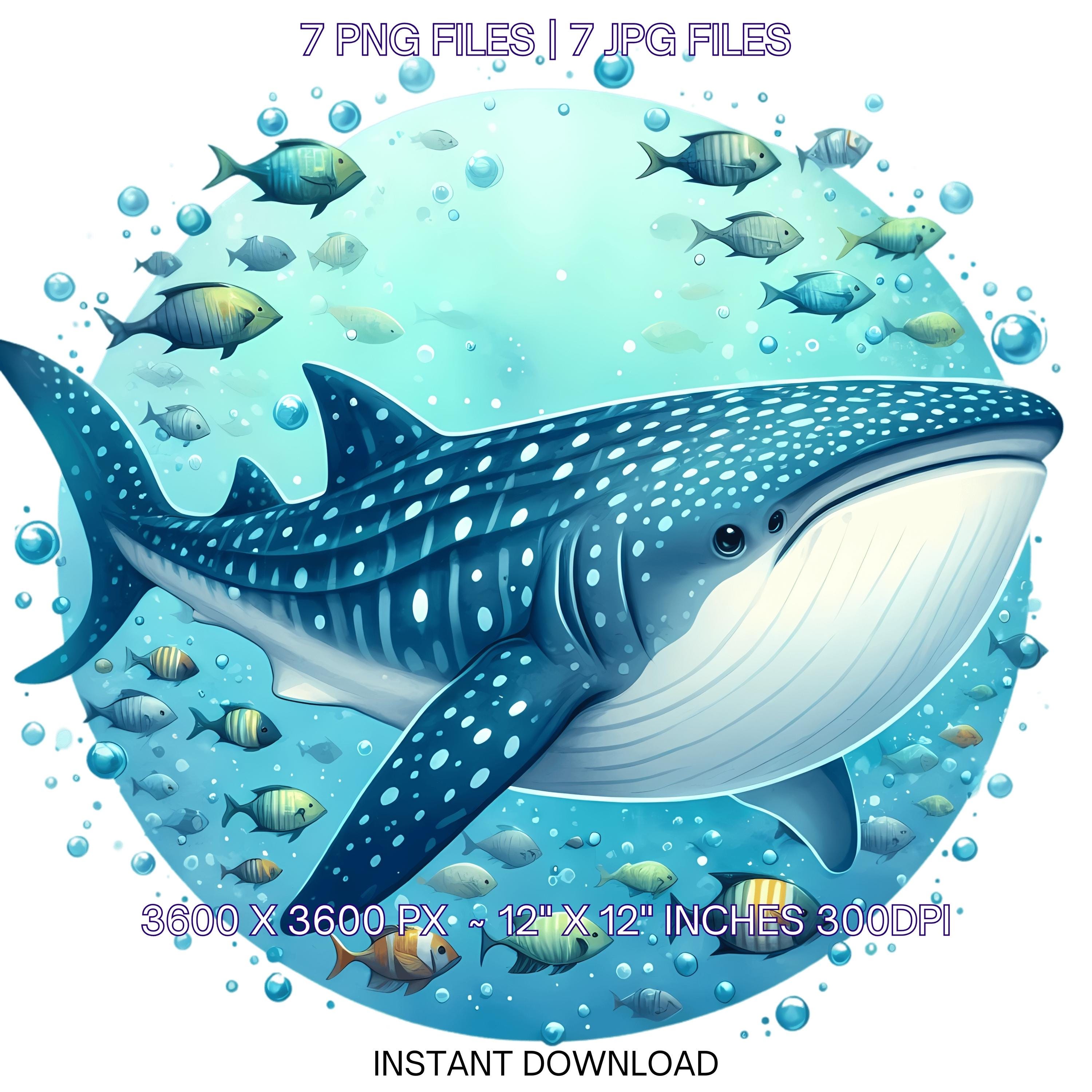 Shark Swimming Clipart PNG | 7 Watercolor Whale Shark swimming with fish schools, bubbles, & spots | Sublimation Transparent Commercial Use is an eye-catching, high-resolution digital asset designed for creators, crafters, teachers, and small business owners looking to elevate their visuals.