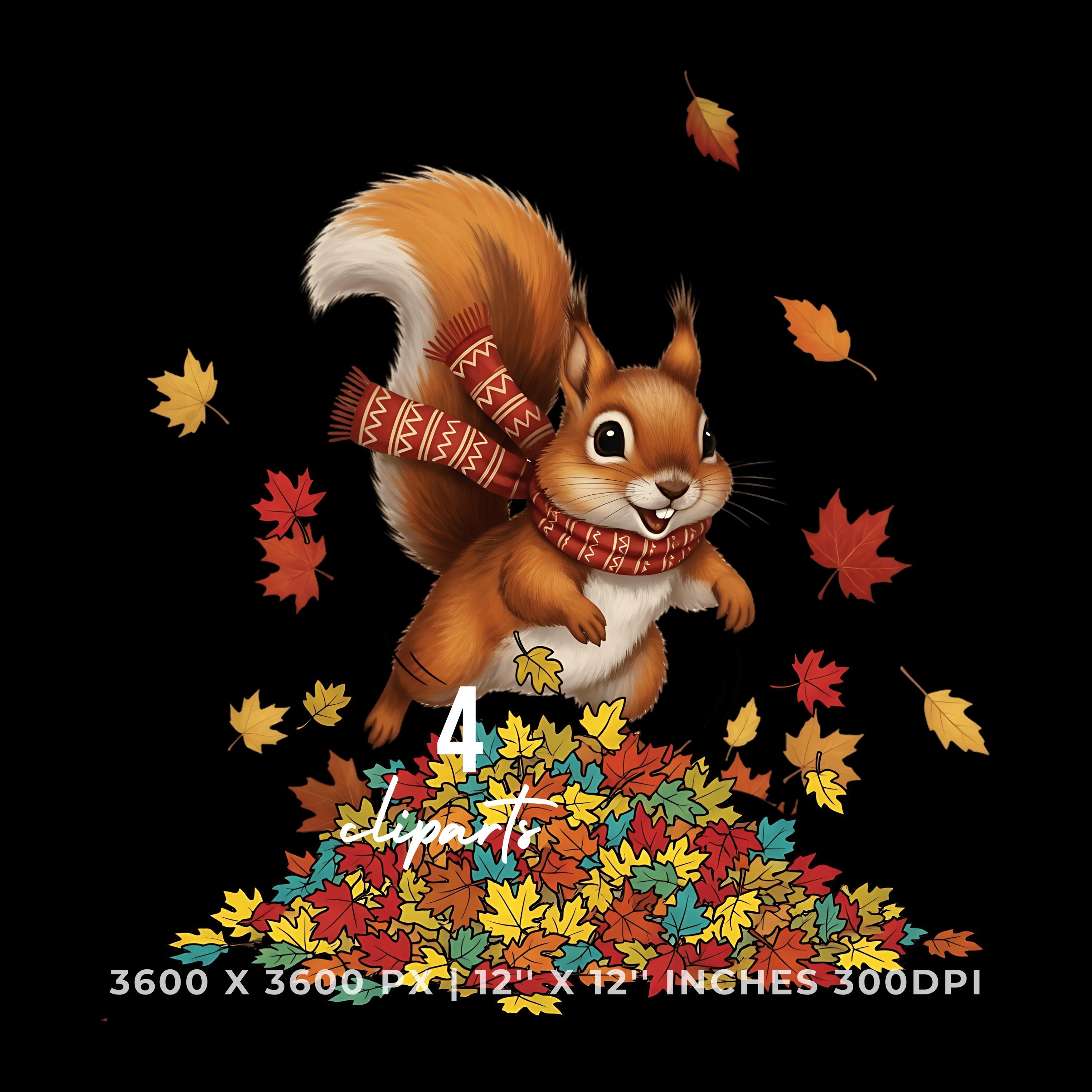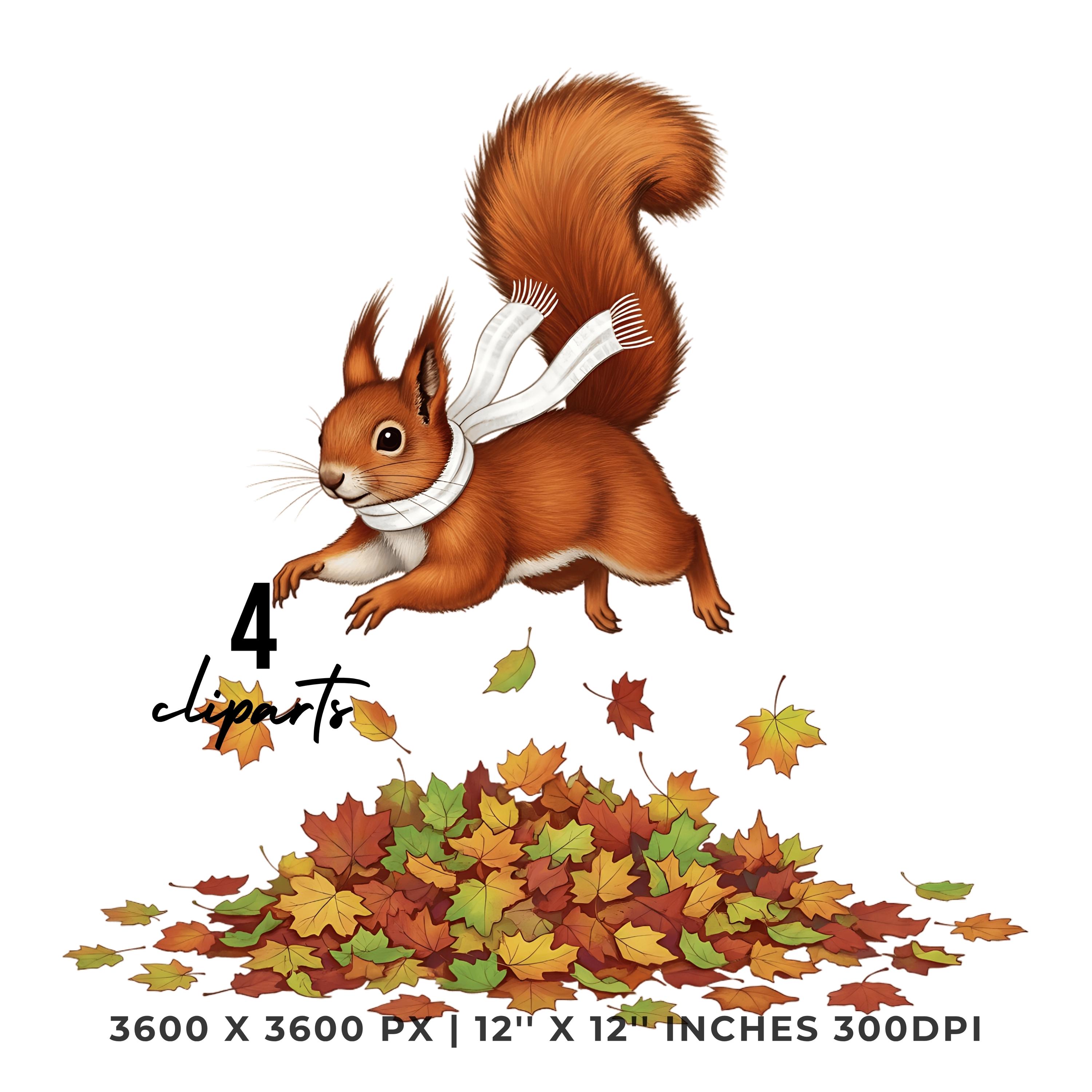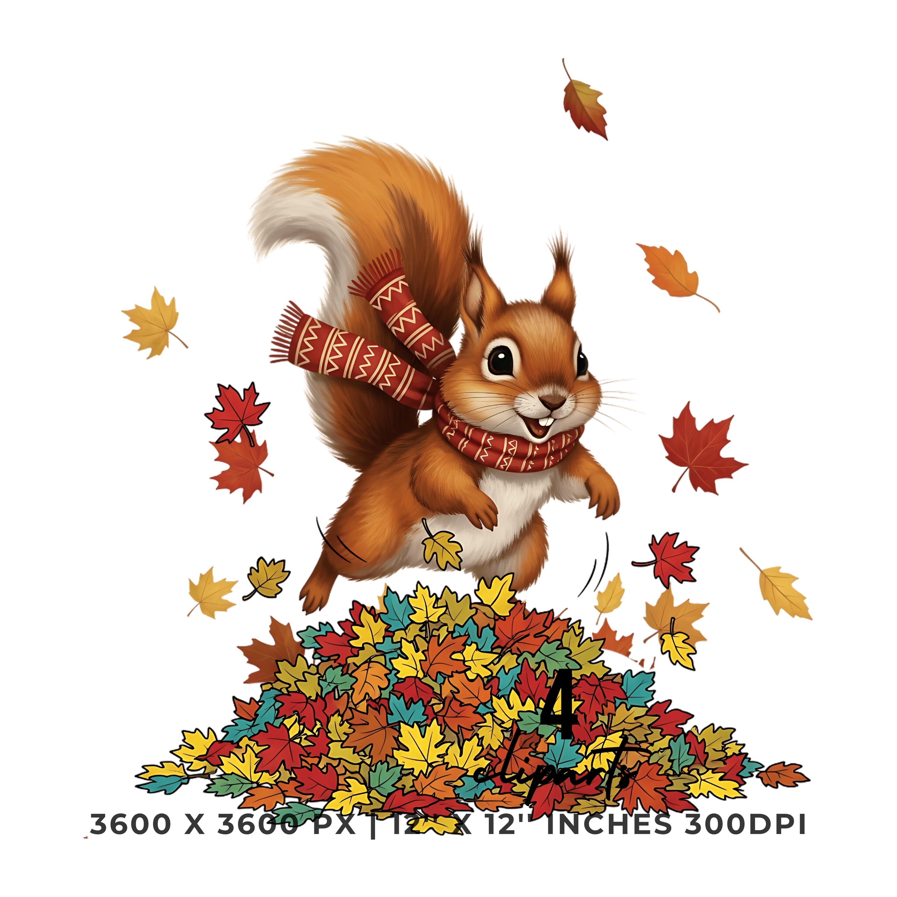 Squirrel Jumping in Fall Leaves Clipart | 4 PNG & 4 JPG | Sublimation Transparent Commercial Use
