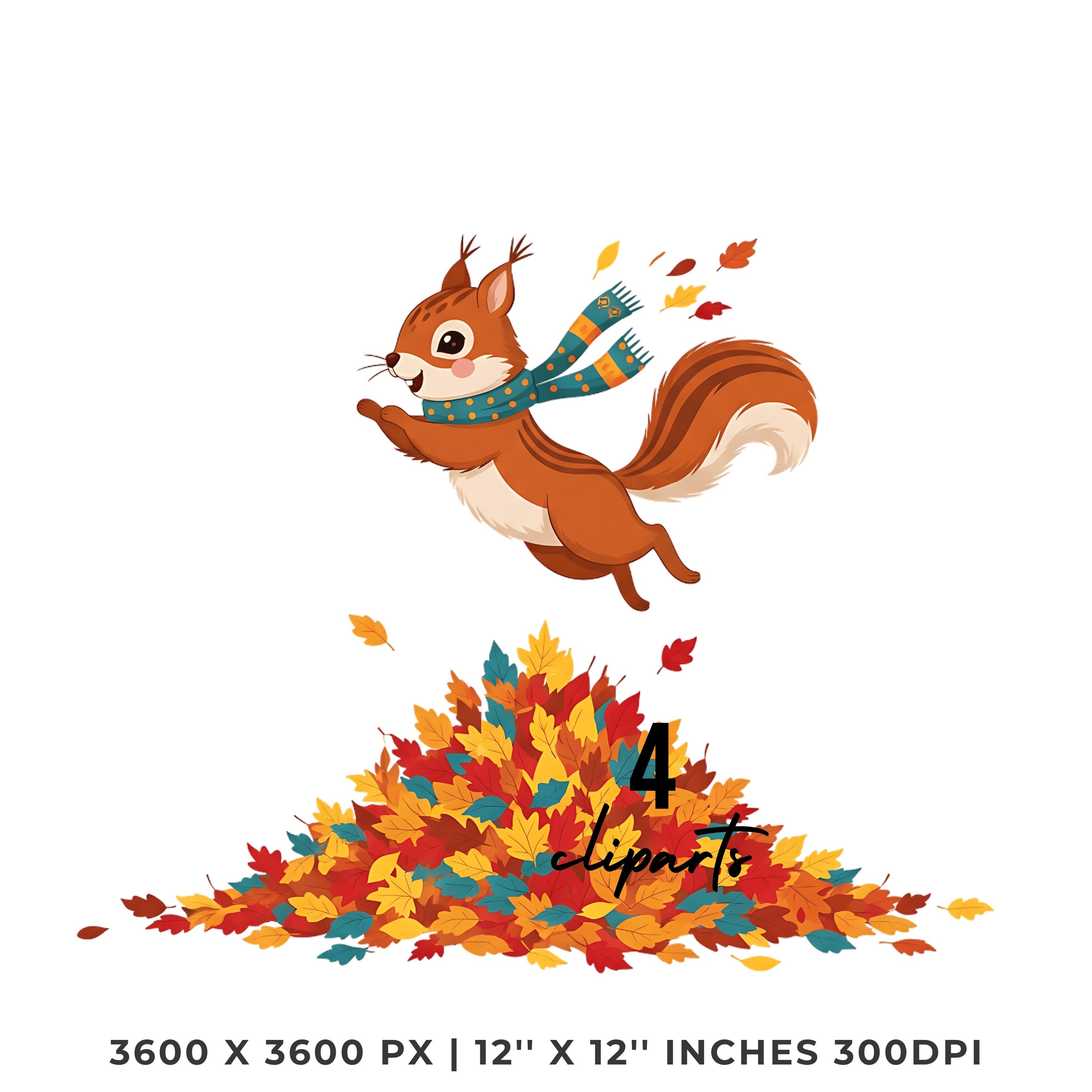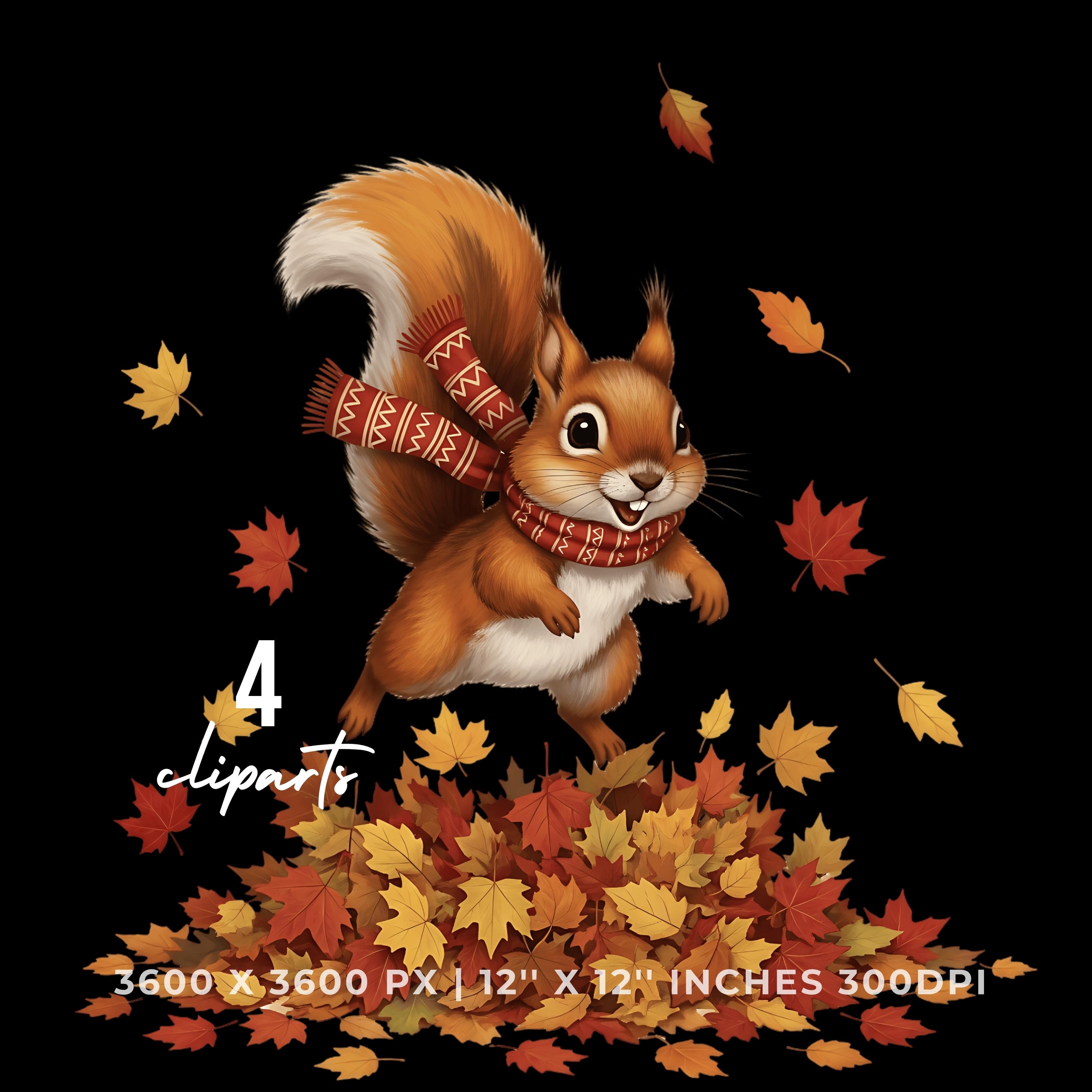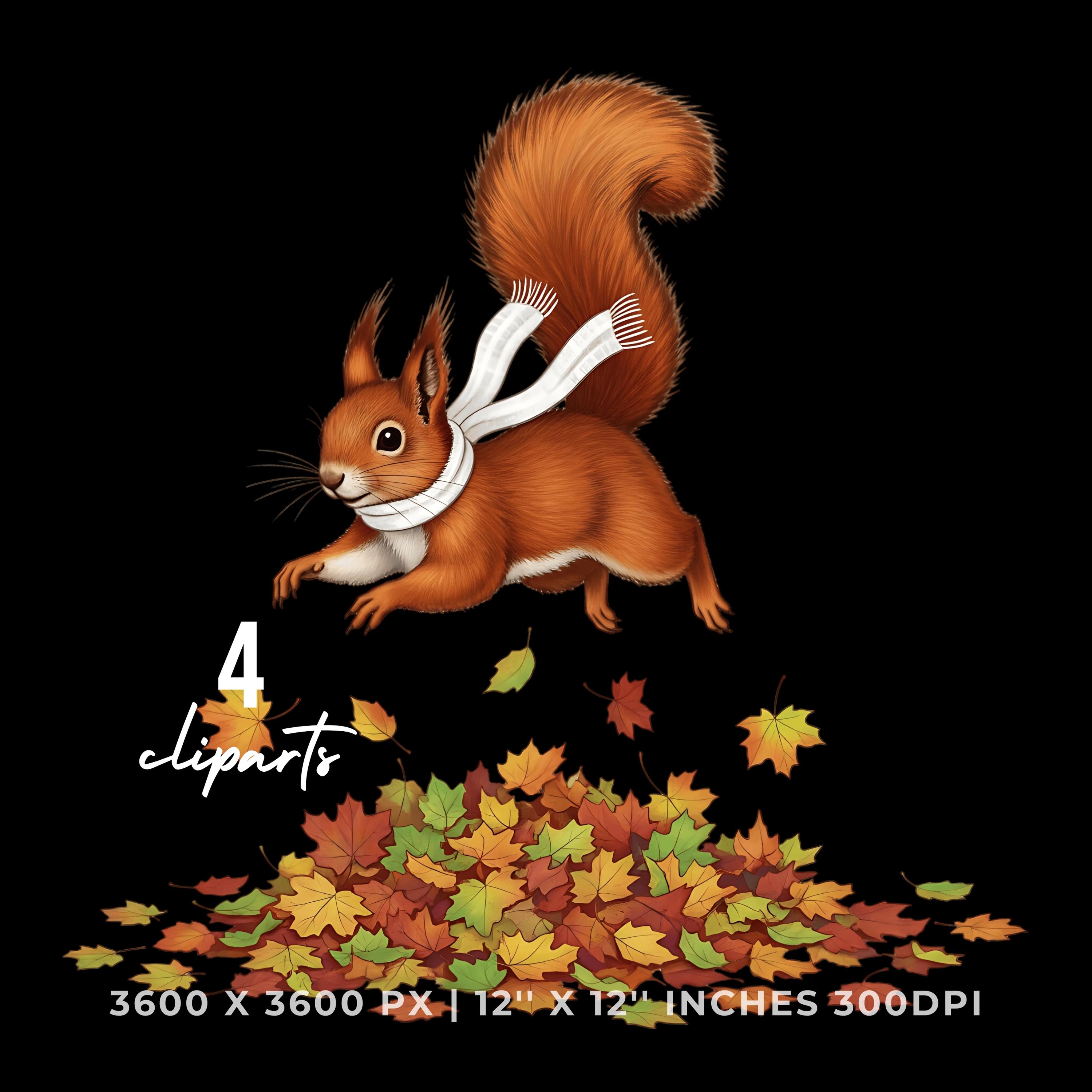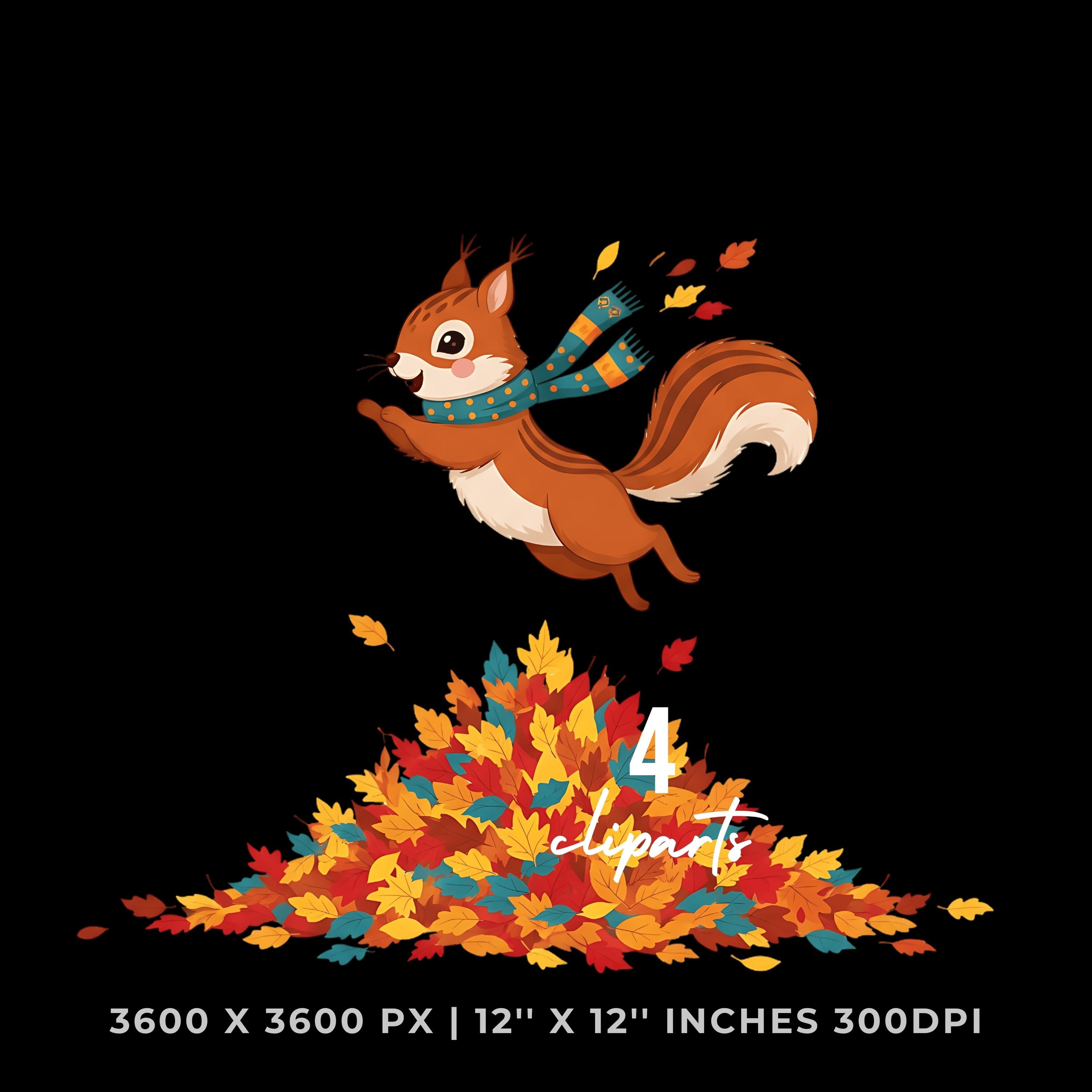 Squirrel Jumping in Fall Leaves Clipart | 4 PNG & 4 JPG | Sublimation Transparent Commercial Use