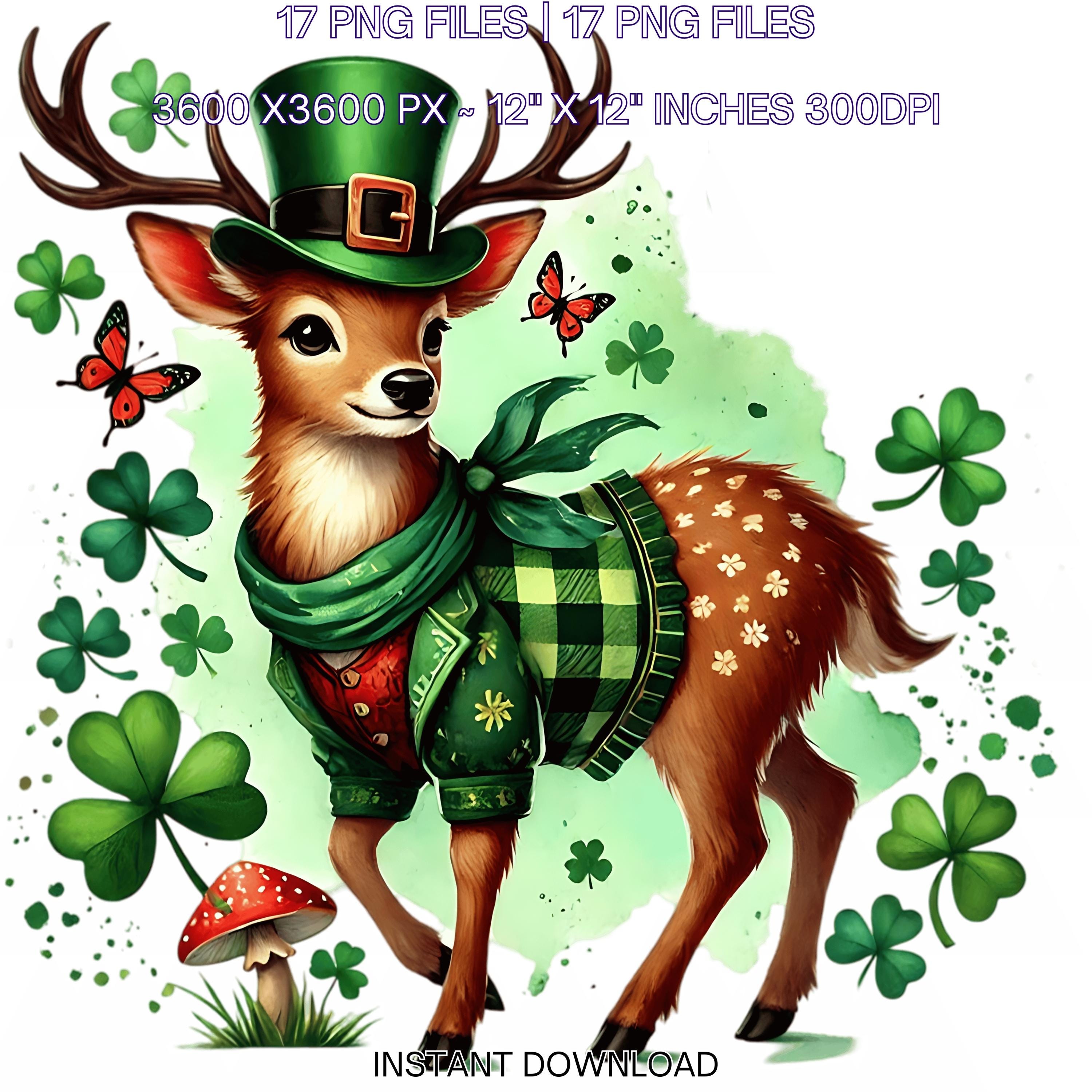 St. Patrick Irish Deer & Irish Flag PNG | 16 Woodland Red Deer St. Patrick Day Party Clipart Transparent Clipart Sublimation Commercial Use is an eye-catching, high-resolution digital asset designed for creators, crafters, teachers, and small business owners looking to elevate their visuals.