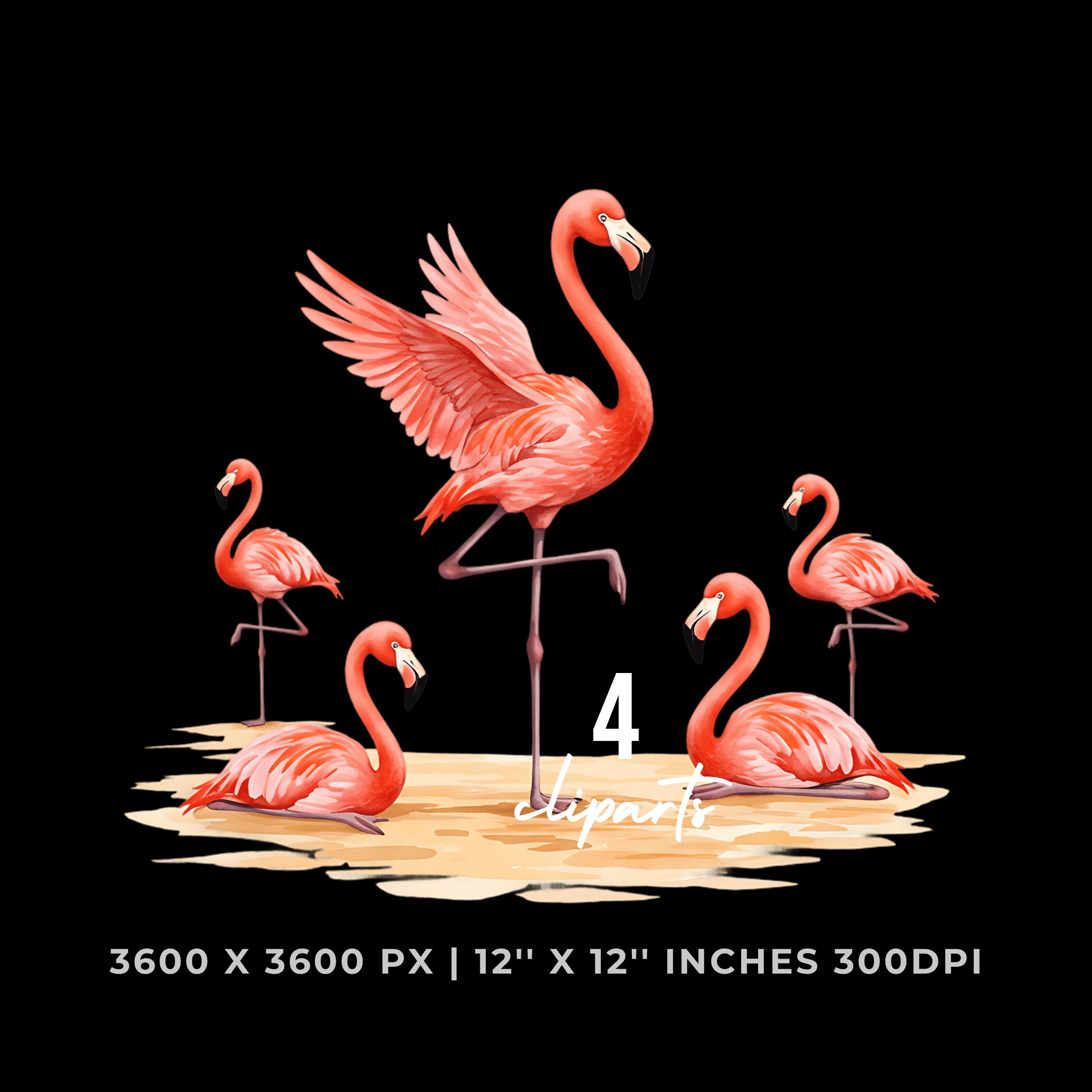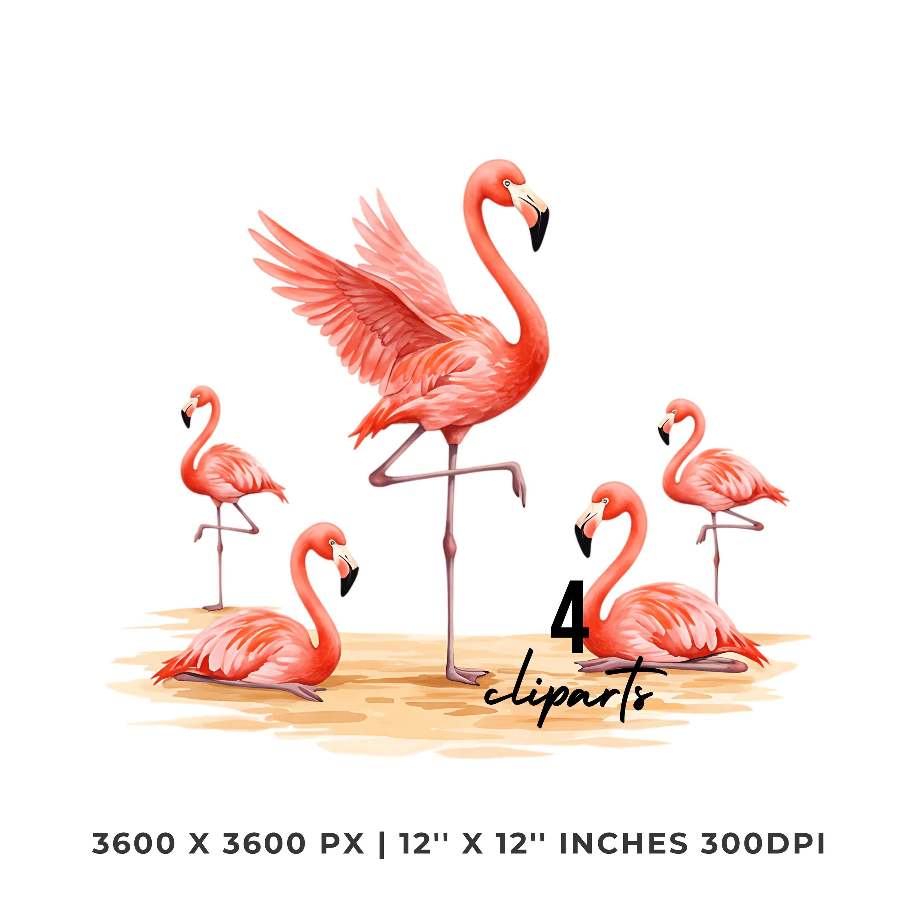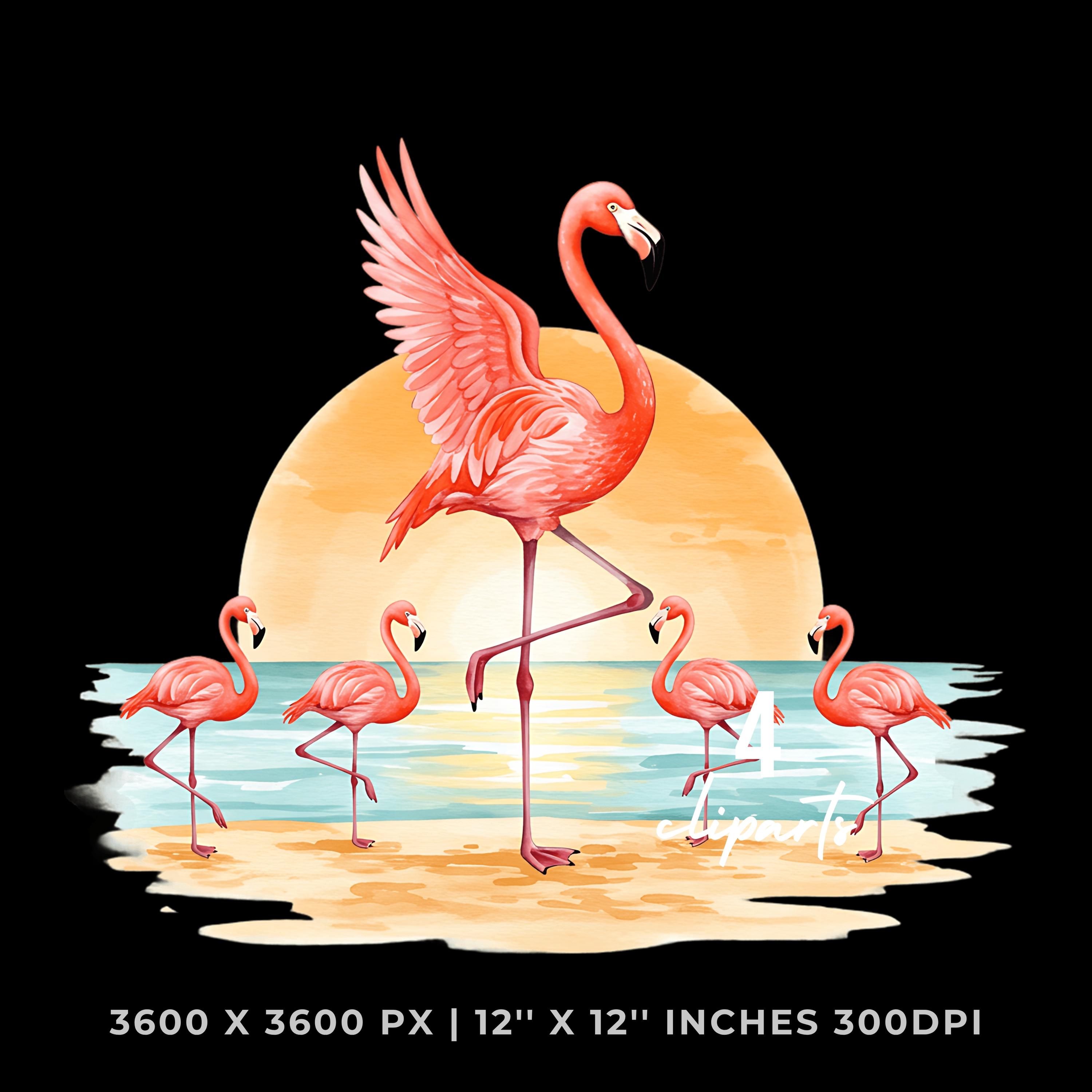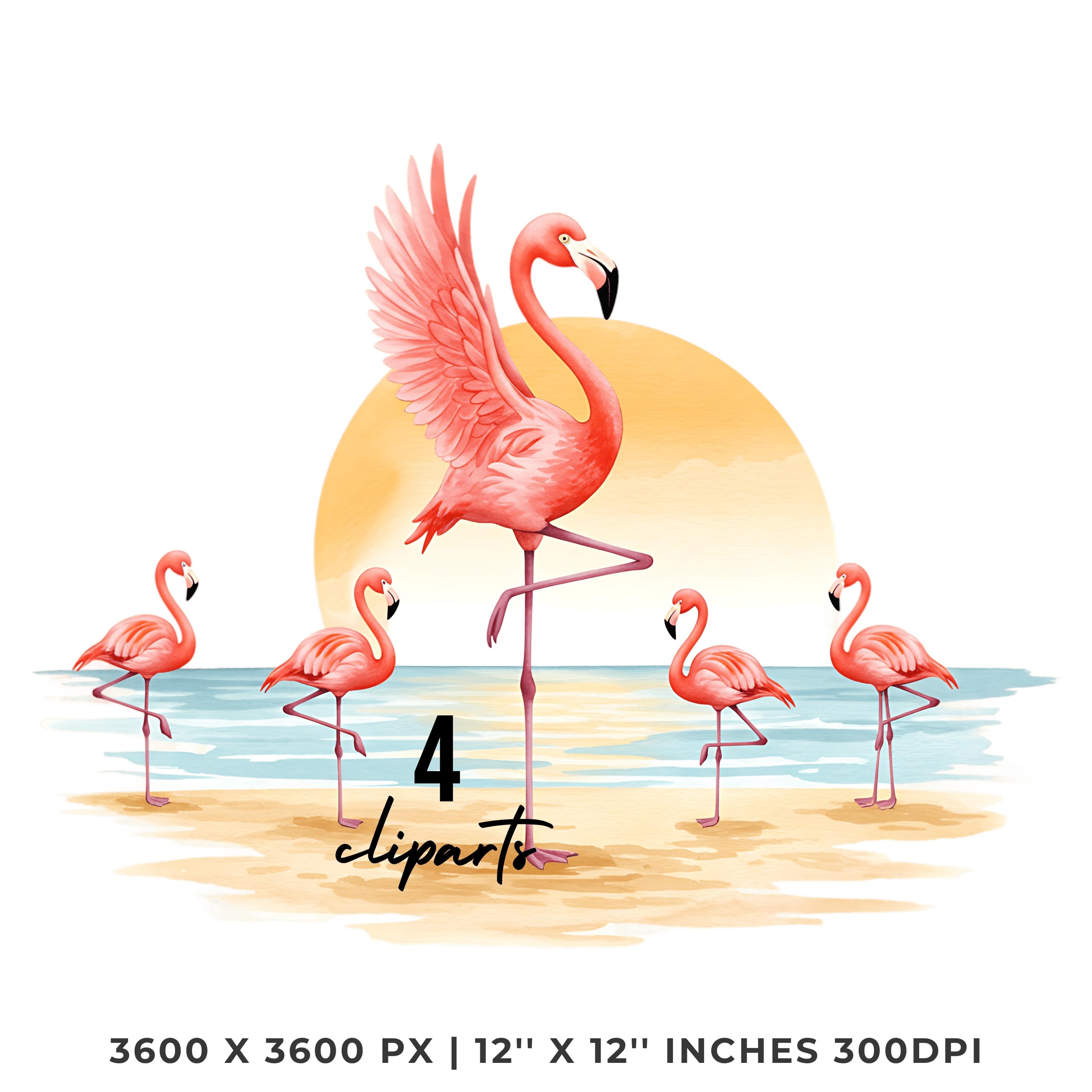 Summer Flamingo Clipart PNG | 4 Watercolor Flamingo Teaching a Yoga Class on the Beach at Sunrise | Sublimation Transparent Commercial Use is an eye-catching, high-resolution digital asset designed for creators, crafters, teachers, and small business owners looking to elevate their visuals.