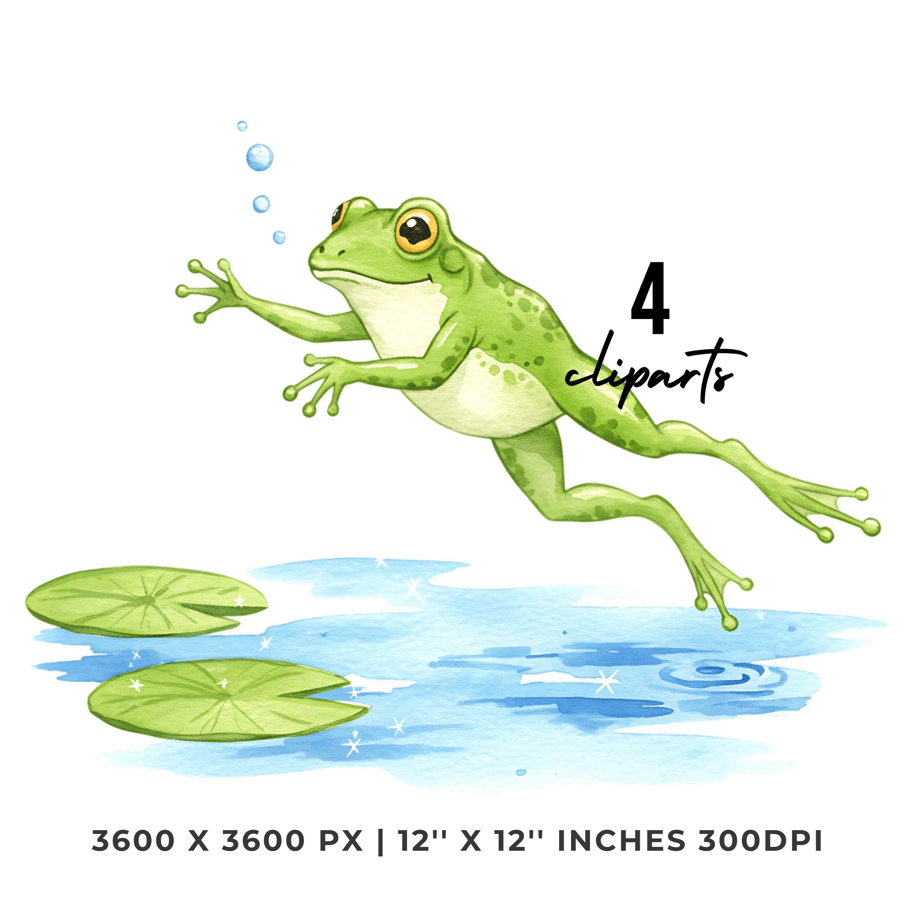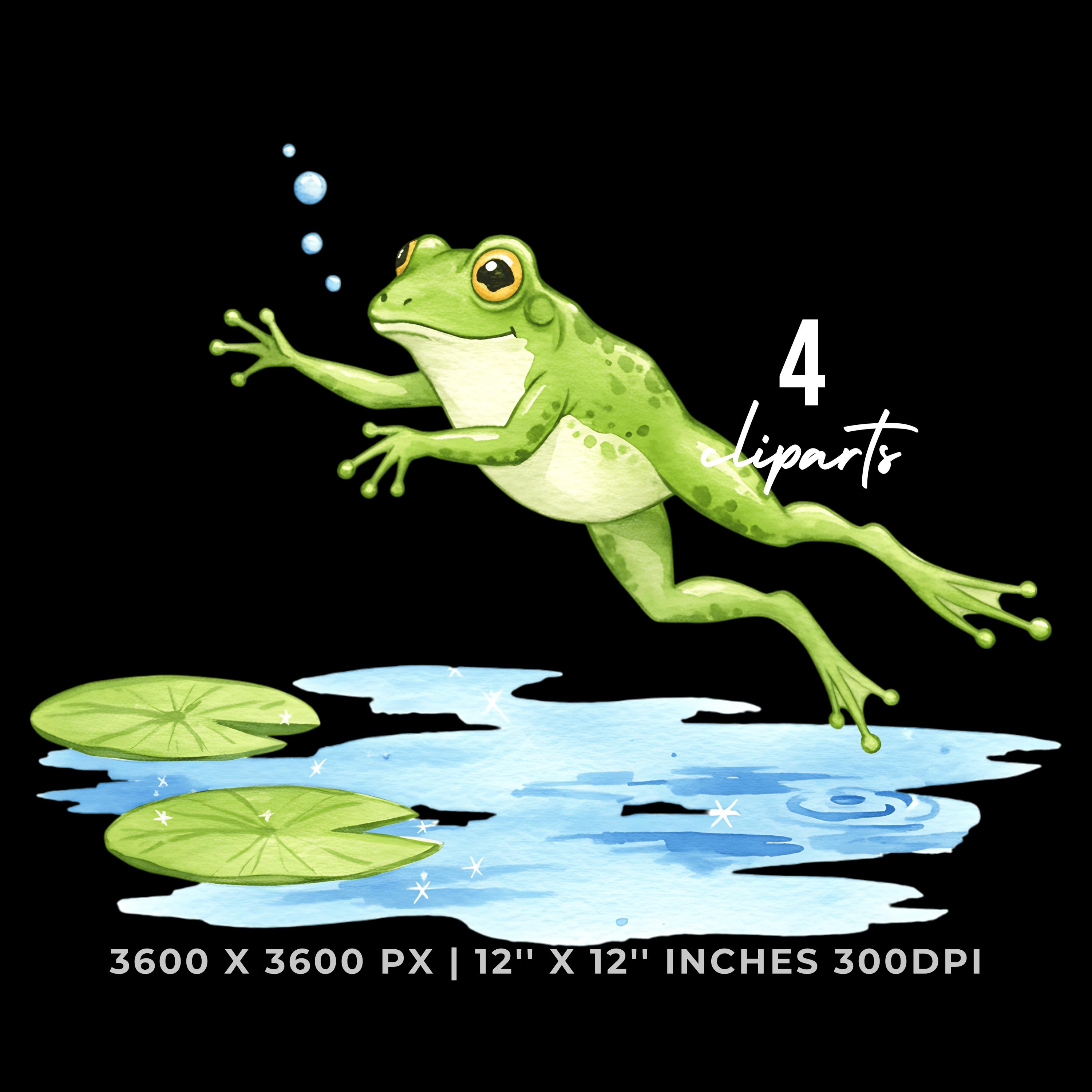 Summer Frog Clipart PNG | 4 Watercolor Frog jumping between lily pads in a sunny pond | Sublimation Transparent Commercial Use is an eye-catching, high-resolution digital asset designed for creators, crafters, teachers, and small business owners looking to elevate their visuals.