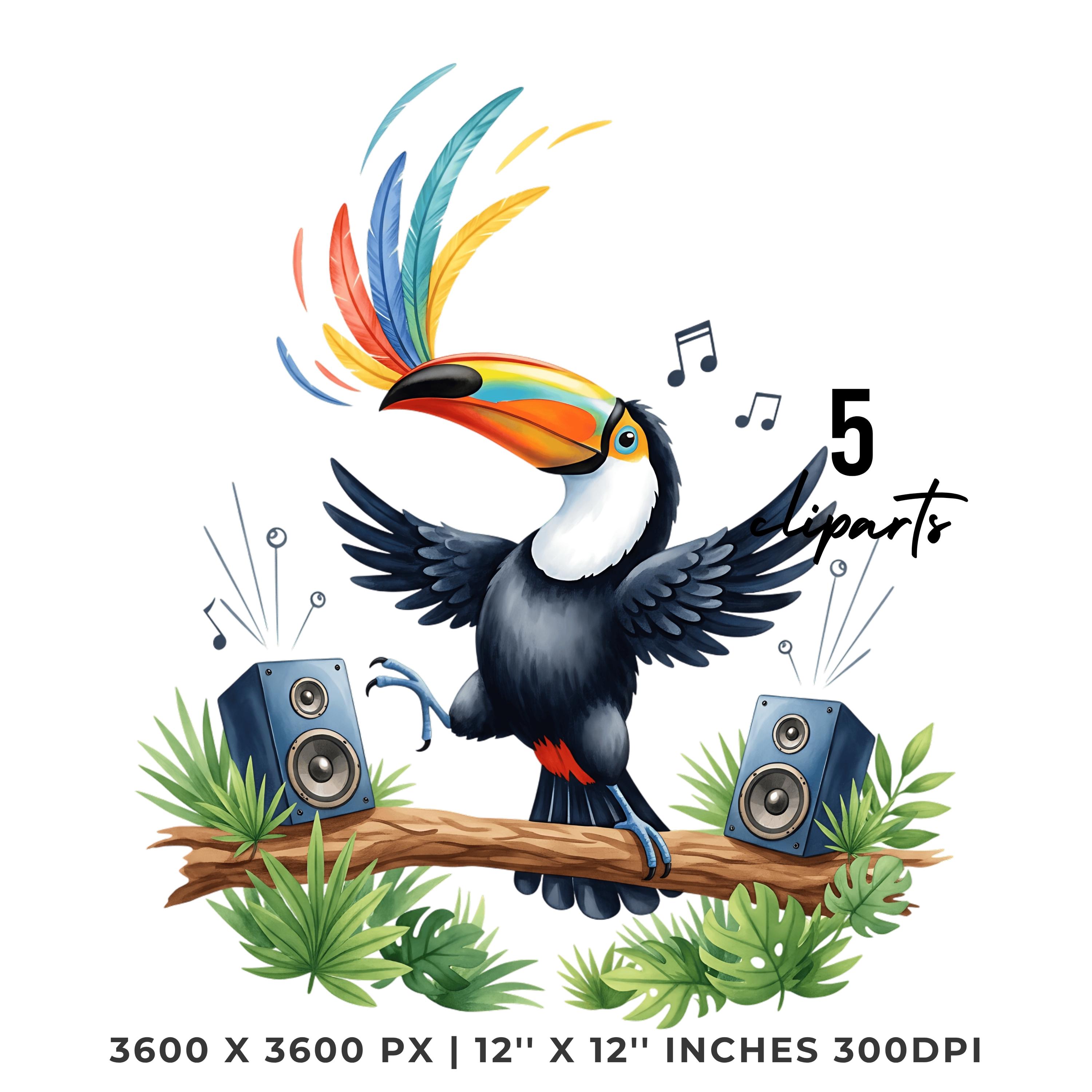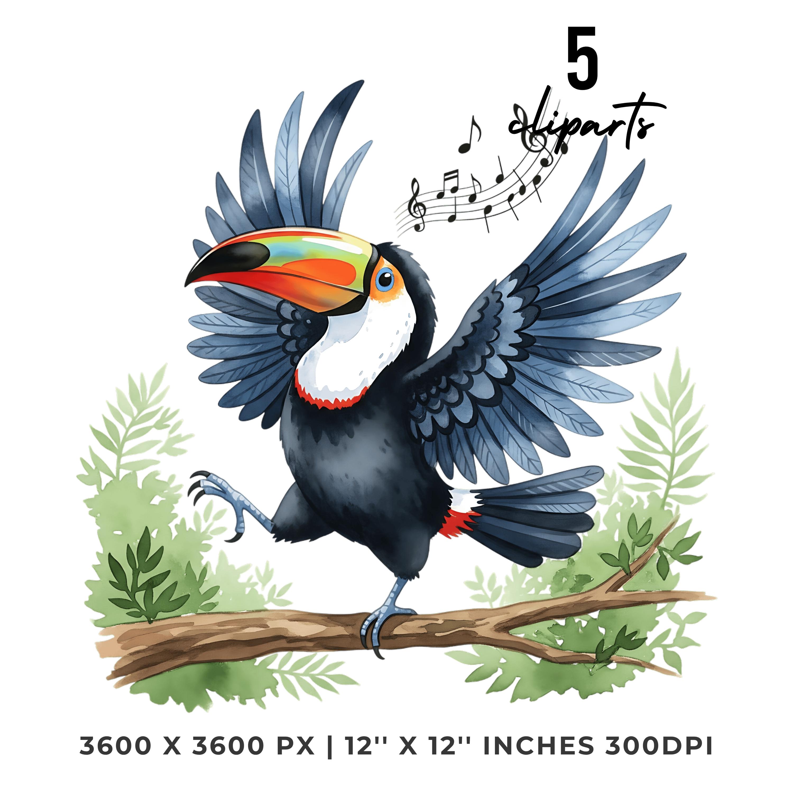 Summer Toucan Clipart PNG | 4 Watercolor Toucan dancing on a Tree Branch in the Jungle | Sublimation Transparent Commercial Use is an eye-catching, high-resolution digital asset designed for creators, crafters, teachers, and small business owners looking to elevate their visuals.