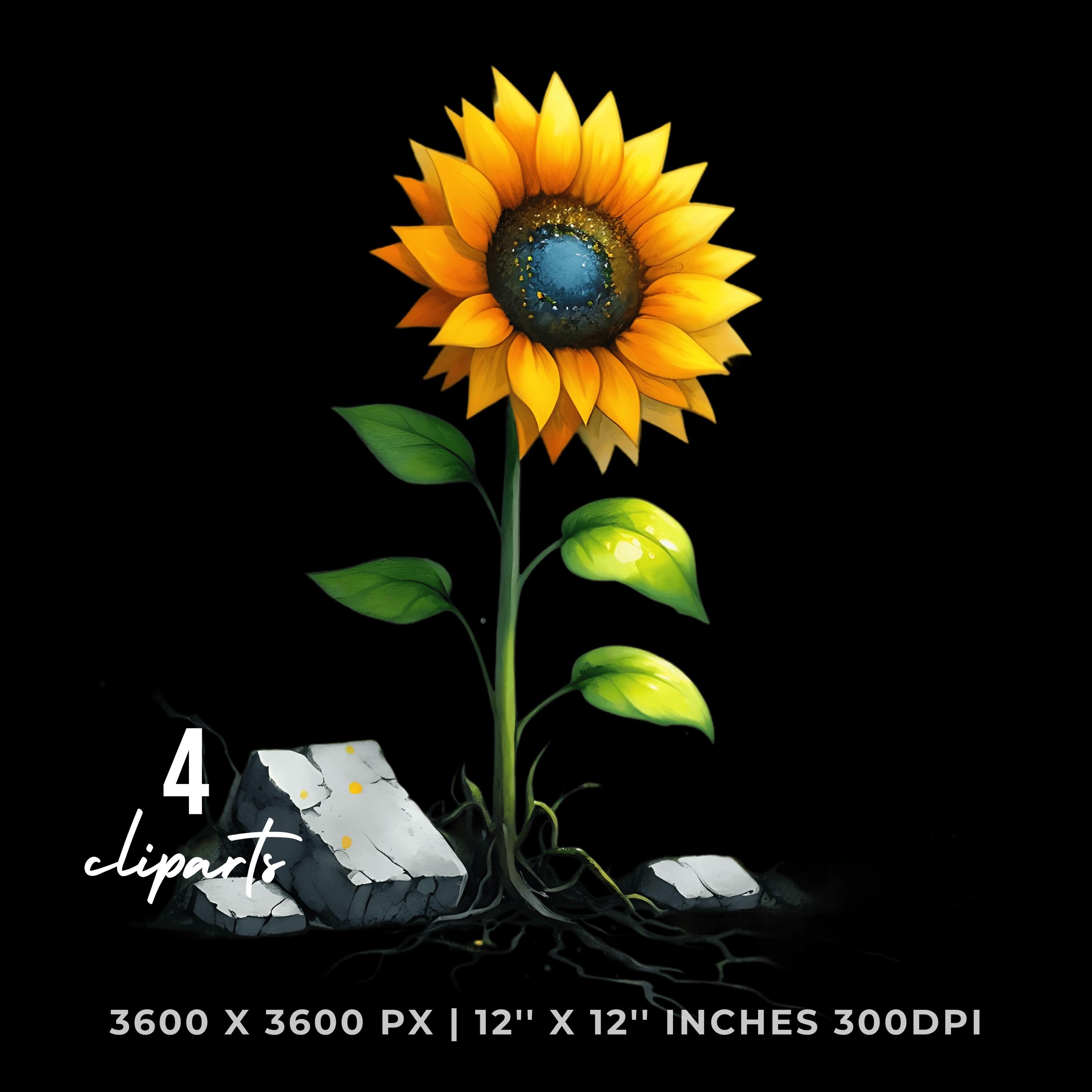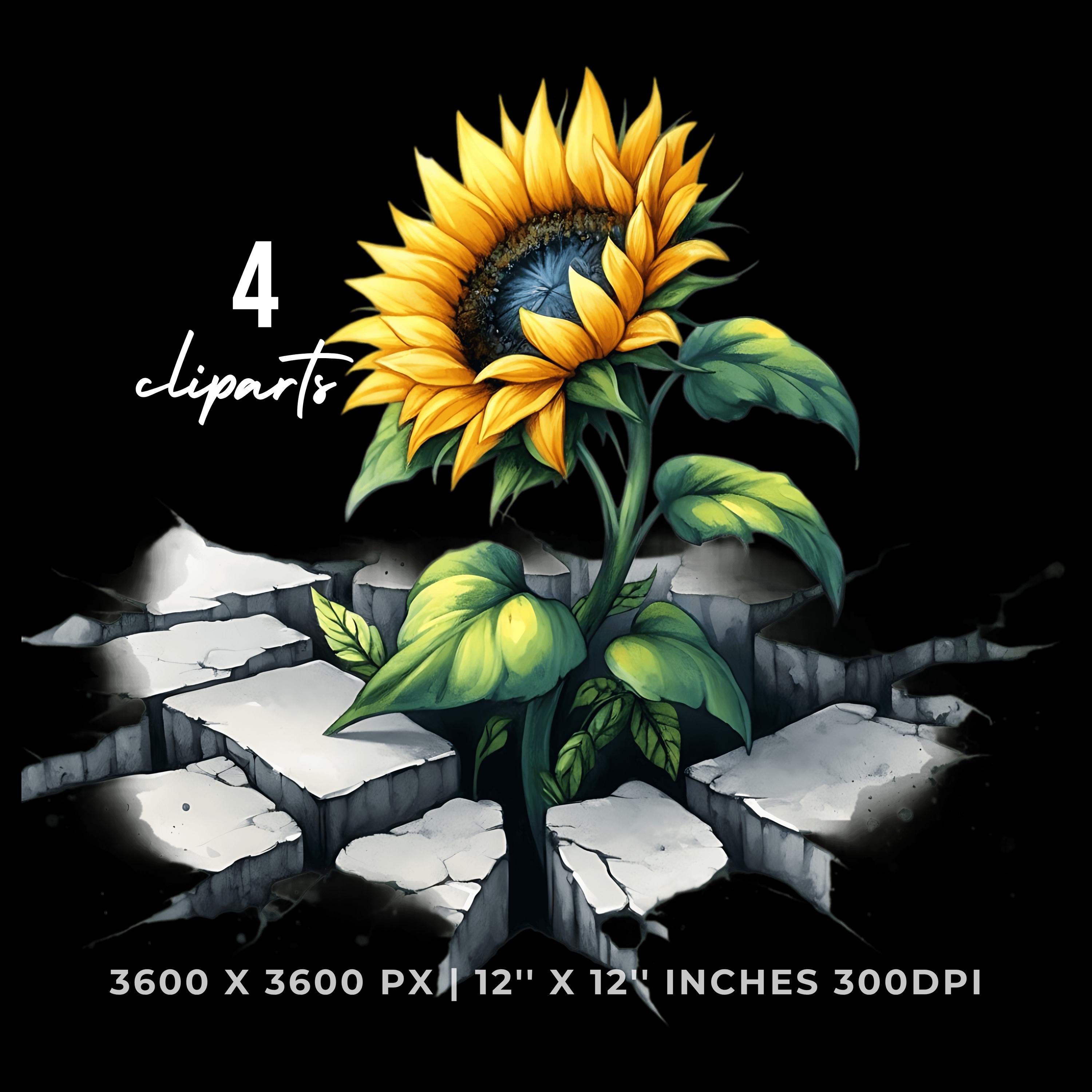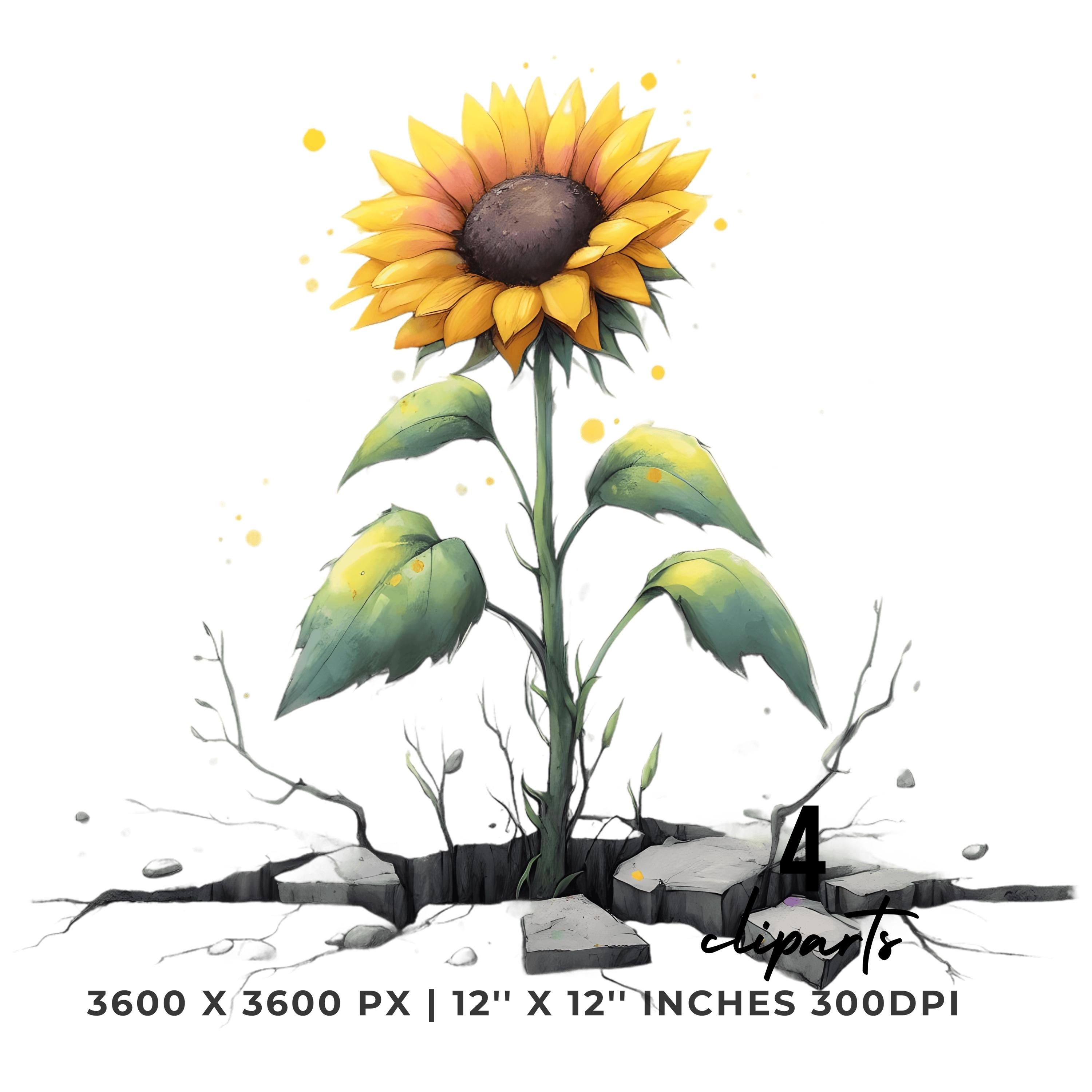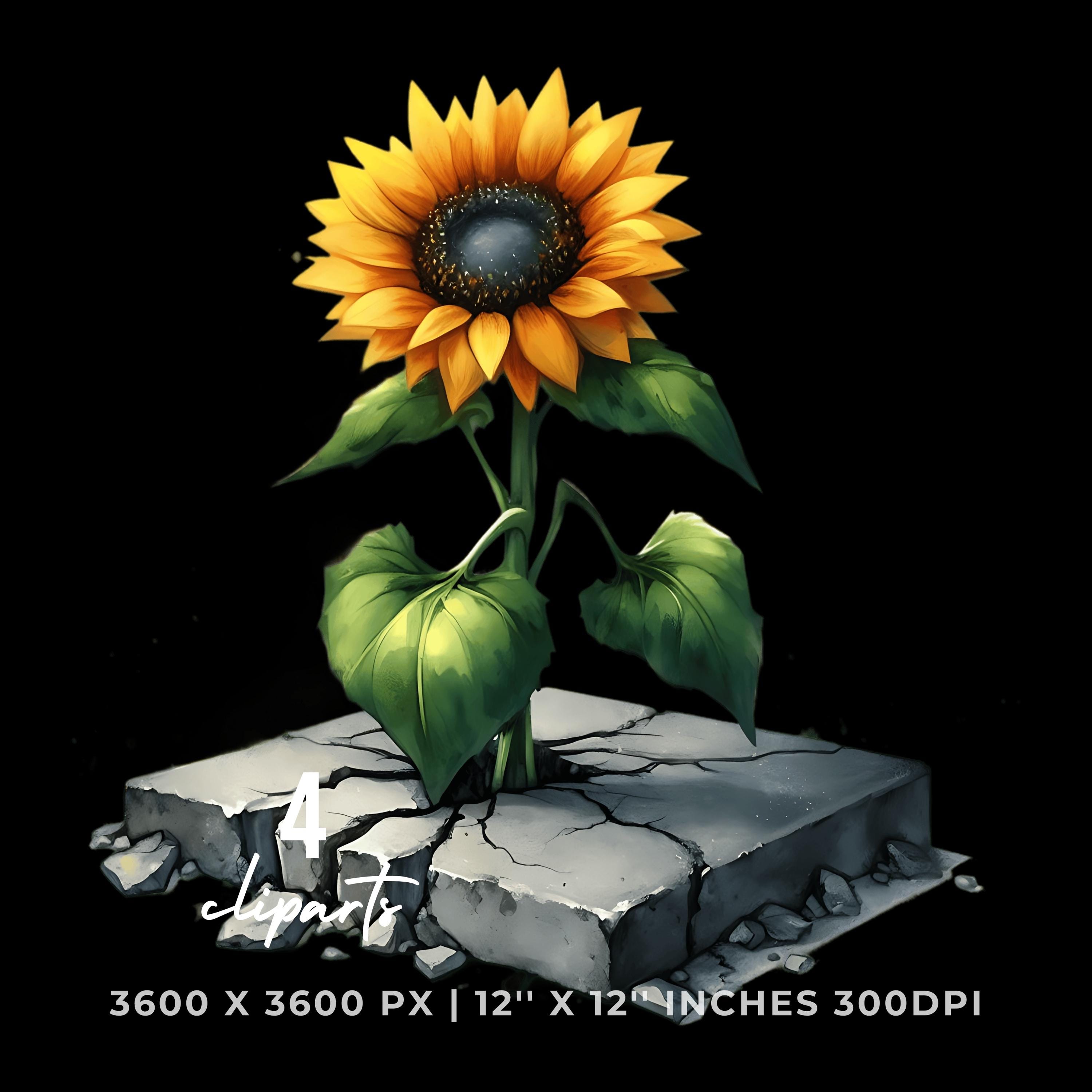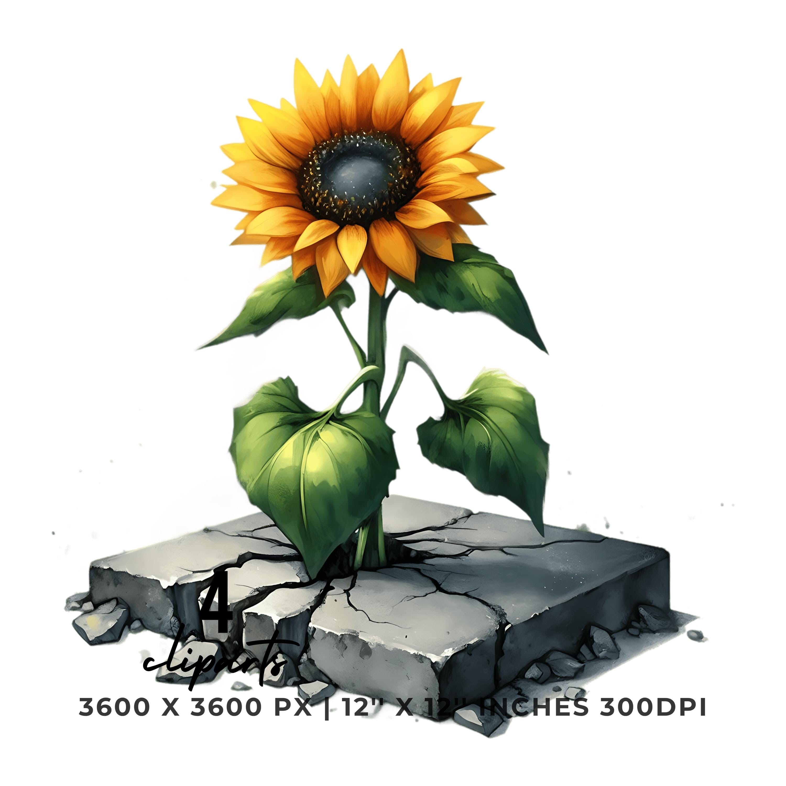 Sunflower Through Concrete Clipart | Growth Symbol Art | 4 PNG & 4 JPG | Sublimation Design | 12″x12″ 300DPI Graphic Commercial Use