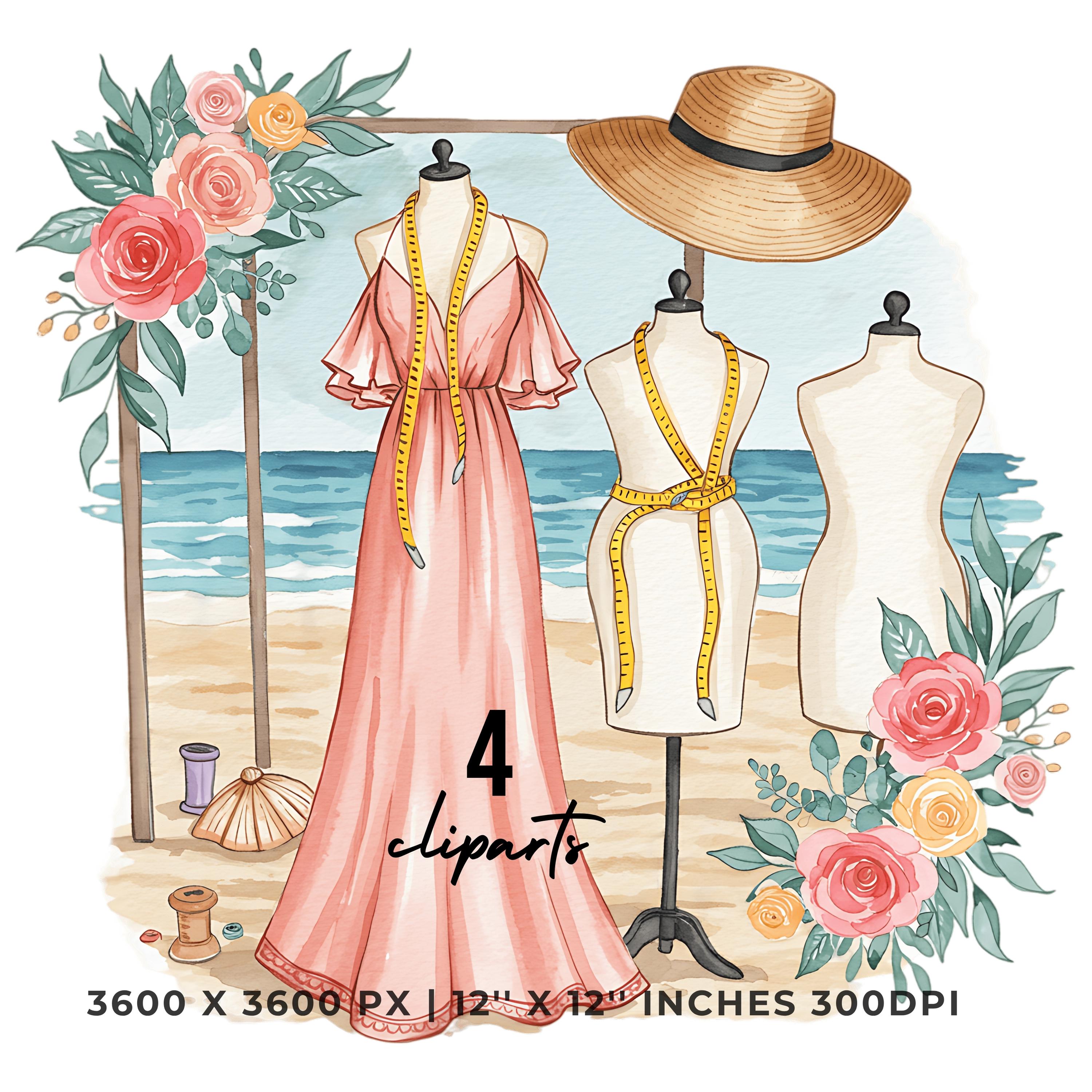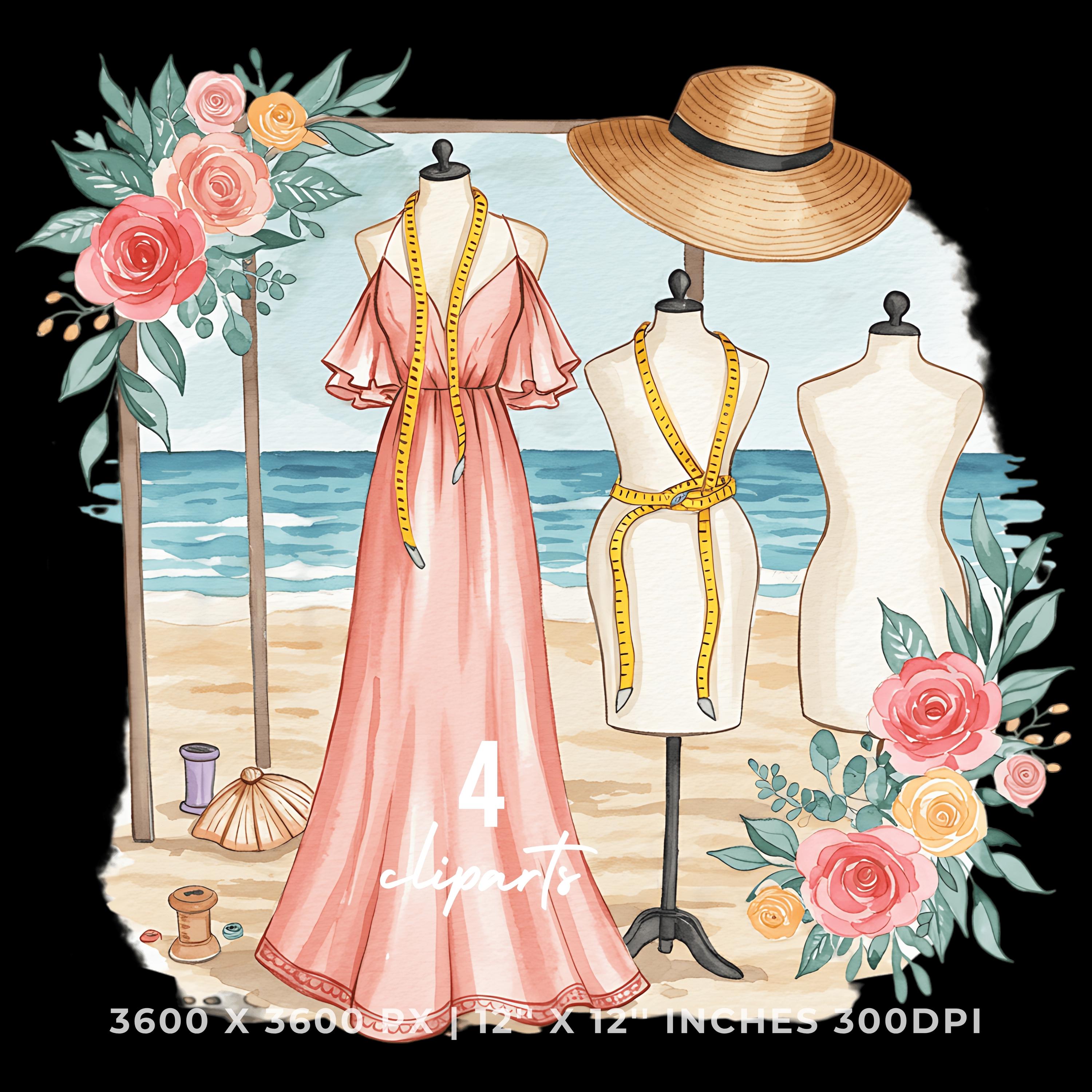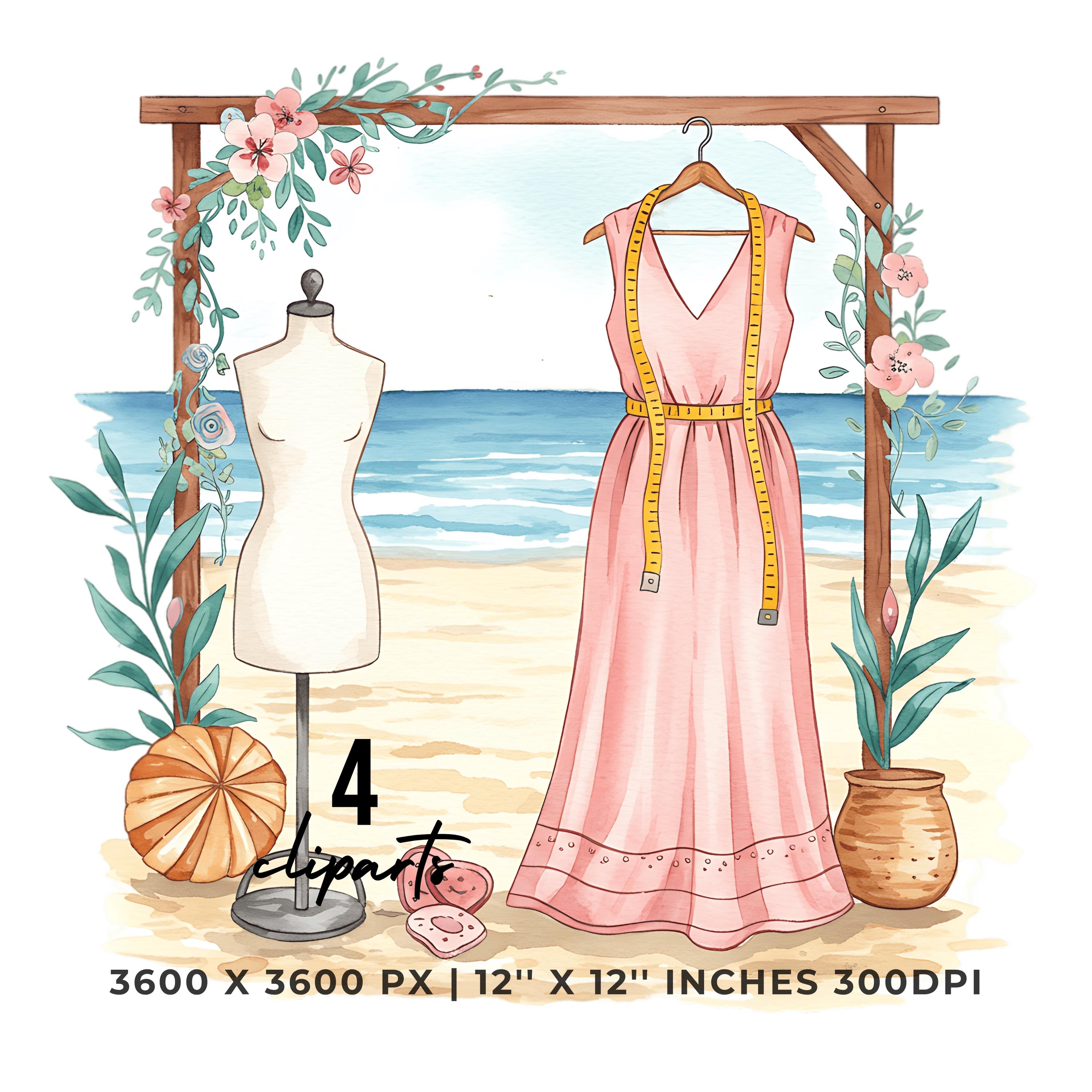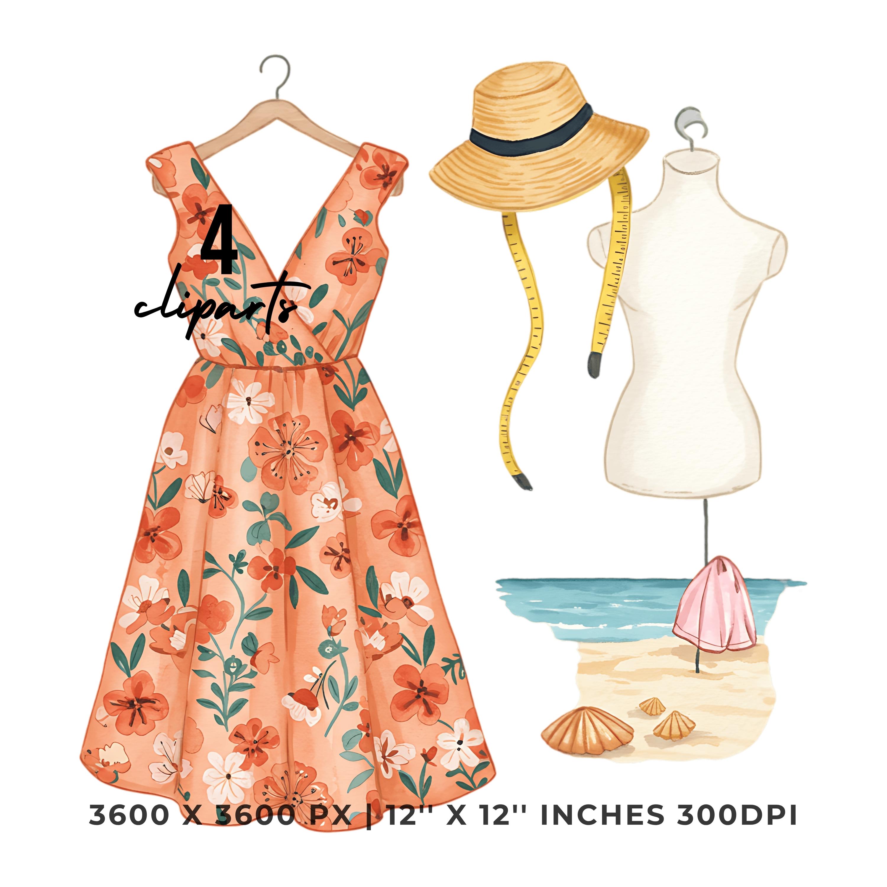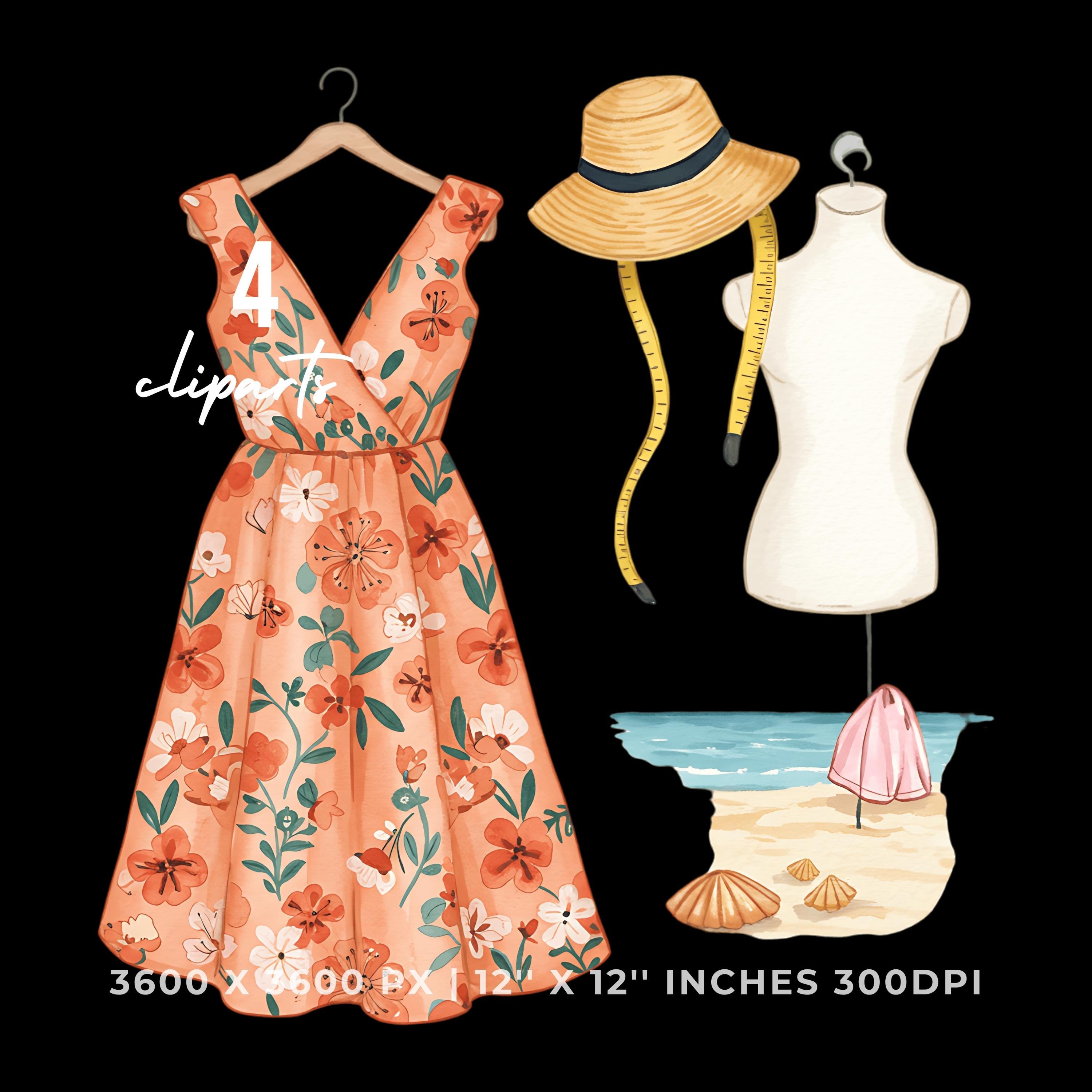 Tailor Stitching Summer Dress Clipart | Summer Dress Art | 4 PNG & 4 JPG | Sublimation Design | 12″x12″ 300DPI Graphic Commercial Use