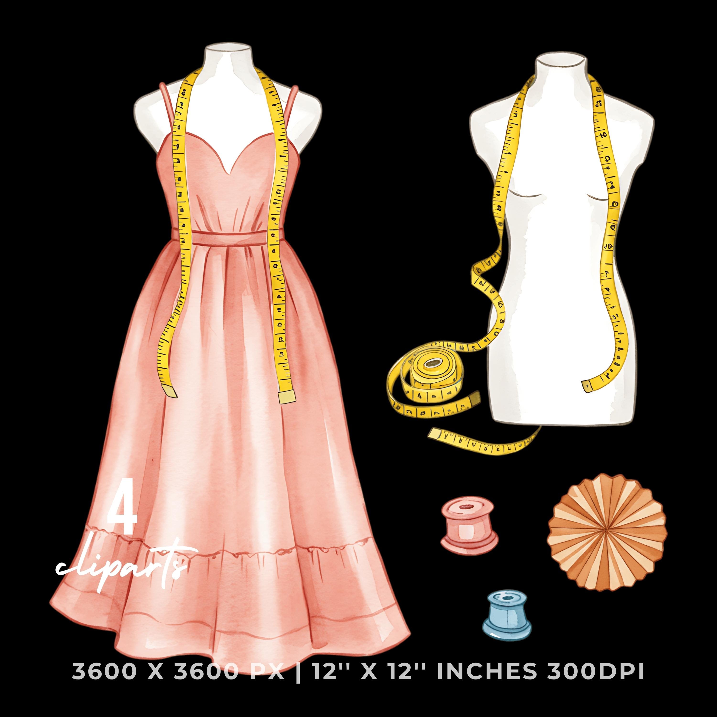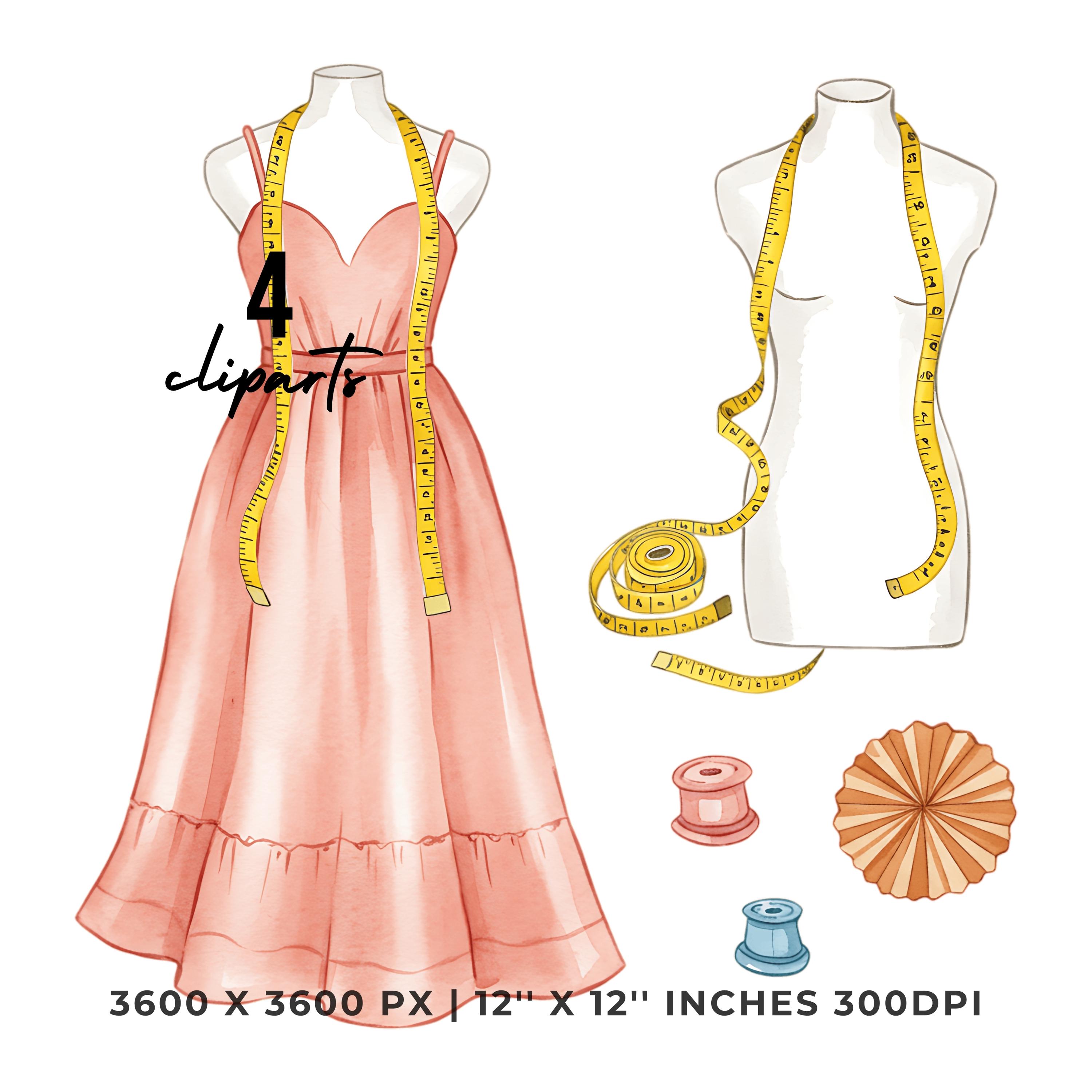 Tailor Stitching Summer Dress Clipart | Summer Dress Art | 4 PNG & 4 JPG | Sublimation Design | 12″x12″ 300DPI Graphic Commercial Use – Instant Digital Download - TumblersGalaxy