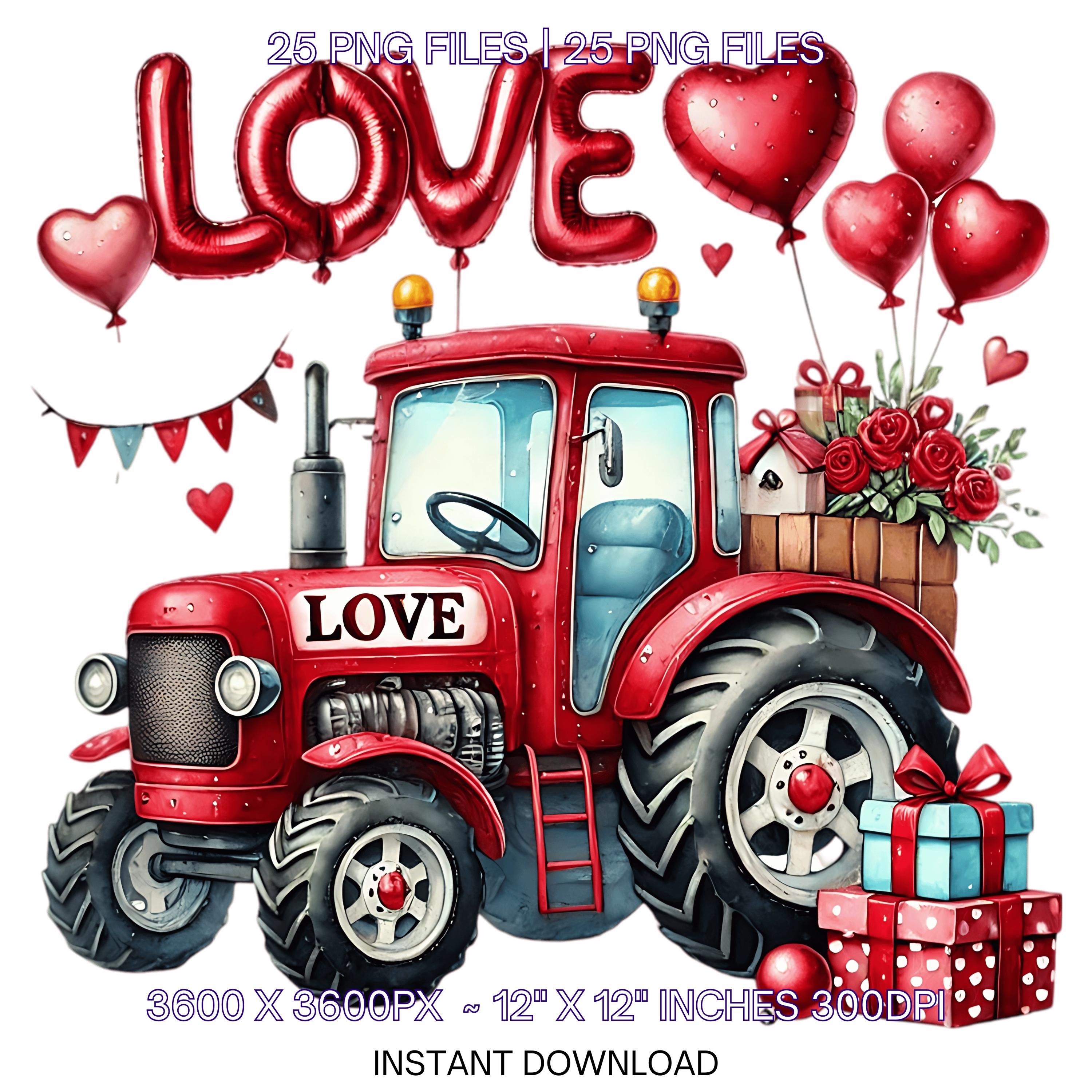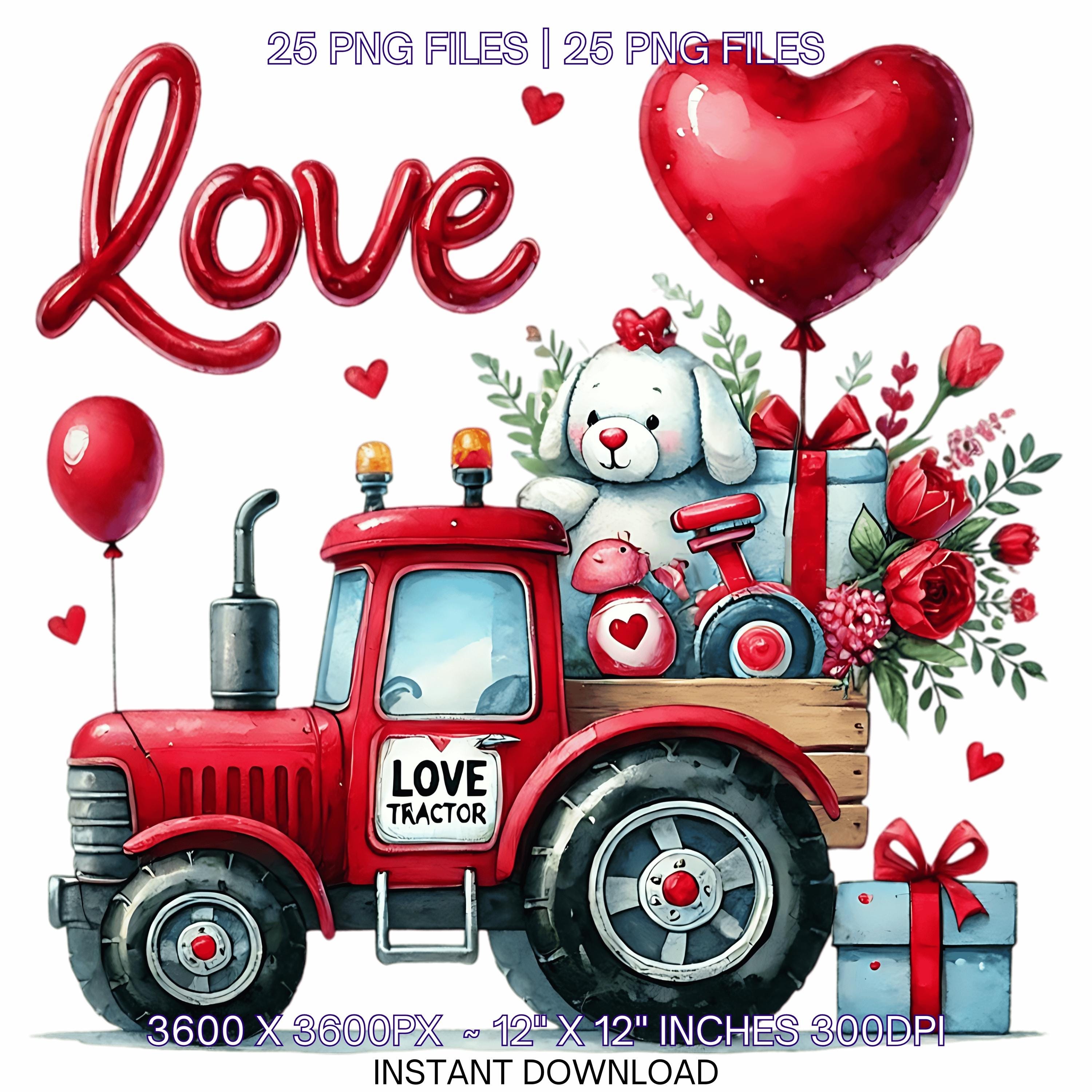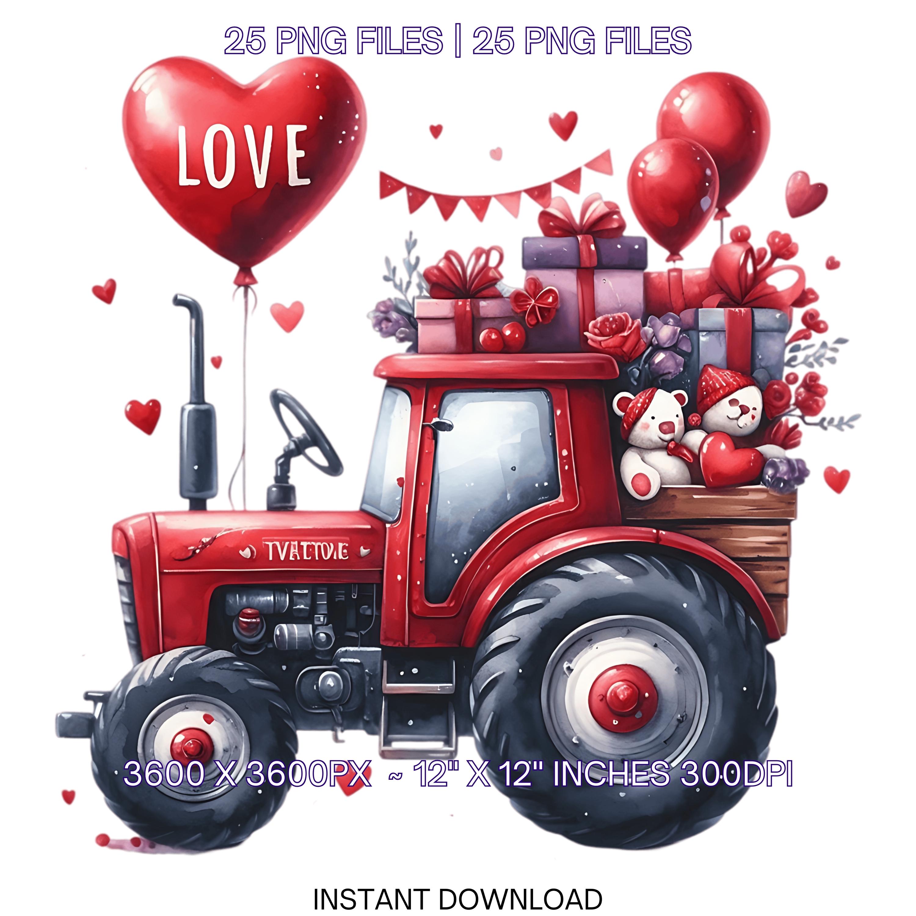 25 Valentine Tractor PNG Clipart | Watercolor Farm Tractor for Boys | Love Tractor Vehicle Cars PNG Commercial Use