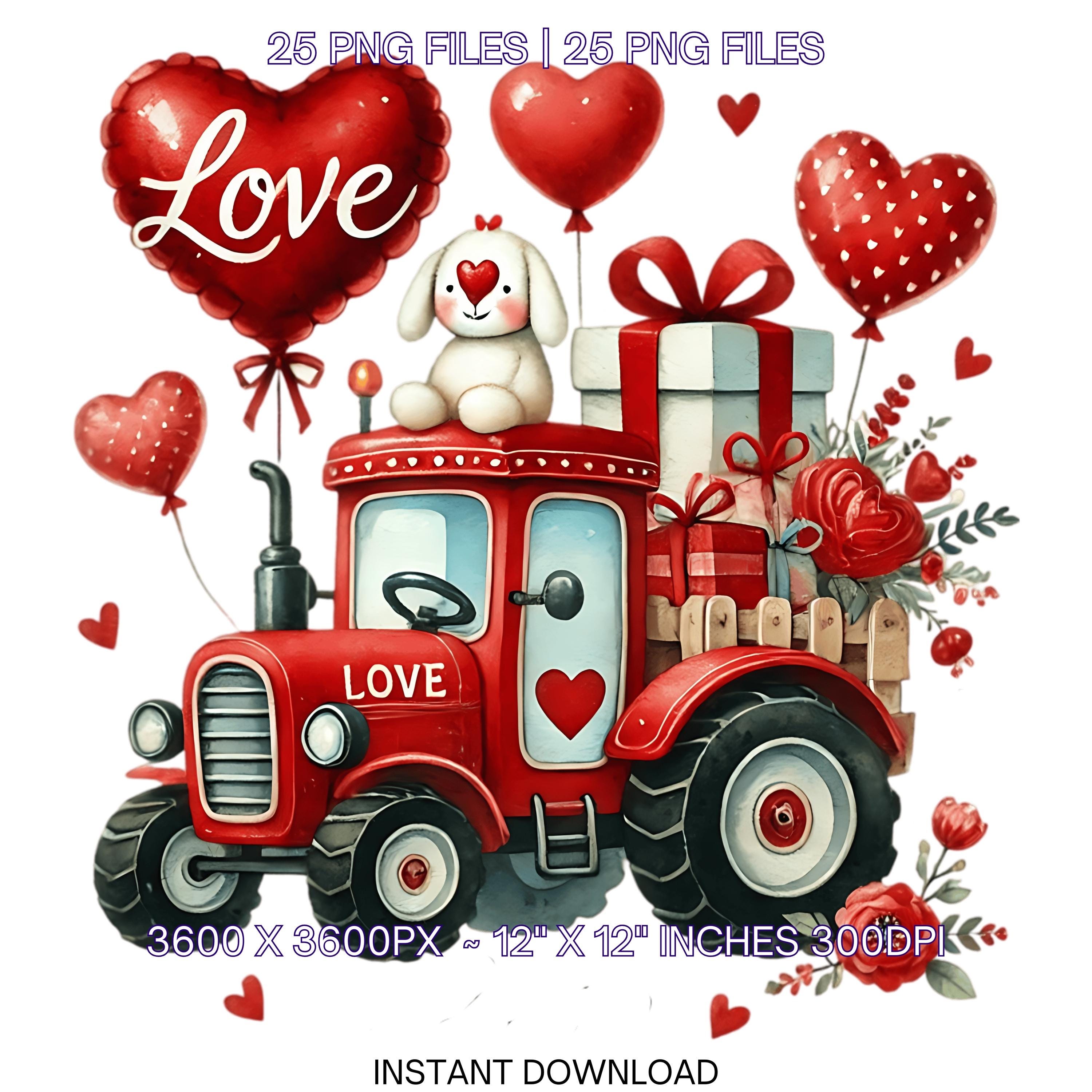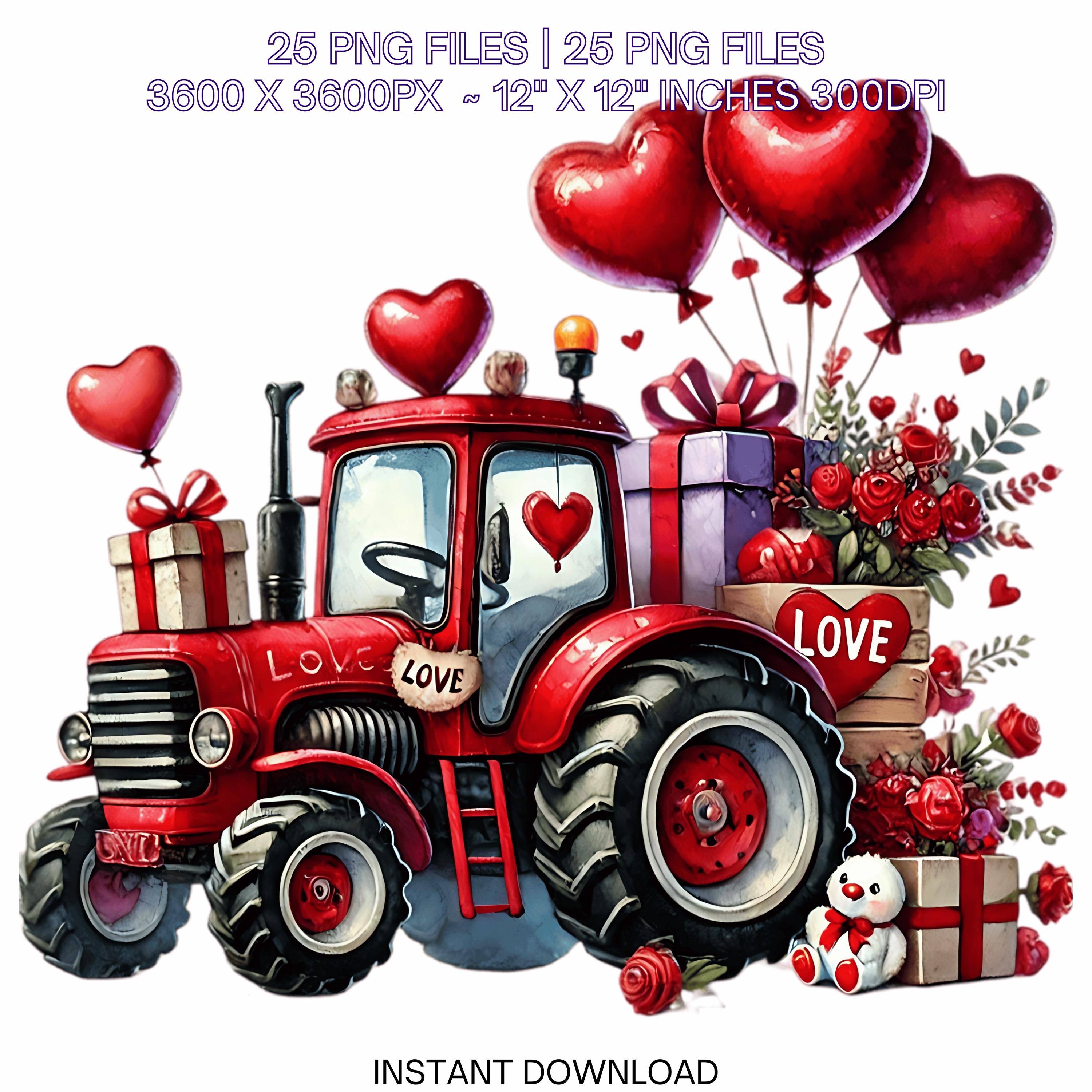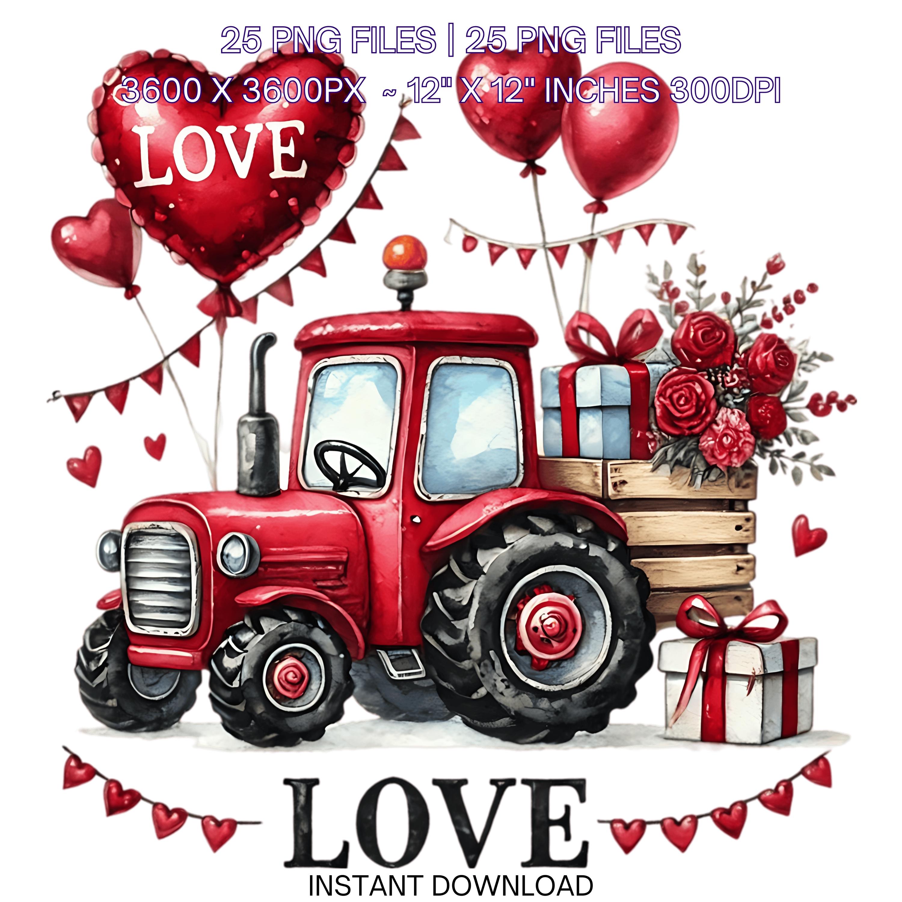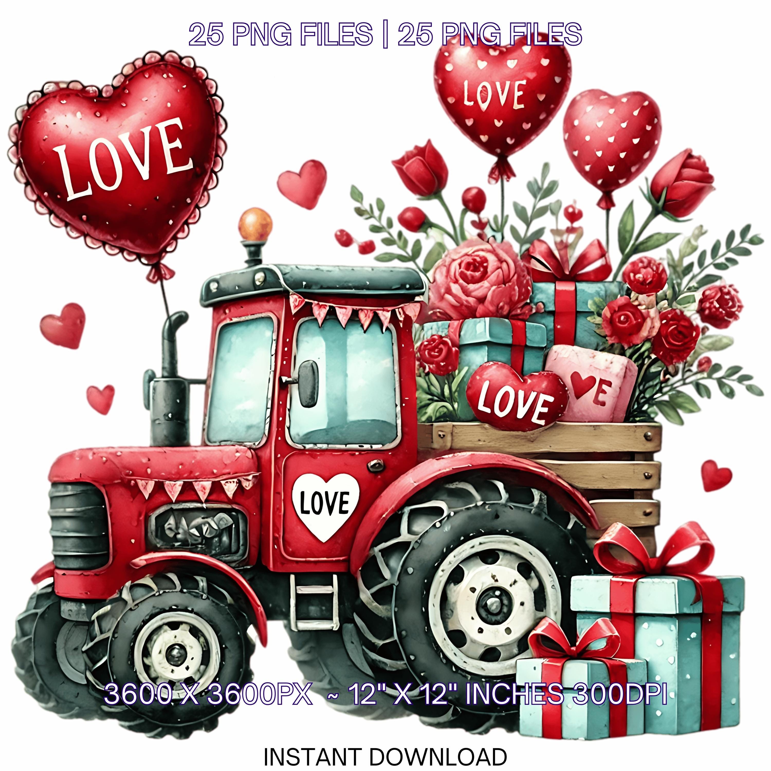 25 Valentine Tractor PNG Clipart | Watercolor Farm Tractor for Boys | Love Tractor Vehicle Cars PNG Commercial Use