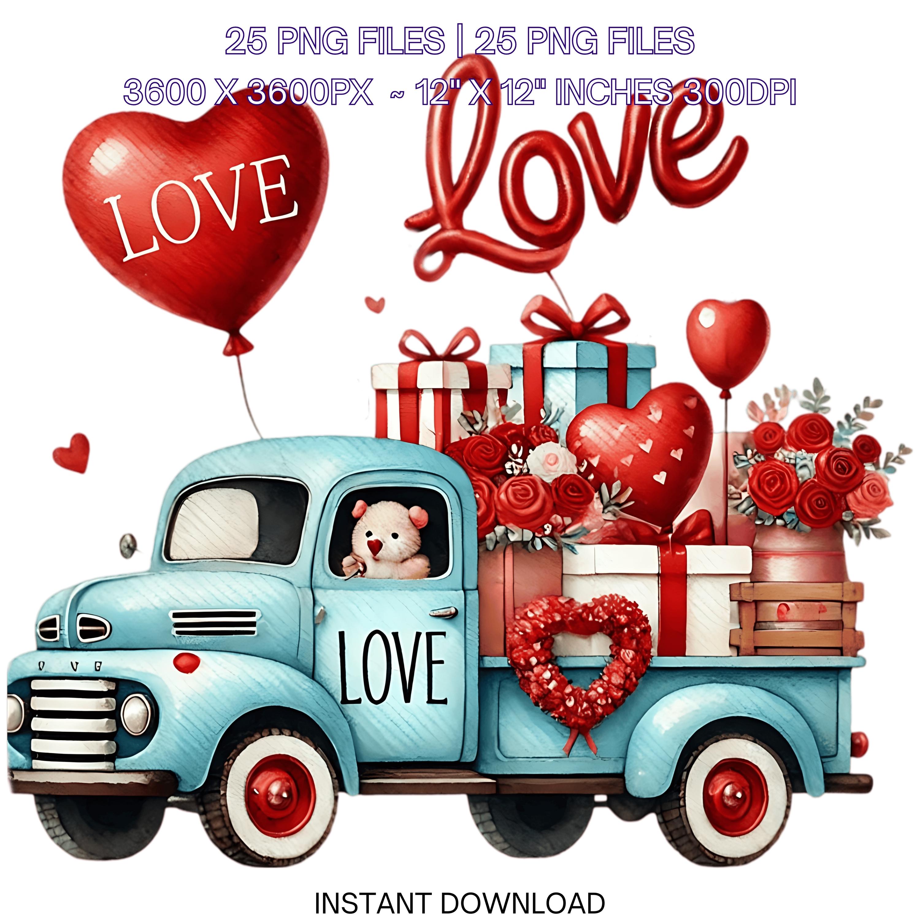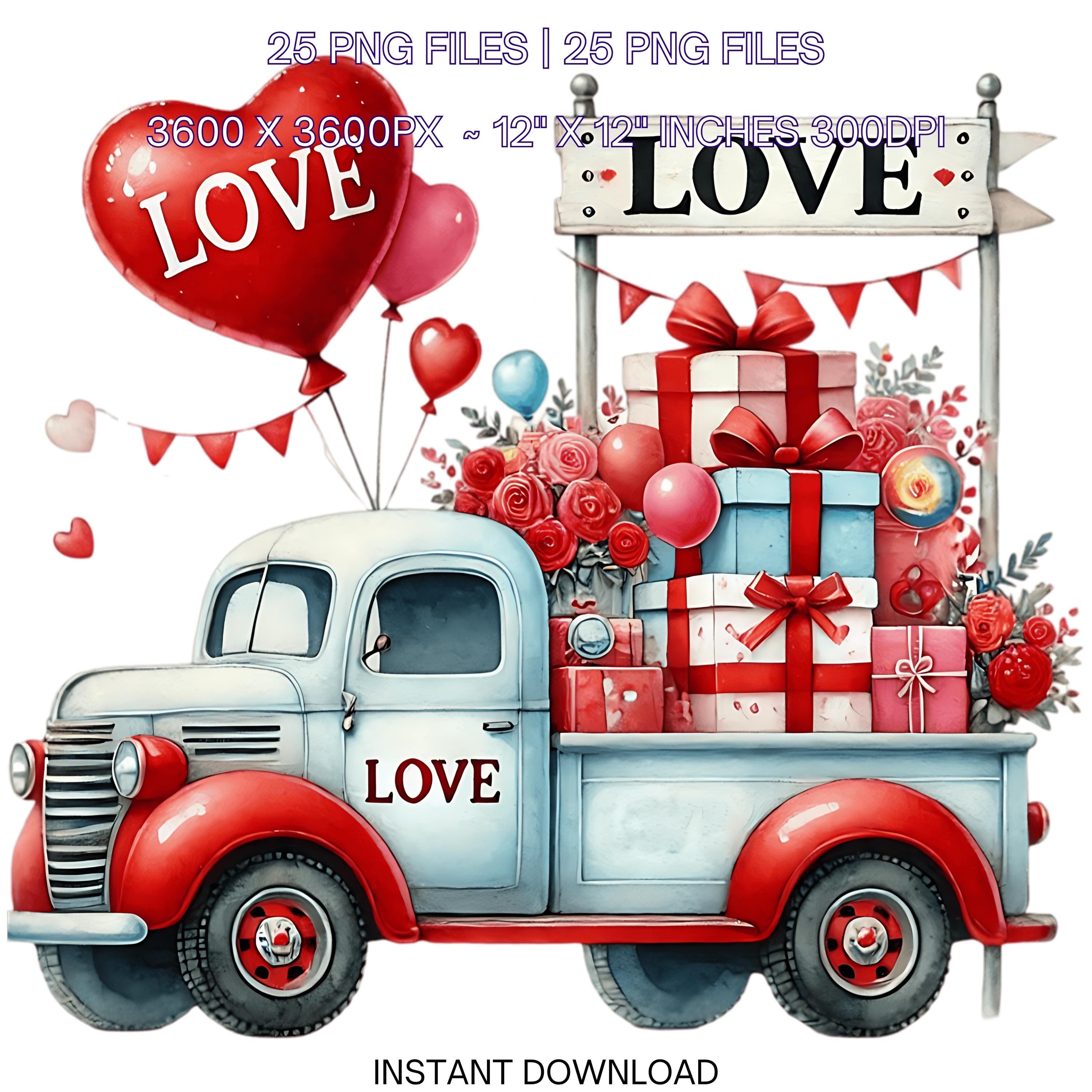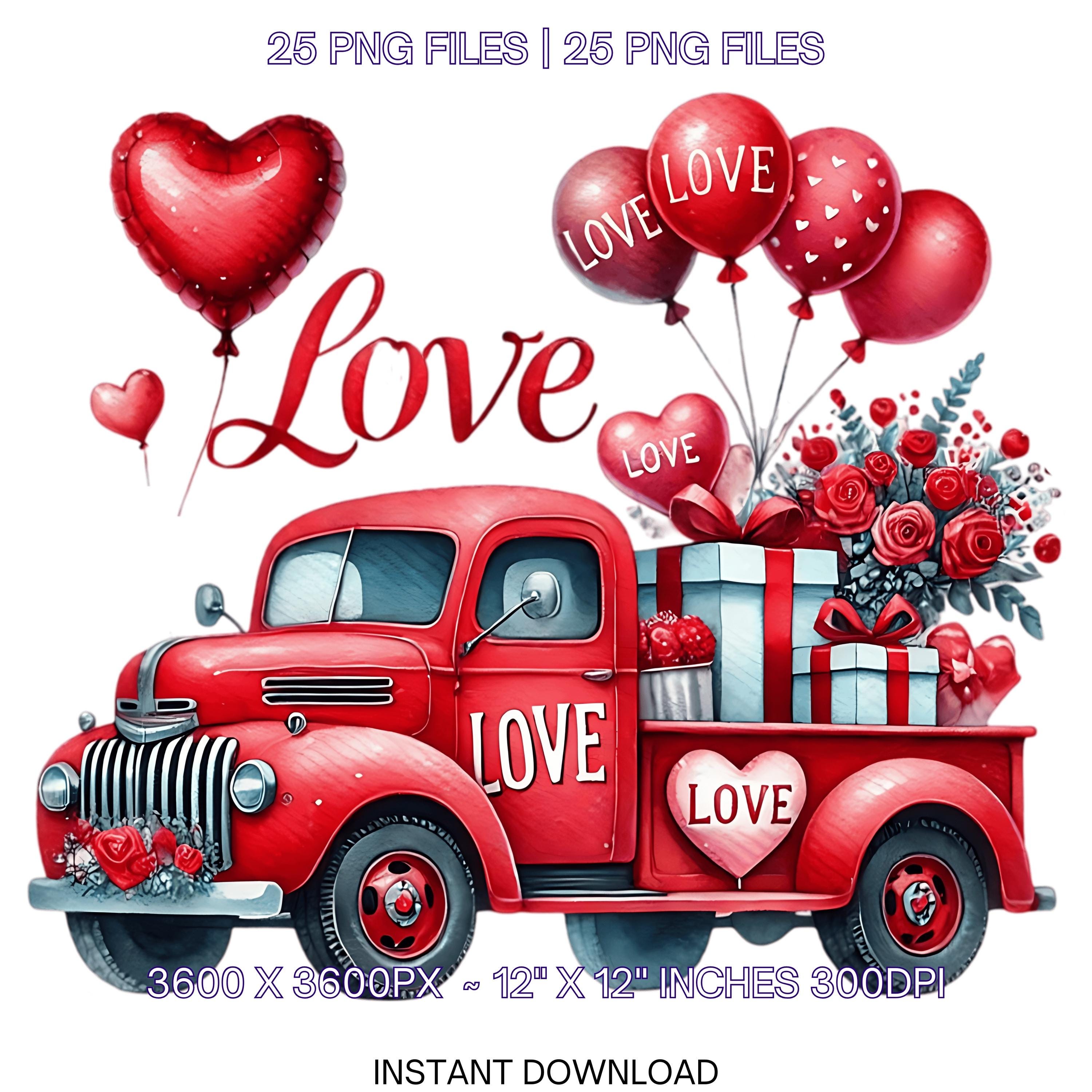 25 Valentine Truck PNG Clipart | Watercolor 4×4 Car for Boys | Love Off-road Vehicle Cars PNG | Valentine’s Day Truck | Commercial Use