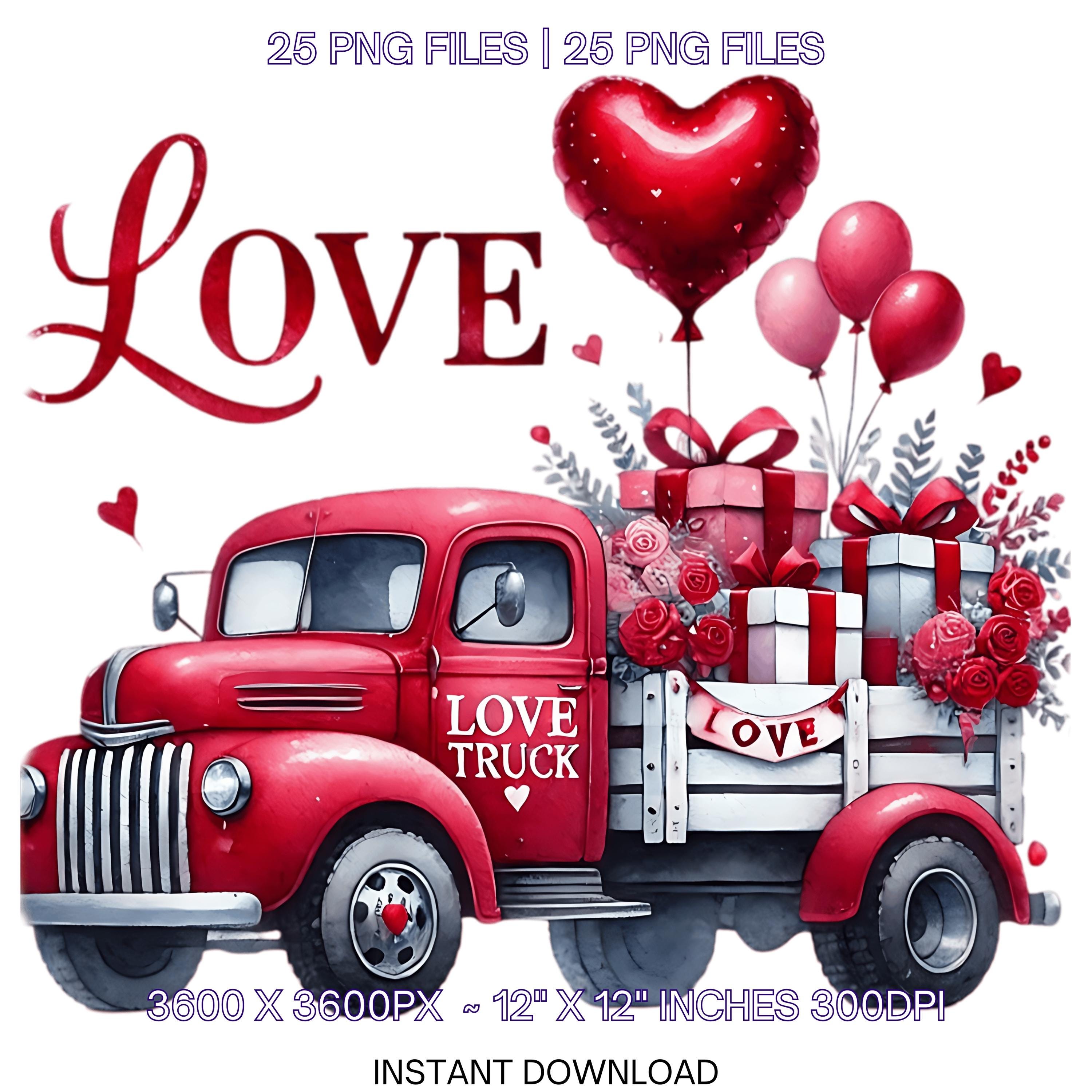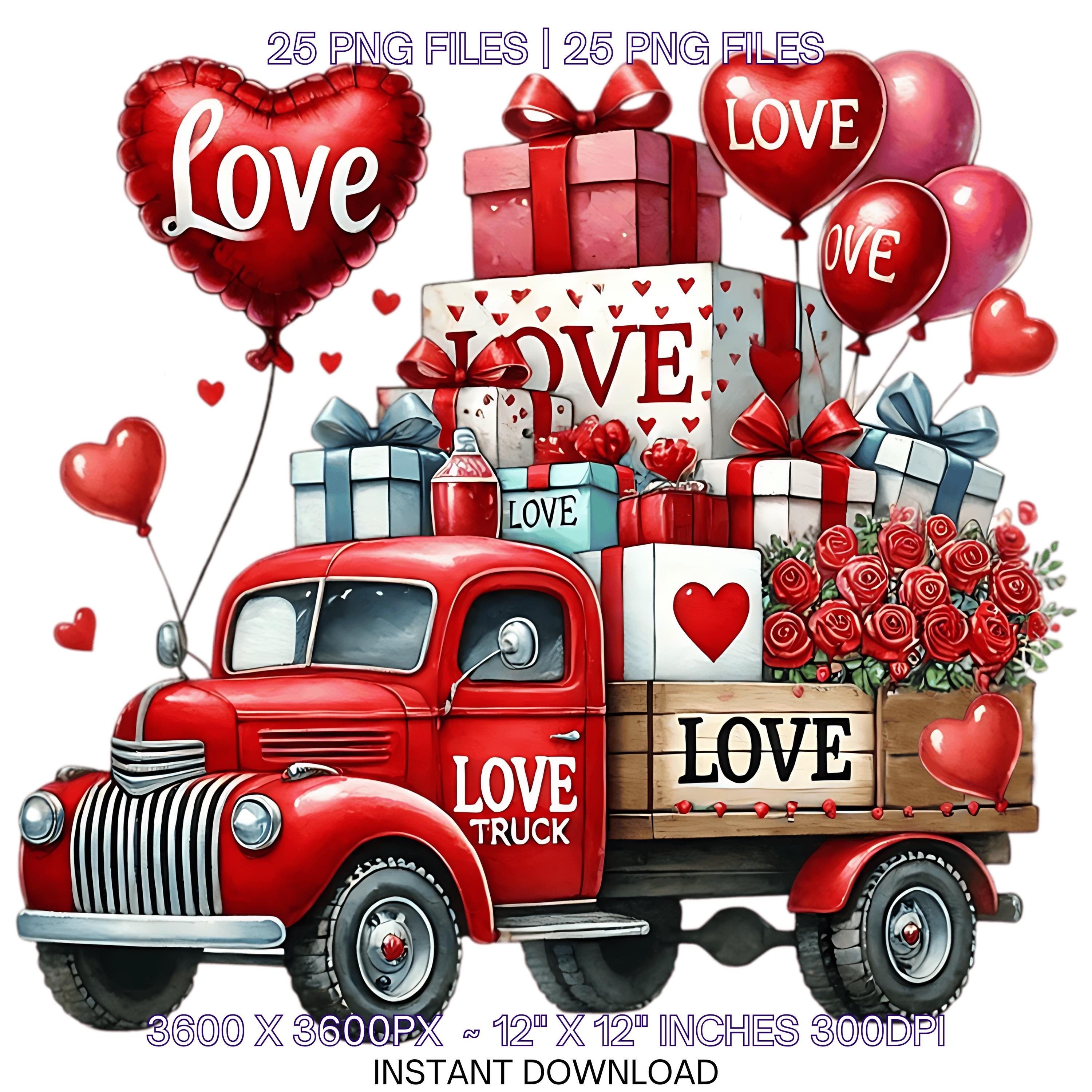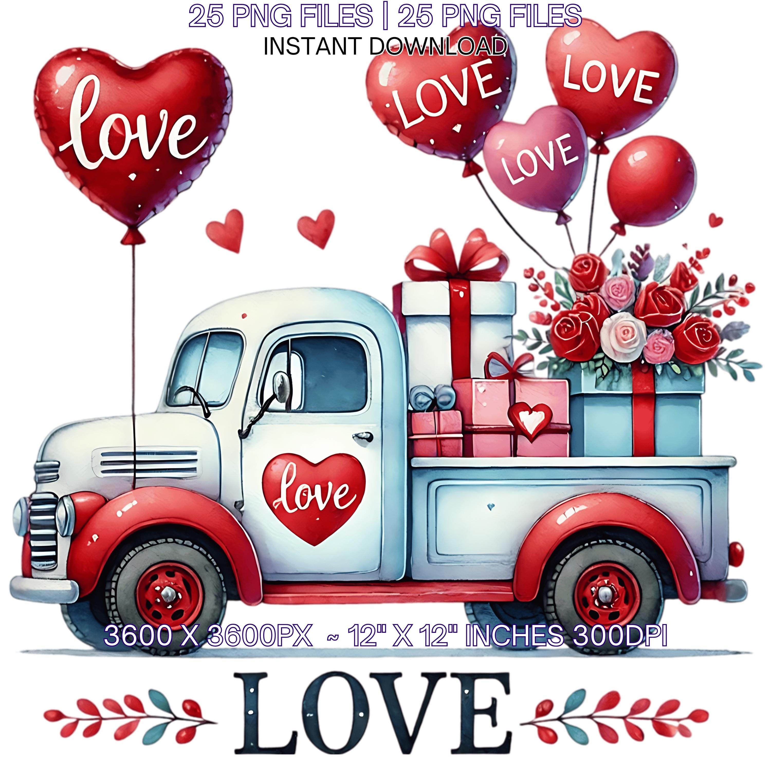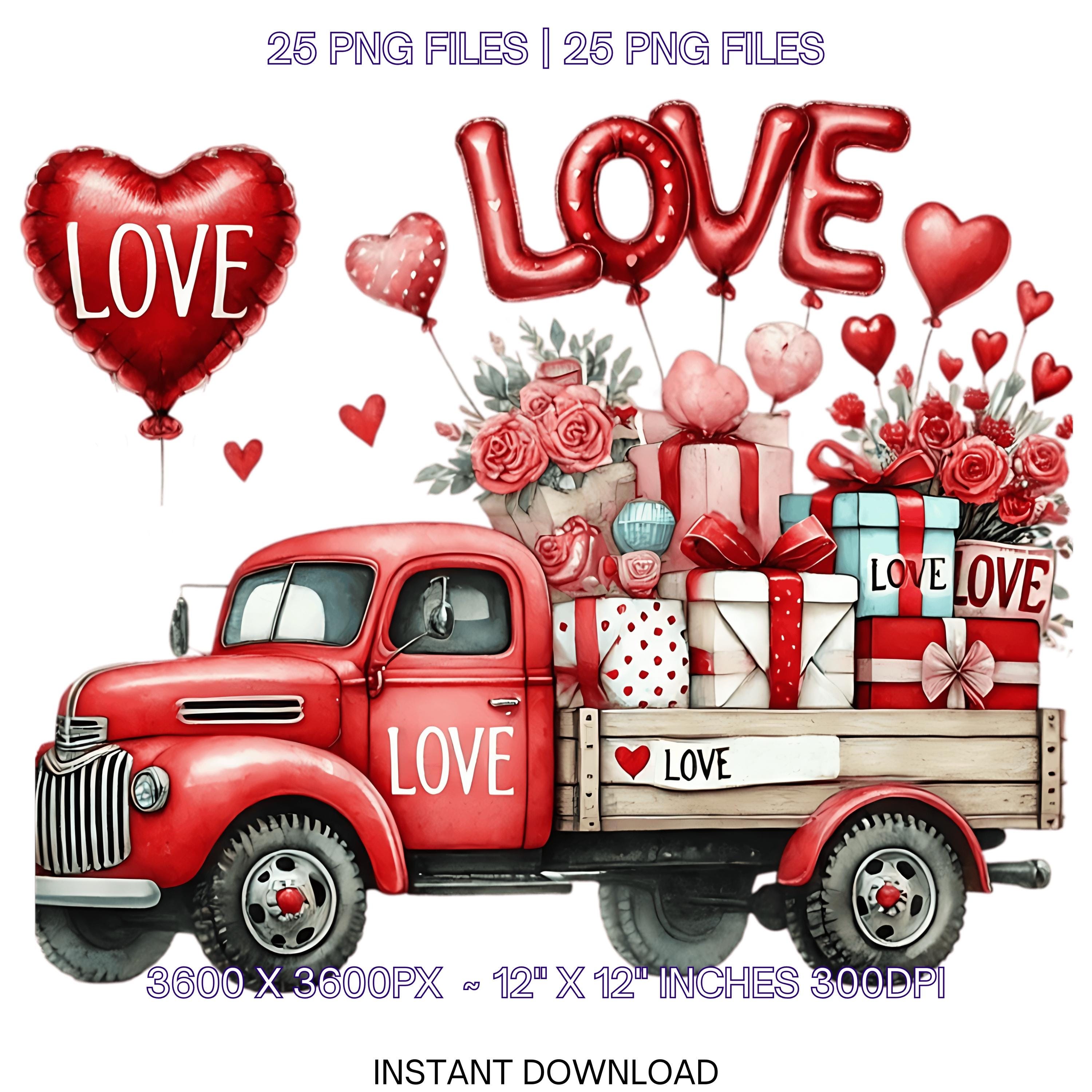 25 Valentine Truck PNG Clipart | Watercolor 4×4 Car for Boys | Love Off-road Vehicle Cars PNG | Valentine’s Day Truck | Commercial Use