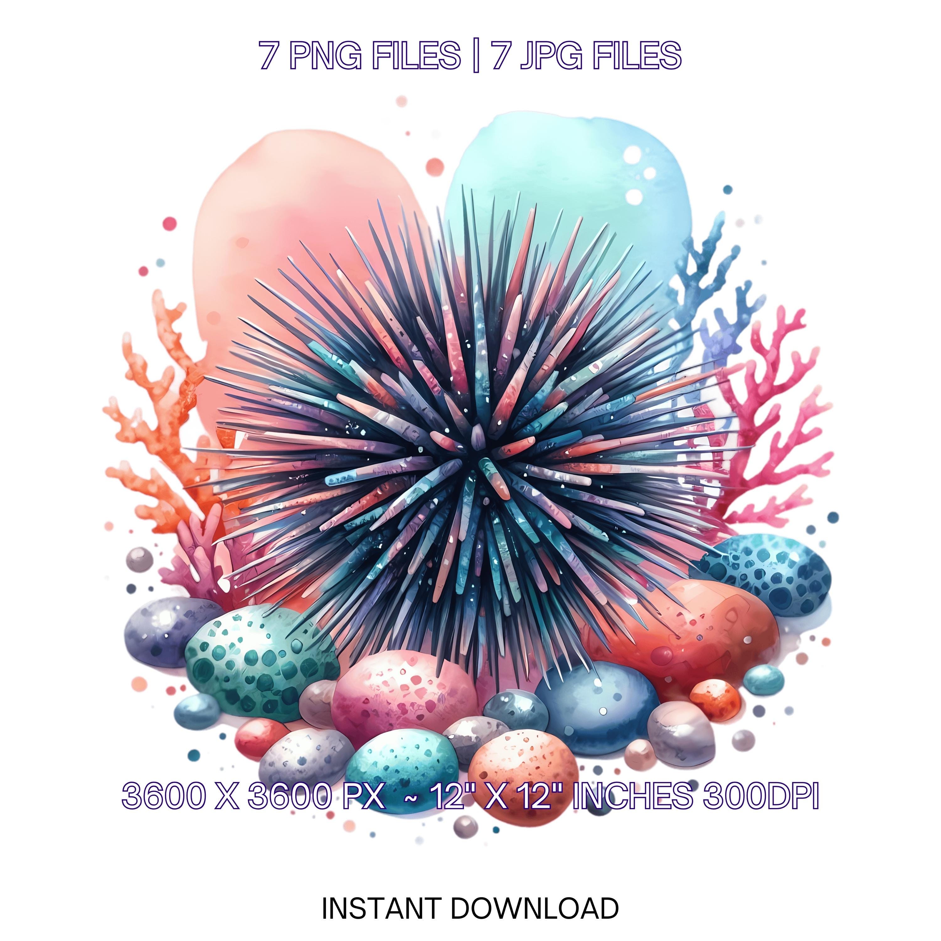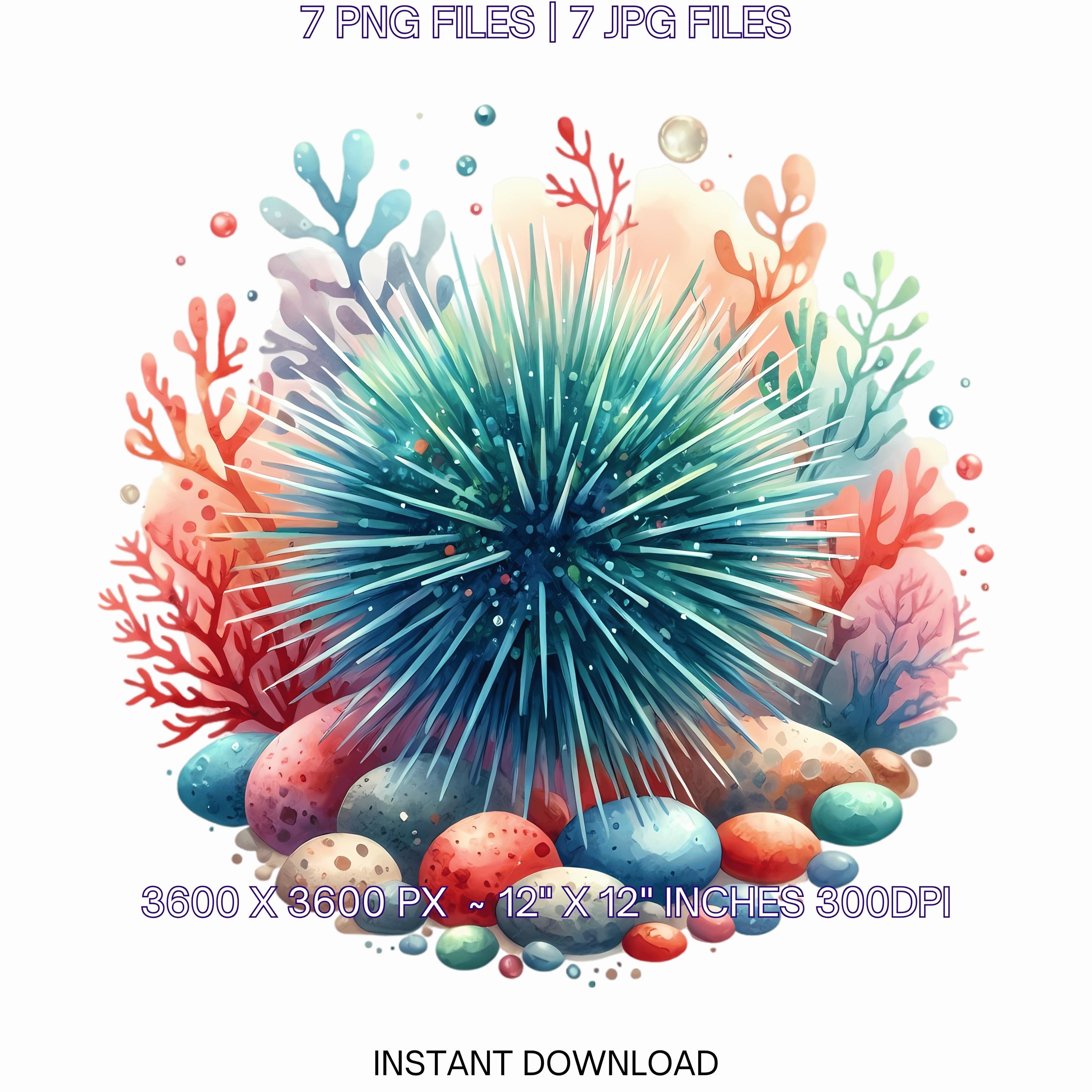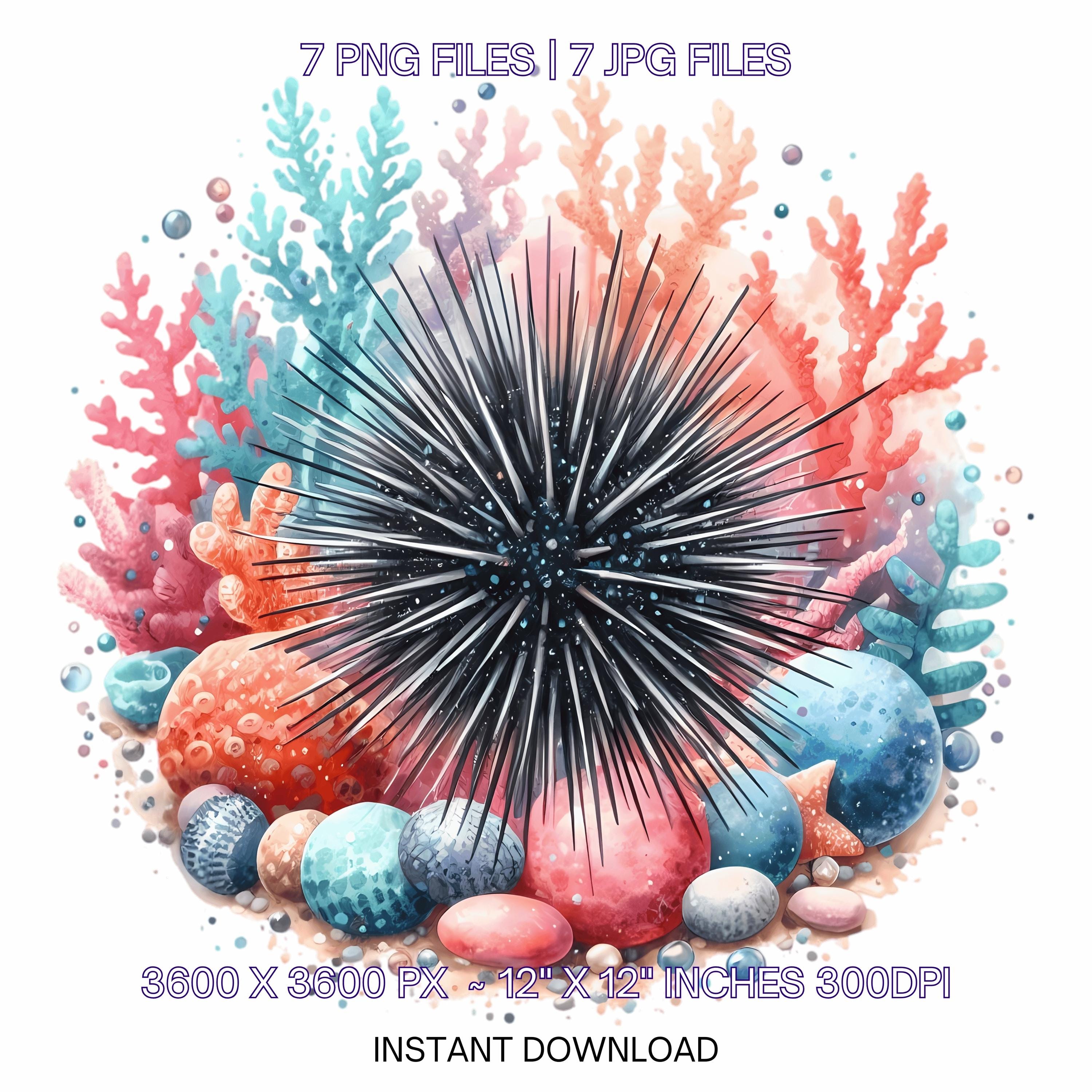 Urchin Clipart PNG | 7 Spiky Sea Urchin with colorful coral, pebbles, and whimsical marine vibe | Underwater Sublimation Commercial Use – Instant Digital Download - TumblersGalaxy