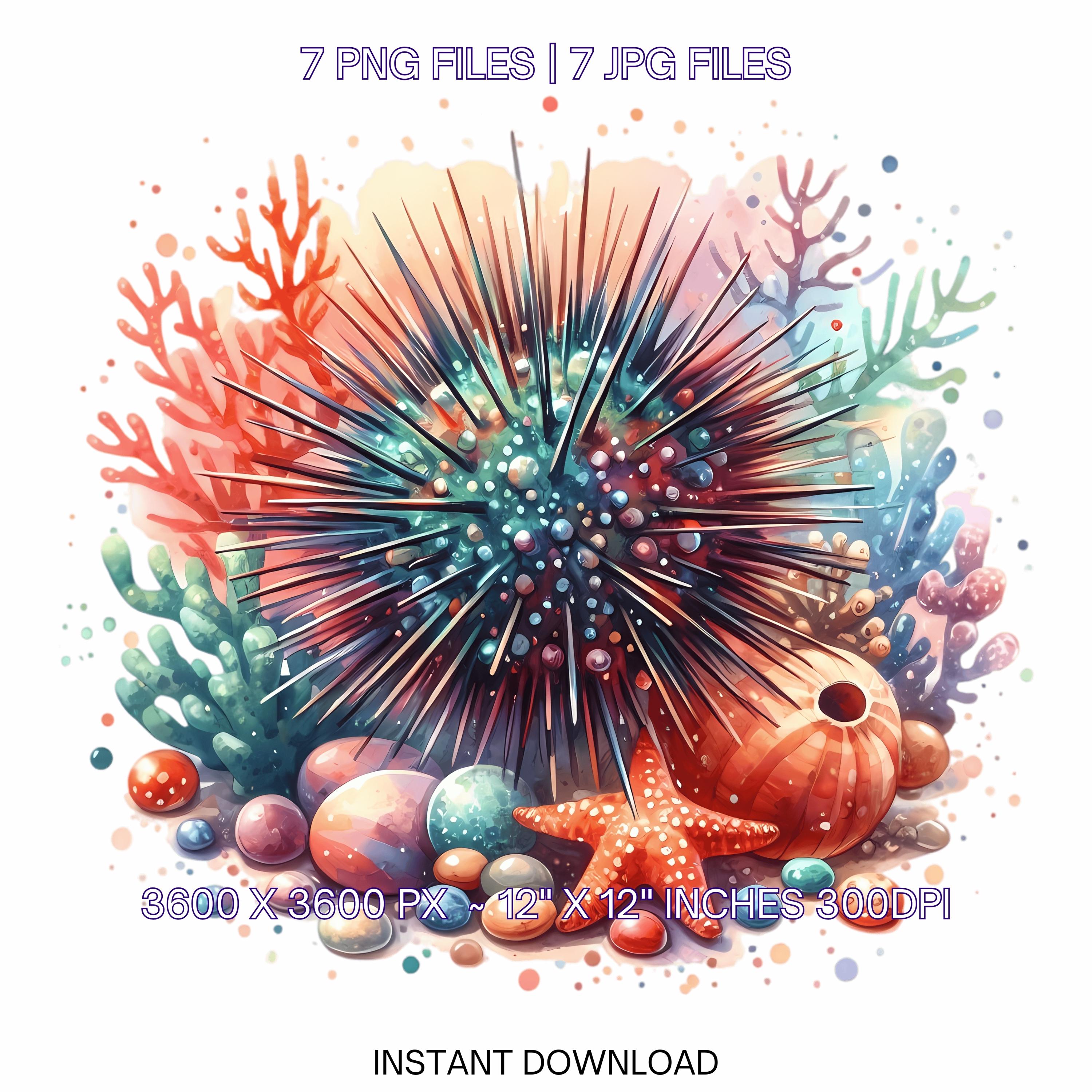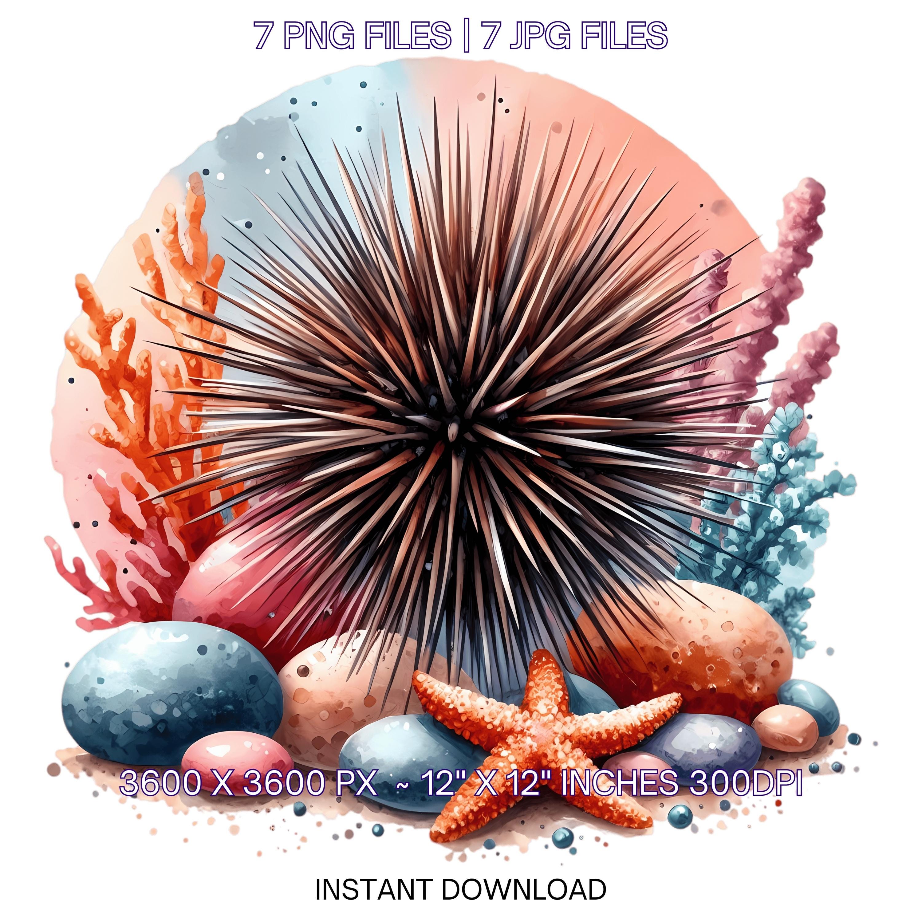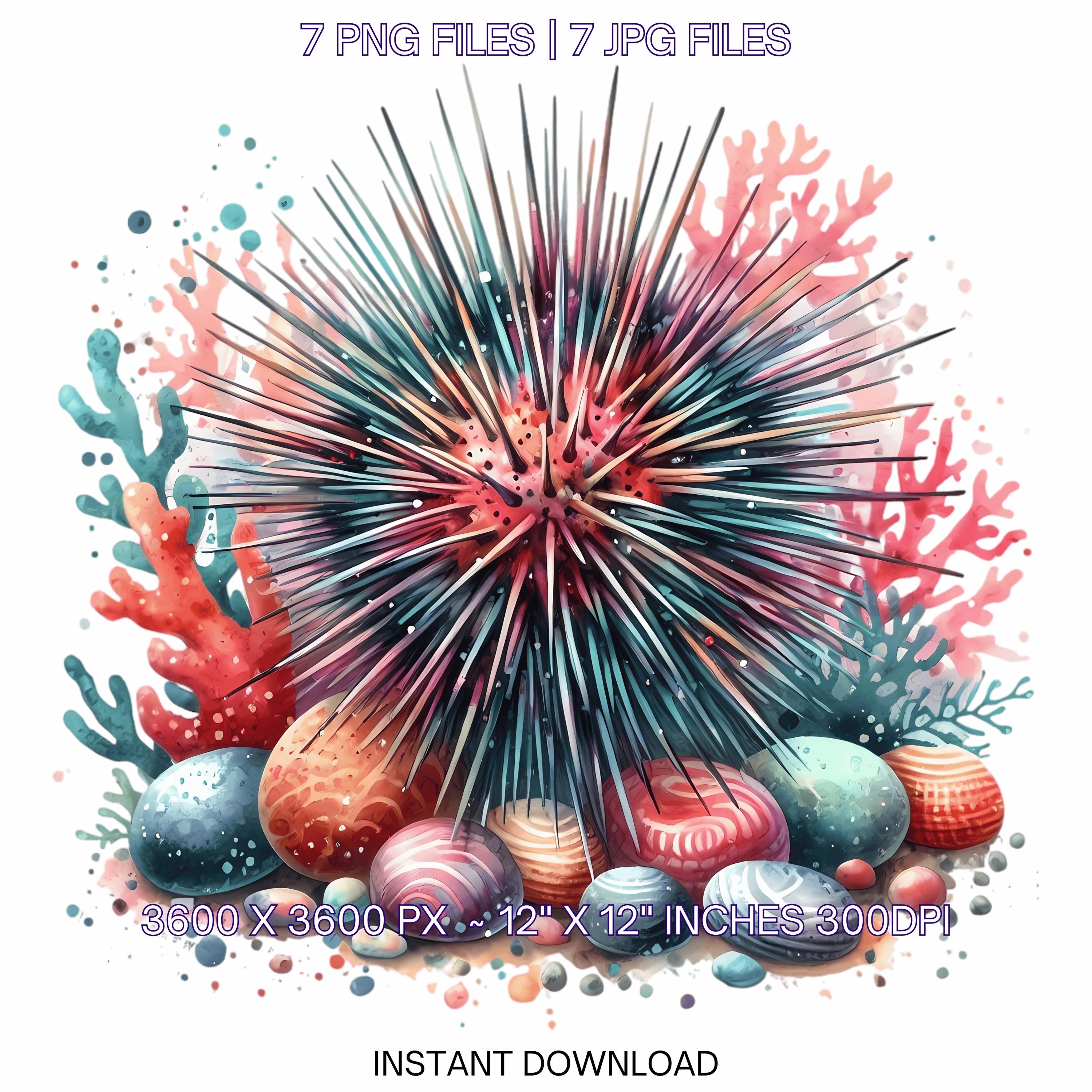 Urchin Clipart PNG | 7 Spiky Sea Urchin with colorful coral, pebbles, and whimsical marine vibe | Underwater Sublimation Commercial Use – Instant Digital Download - TumblersGalaxy