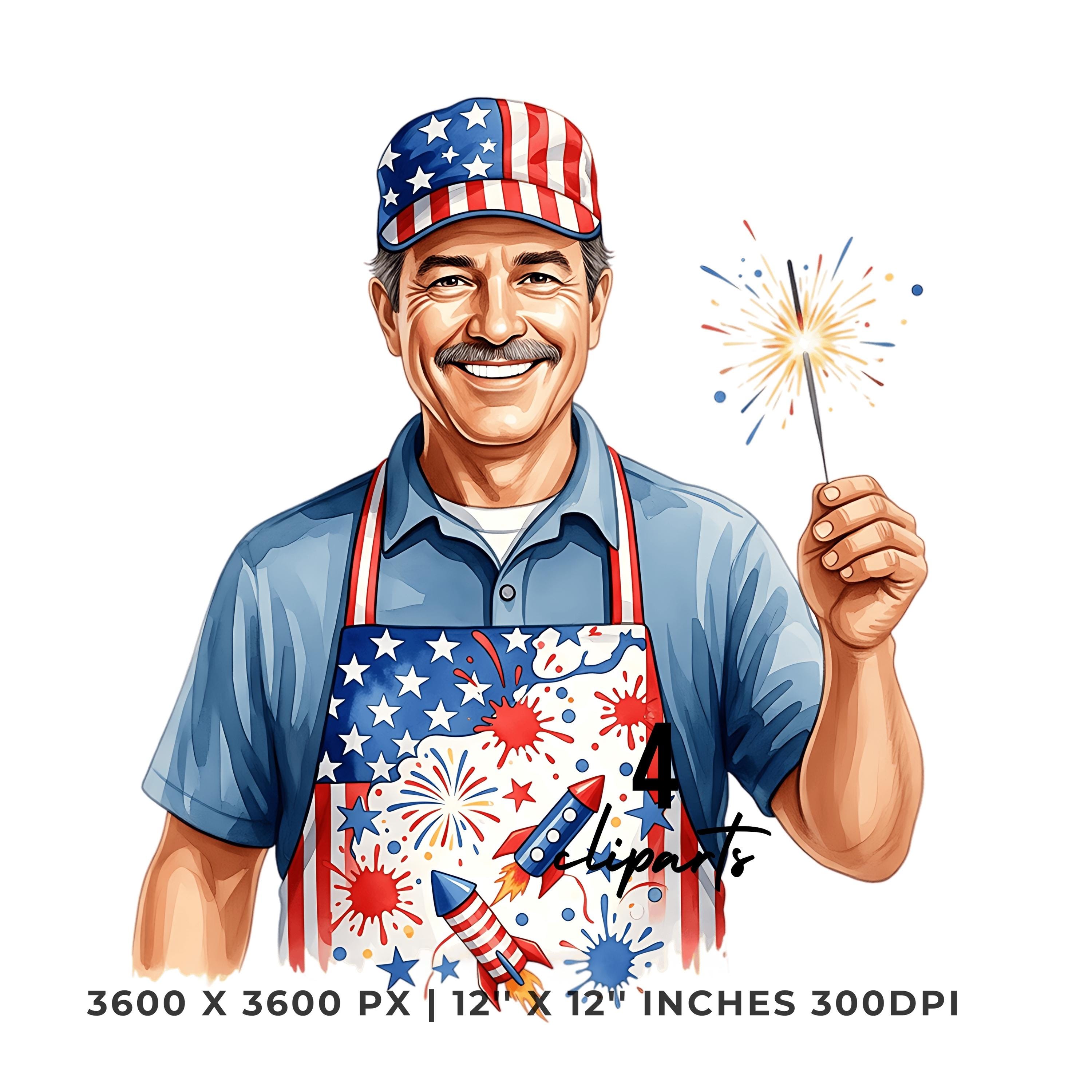 USA National Day png Clipart | Watercolor Fireworks Stand Worker | US 4 July Fireworks Man 4 png – 4 jpg Graphic Commercial Use is an eye-catching, high-resolution digital asset designed for creators, crafters, teachers, and small business owners looking to elevate their visuals.