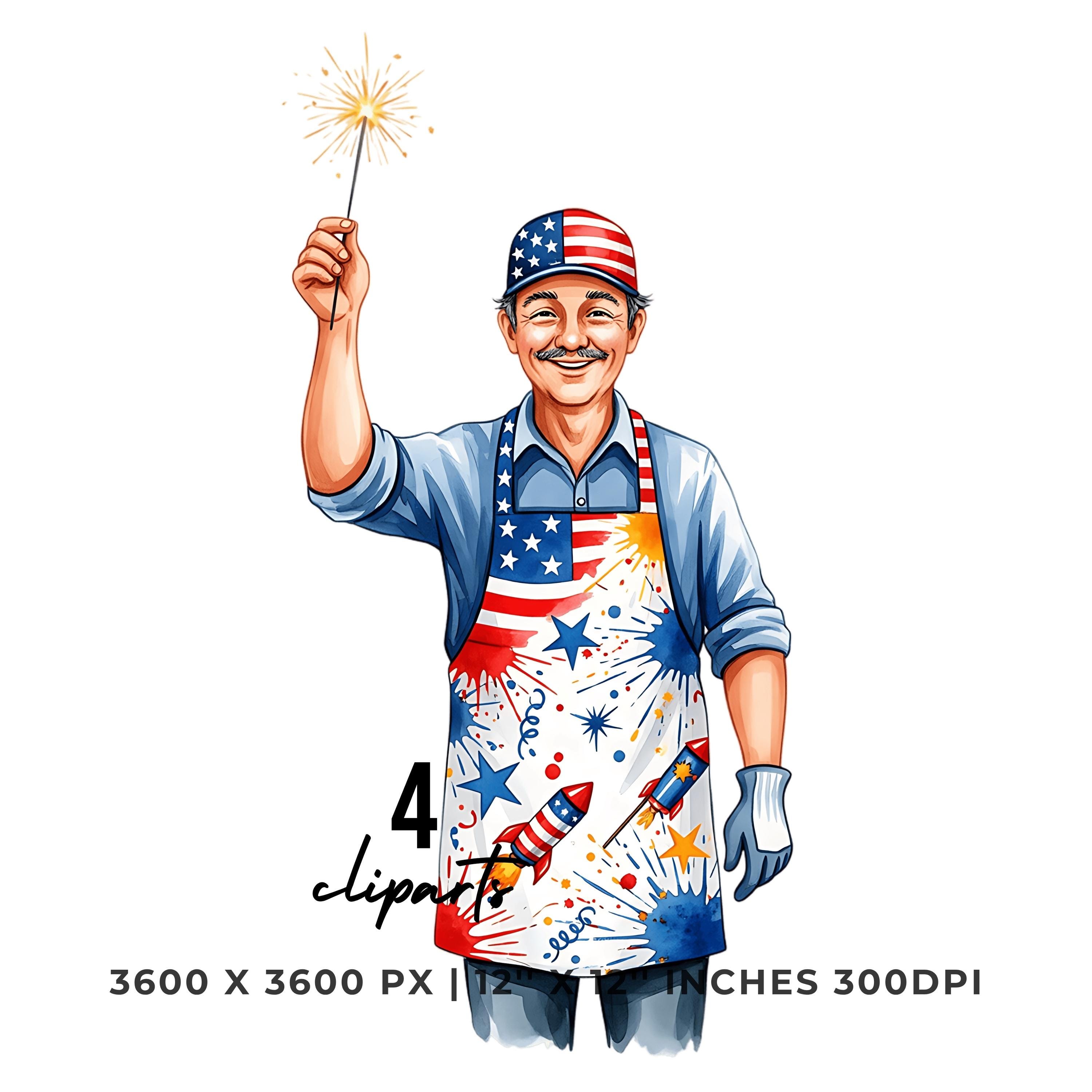 USA National Day png Clipart | Watercolor Fireworks Stand Worker | US 4 July Fireworks Man 4 png – 4 jpg Graphic Commercial Use