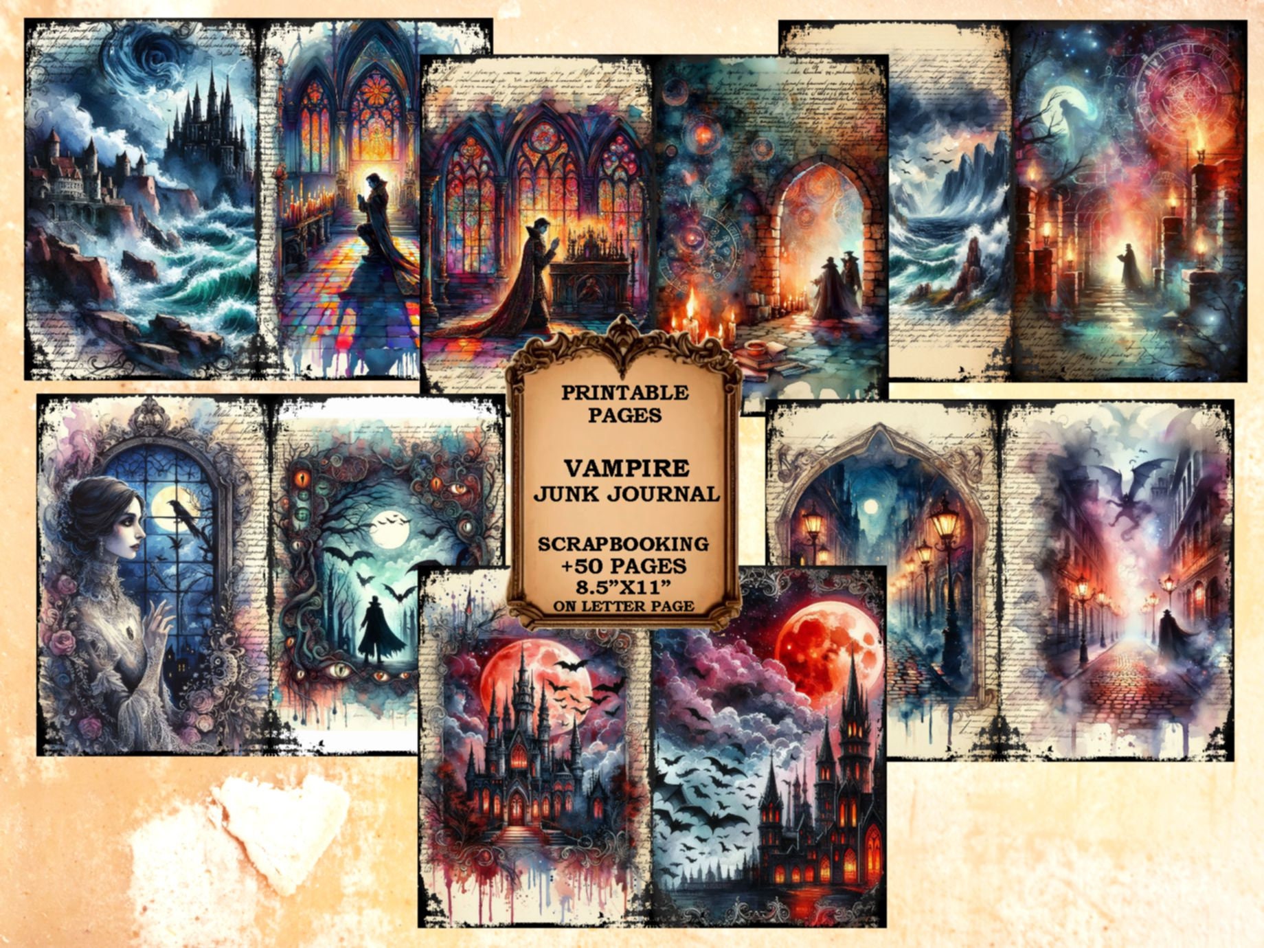Vampire Story Scrapbook Pages | Scary Junk Journal Kit | Horror Junk Journal Kit | Halloween Creepy Journaling | 50+ Letter Digital Pages is an eye-catching, high-resolution digital asset designed for creators, crafters, teachers, and small business owners looking to elevate their visuals.