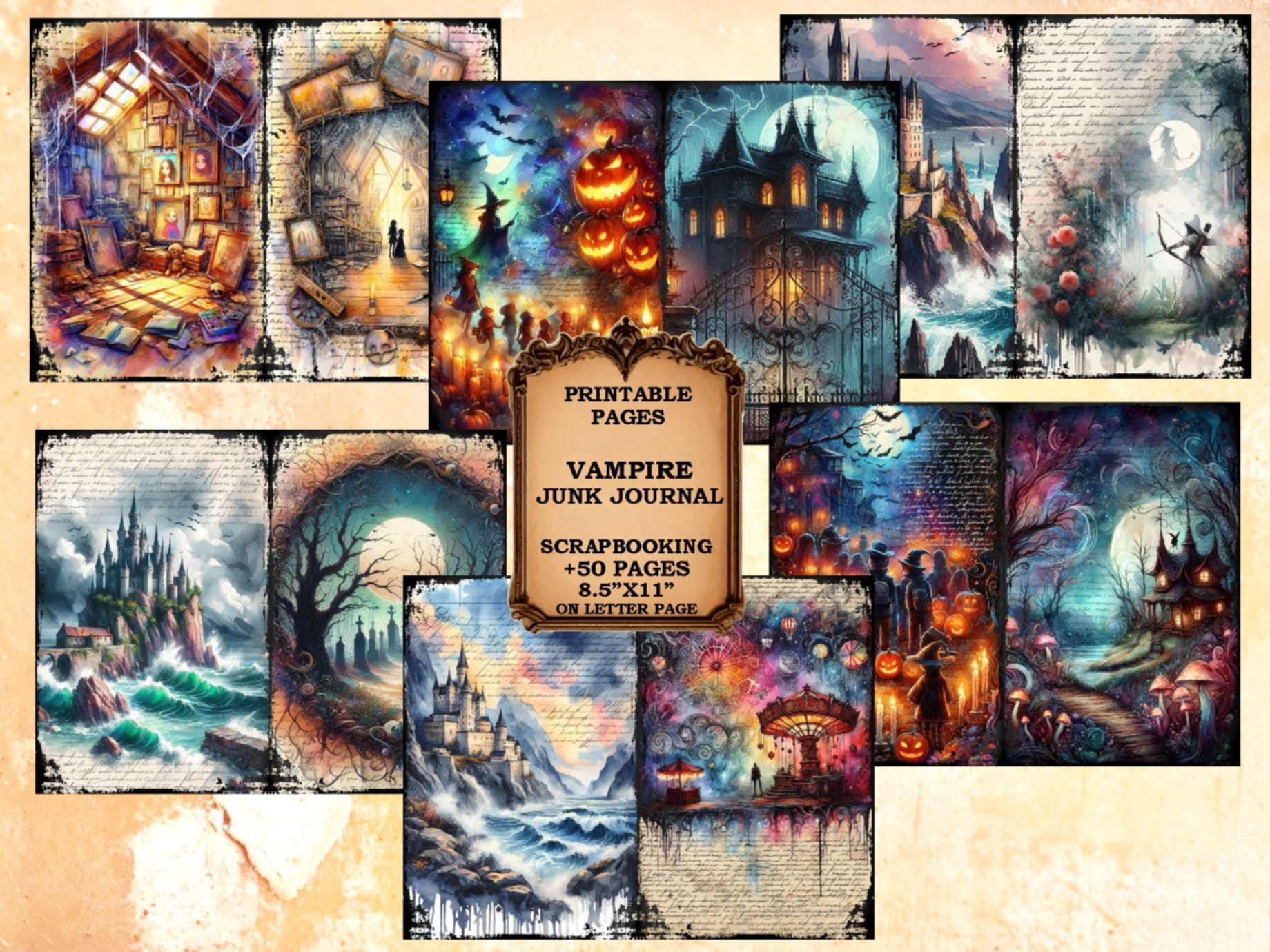 Printable Vampire Scrapbook Pages | Scary Junk Journal Kit | 50+ 8.5″x11″ Digital Download