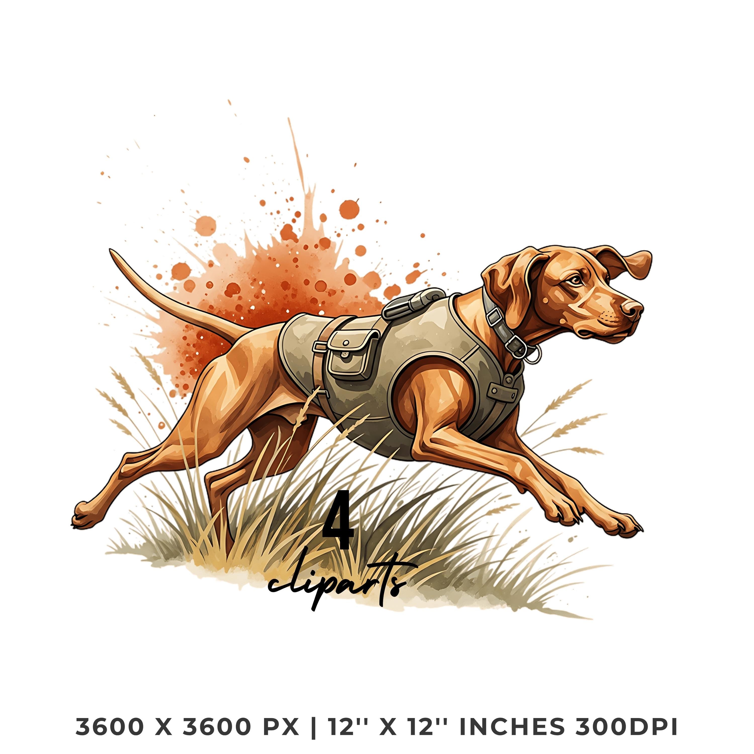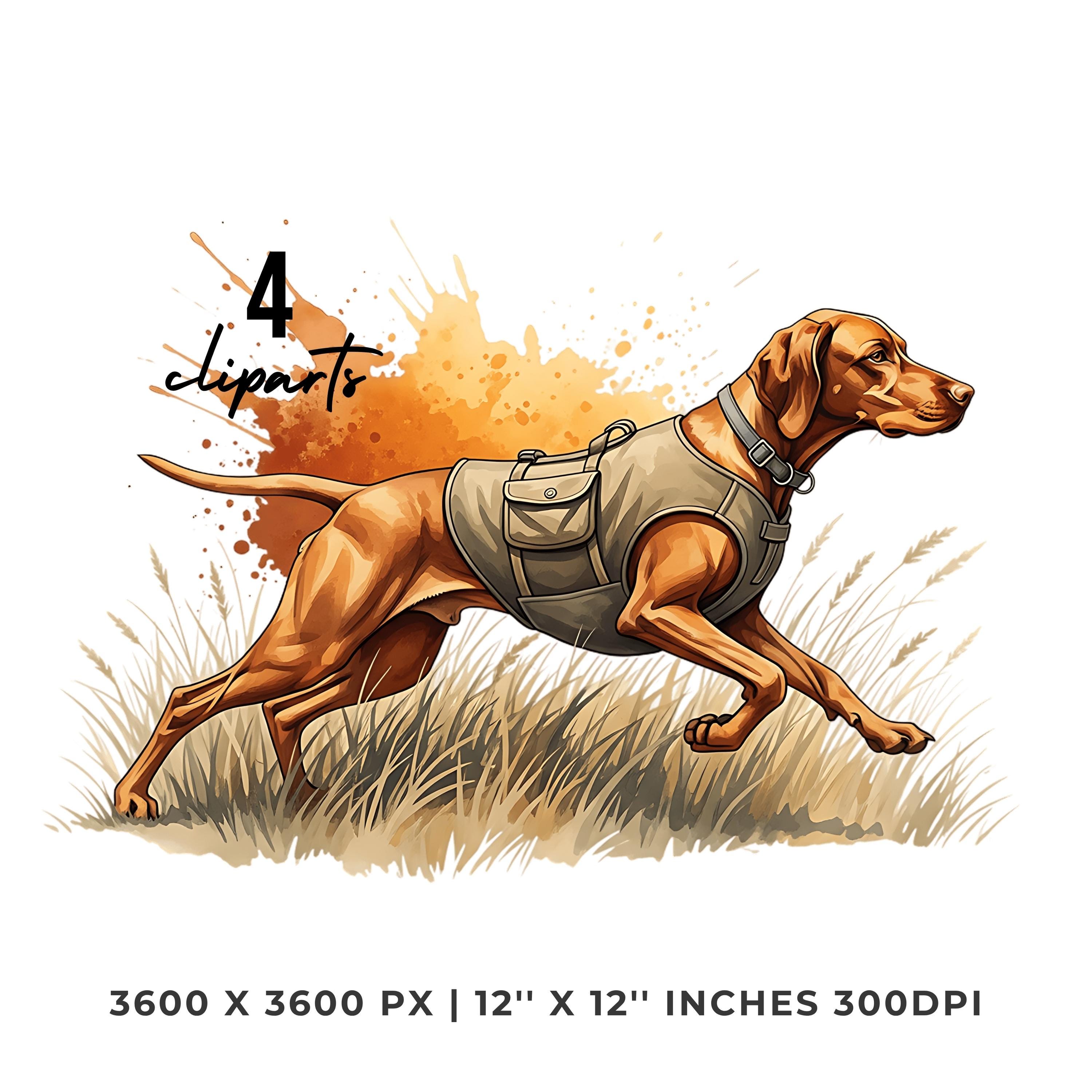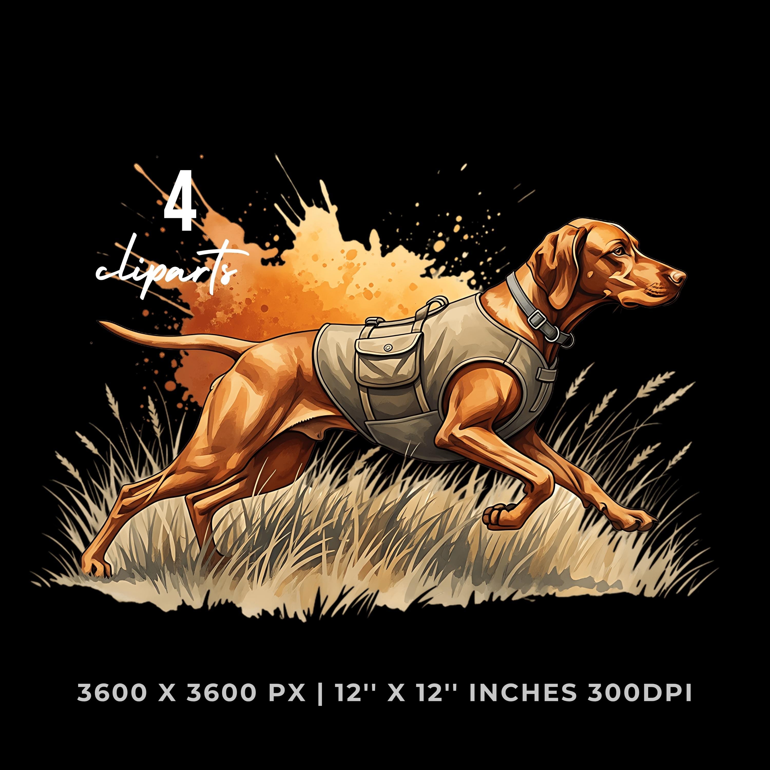 Vizsla Hunting Dog Clipart | Fall Field Dog Art | Dog running in the field | 4 PNG & 4 JPG Sublimation Transparent Hi-Res Commercial Use is an eye-catching, high-resolution digital asset designed for creators, crafters, teachers, and small business owners looking to elevate their visuals.
