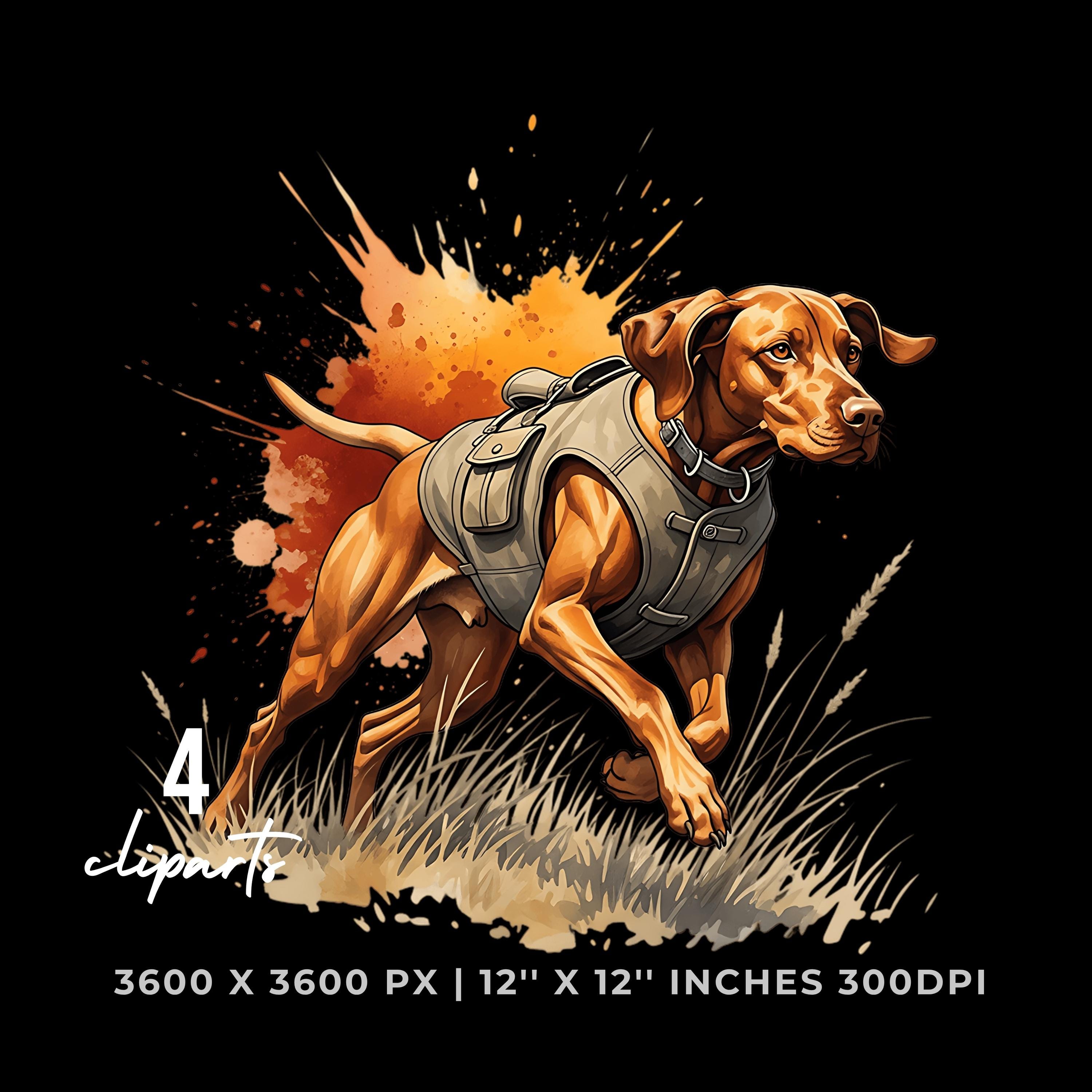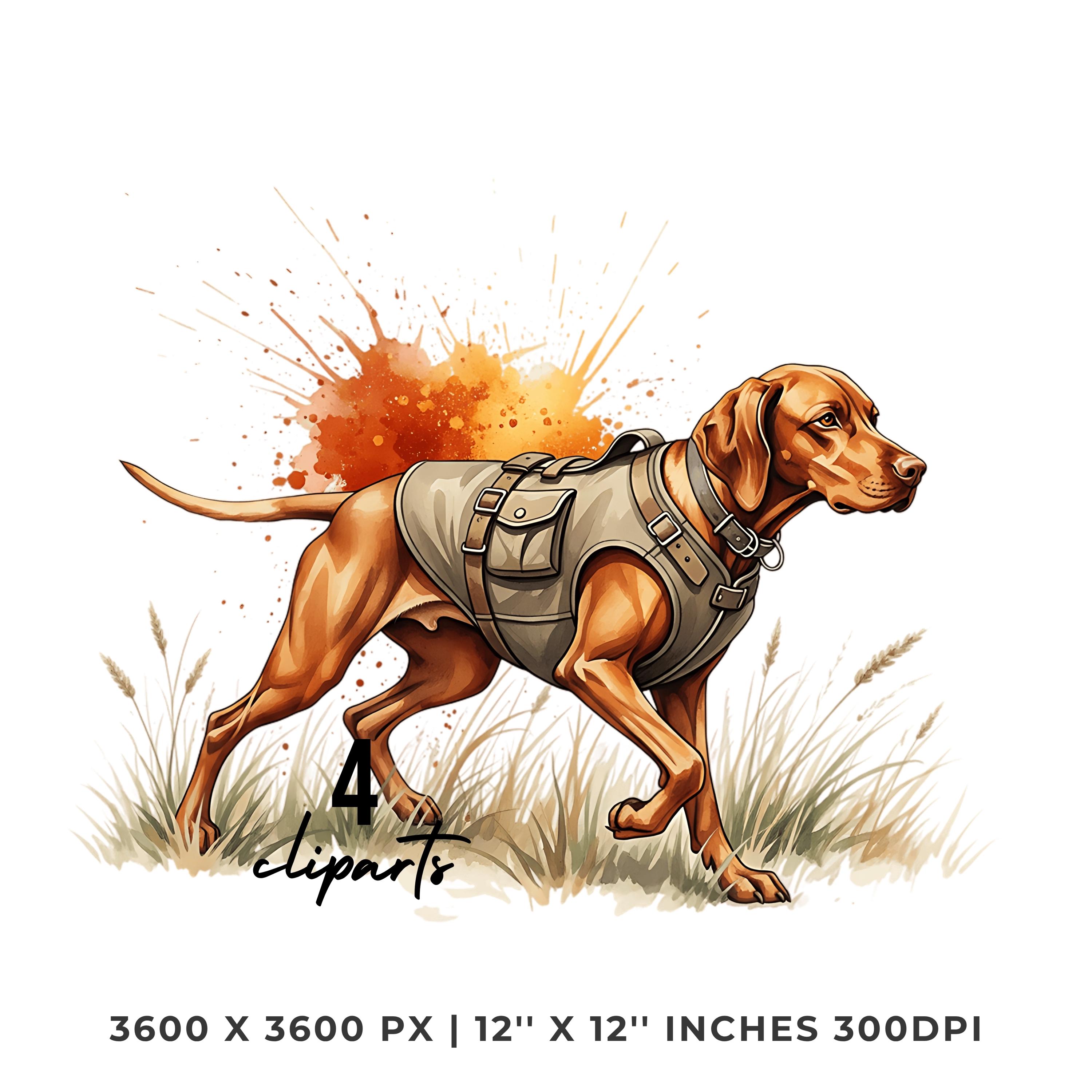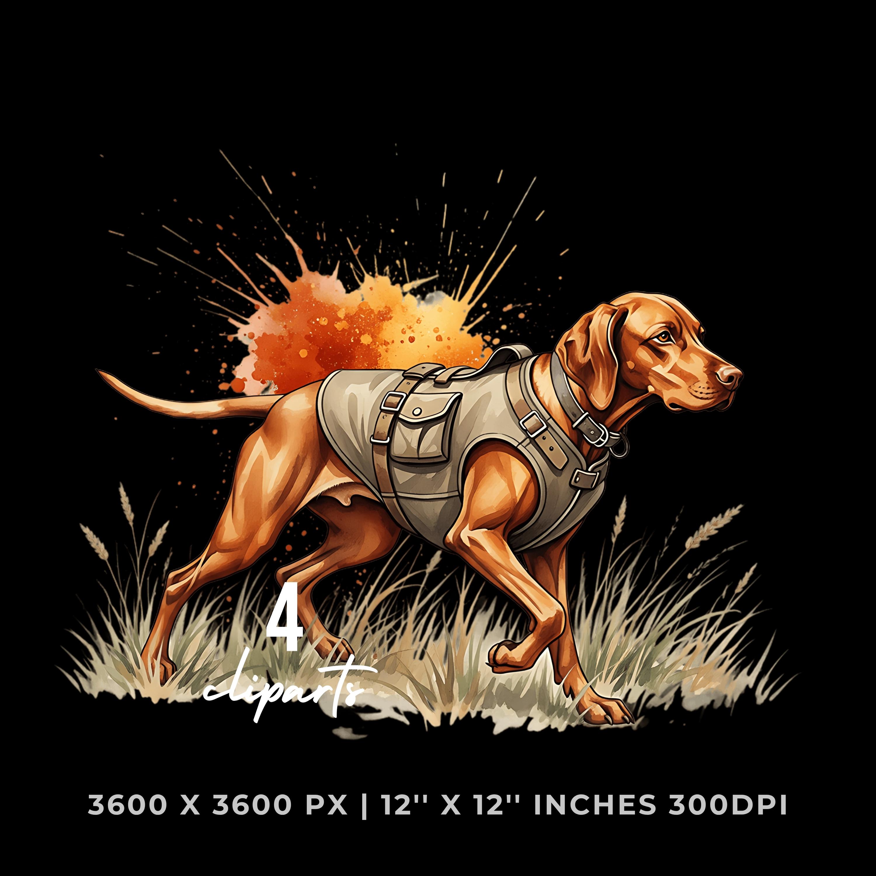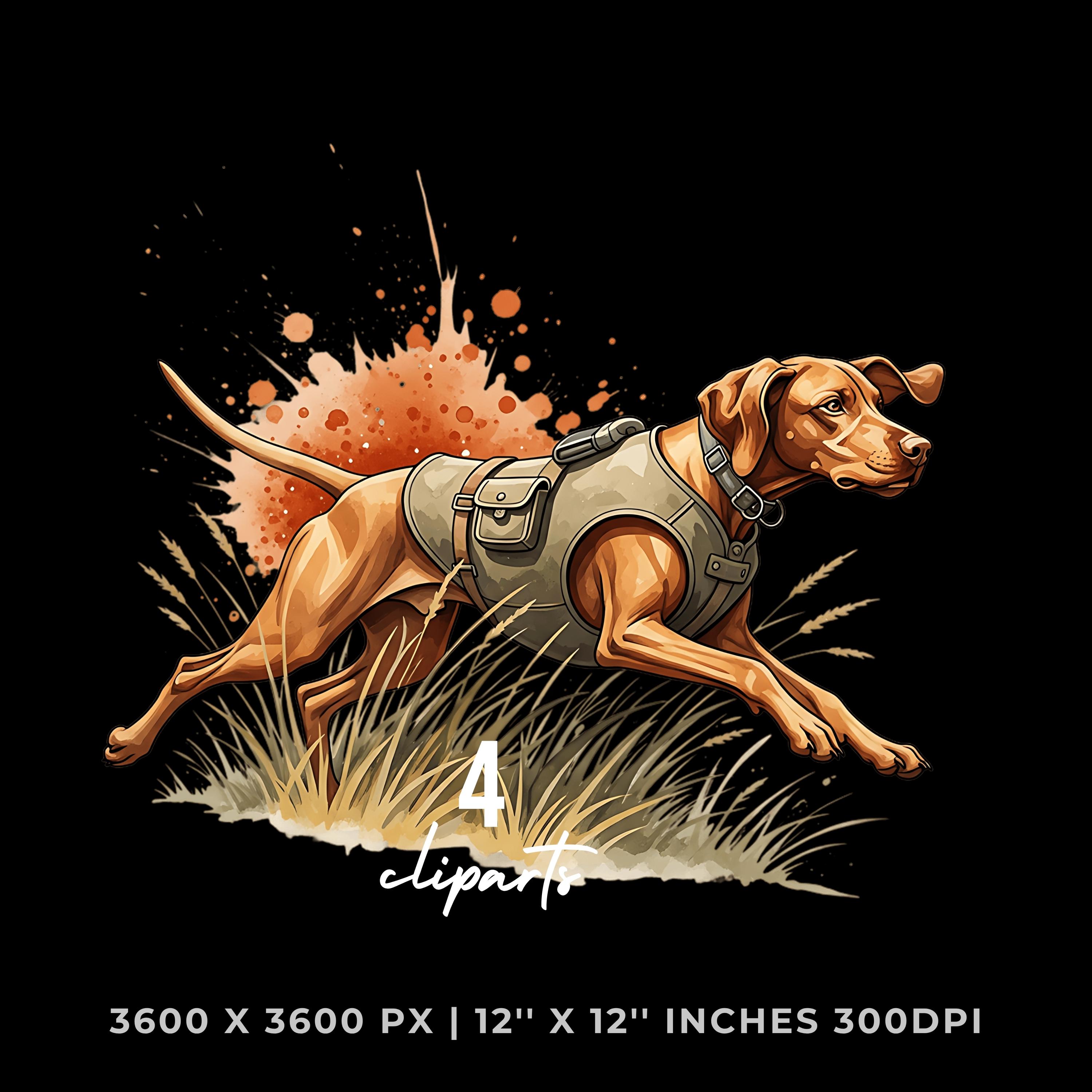 Vizsla Hunting Dog Clipart | Fall Field Dog Art | Dog running in the field | 4 PNG & 4 JPG Sublimation Transparent Hi-Res Commercial Use is an eye-catching, high-resolution digital asset designed for creators, crafters, teachers, and small business owners looking to elevate their visuals.