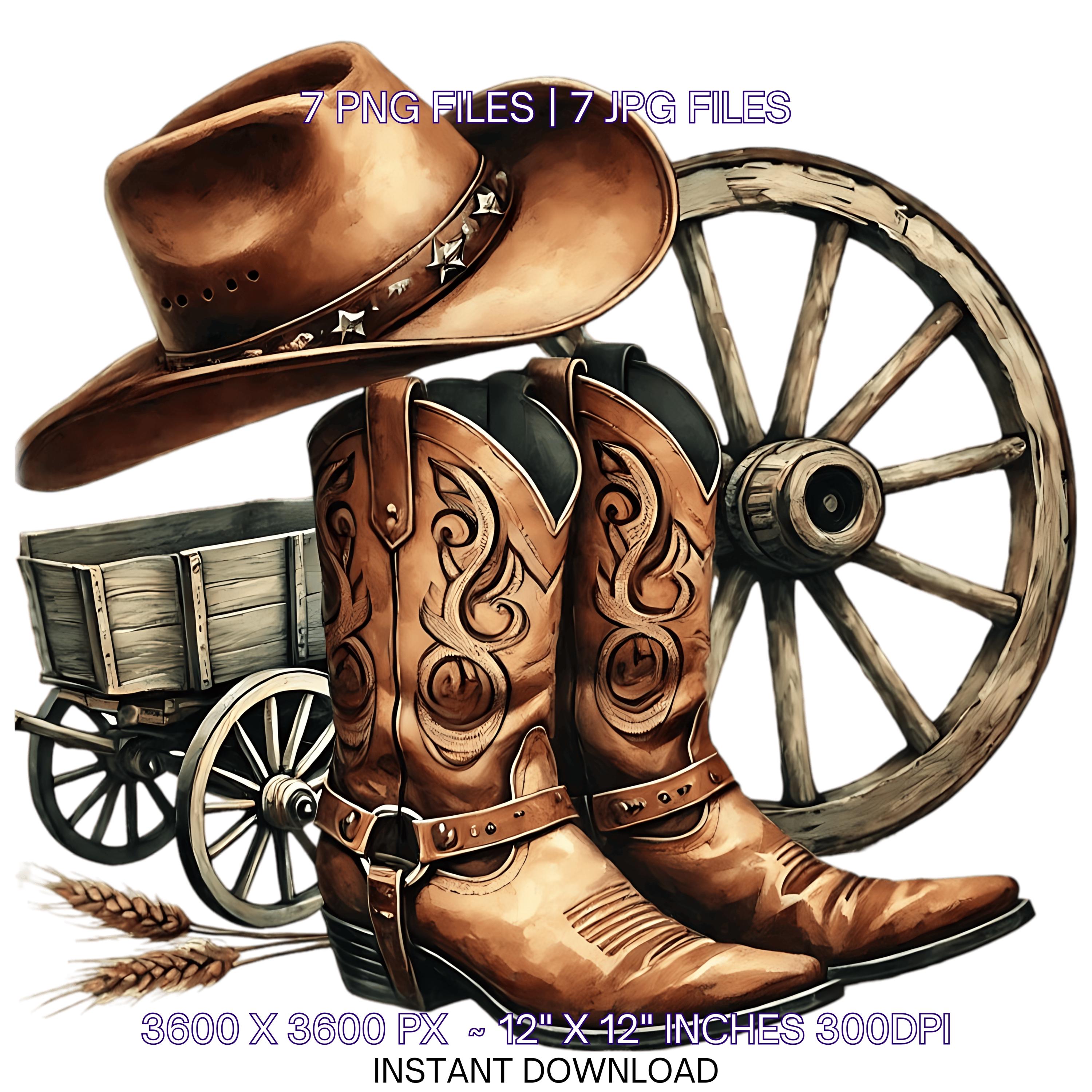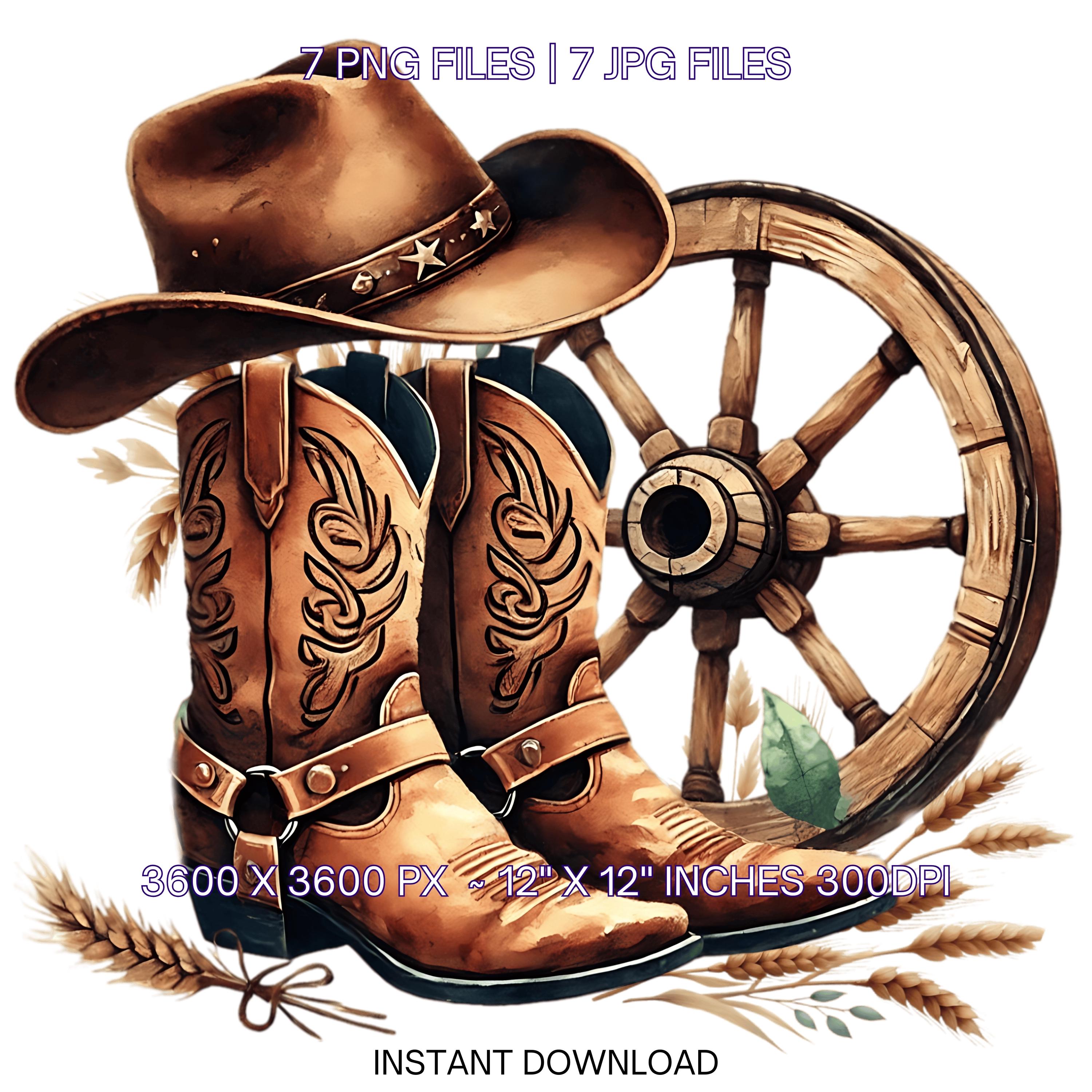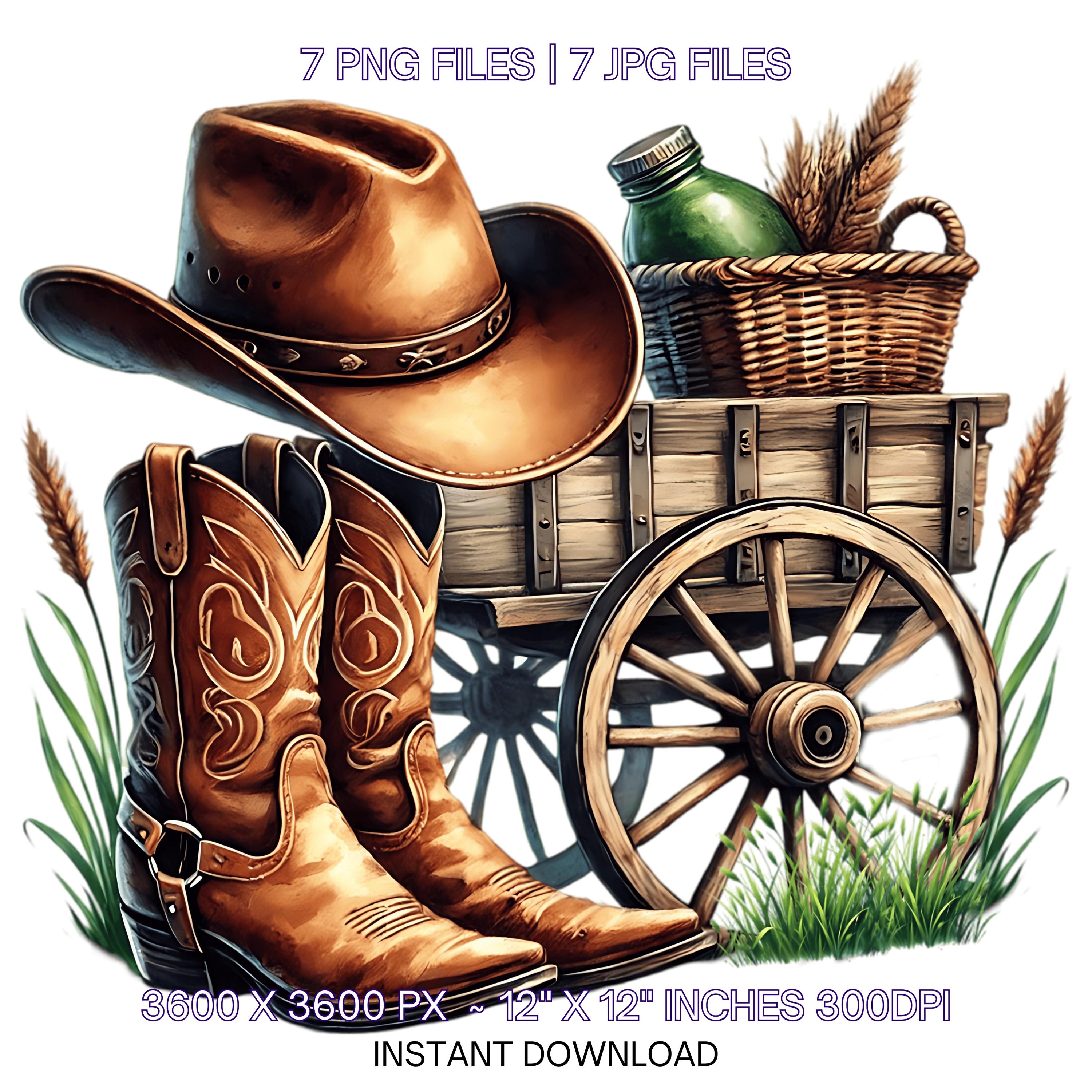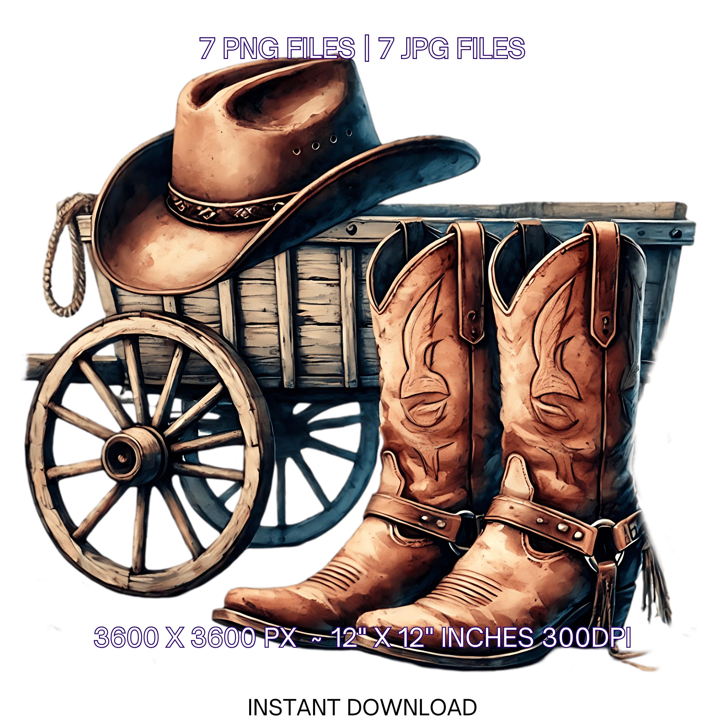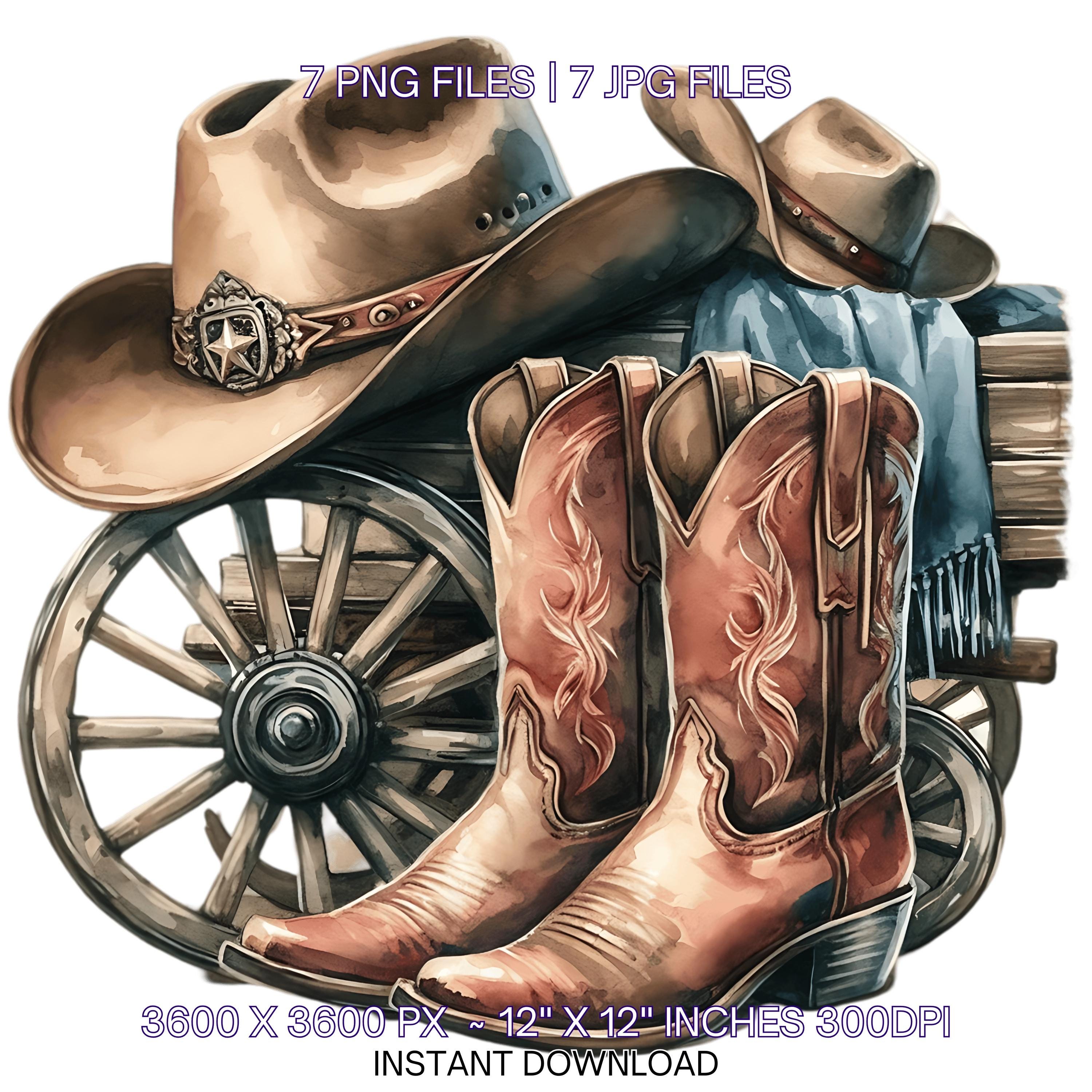 Watercolor Cowboy Boots Hat Old Wagon Wheel | 7 Country Cowboy Clipart Sublimation Designs | Country Boy Illustration PNG Commercial use – Instant Digital Download - TumblersGalaxy