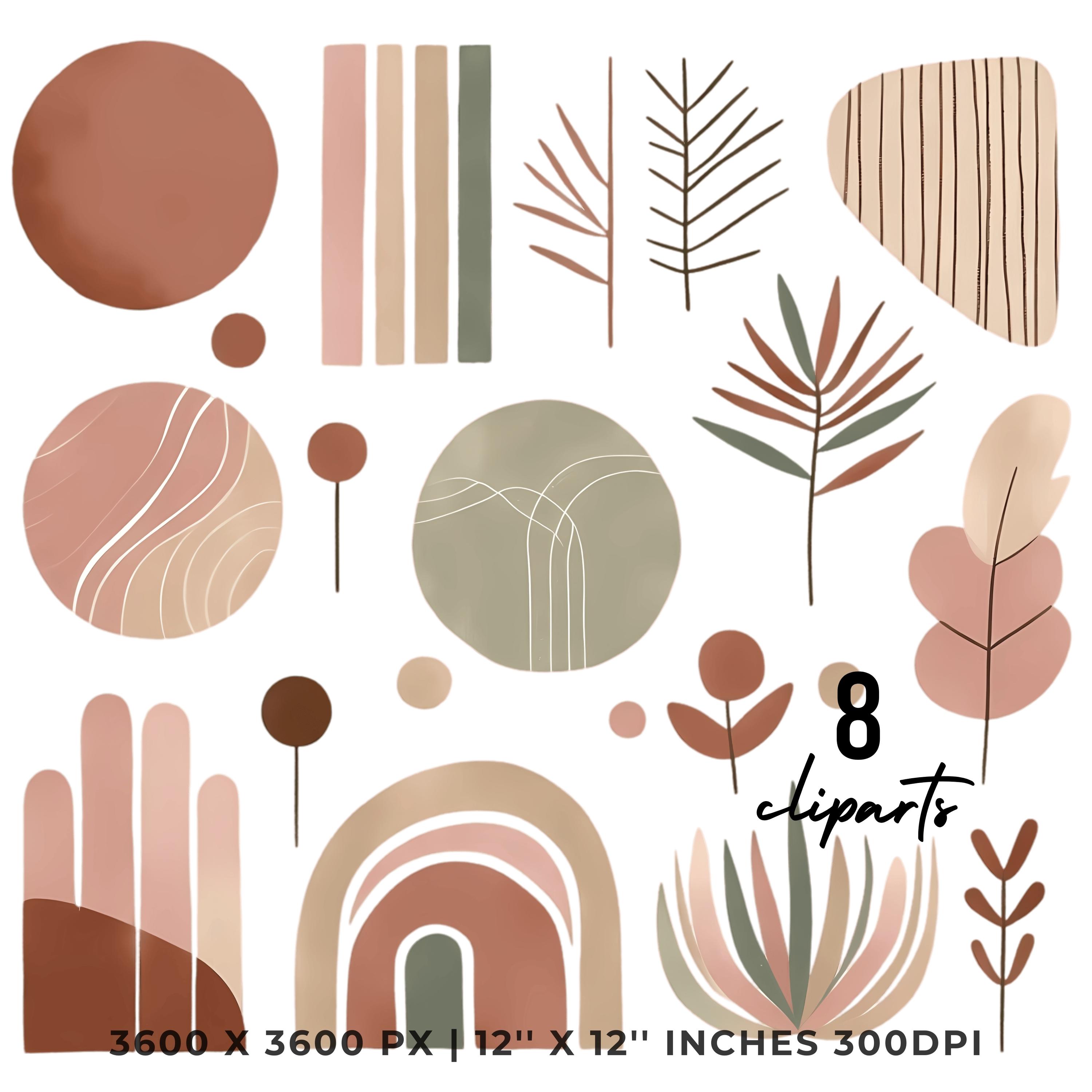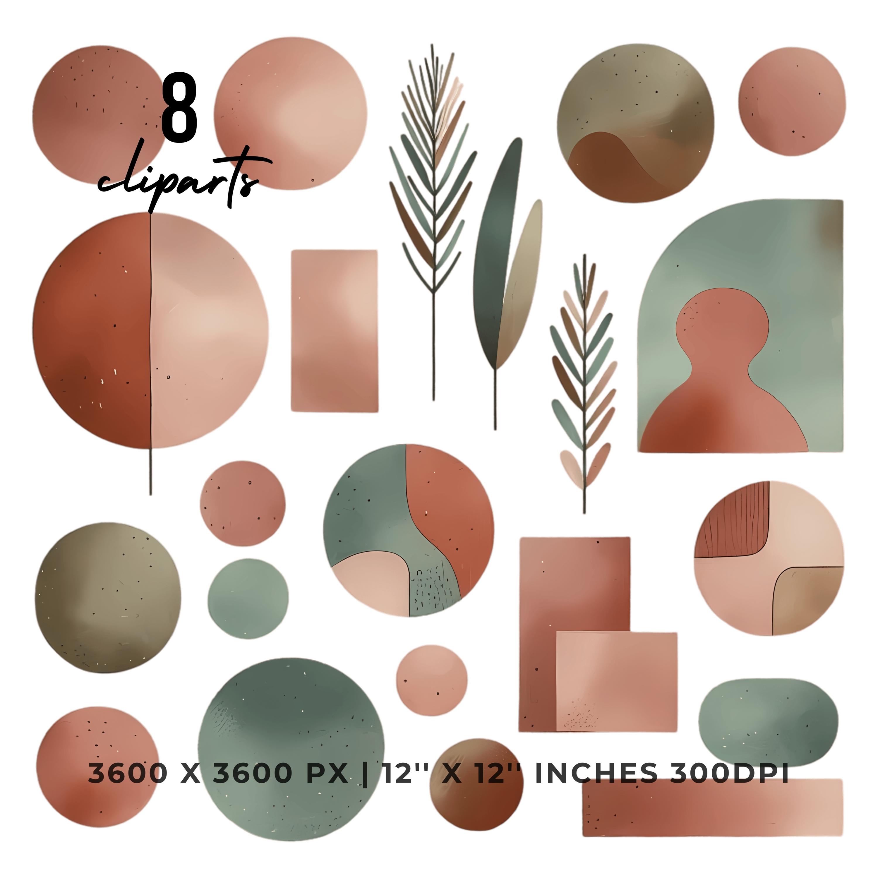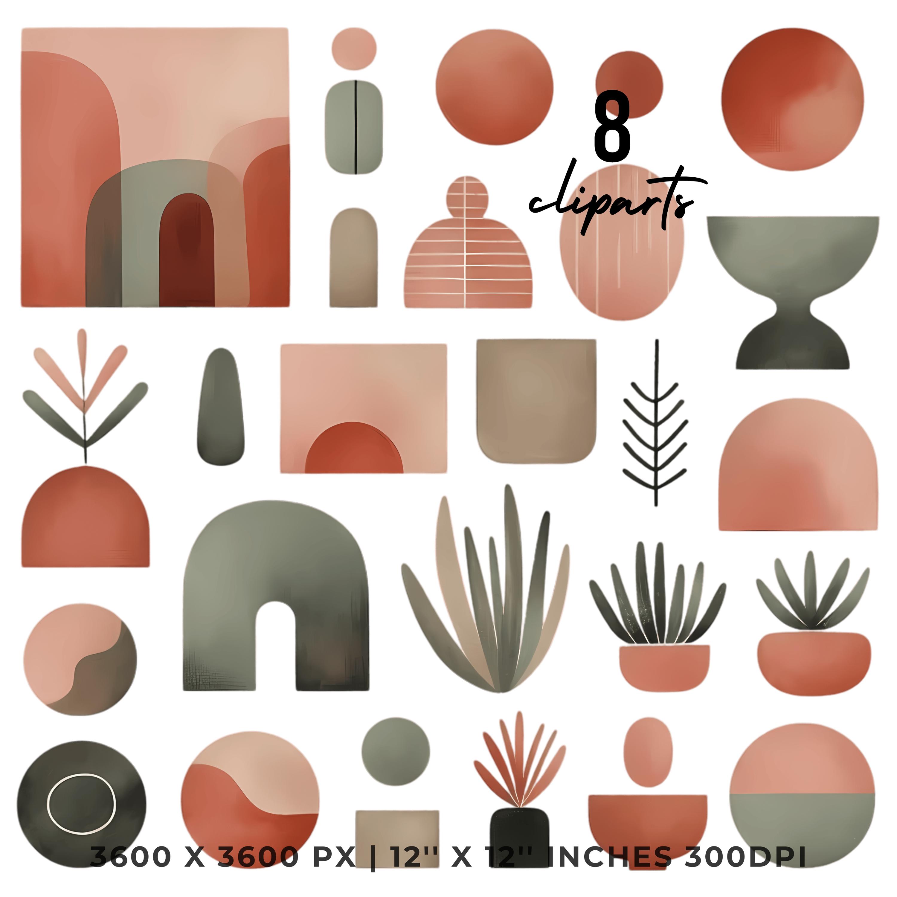 Mid-century modern shapes in earthy pink CLIPART_1-8_PNG
