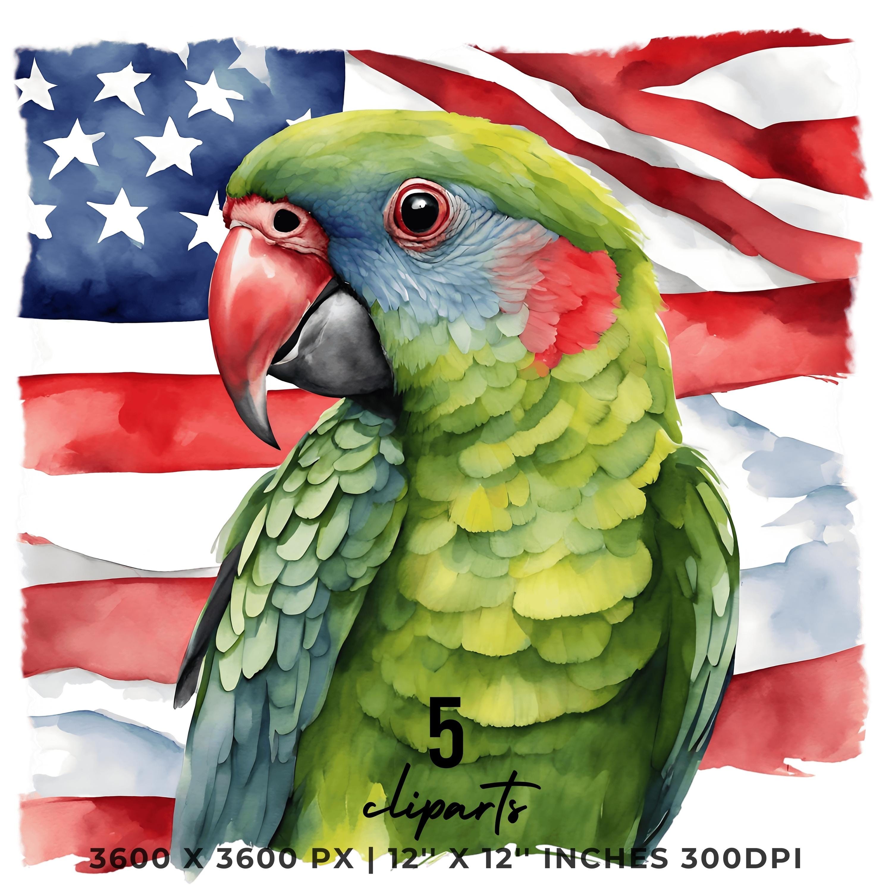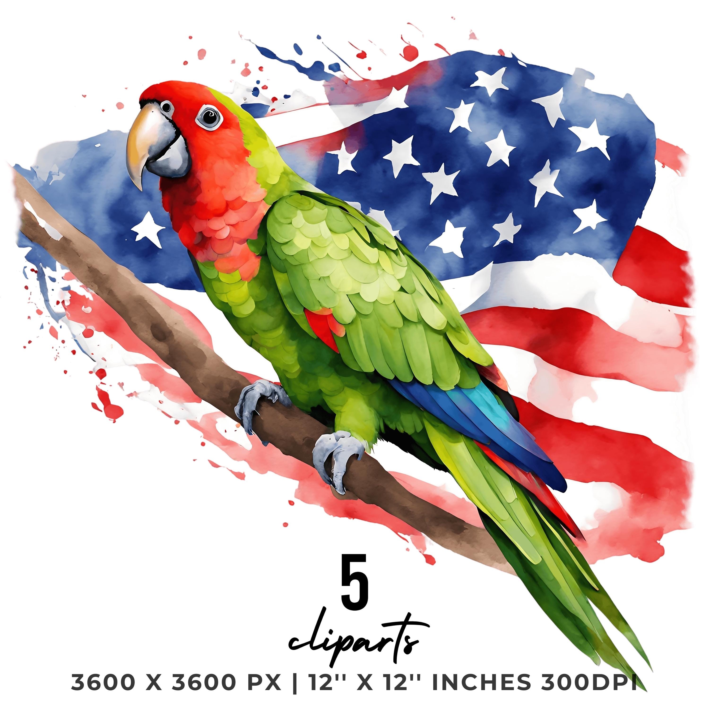 Watercolor PARROT Flag PNG | 5 Patriotic USA Parrot Flag Clipart | United States Thick-Billed Parrot Flag Sublimation Transparent Commercial – Instant Digital Download - TumblersGalaxy