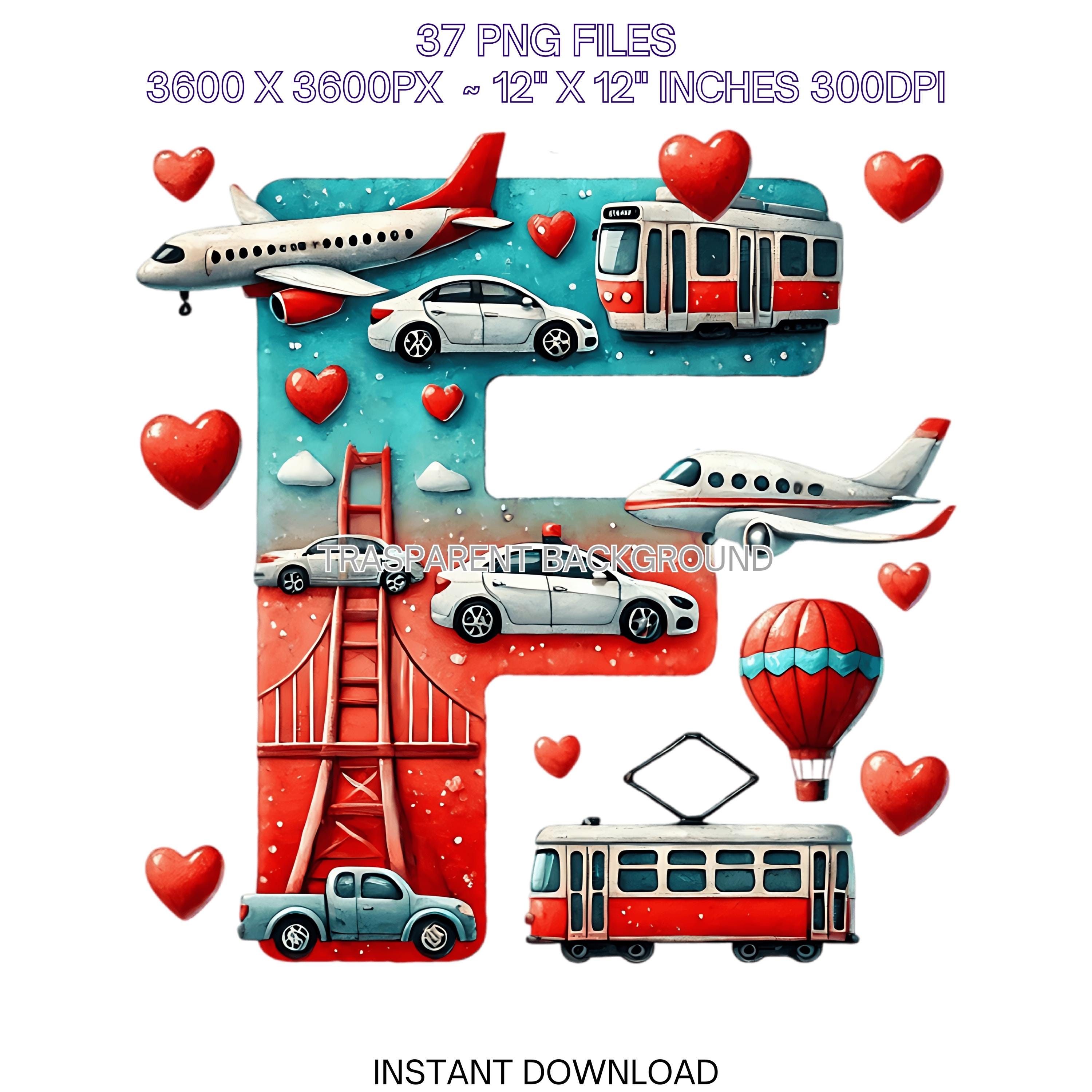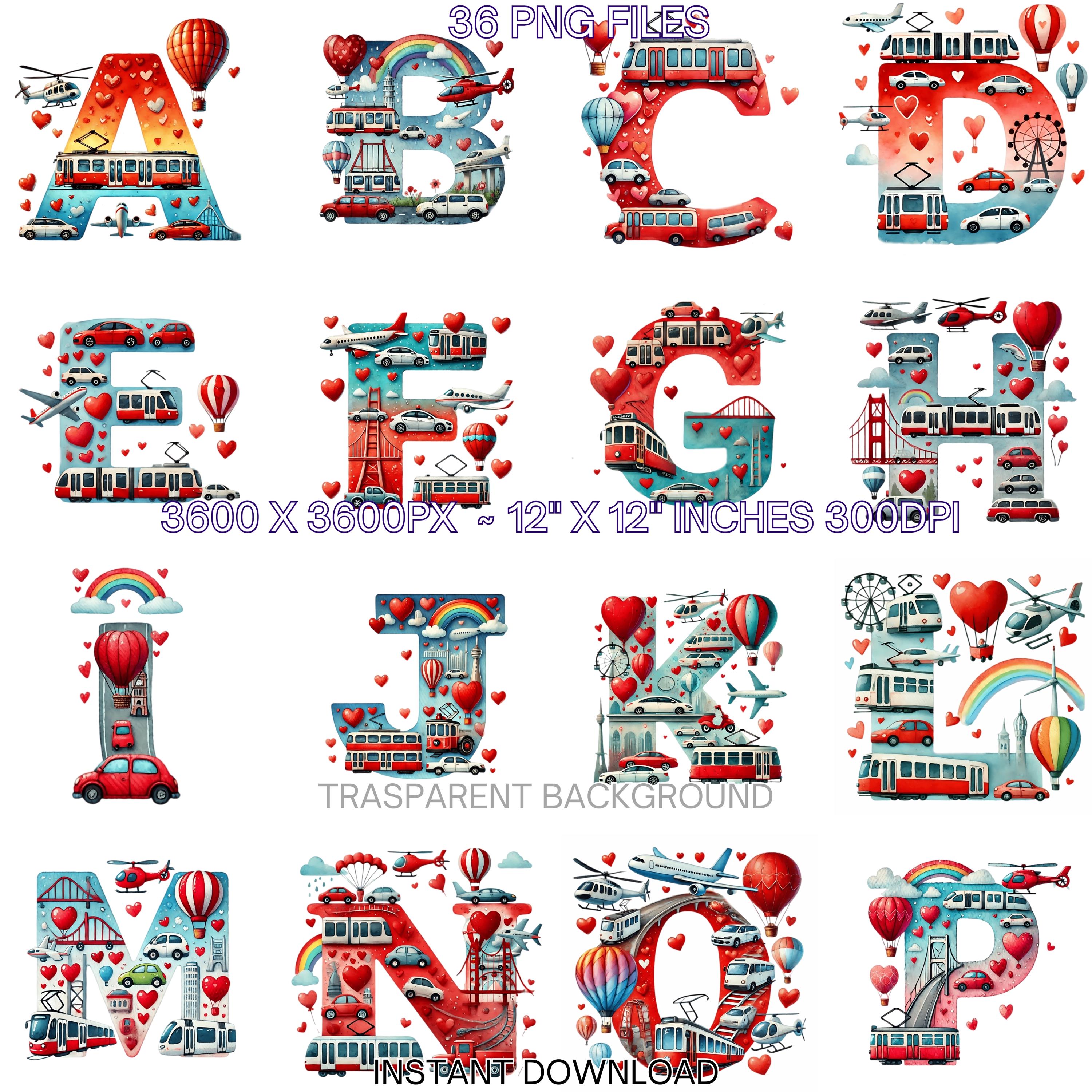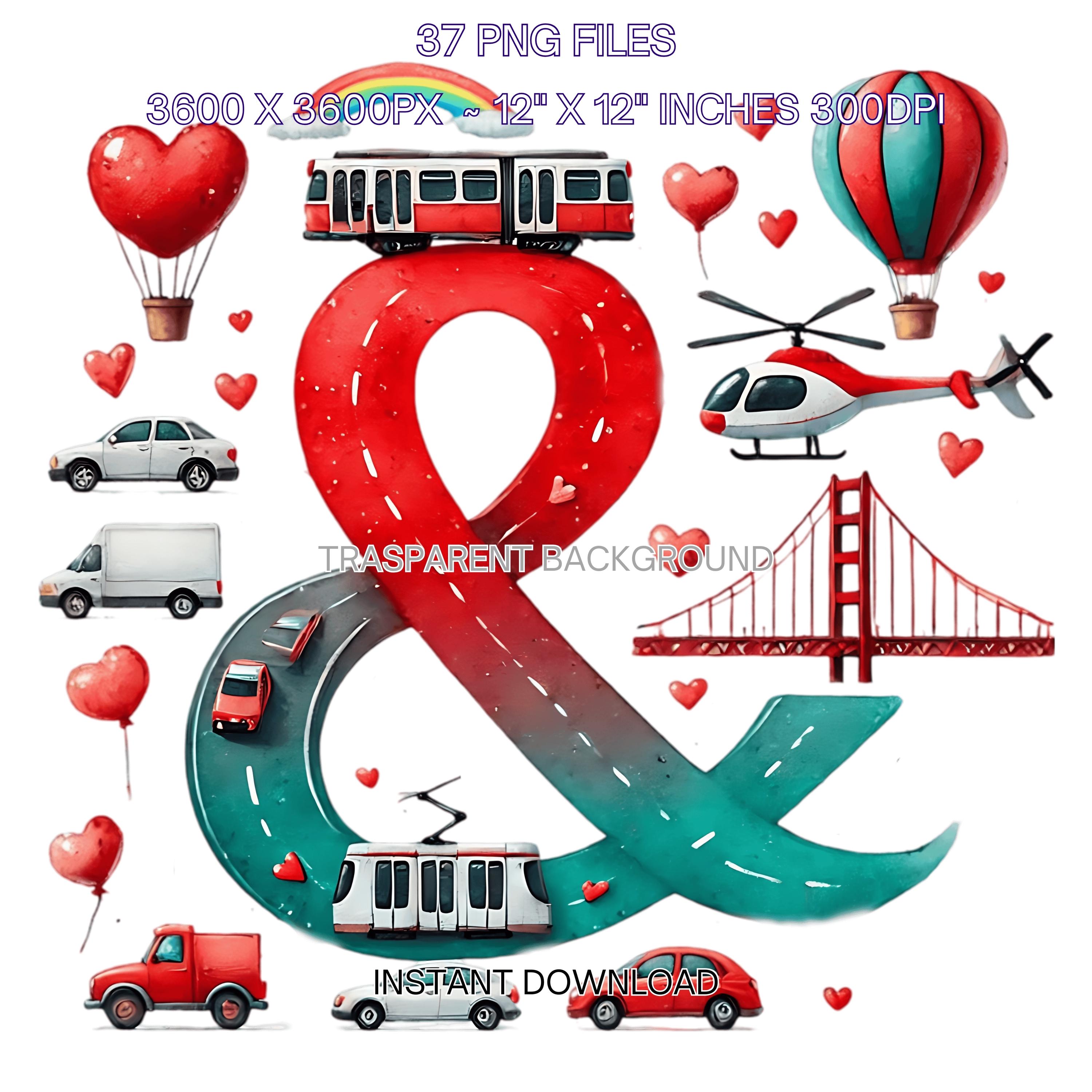Watercolor Valentine Alphabet Clipart | 37 Red Blue FULL English Letters, Numbers for Boys | Harts and Cars | ABC Valentine PNG Commercial is an eye-catching, high-resolution digital asset designed for creators, crafters, teachers, and small business owners looking to elevate their visuals.
