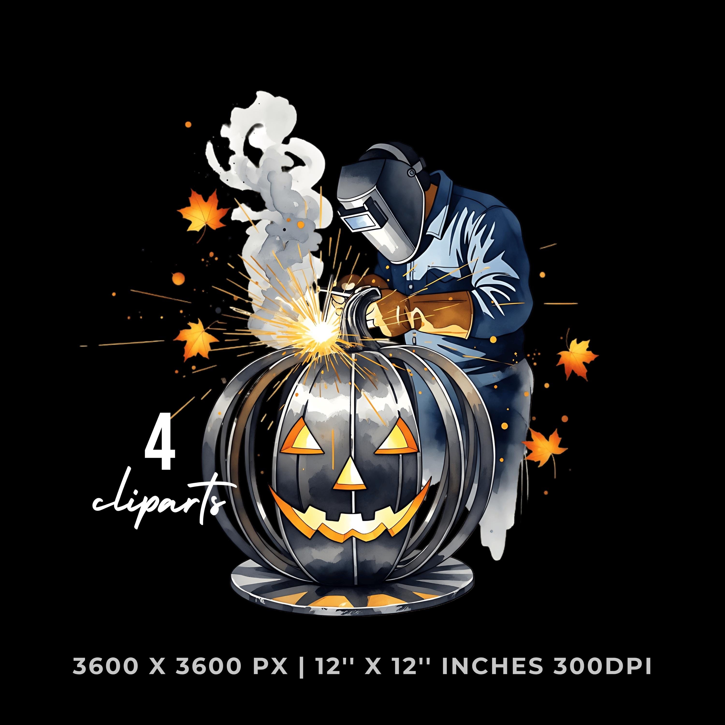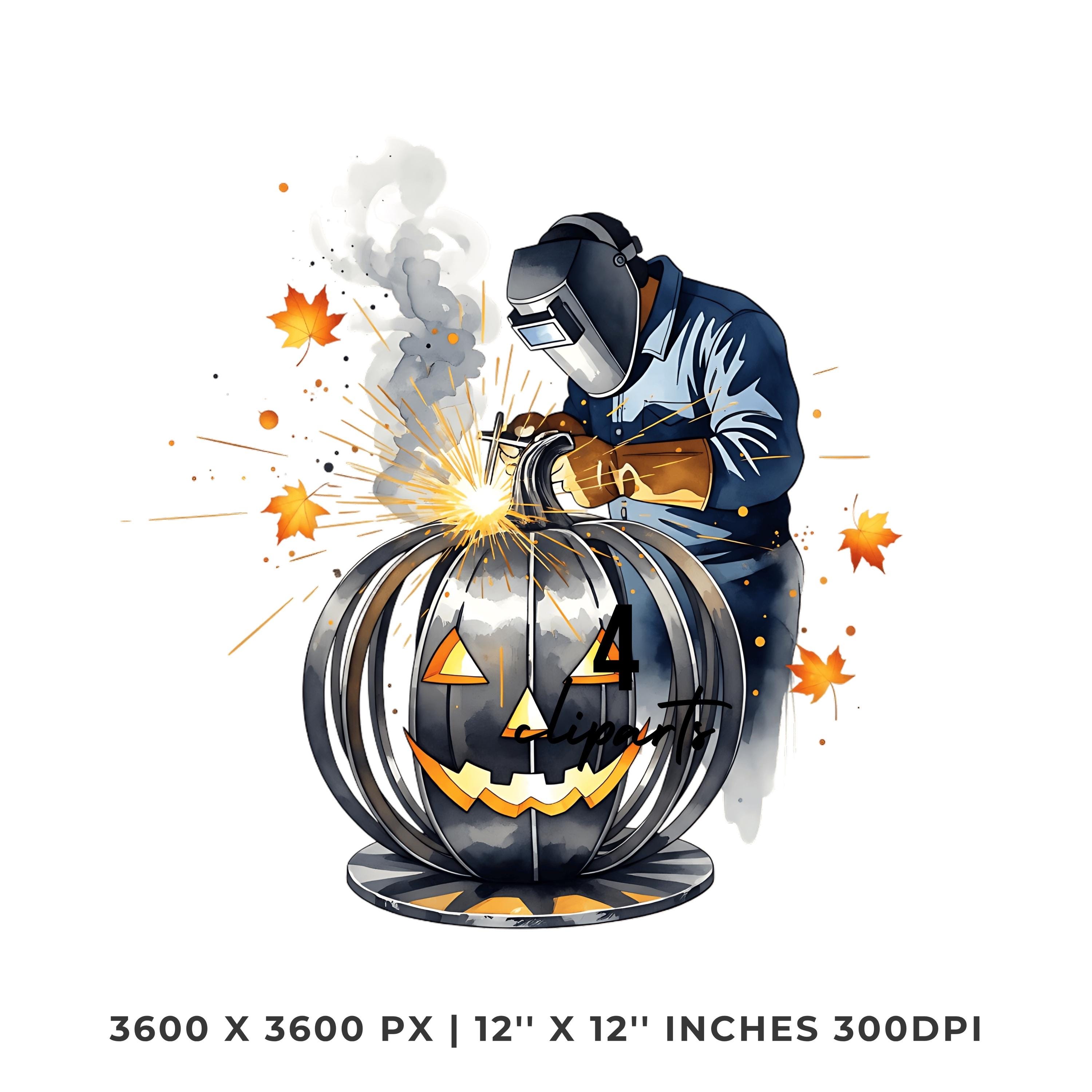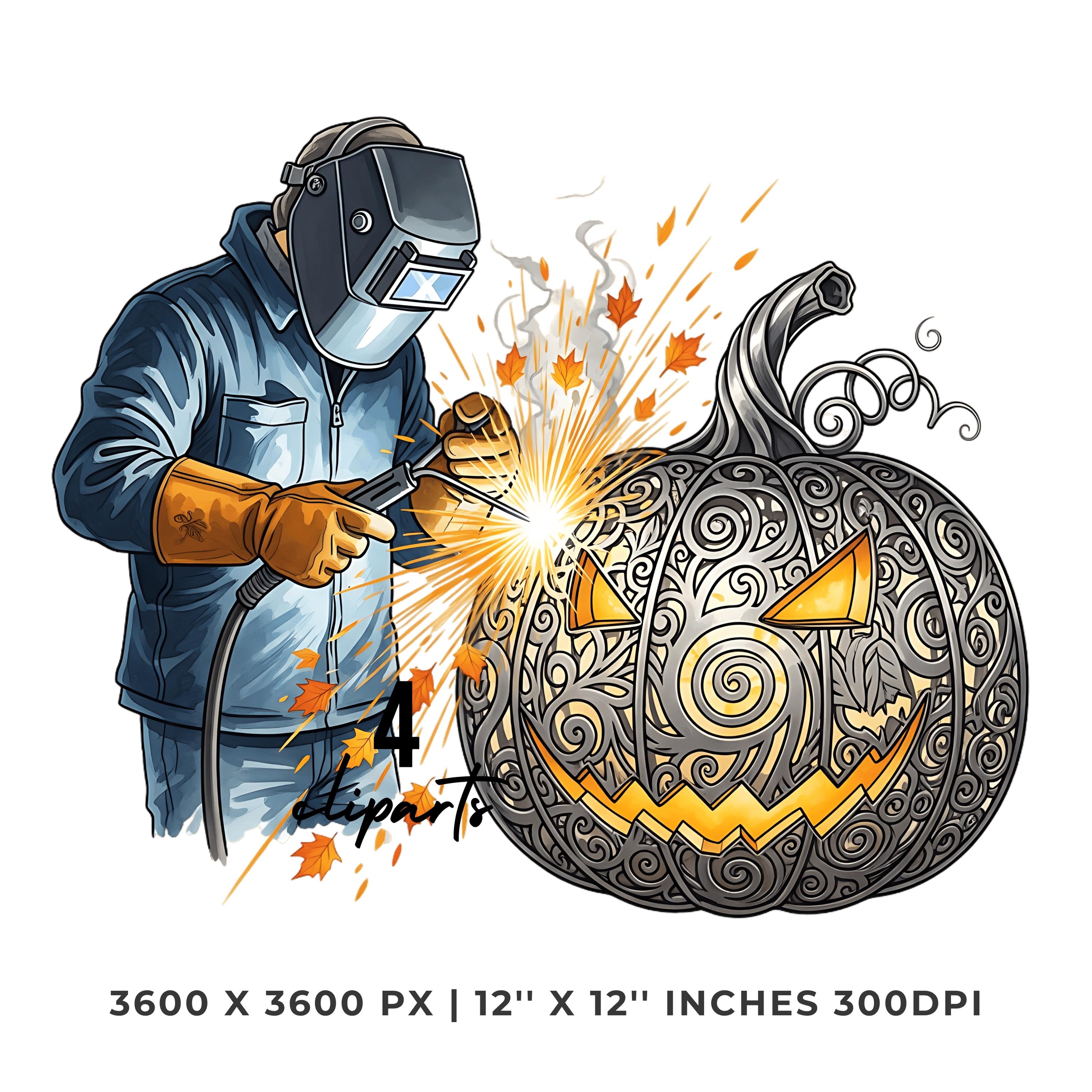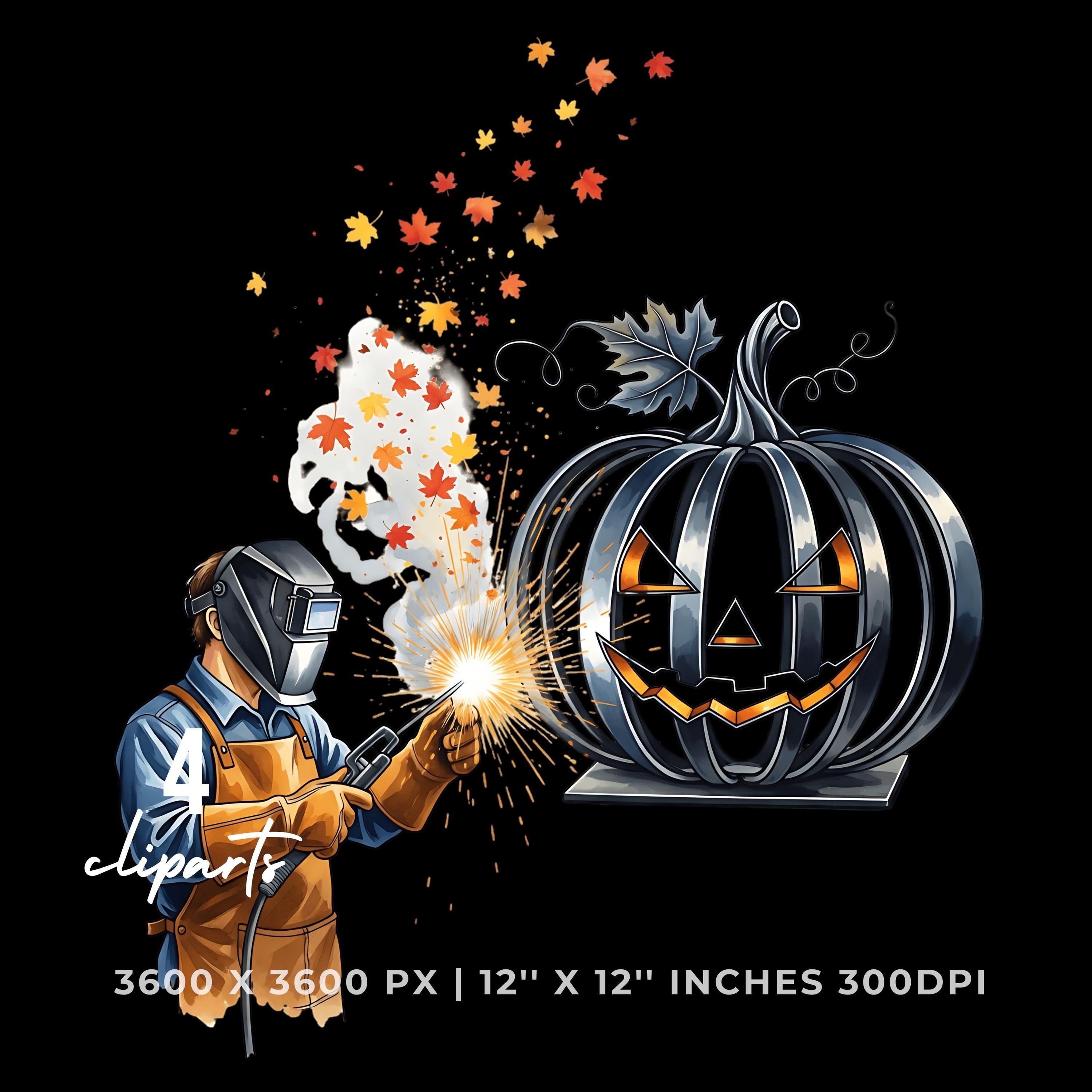 Welder Halloween Pumpkin Clipart PNG JPG | Fall Welding Art | 4 PNG & 4 JPG | Sublimation Design | 12″x12″ 300DPI Graphic Commercial Use