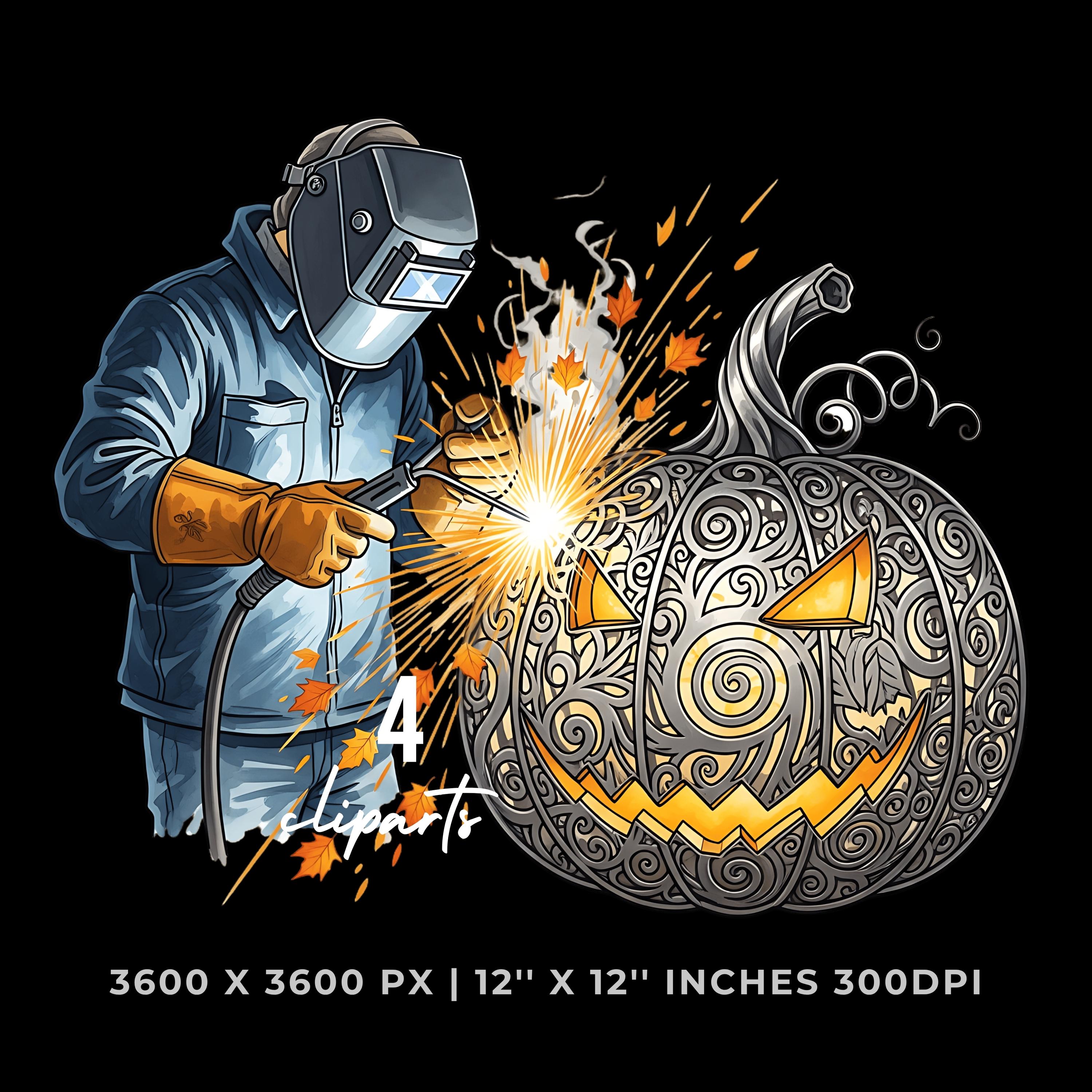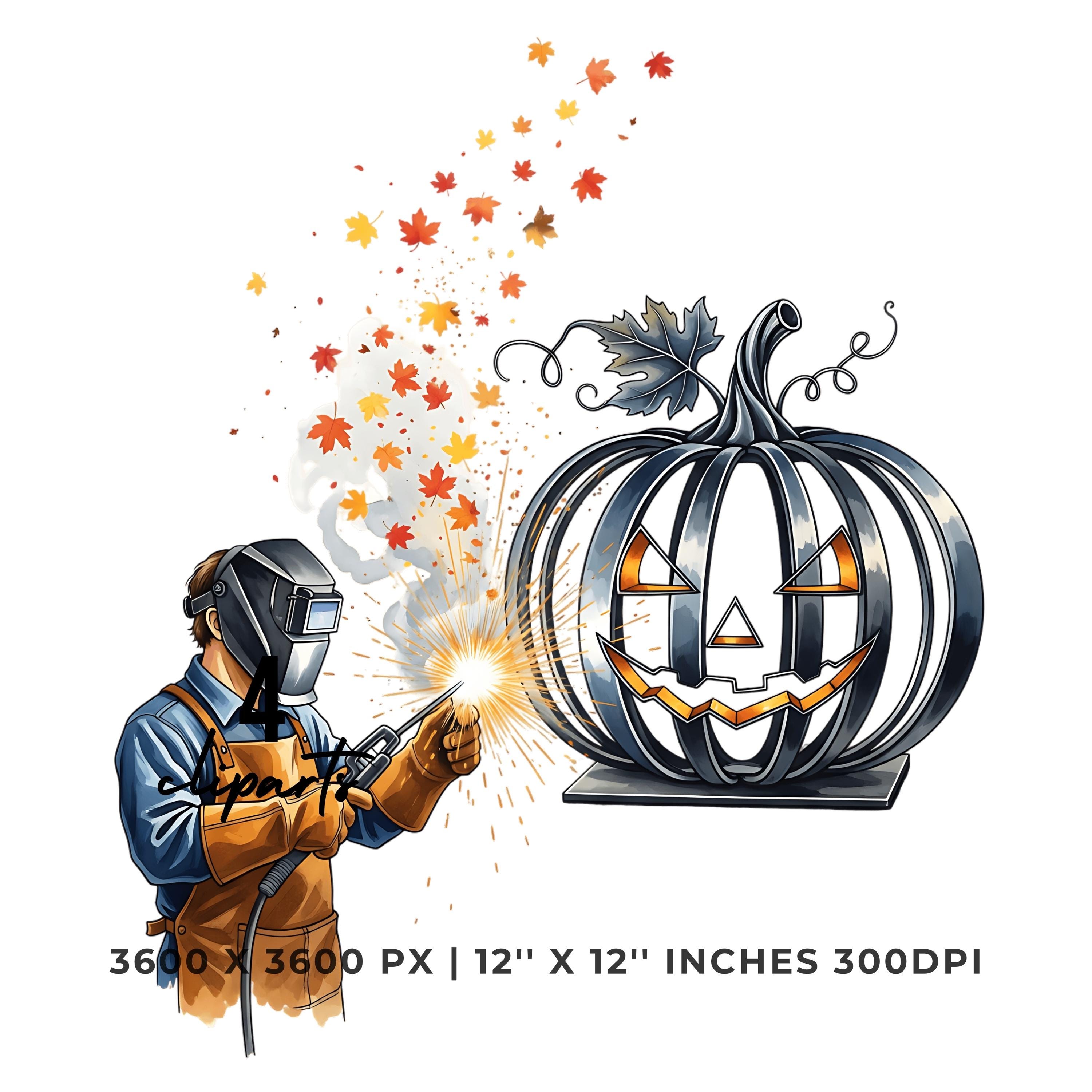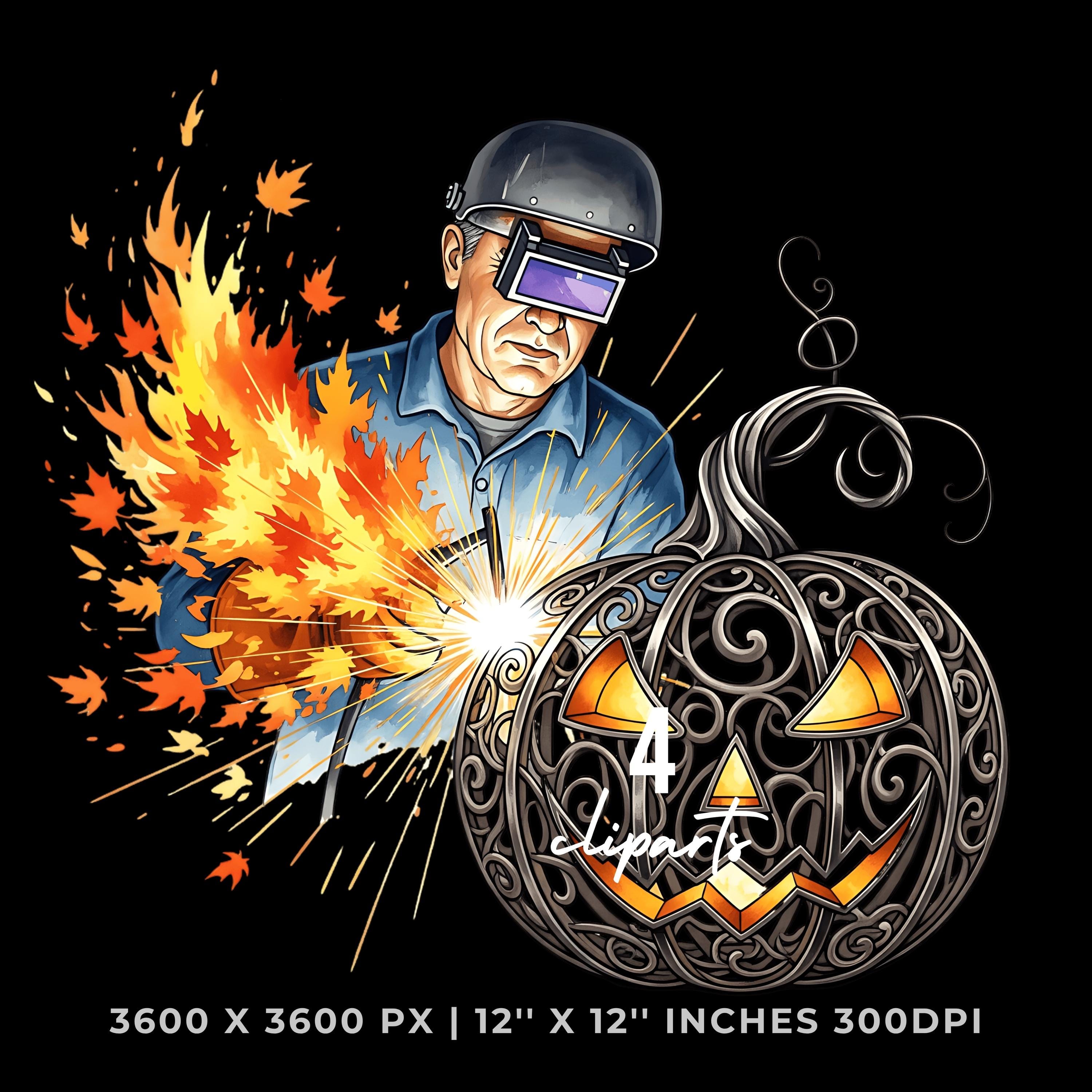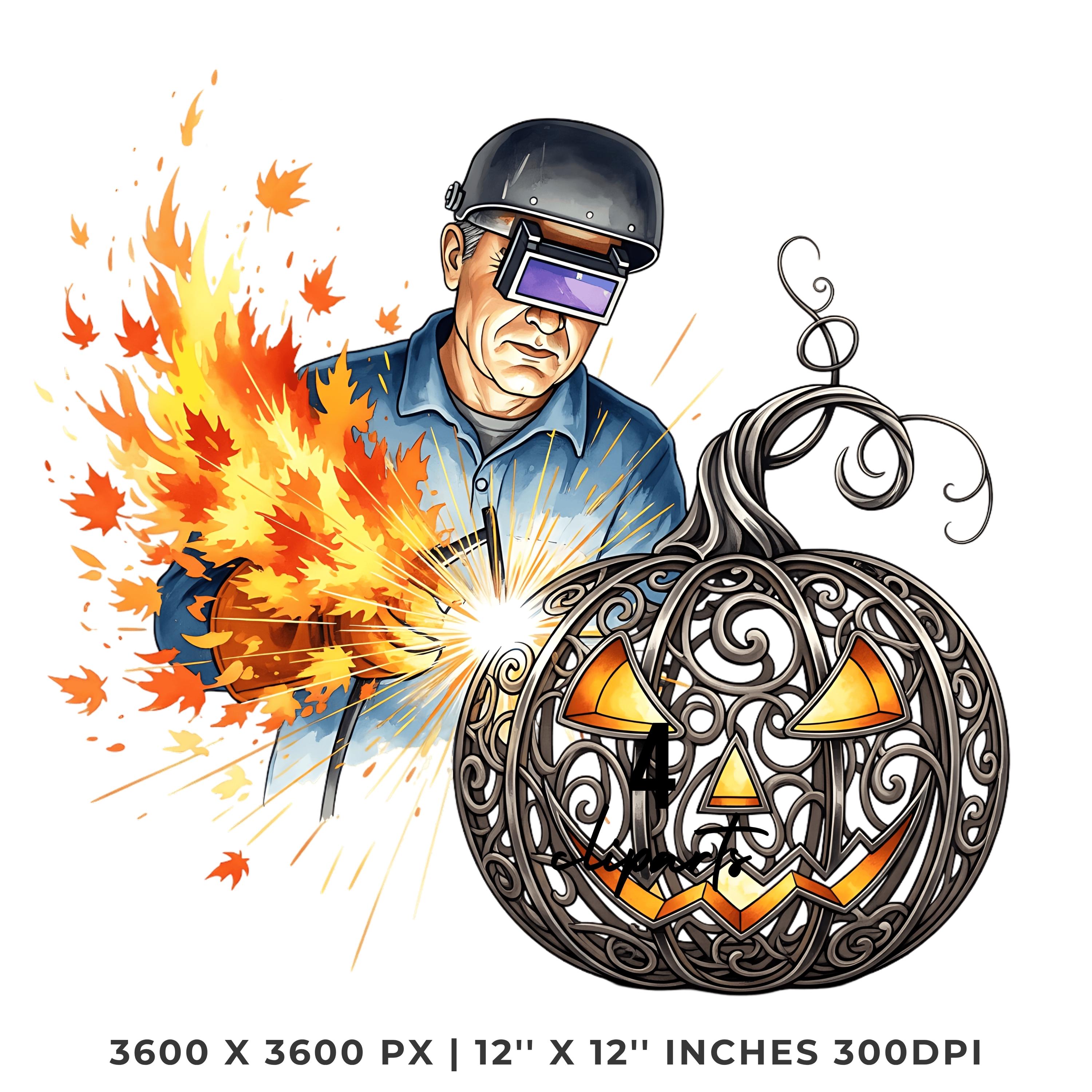 Welder Halloween Pumpkin Clipart PNG JPG | Fall Welding Art | 4 PNG & 4 JPG | Sublimation Design | 12″x12″ 300DPI Graphic Commercial Use