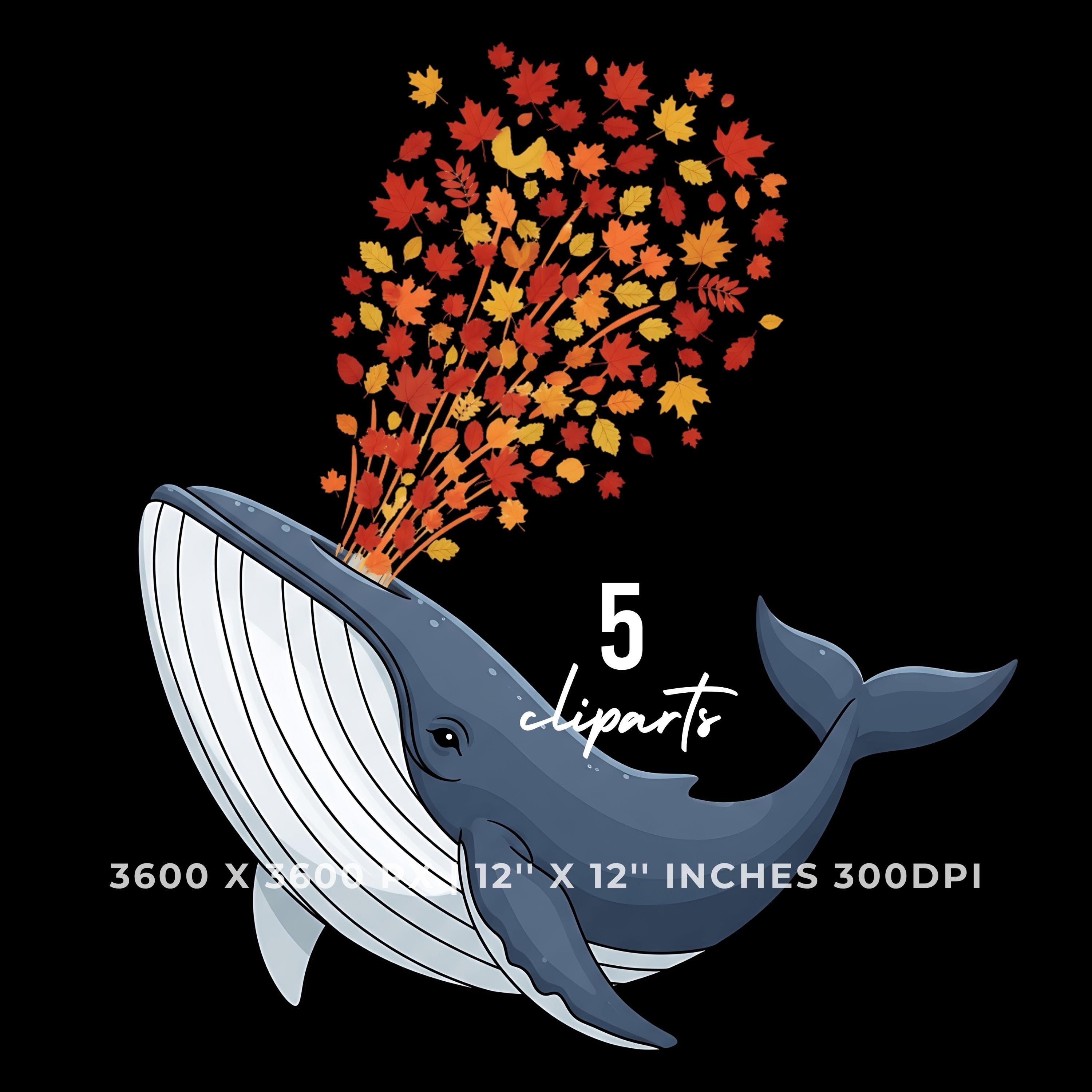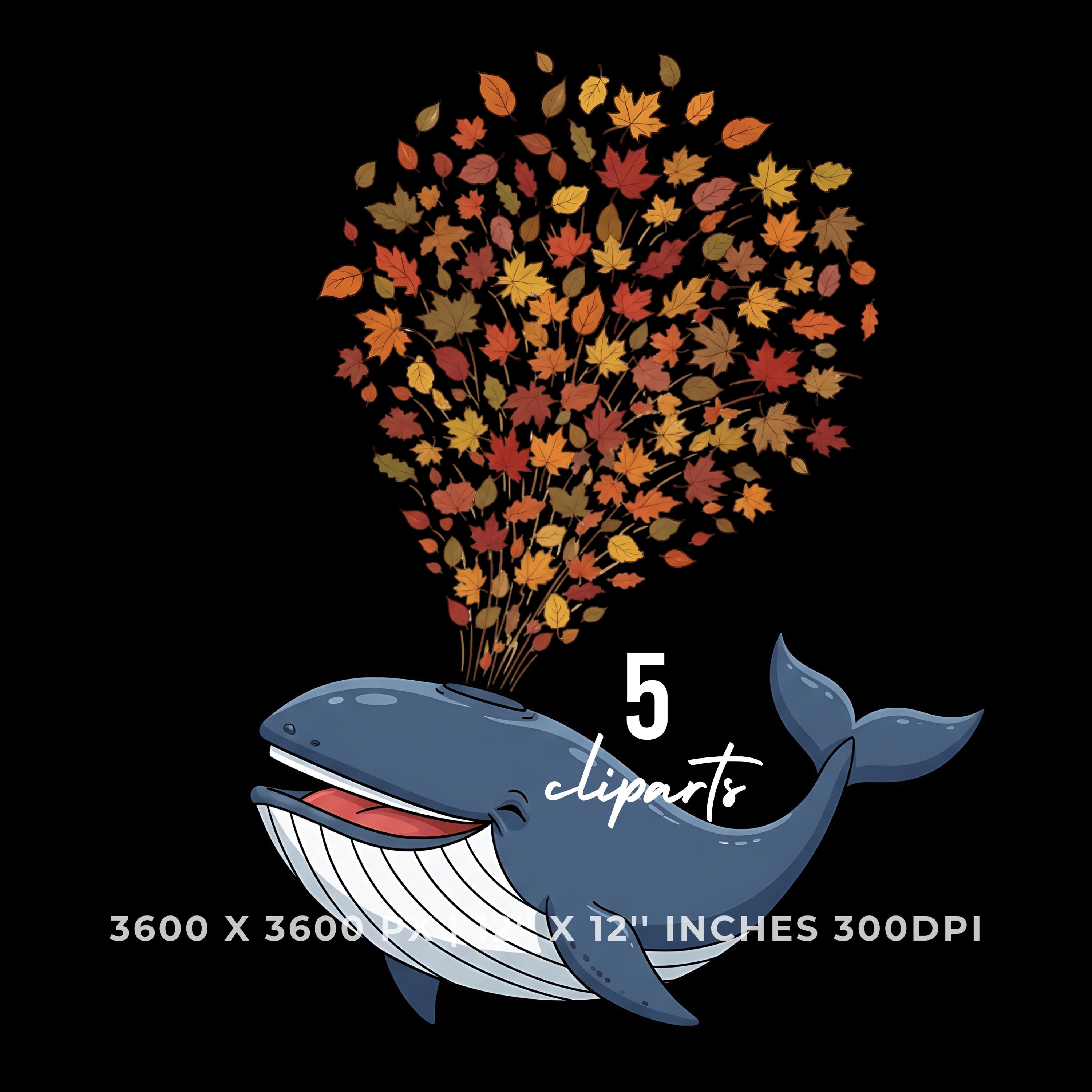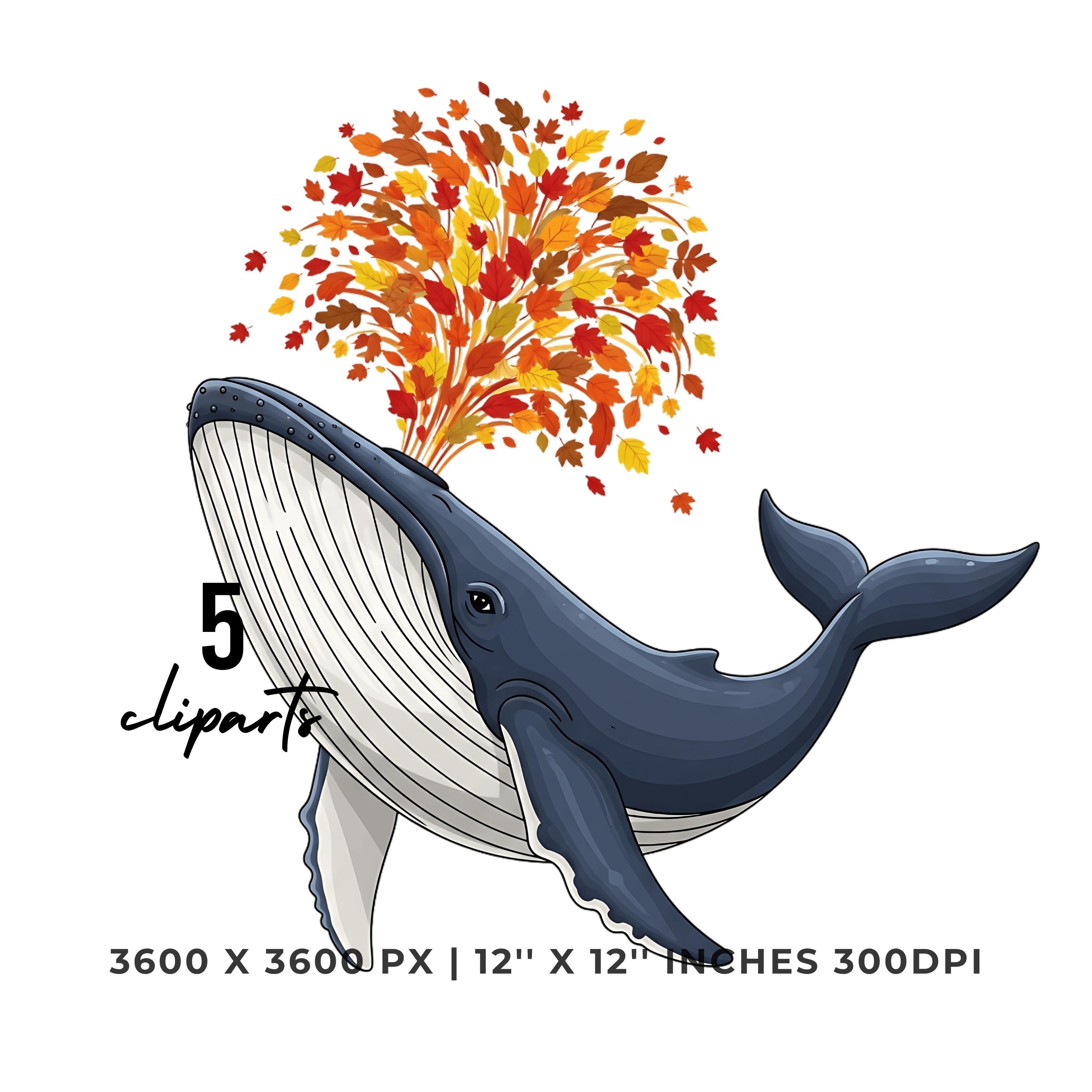 Whale Spraying Autumn Leaves Clipart PNG | 5 PNG 5 JPG Watercolor Whale Illustrations | Fall Ocean Animal Sublimation | Commercial Use is an eye-catching, high-resolution digital asset designed for creators, crafters, teachers, and small business owners looking to elevate their visuals.
