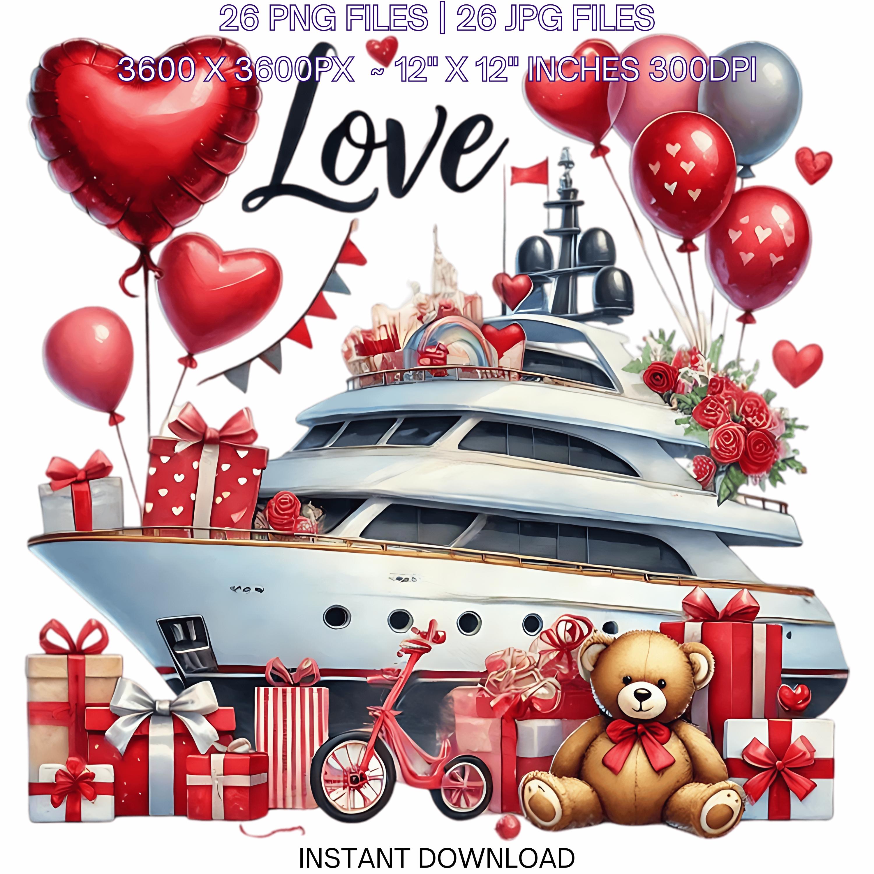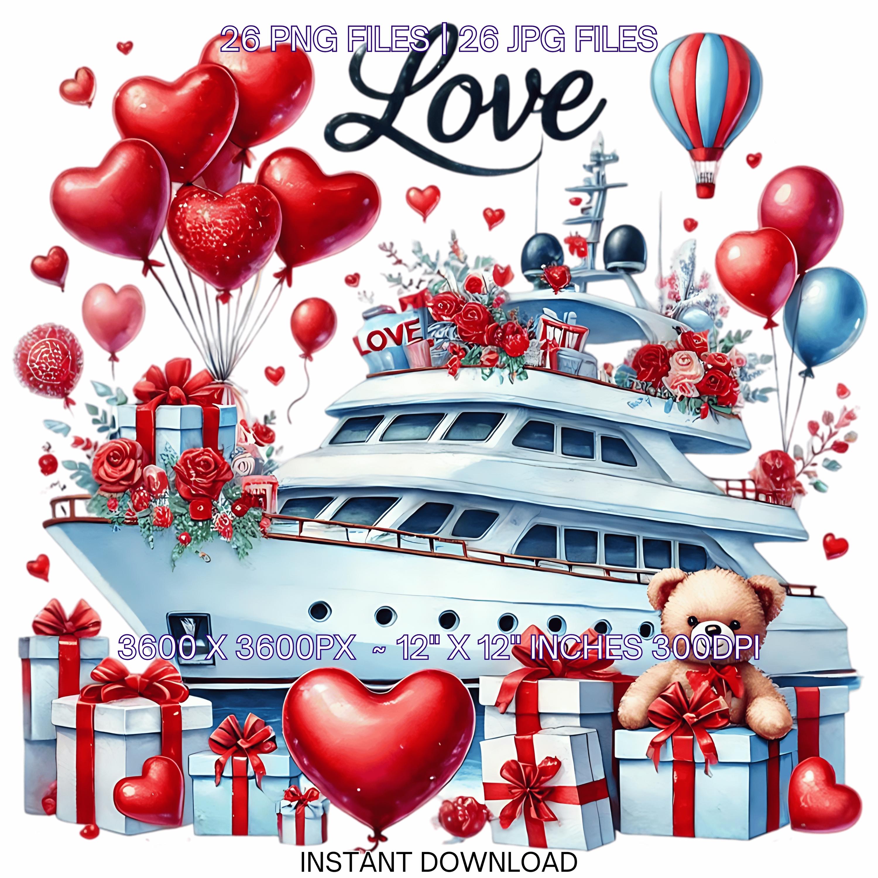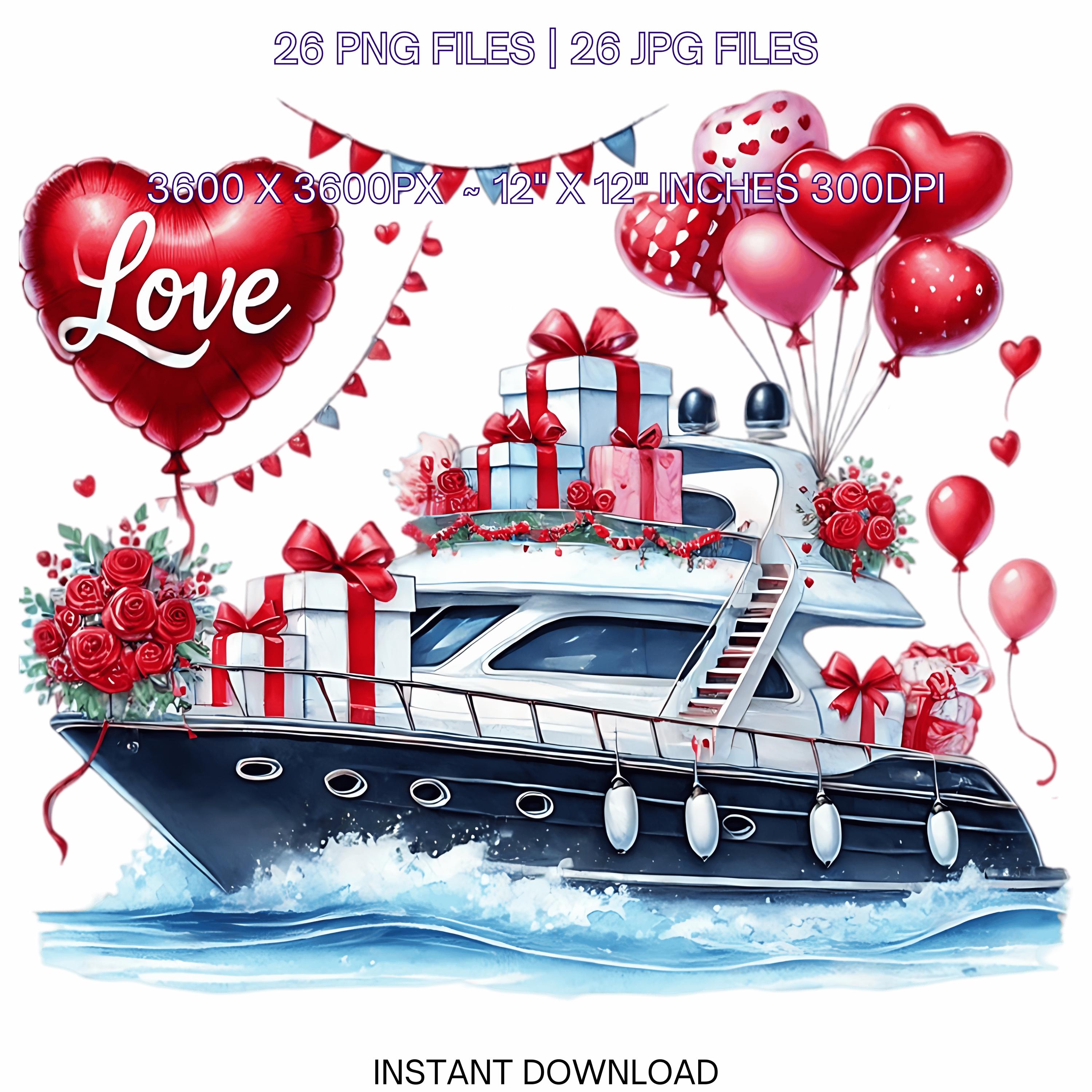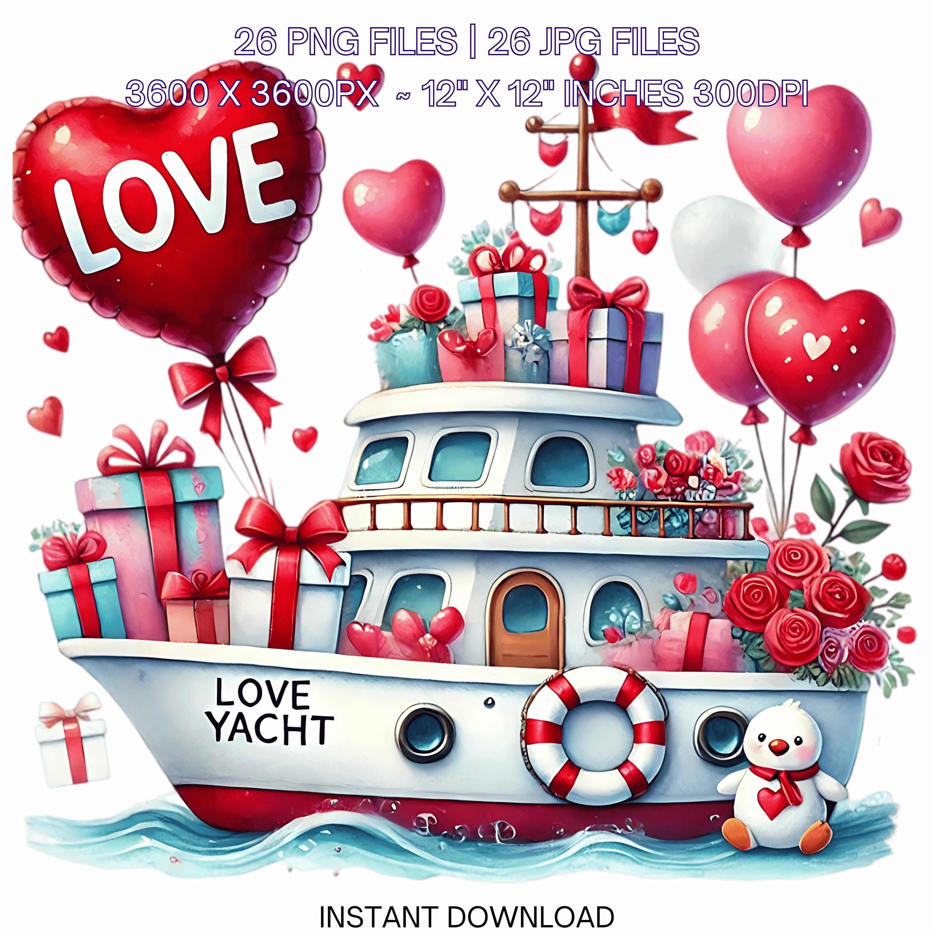 YACHT Cruise Clipart PNG | Nautical Lovers Vacation | 26 Valentine Watercolor Ocean Marine Cruiser Couple In Love Sublimation Commercial Use is an eye-catching, high-resolution digital asset designed for creators, crafters, teachers, and small business owners looking to elevate their visuals.